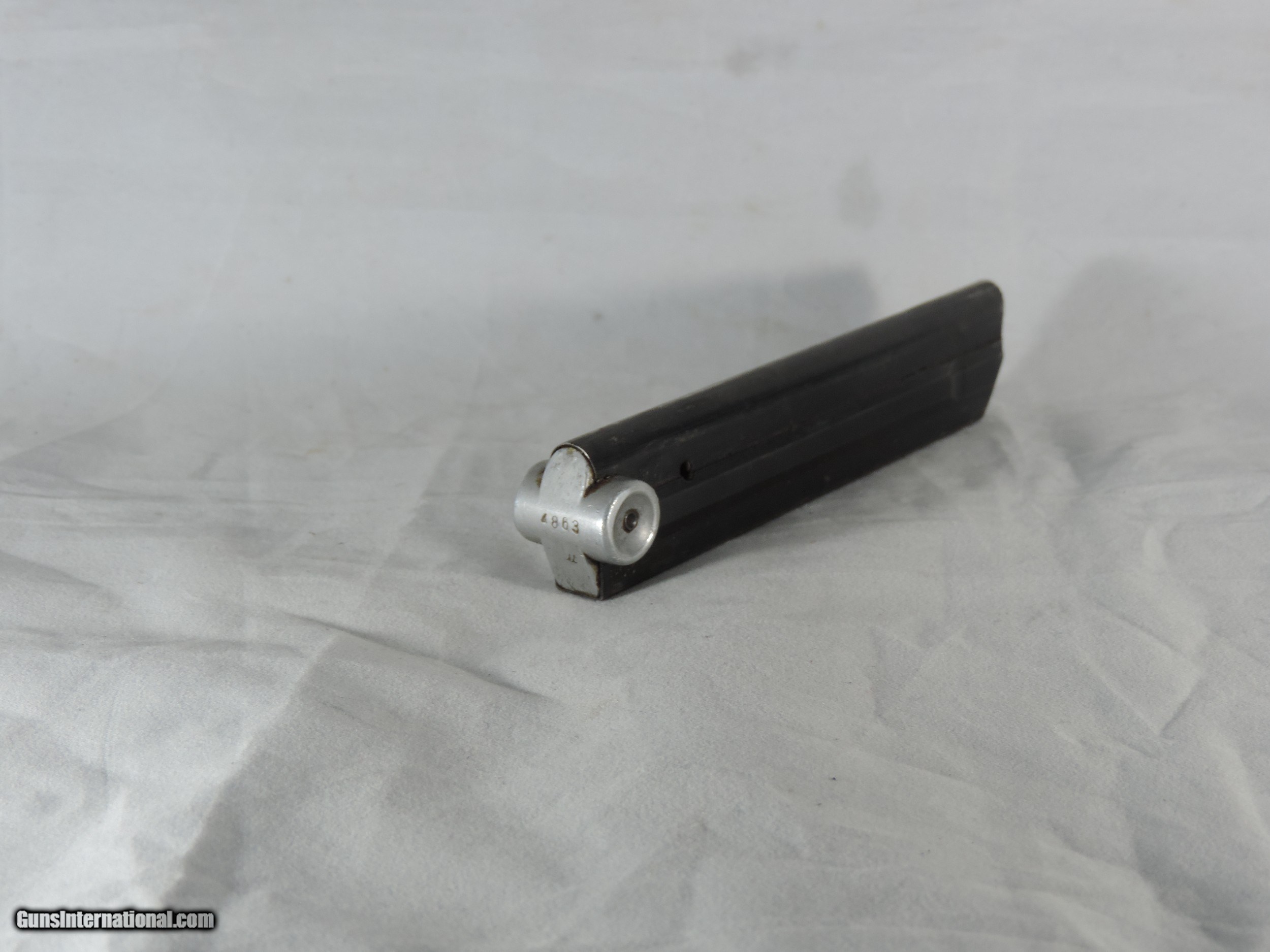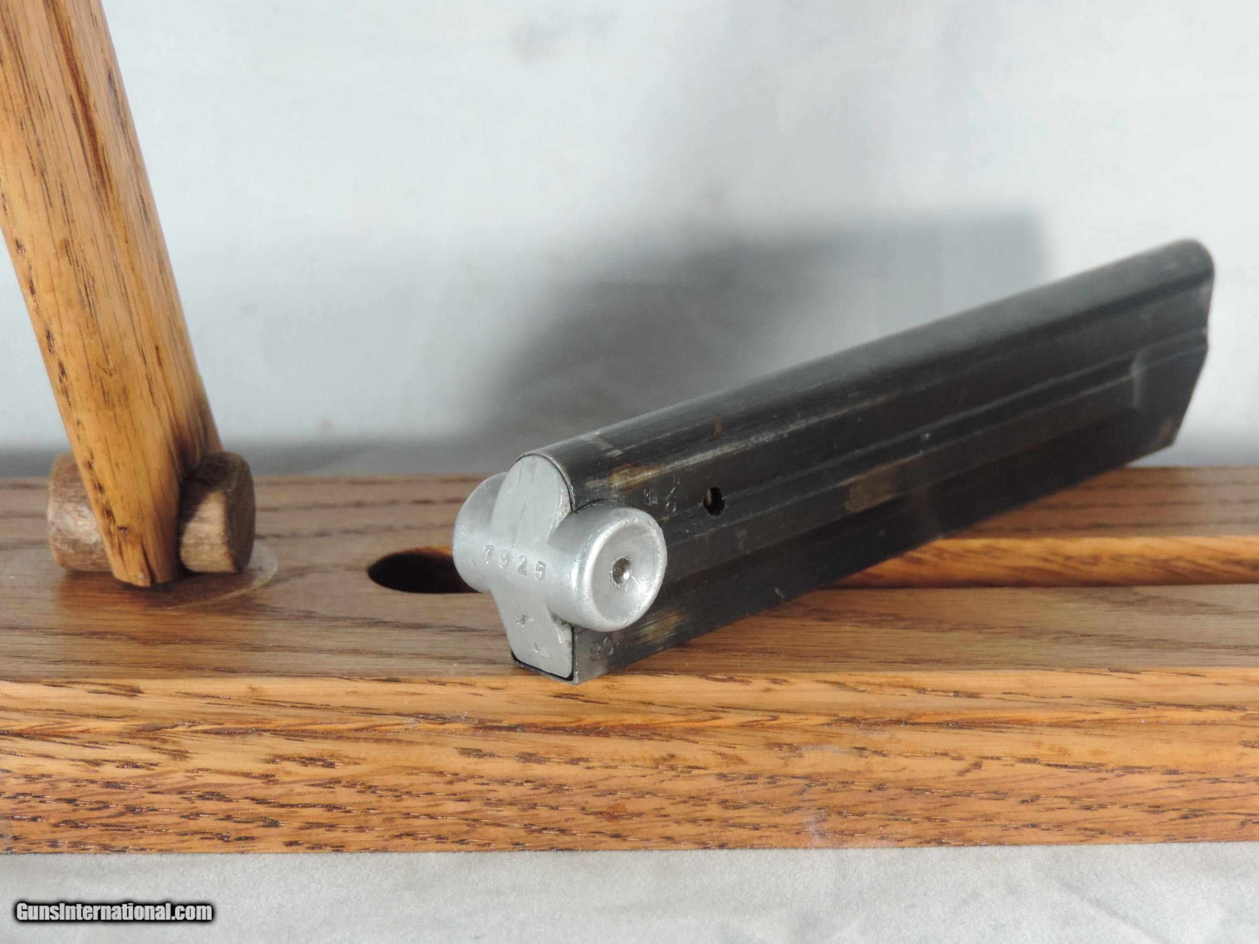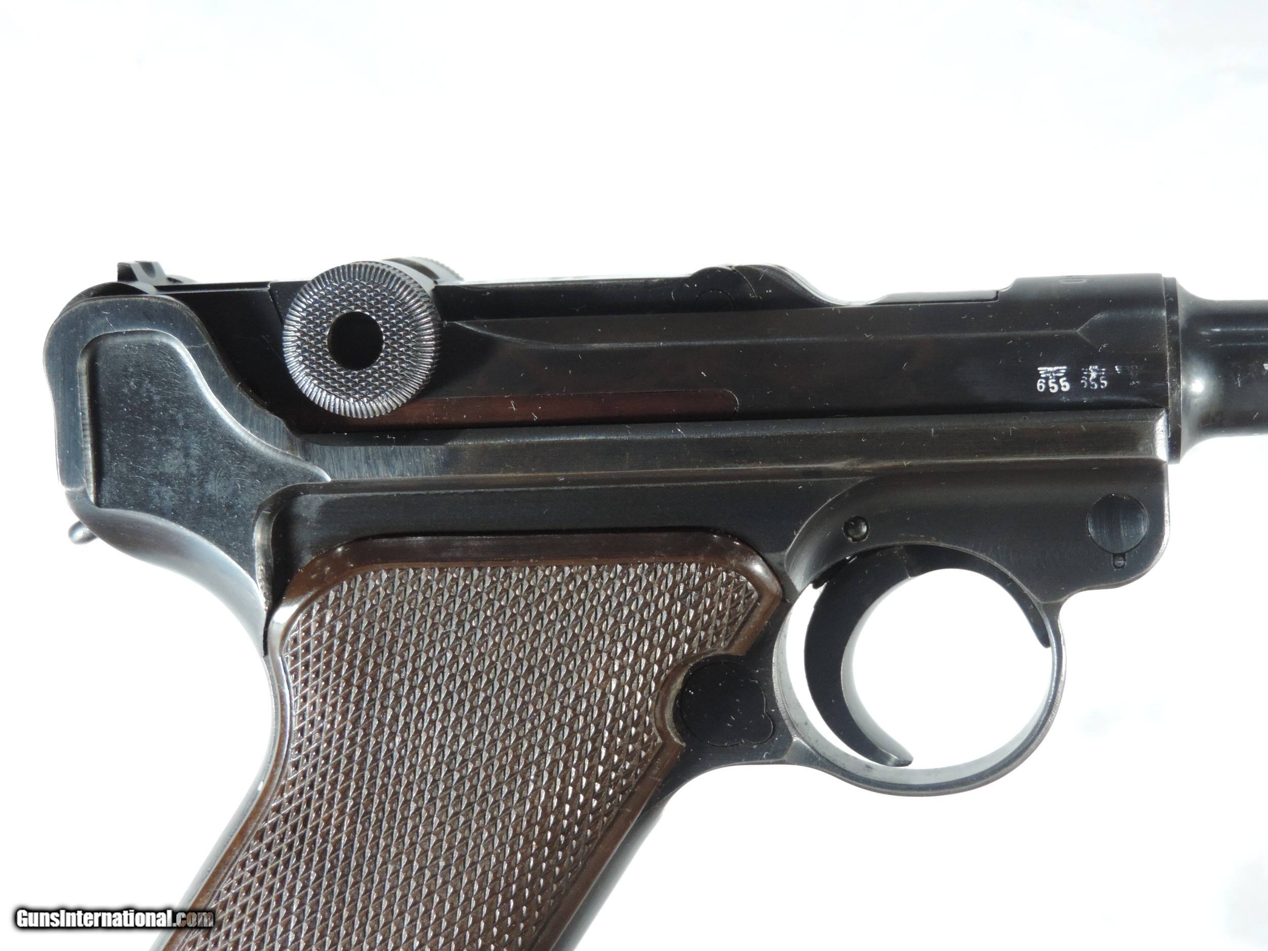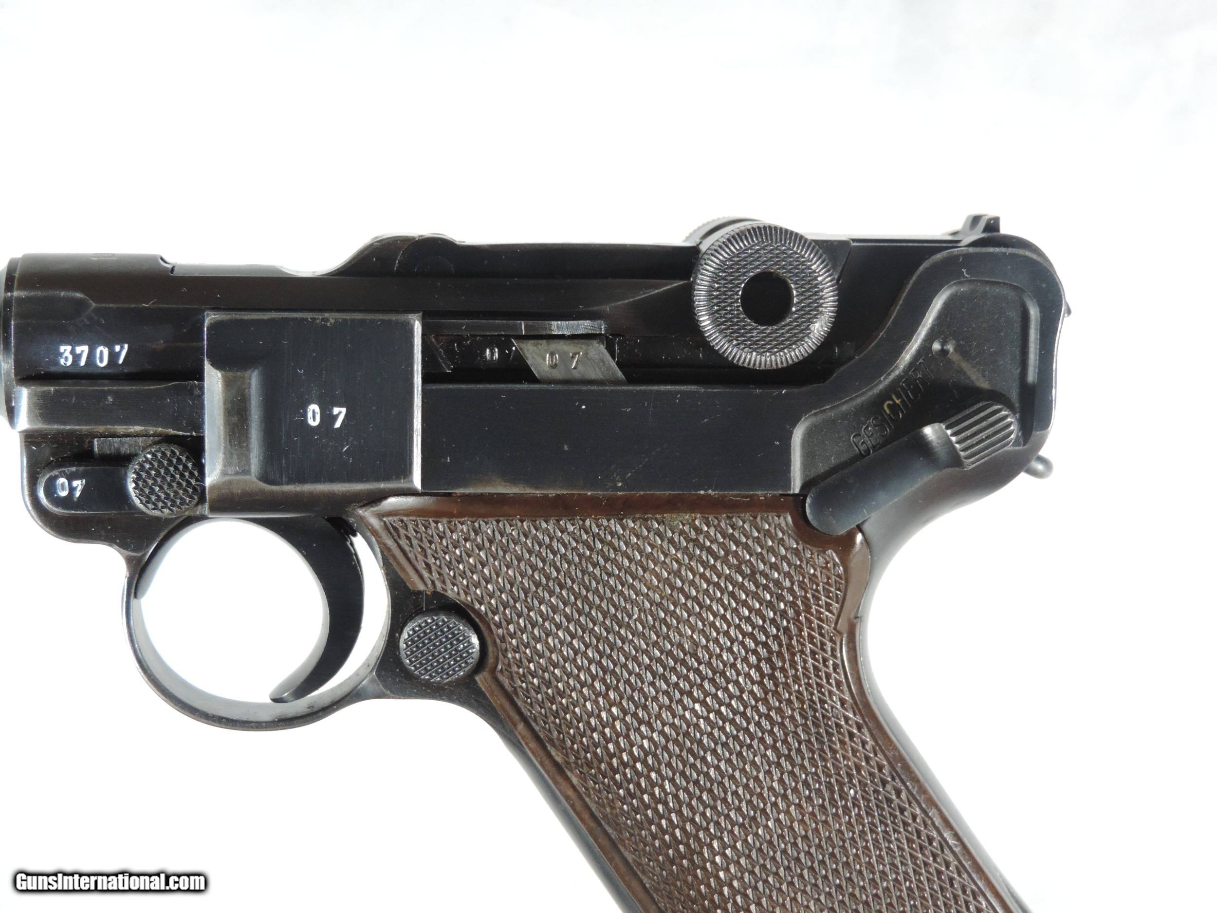 Description: AWESOME KREIGHOFF/MAUSER (P-08) LUGER RIG, 9MM # 3707g, 1940. THIS "TRUNK QUEEN" HAS THE SUPER RARE "KREIGHOFF" GRIPS AND IS IN AWESOME CONDITION. IN 1940 WHEN MAUSER RAN OUT OF WOOD GRIPS NAZI ORDINANCE ORDERED KRIEGHOFF TO SEND THEM 1500 SETS OF PLASTIC SETS OF GRIPS FOR REPLACEMENTS. IN ADDITION IT HAS RETAINED ABOUT 98+% OF THE ORIGINAL BLUE. THE LITTLE LOSS THERE IS, IS FROM SOME VERY MINOR SHARP EDGE SILVERING. THERE IS NO RUST OR SCRATCHES ANYWHERE AND THE GRIP STRAPS SHOW NO SIGN OF GRAYING. ALL NUMBERS MATCH AND IT HAS ALL THE PROPER EAGLE/655 AND EAGLE/SWASTIKA WAFFENAMTS.*** THE KREIGHOFF GRIPS AND GRIPSCREWS ARE PERFECT. THE BOLT FACE, SLIDE RAILS SHOW VERY LITTLE USE. THE BORE IS PRISTINE LIKE THE REST OF THE GUN. MIRROR BRIGHT WITH RAZOR SHARP RIFLING, NOT A BIT OF FROST ANYWHERE. THE RIG COMES WITH AN ORIGINAL BLACK LEATHER HOLSTER IN FINE CONDITION. THE BACK IS STAMPED DIO/42, EAGLE/WAA195, TWO PROPER NON MATCHING MAGAZINES. AND AN ORIGINAL P-08 TAKEDOWN TOOL. A GREAT FIND FOR A EVEN THE MOST CRITICAL COLLECTOR/INVESTOR. MODESTLY PRICED AT.........$4295...SHIPPED** **PURCHASE SATISFACTION GUARANTEED. ***ALL MARKINGS HAVE BEEN WHITE WAXED SO THE BUYER CAN CHECK THEIR AUTHENTICITY. LIGHTER FLUID REMOVES IT QUICKLY. WE WILL DO IT ON REQUEST. To purchase this firearm or if you want to request more information contact us at: Email ckguns[at]ymail[dot]com Phone 201-512-0002 Cell 201-575-6838 FAX 201-215-4759 We accept most major credit cards. Prices shown are Discounted 3% for Cash or Check. The buyer must be familiar with all the laws governing the purchase and the ownership of firearms in their own city and state. The Yankee Armorer, Inc is not responsible for any failure to comply with or observe these laws. The Yankee Armorer, Inc will only ship after full payment and receipt of all required documents. Shipping: Add $35.00 for handguns, $45.00 for long guns. New Jersey buyers are subject to a 7% sales tax. The Yankee Armorer, Inc offers a 3 day inspection period with full refund upon return of intact firearm and in the original condition. The Yankee Armorer, Inc offers a no interest lay away program - 25% down; 25% in 30 days; 25% in 60 days; and full payment in 90 days. Any violation of this policy is subject to restocking and forfeiture of all payments. Any variation from this policy must be agreed to in advance. Unshipped Cancelled sales are subject to a 20% restocking fee. Be advised that all firearms sold by The Yankee Armorer, Inc. or the Gun Exchange, LLC (SELLER) are sold as collector’s items. They have not been fired or tested for safety and must be examined by a license gunsmith prior to use. By purchasing any item from the (SELLER), you are agreeing to hold the (SELLER) free from any damages or lawsuits of any nature. Any item left for transfer or storage will be charged to $25.00 per month, per item from the day of its receipt. Any variation from this policy must be agreed to in advance. Store hours 10:00 am to 5:00 pm Tuesday -Saturday. It's always best to call for appointment. Store 201-512-0002, cell 201-575-6838. SOLD Handgun Caliber: 9x19mm Parabellum (9mm Luger, 9x19mm NATO) |
