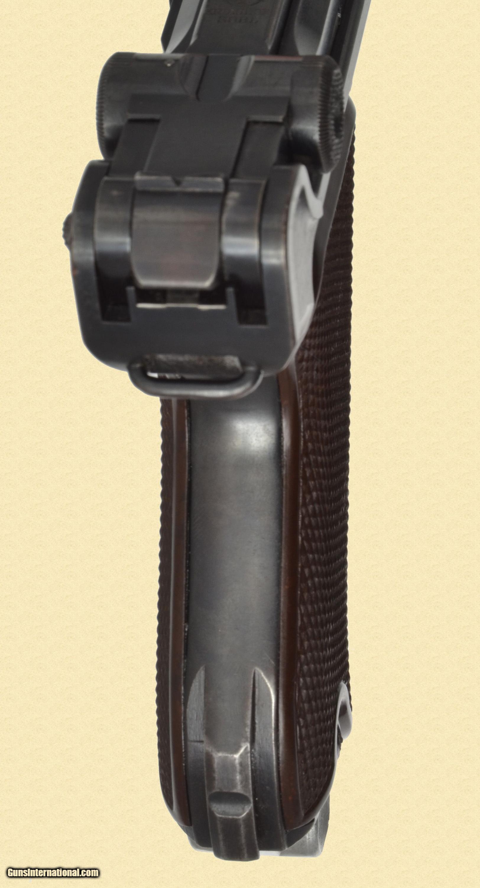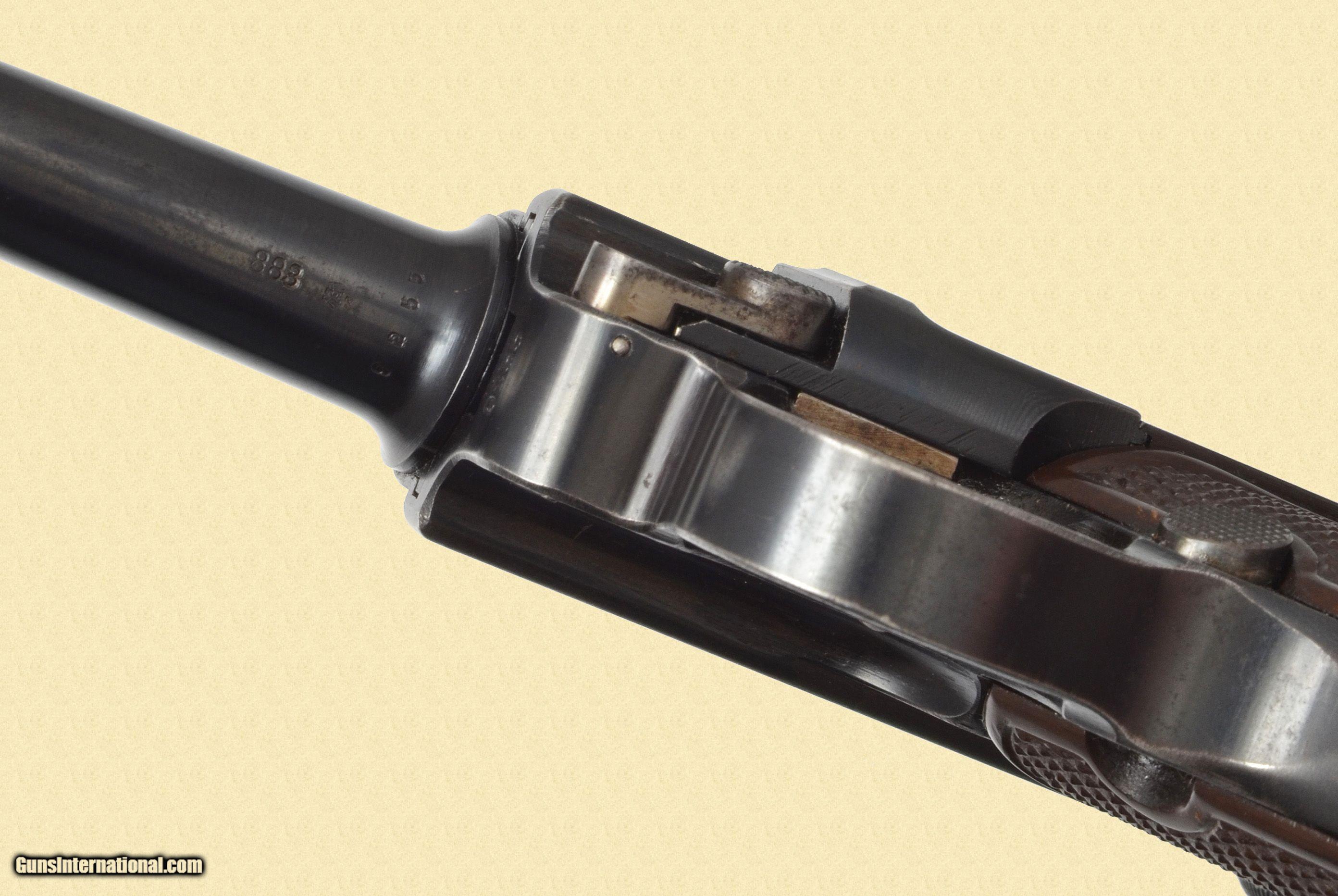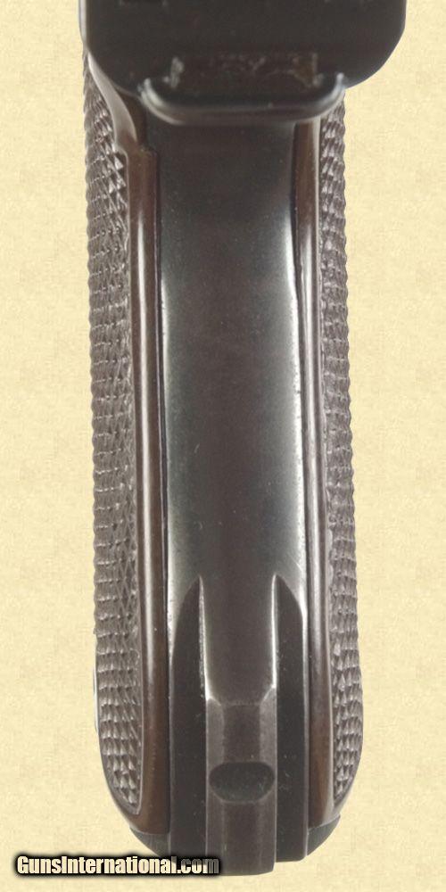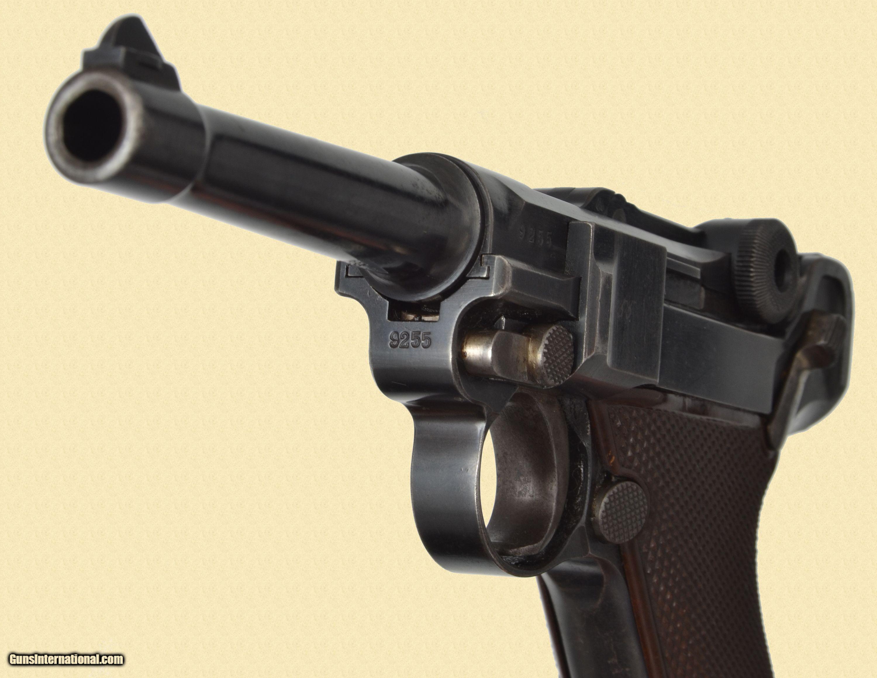 Description: 9mm Luger; 96% blue, 70% straw, very good bore, very good grips, 4'' barrel, Original blue finish, strawed small parts and checkered brown plastic grips. Matching except the magazine which is numbered 8739 with a Krieghoff eagle/2 proof. The sideplate, toggle and extractor have the matching number lightly electro-penciled on the exterior, done by unit level armorers, with the original stamped matching numbers internally. The small parts have the Krieghoff eagle/2 proof. The top of the toggle is stamped with the Krieghoff H anchor K logo over KRIEGHOFF/SUHL and on top of the chamber with the date 1937. The right side of the receiver is stamped with two eagle/2 proofs flanking the acceptance mark. Other acceptance marks appear on the right side of the barrel and left side of the breechbolt. The metal finish shows light sharp edge wear and fairly light high point holstering wear. The grips show light handling. Mechanically fine, the bore has been greased and should clean to at least very good condition. C&R/FFL FEDERAL FIREARMS LICENSE (FFL): is required on all shipments of modern guns. We must wait for a copy from your dealer before we can ship to them. We will also ship C&R eligible firearms to Curio and Relic (C&R) license holders. We accept your signed, legible FFL and C&R licenses via fax at 309/ 342-5730 (always on), email at FFLsimpsonltd or through the mail at Simpson Ltd; 140 S Seminary St; Galesburg, IL 61401. Pre-1898 firearms and non-firearms items are exempt from licensing requirements. All items shipped to an Illinois address will be charged 8.75% sales tax. NOTE: Because of recent shipping restrictions and charges placed on us by UPS and FedEx (handguns must ship via next day or 2nd day air and they have added a $10 surcharge for parcels over 48”. Our return policy lasts a maximum of 3 days from the time you receive your item. If 3 days have passed since you received your purchase, and we have not been contacted by you, unfortunately, we can’t offer you a refund or exchange. If you are not happy with your purchase, please contact us by phone and/or email to arrange for a return. Items must be shipped back to us to arrive with 7 days of notification of return. SOLD Curio/Relic: Yes Serial Number: 9255 |