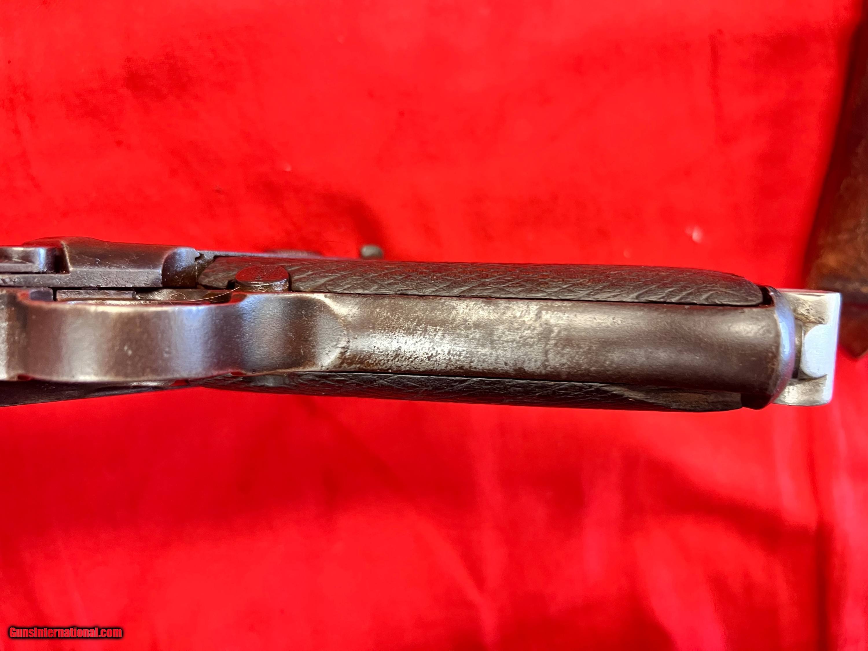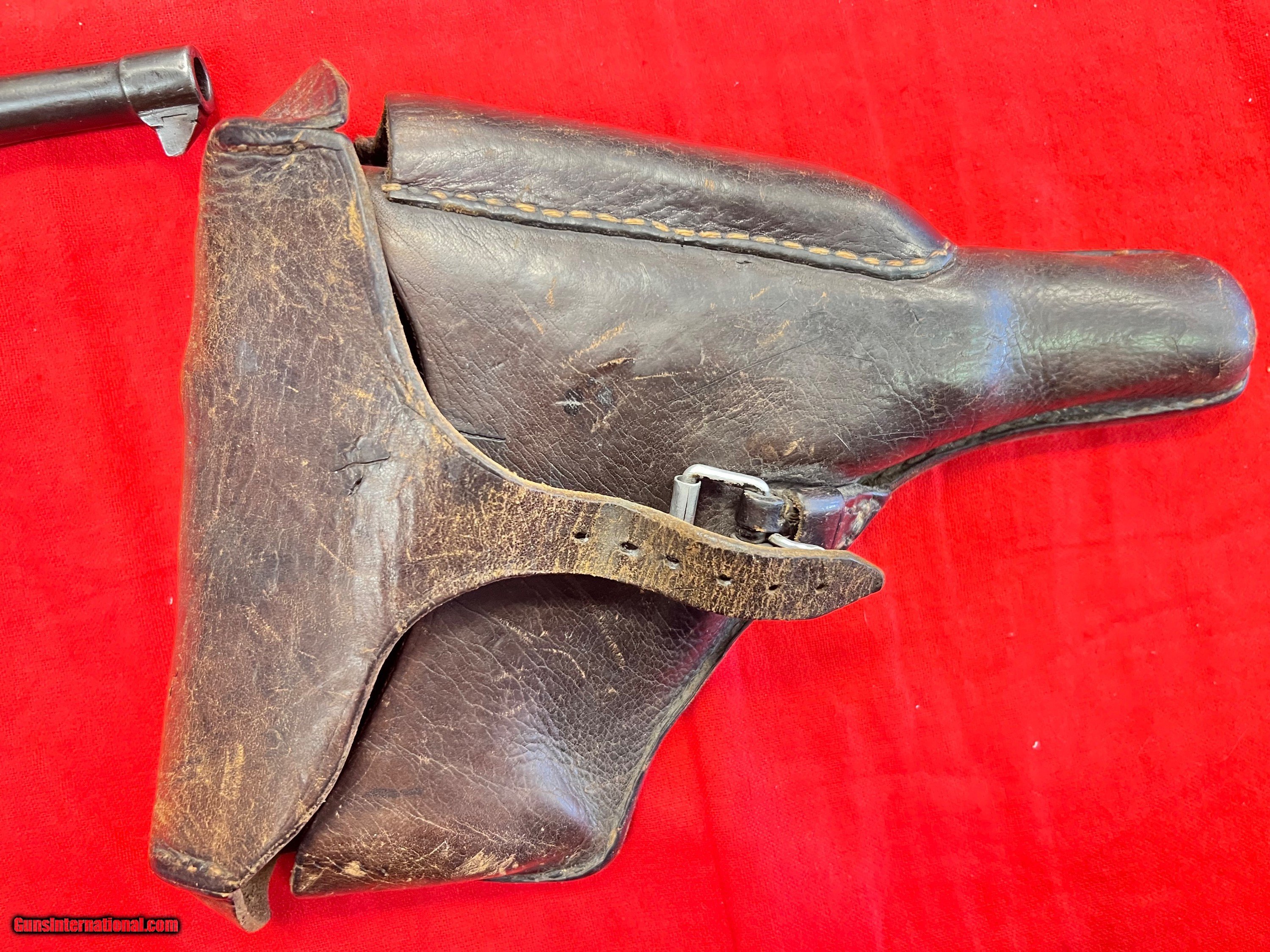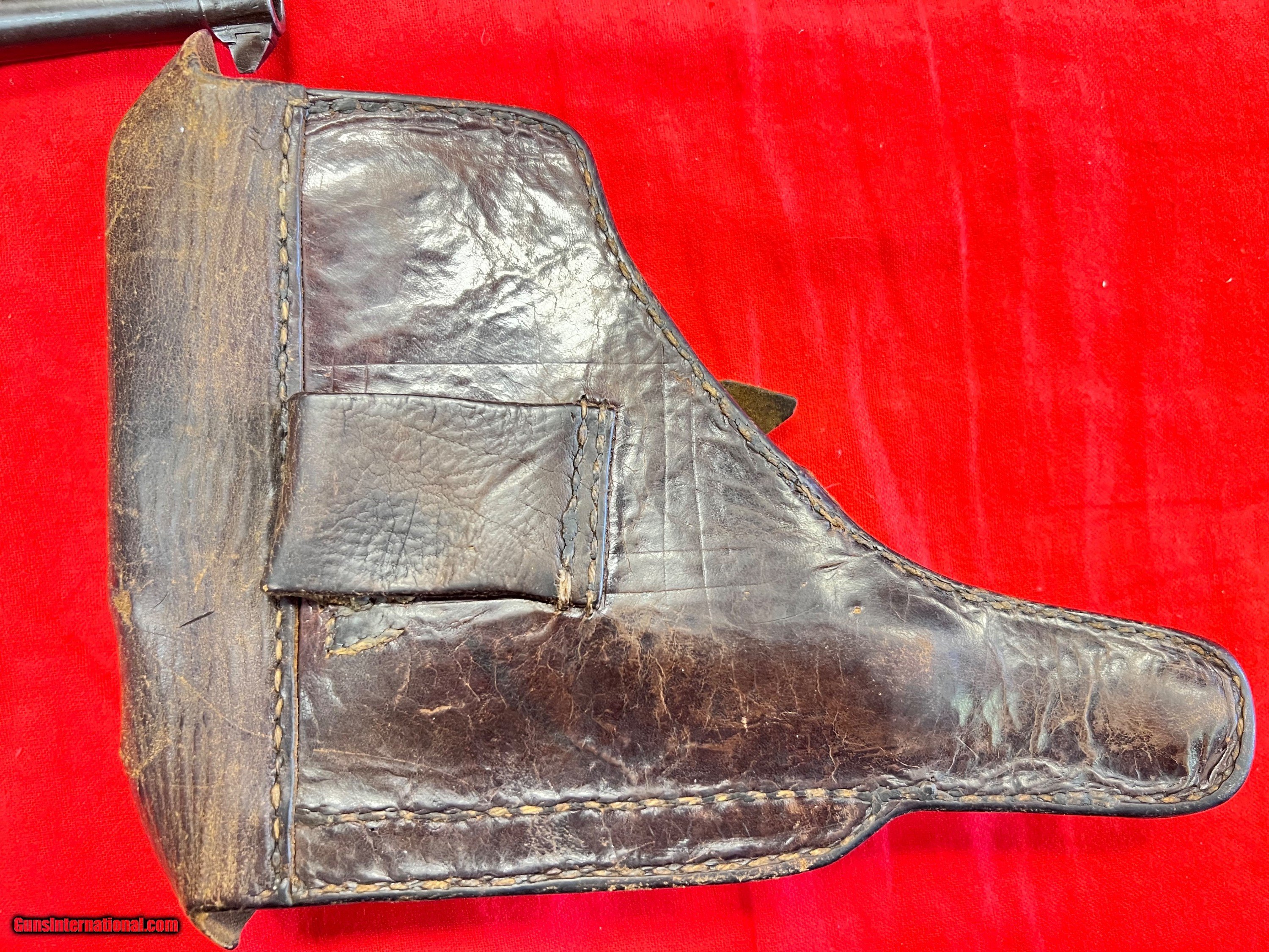 Description: Basically poor condition finish gone all patina, mismatch, bore is nearly smooth bore not pittted and rifling is still visible, it will fire and function. With holster in similar condition. But still a Krieghoff. Barrel extension is fine, nice tuning fork SOLD |