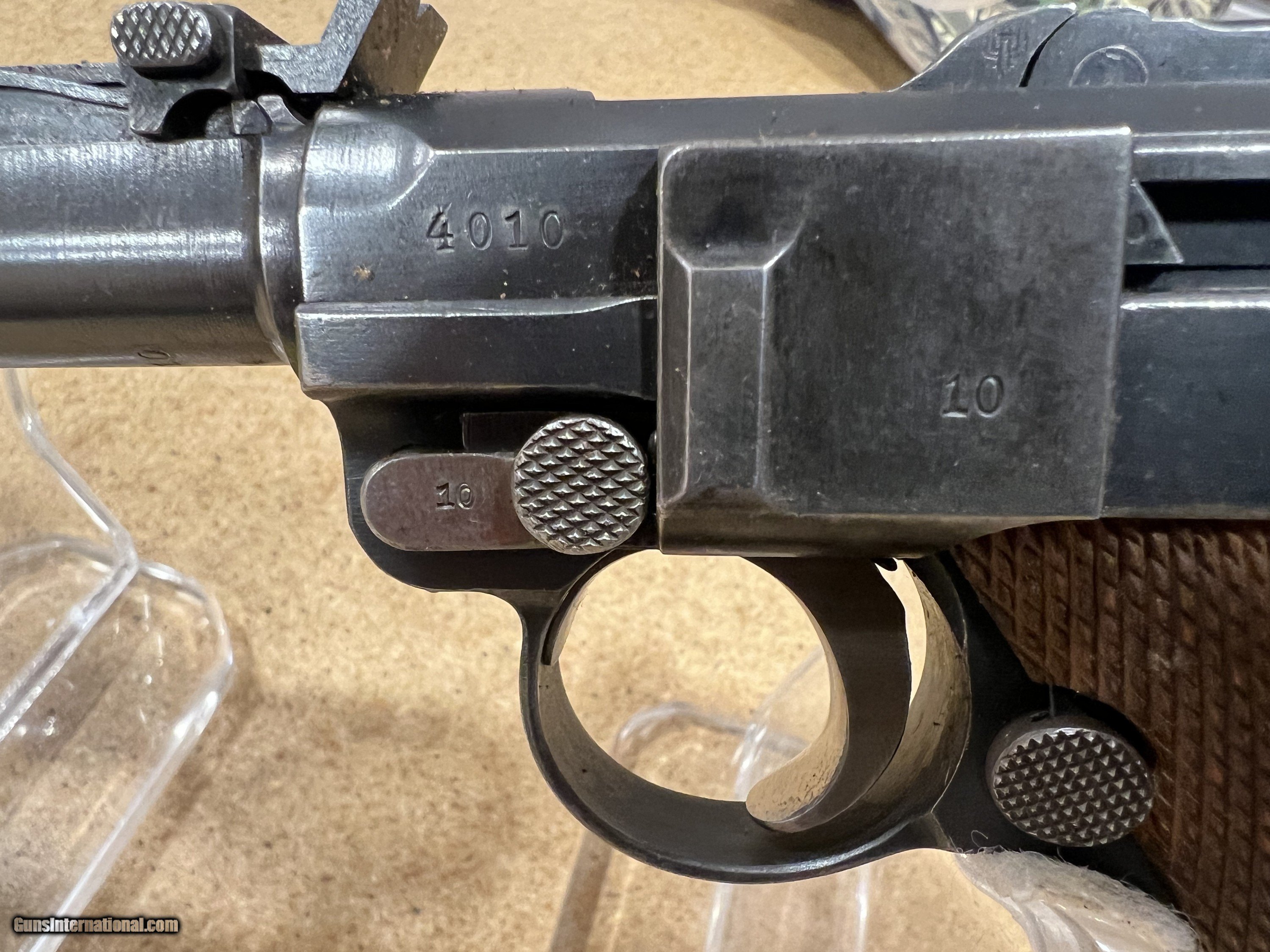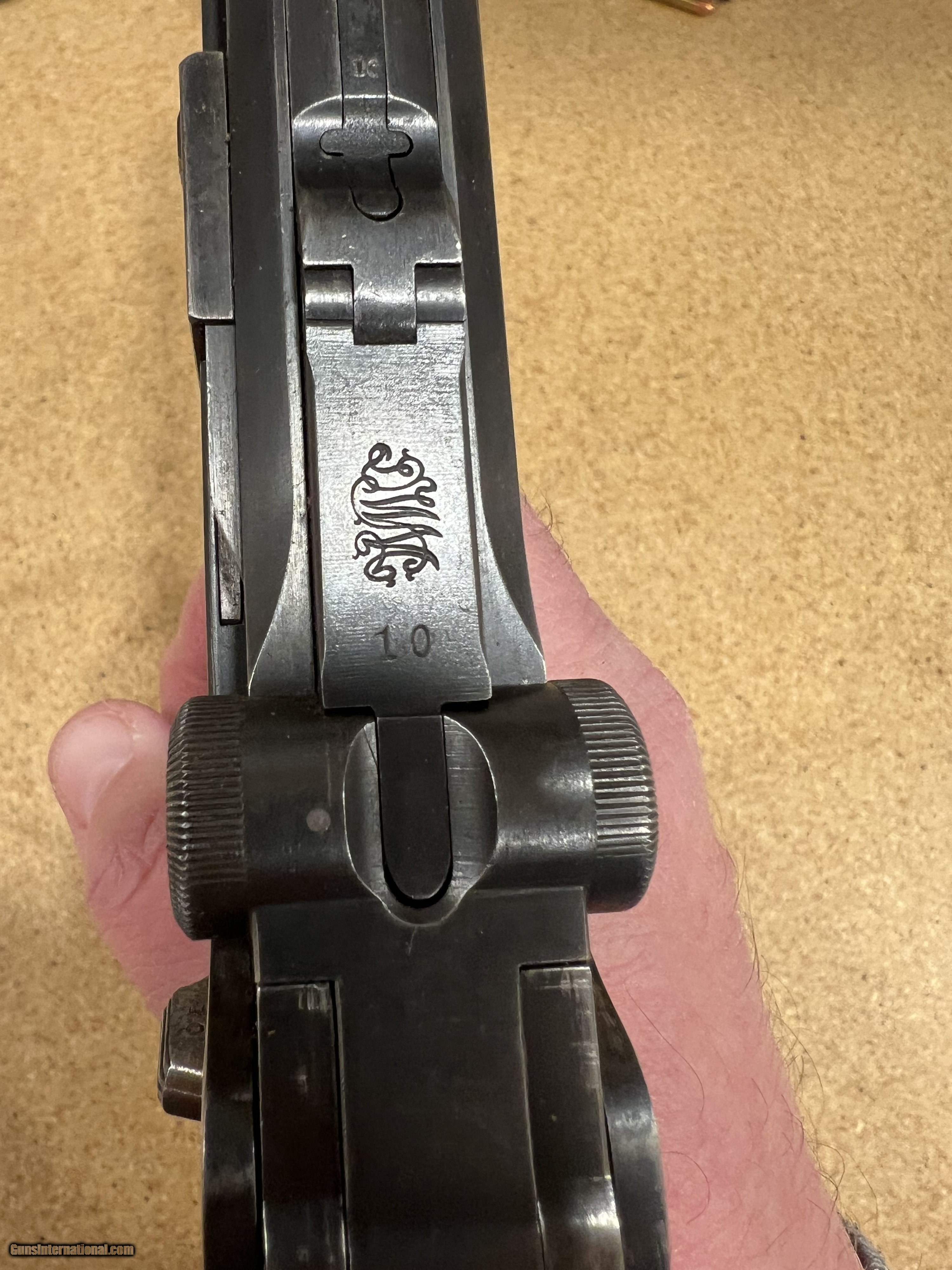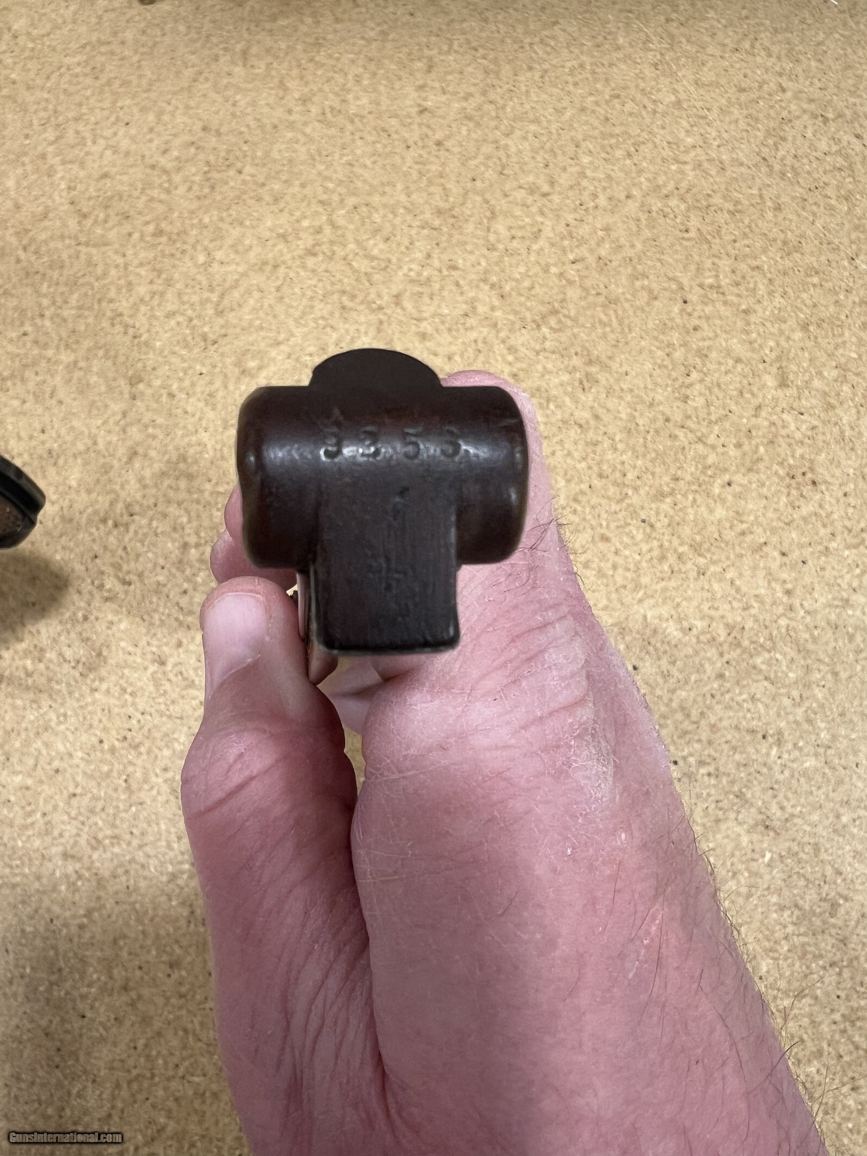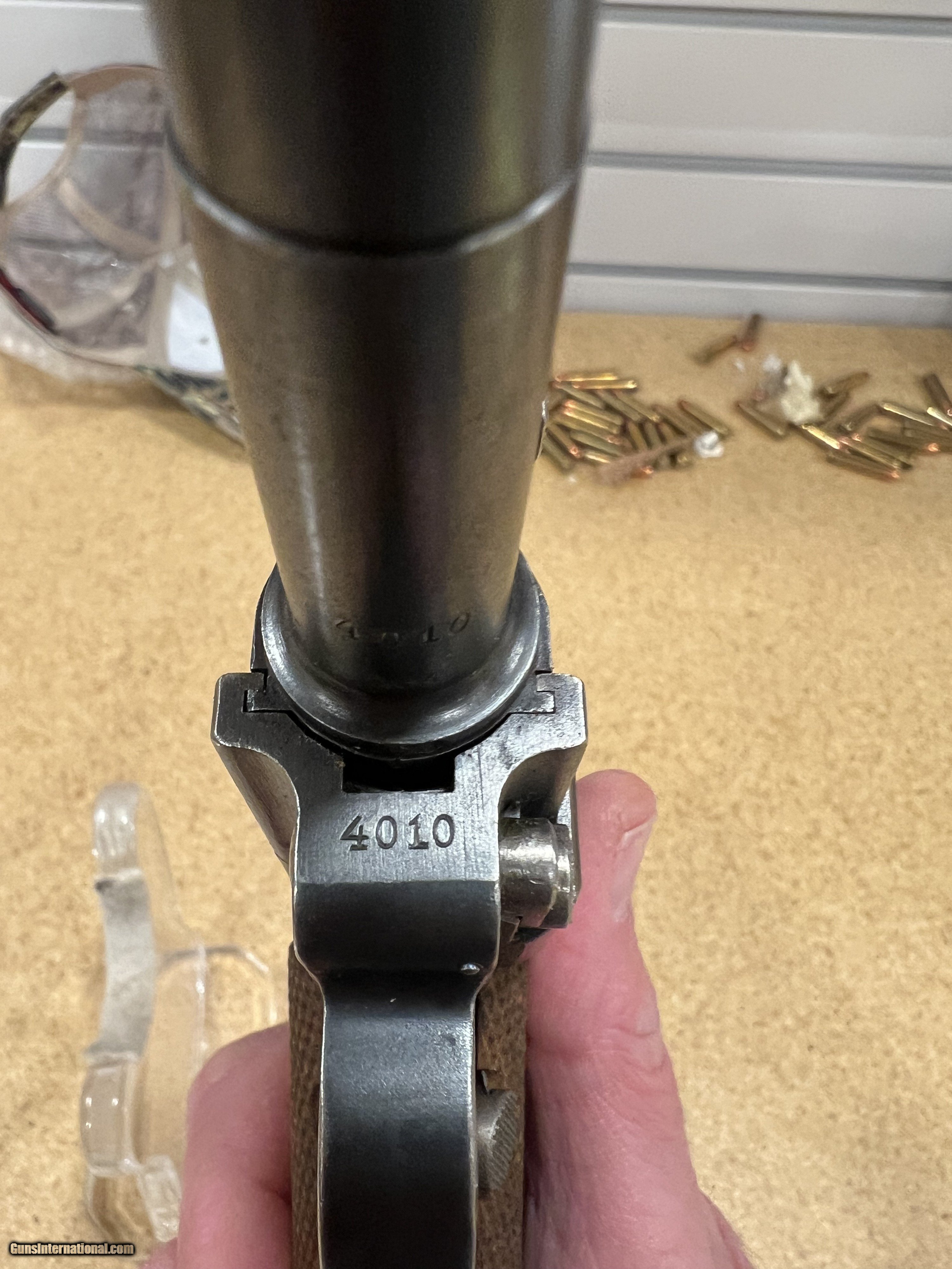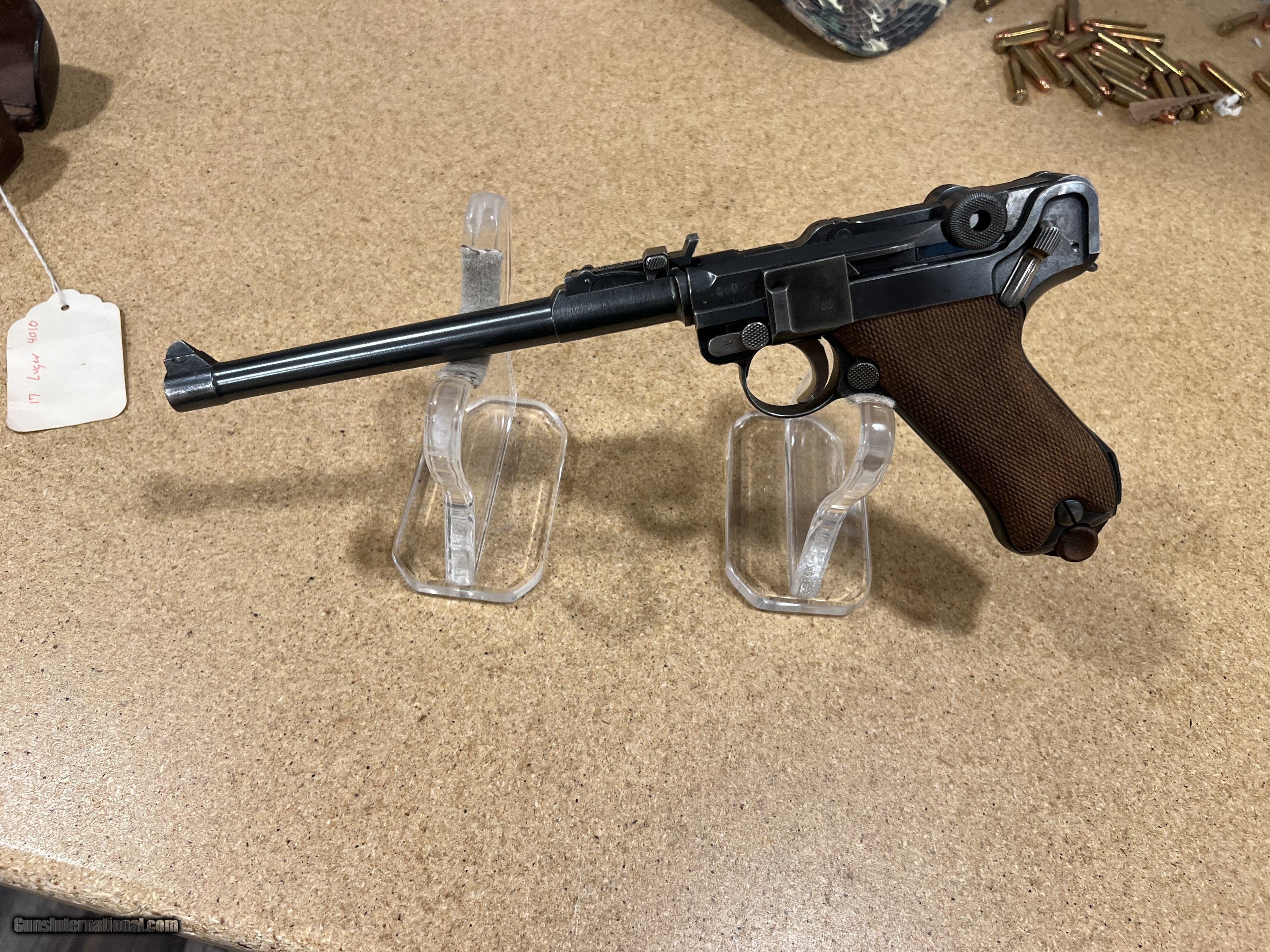 Description: Here's a nice Luger 1918 DWM Artillery 9mm, exc bore, 8" barrel, tangent rear sight, checkered wood grips, all the numbers match except for the magazine, it does have a wooden bottom magazine, shows some wear. $75.00 UPS shipping 2.99% credit card fee PA residents add 6% sales tax. Handgun Caliber: 9x19mm Parabellum (9mm Luger, 9x19mm NATO) Price: $3,295.00 Contact Seller |