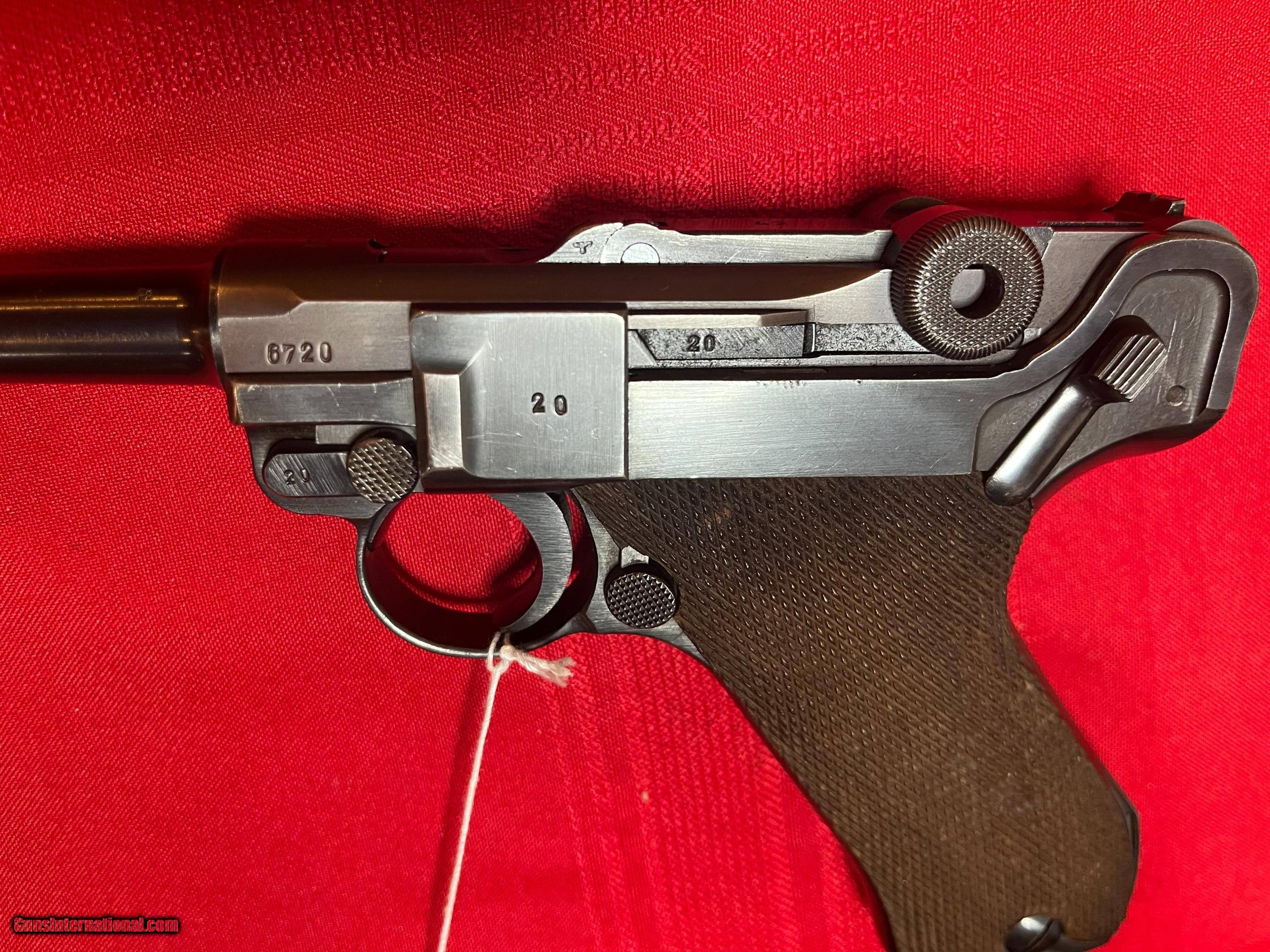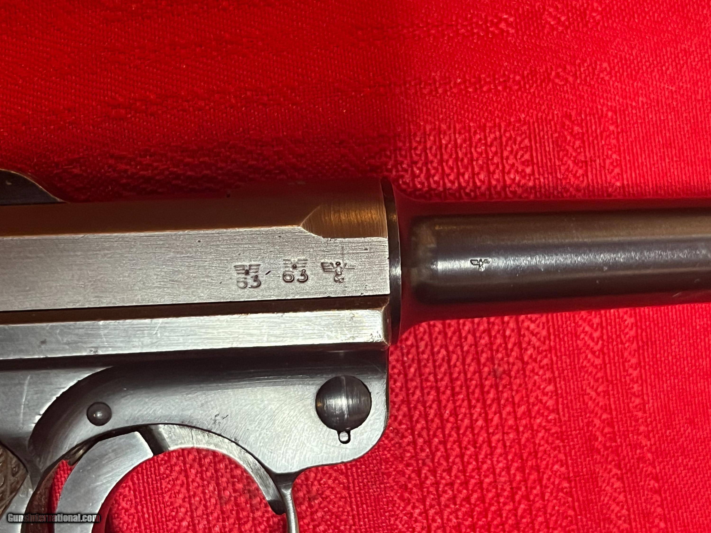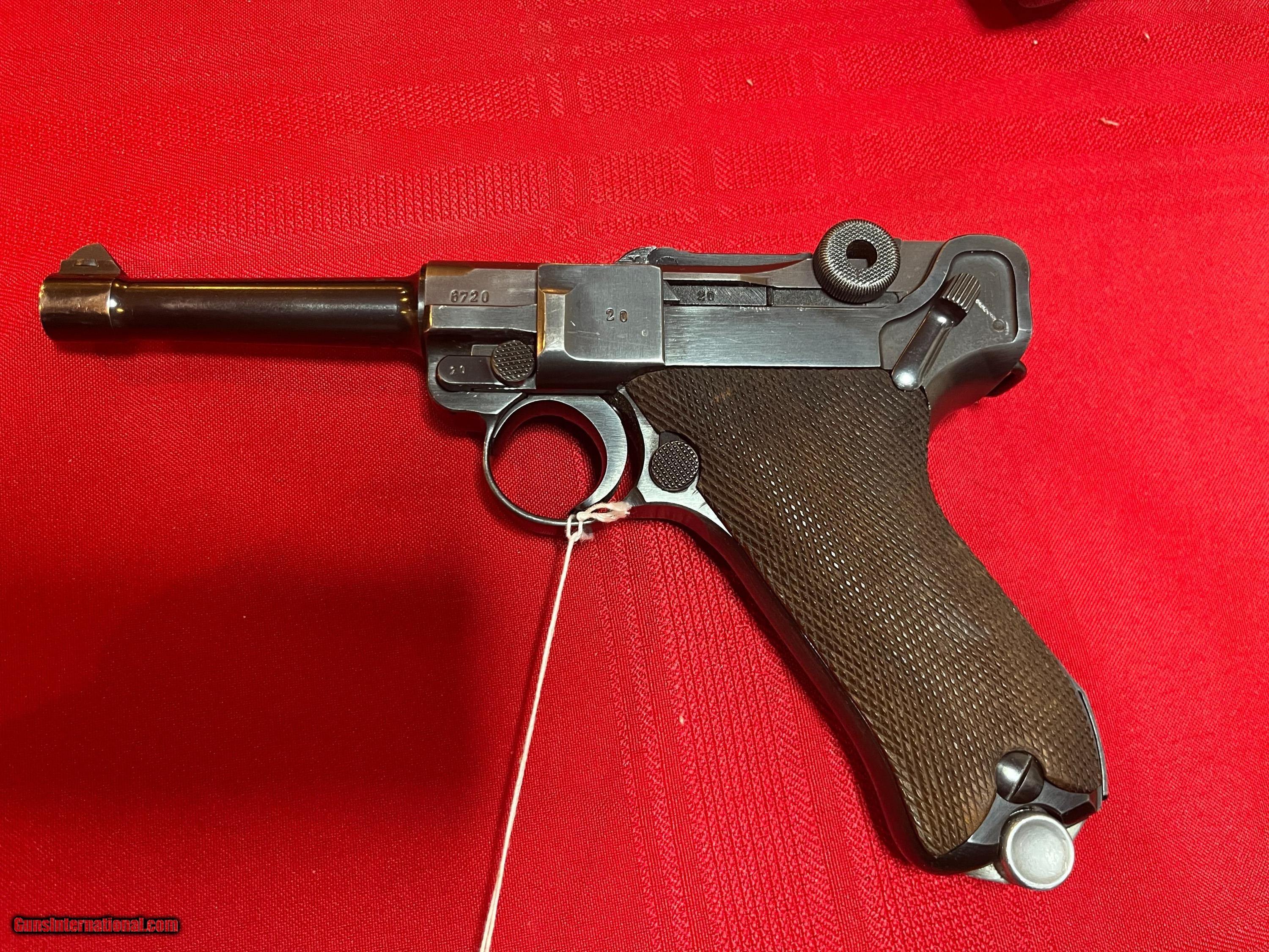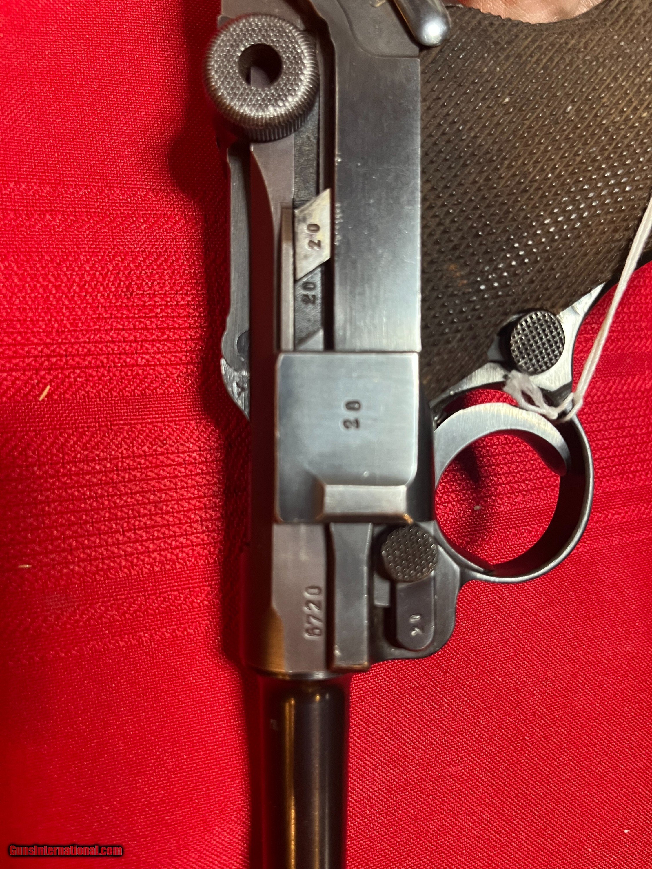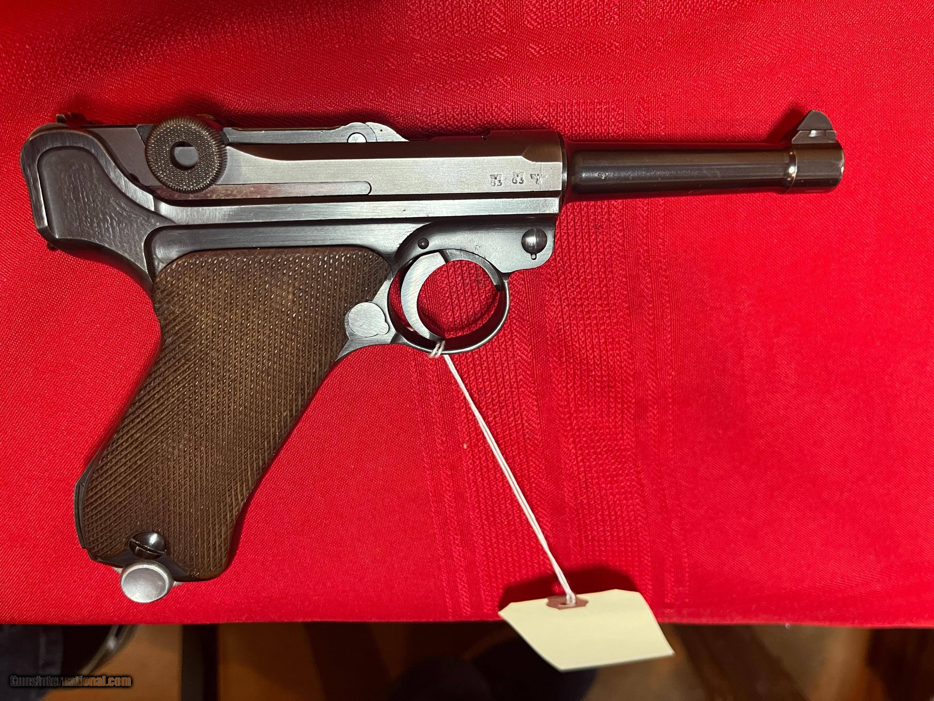 Description: 1939 Luger. Serial 6720 D. Barrel and frame so marked. Bore is nice. Grips in excellent shape. Non-matching magazine. FREE SHIPPING Curio/Relic: Yes Handgun Caliber: 9x19mm Parabellum (9mm Luger, 9x19mm NATO) Price: $2,350.00 Buy Now Contact Seller |