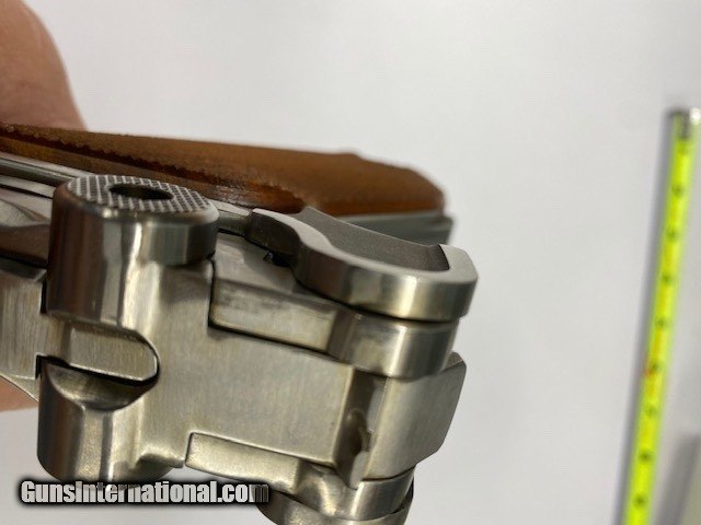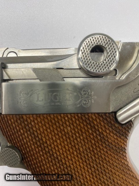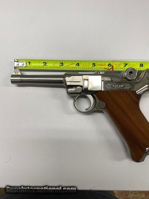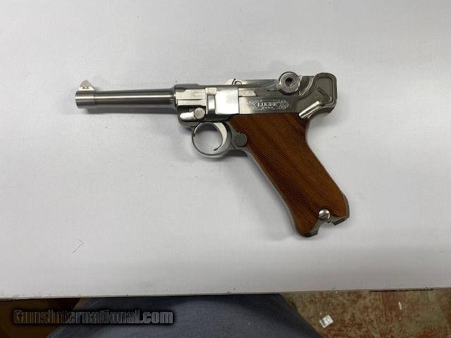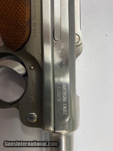 Description: In excellent Condition Luger American Eagle 9mm imported by stoeger stainless finish in great shape. Slight wear marks from previous owner racking the slide. The gun comes with 3 mags. Please reference photos for condition. It is the buyers responsibility to know their state and local laws as it pertains to firearms purchases SOLD Handgun Caliber: 9x19mm Parabellum (9mm Luger, 9x19mm NATO) Manufacturer: Luger Model: American Eagle Barrel Length: 4 inch Bore: bright Chambers: bright Condition: Excellent Metal Condition: excellent Wood Condition: excellent Bore Condition: bright Action: single |