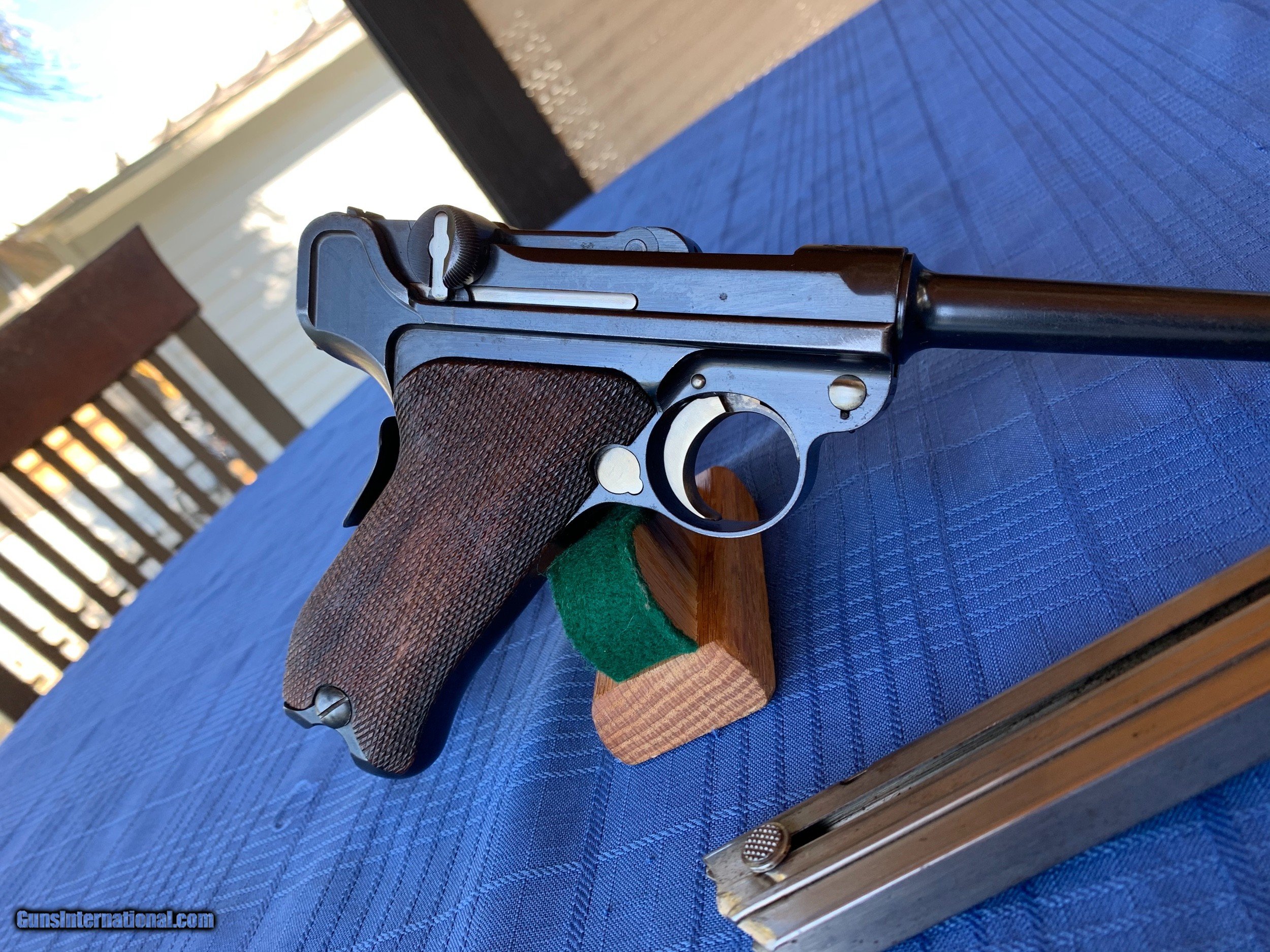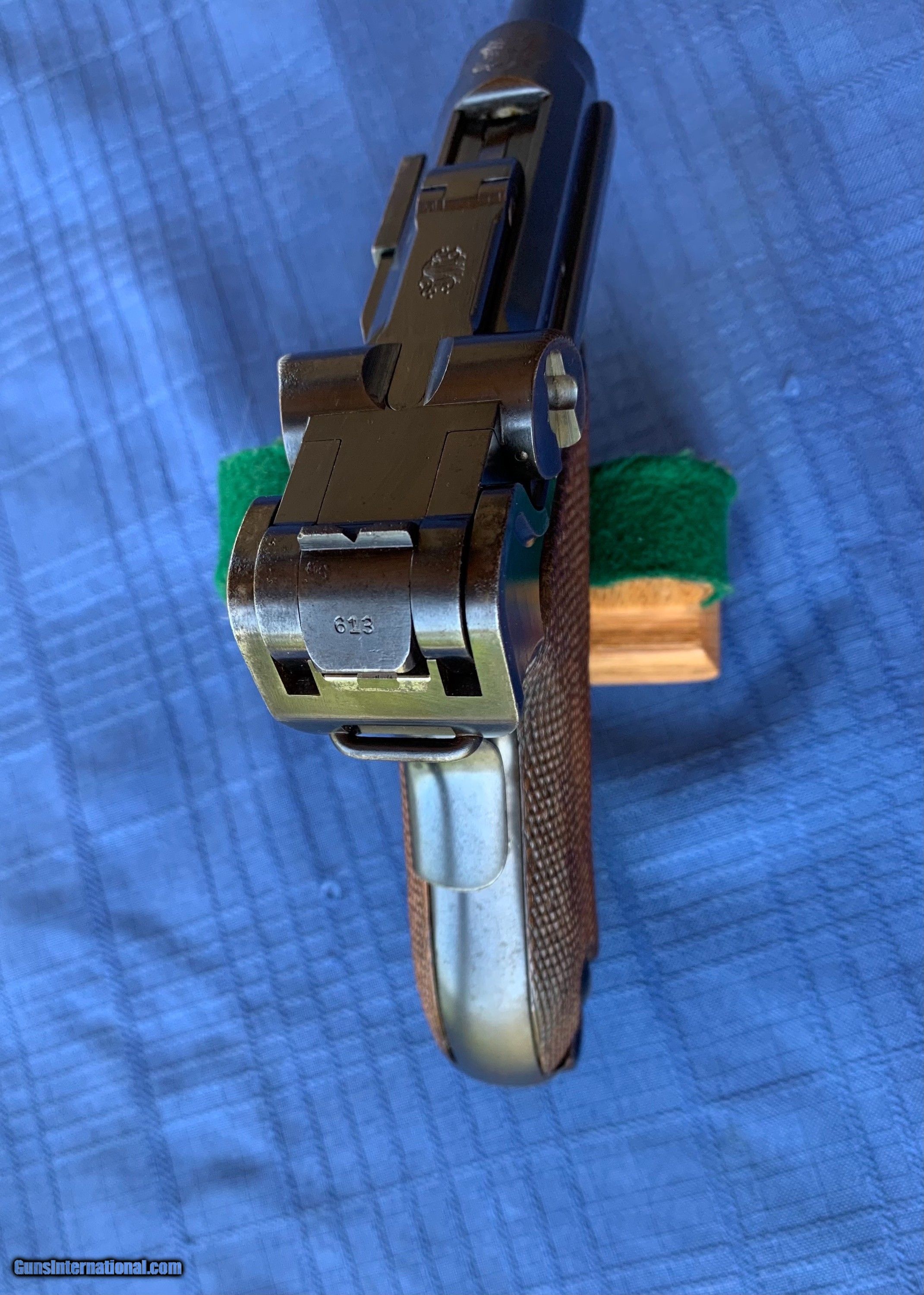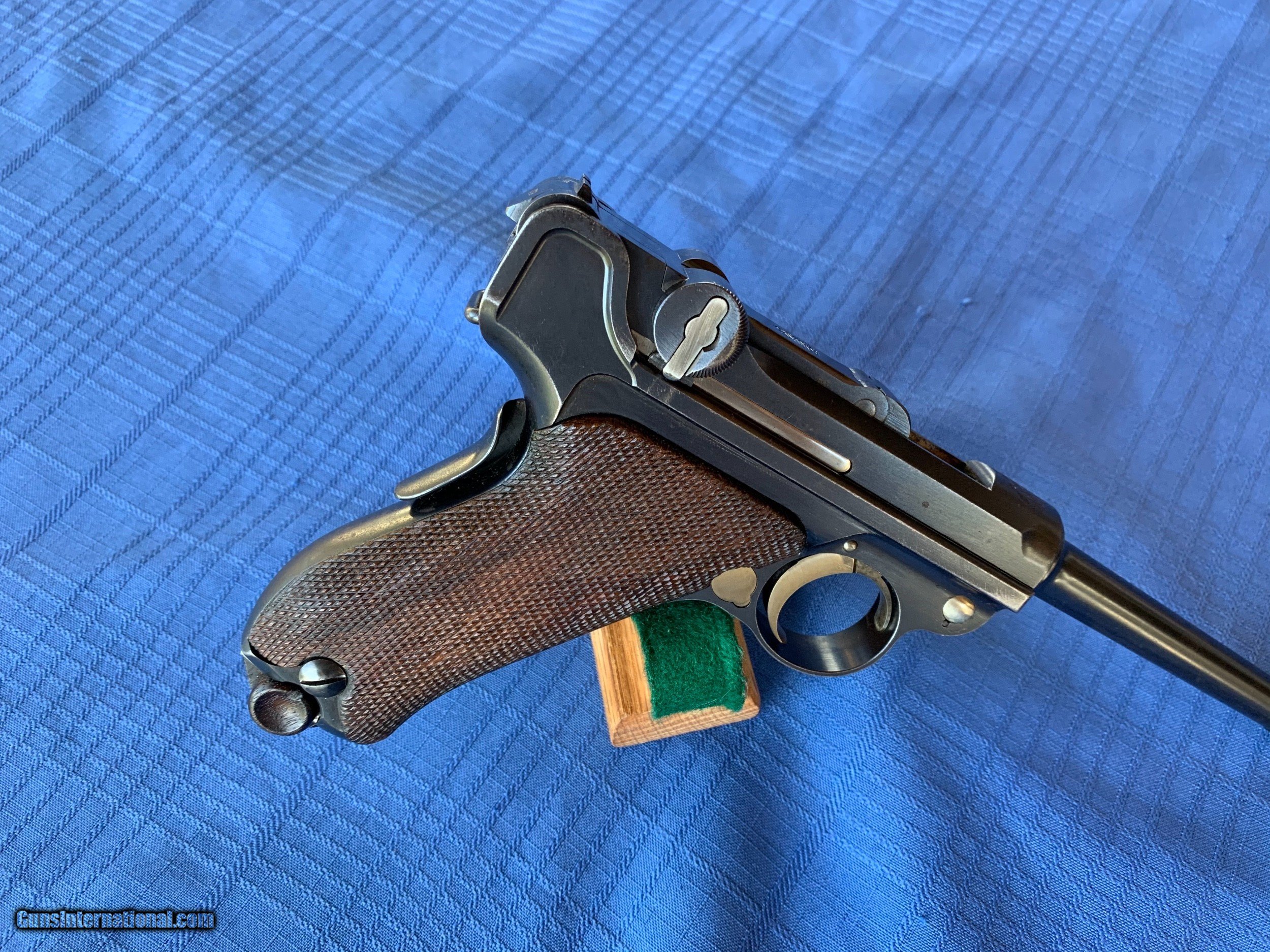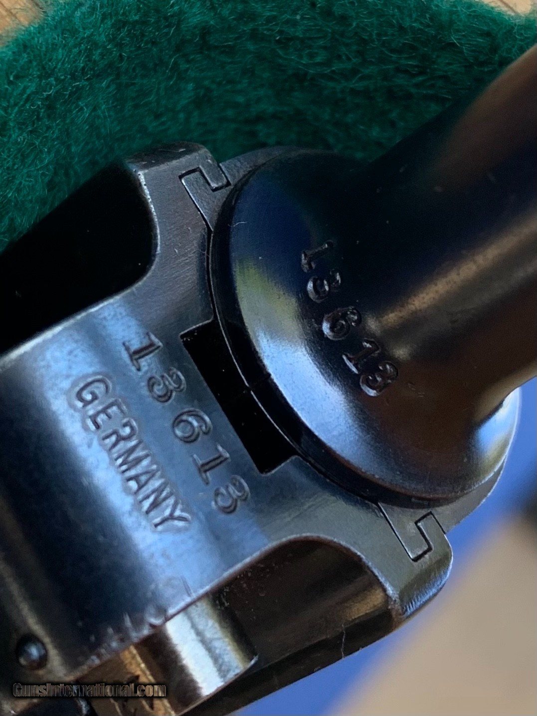 Description: WW1 Luger American Eagle! Many of these early Eagles where shipped to the Army and put into service and used in WW1 . Serial number 13613. All number matching 100 percent correct and original . Condition is Excellent Plus! Bore and mechanics are Excellent Plus Condition. . Gun has all of its original finish still remaining with minor edge wear . Correct Mag . Text Book Original gun ! Please look up the history on these Early American Eagles . These guns went thru the Teddy Roosevelt Campaign ! German made gun used for a U.S . Military Campaign! Super Cool Gun . Please review my photos and email me with any questions ? 3 day inspection as allways. Thank you for looking Little Jo SOLD Curio/Relic: Yes Manufacturer: Luger Model: American Eagle Serial Number: 13613 |