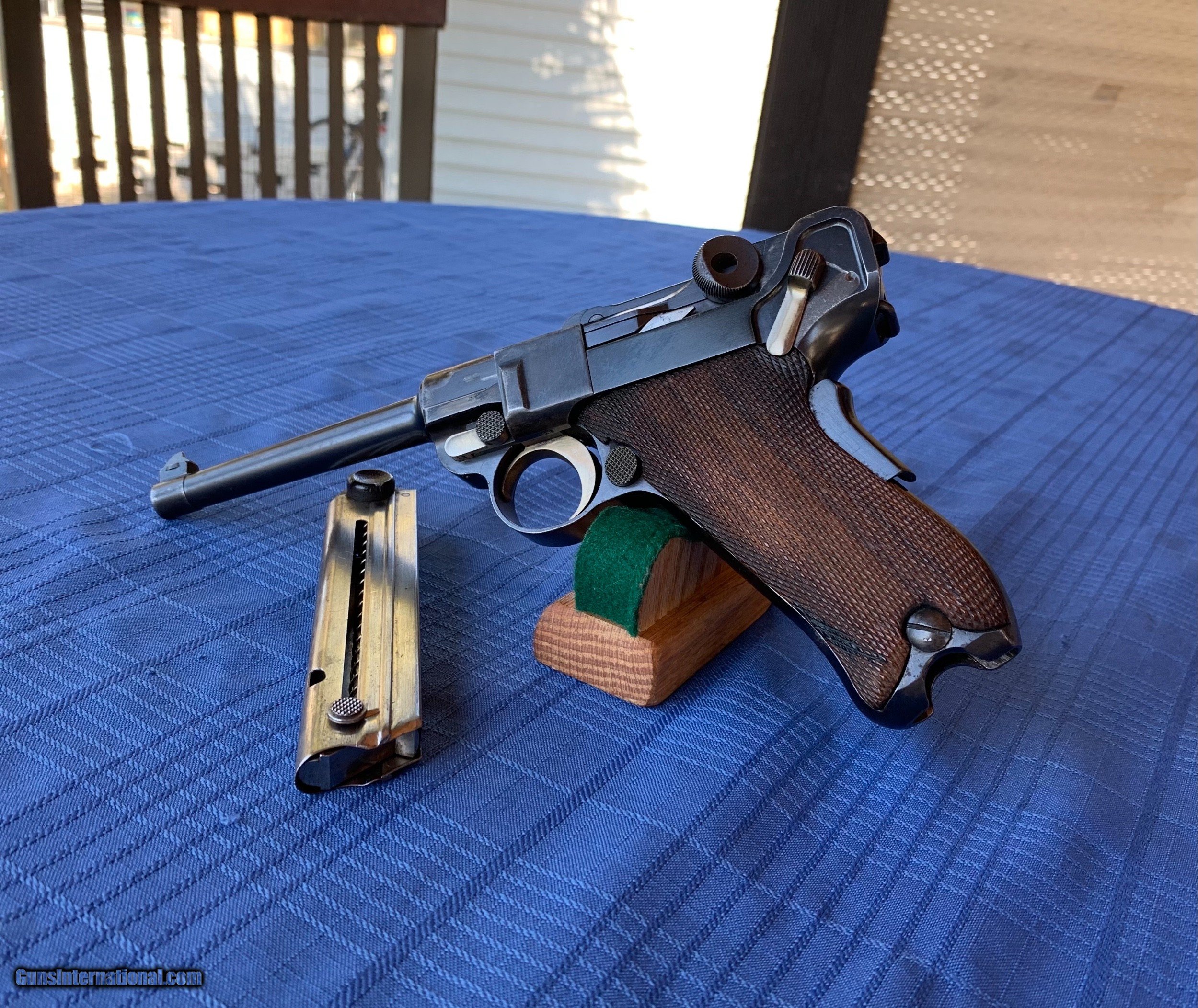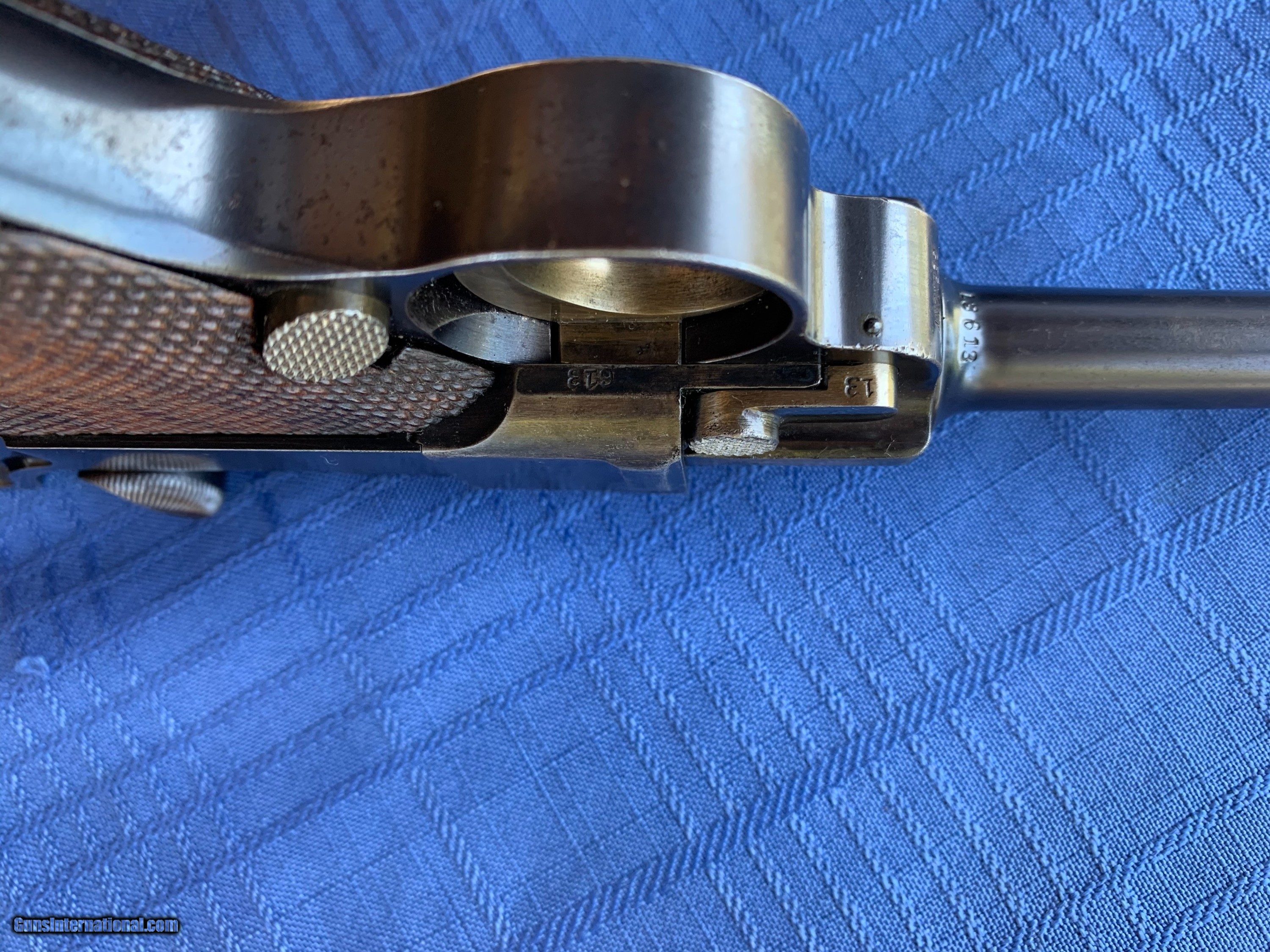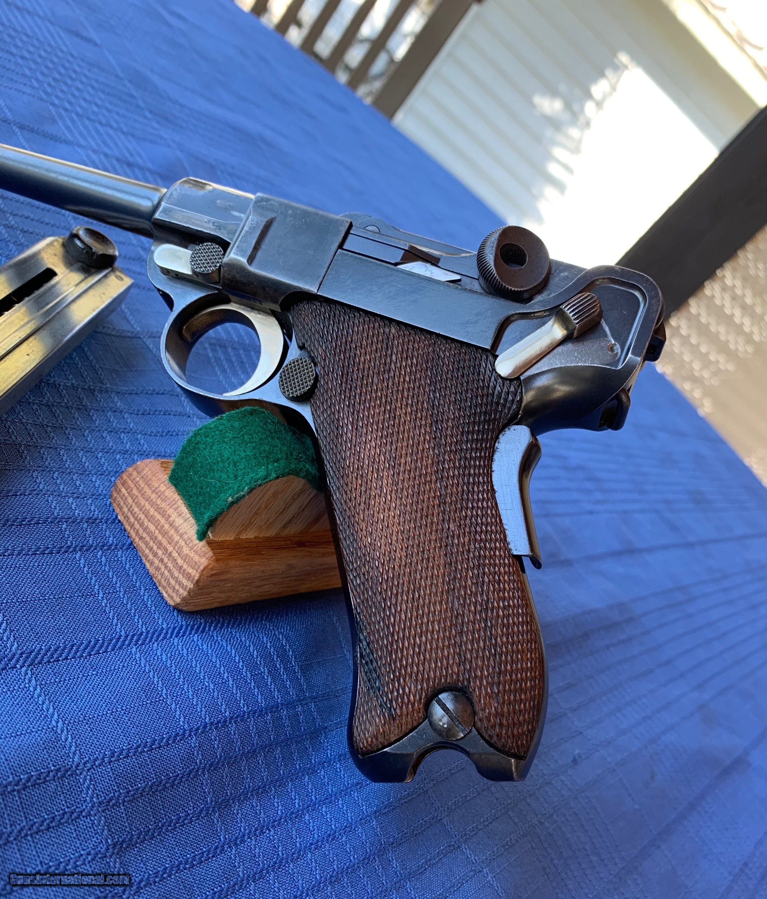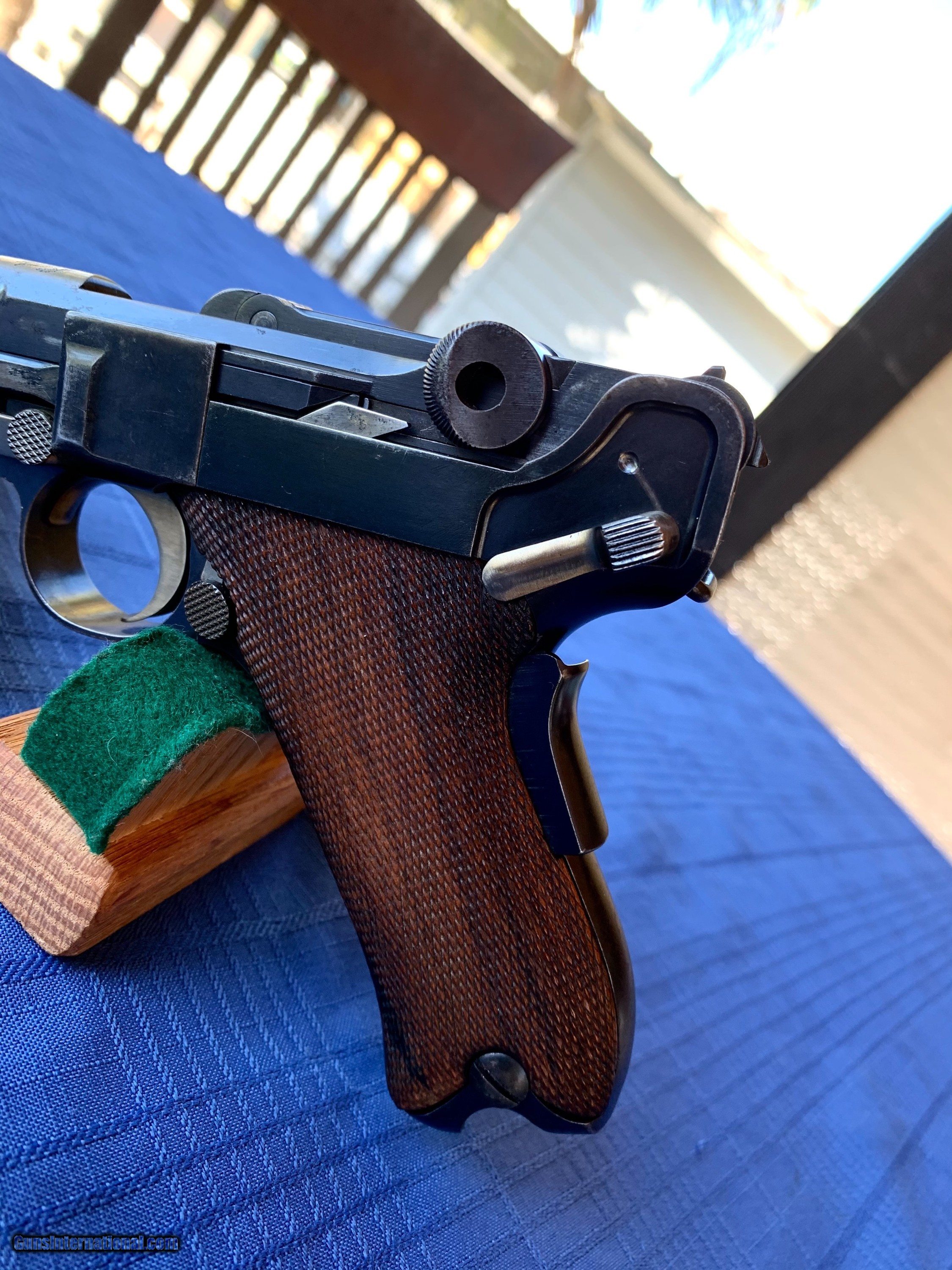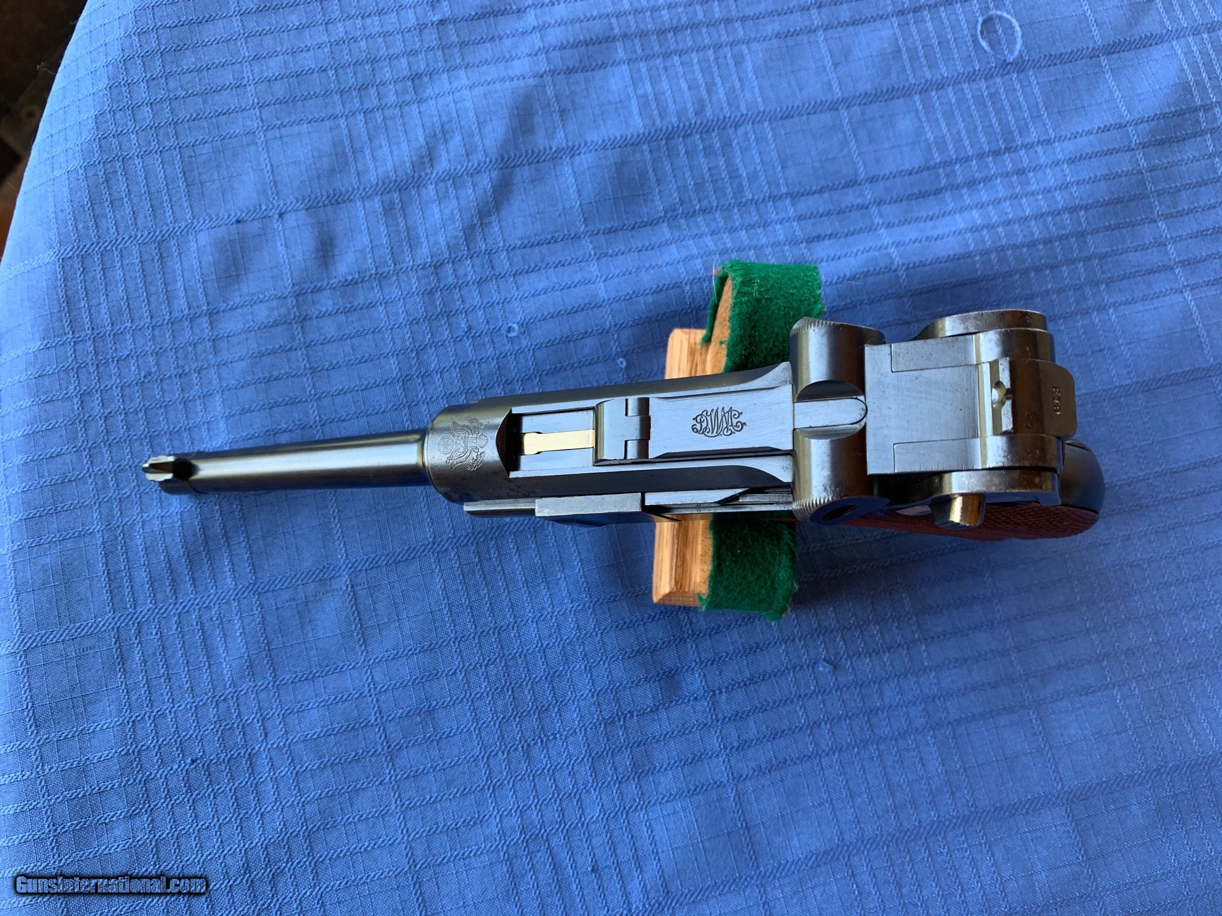 Description: WW1 Luger American Eagle! Many of these early Eagles where shipped to the Army and put into service and used in WW1 . Serial number 13613. All number matching 100 percent correct and original . Condition is Excellent Plus! Bore and mechanics are Excellent Plus Condition. . Gun has all of its original finish still remaining with minor edge wear . Correct Mag . Text Book Original gun ! Please look up the history on these Early American Eagles . These guns went thru the Teddy Roosevelt Campaign ! German made gun used for a U.S . Military Campaign! Super Cool Gun . Please review my photos and email me with any questions ? 3 day inspection as allways. Thank you for looking Little Jo SOLD Curio/Relic: Yes Manufacturer: Luger Model: American Eagle Serial Number: 13613 |