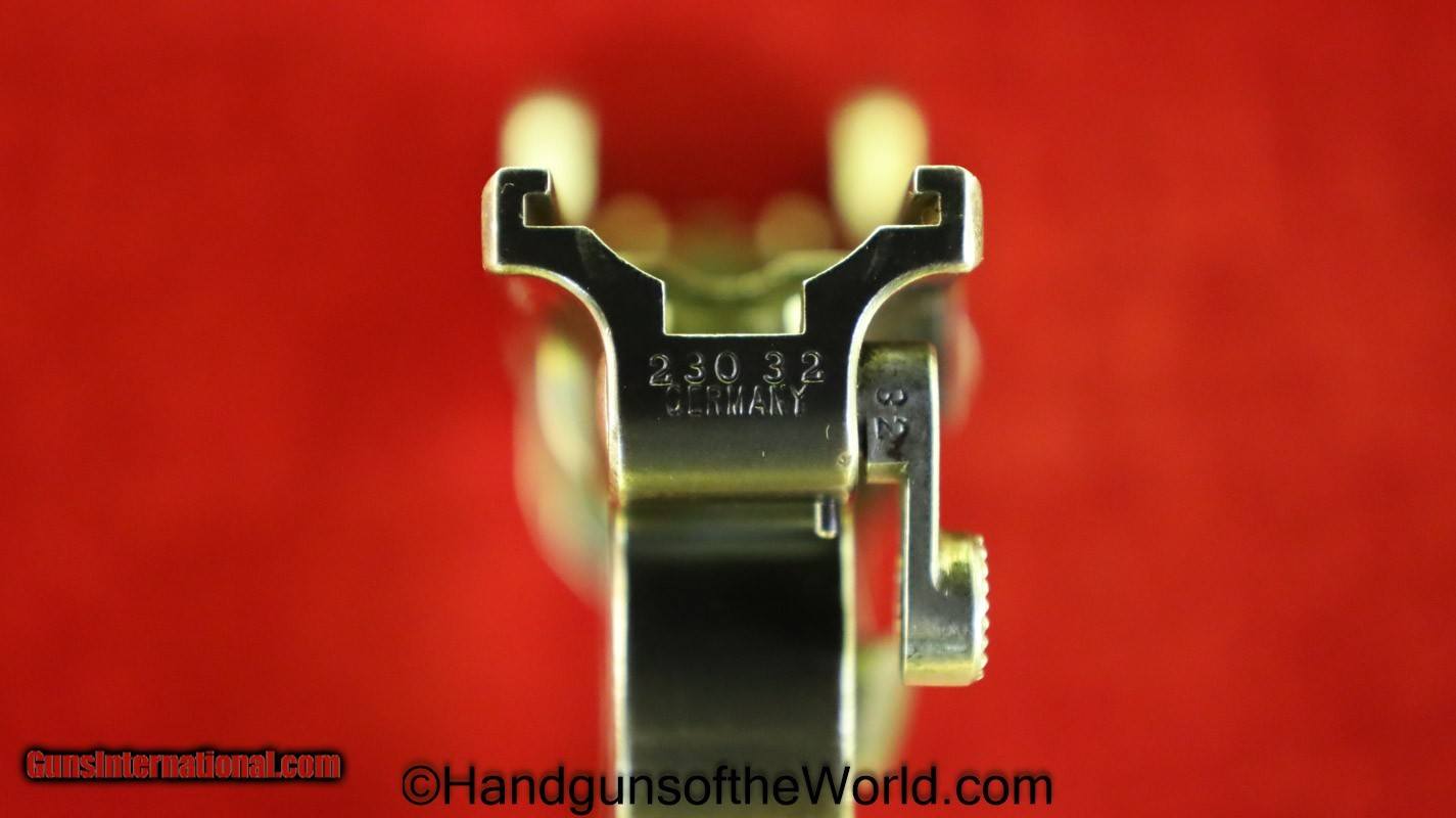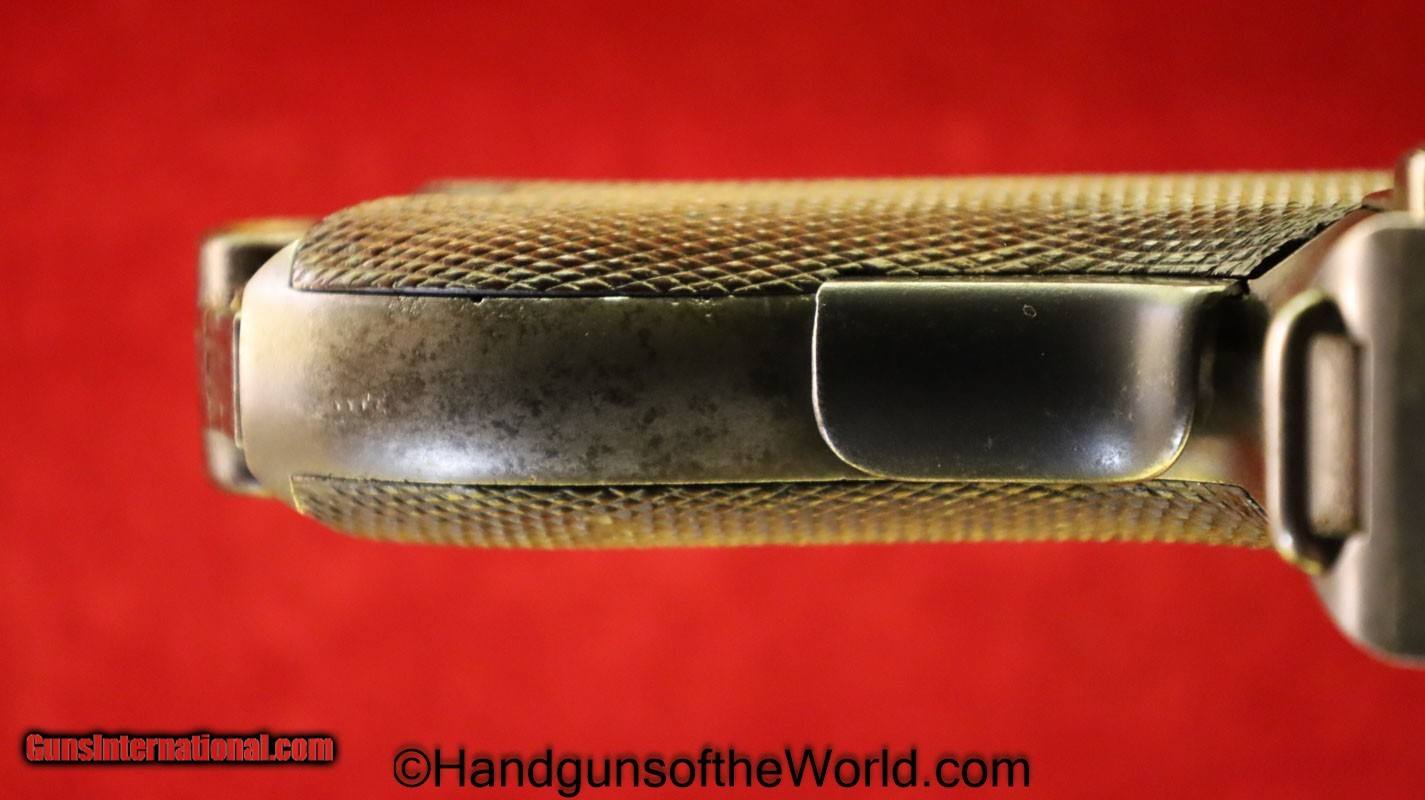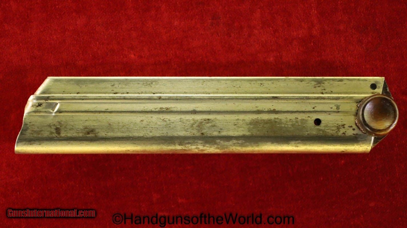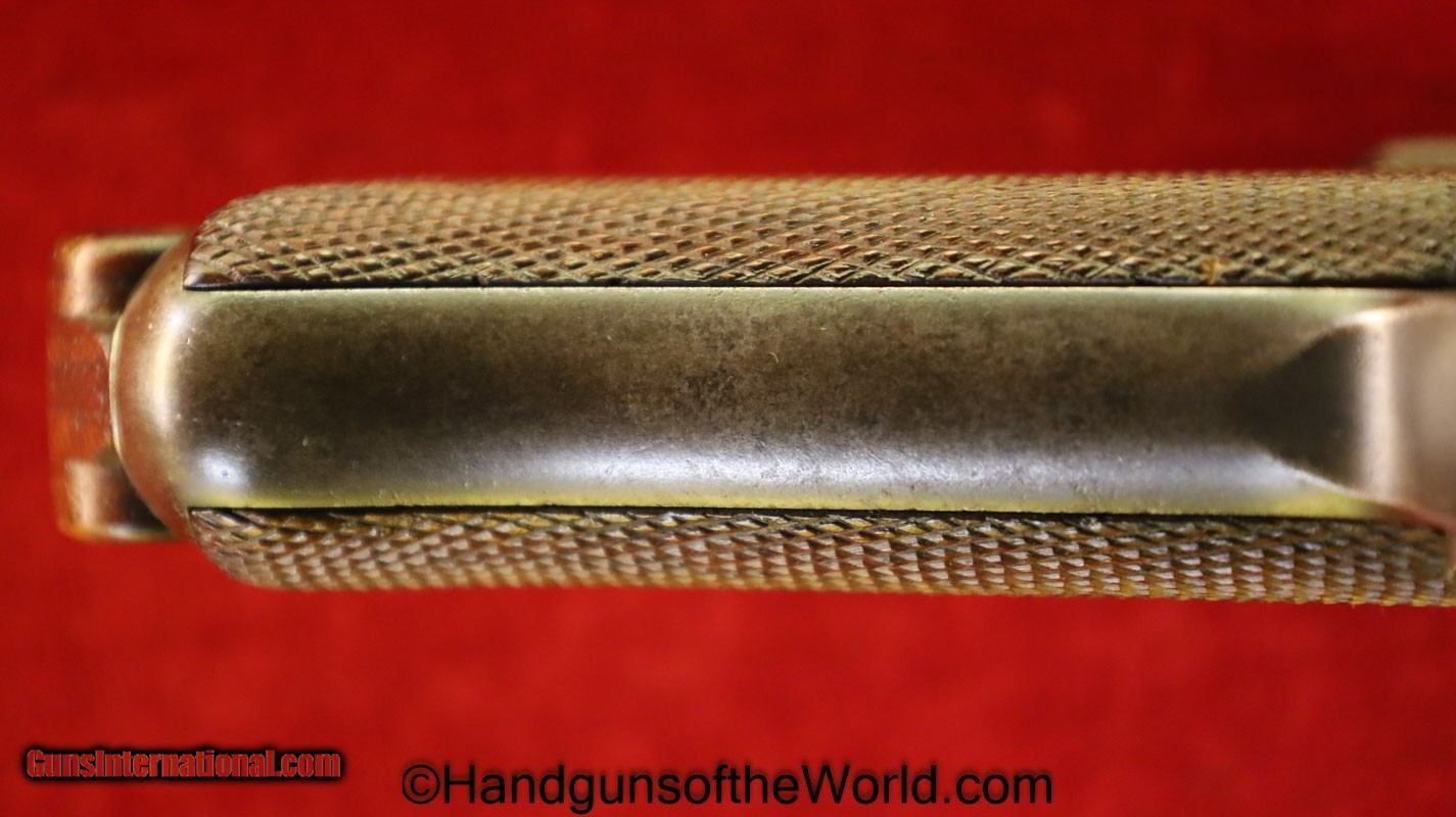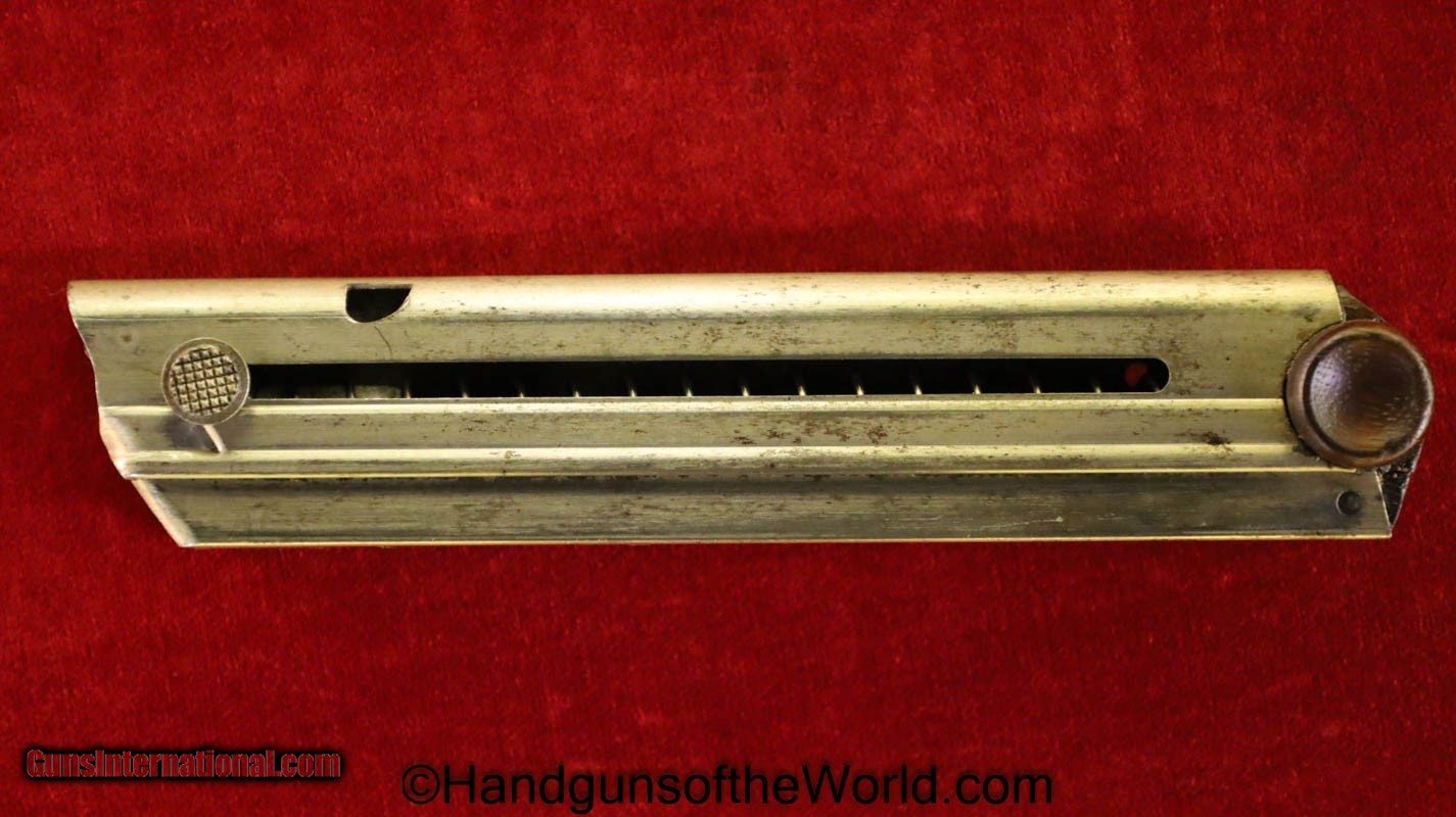 Description: DWM 1902 Luger, 9mm. This has the American Eagle on the top of the chamber. This variation is known as the Fat Barrel, as it was the 1st Luger to have a 9mm, 4″ barrel. Only about 800 of these were manufactured. This one is German BUG proofed. The grips are from a different pistol, but the other parts are all matching. The magazine is correctly marked Cal 9mm in script. The blue rates about 80% and the bore is Fair-Good. Curio/Relic: Yes Handgun Caliber: 9x19mm Parabellum (9mm Luger, 9x19mm NATO) Manufacturer: DWM Model: Luger Price: $10,995.00 Shipping: $35.00 Contact Seller |