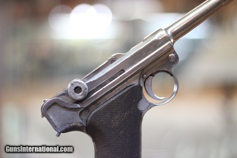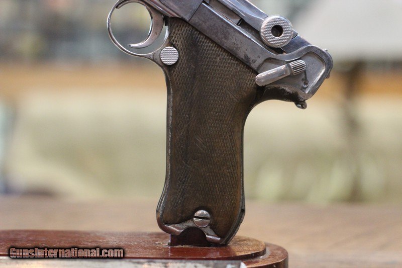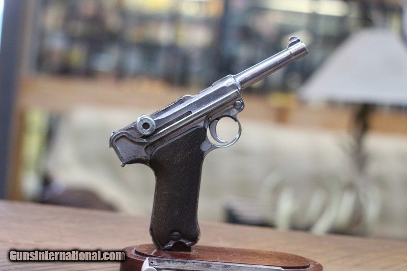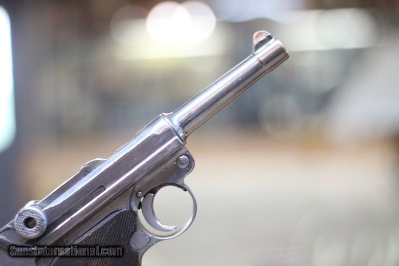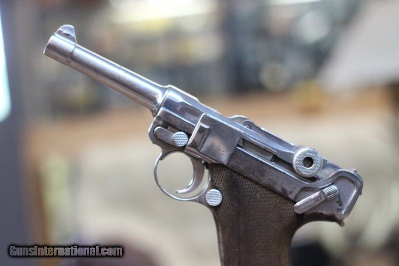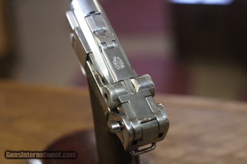 Description: 7.65MM Caliber Luger cartridge Chrome plated sometime in America postwar era 3 7/8 barrel with shootable but fair bore All matching numbers Serial # 5462m Germany Worn checkering and overall worn looking finish DWM marked toggle Good shooter $739 SOLD |