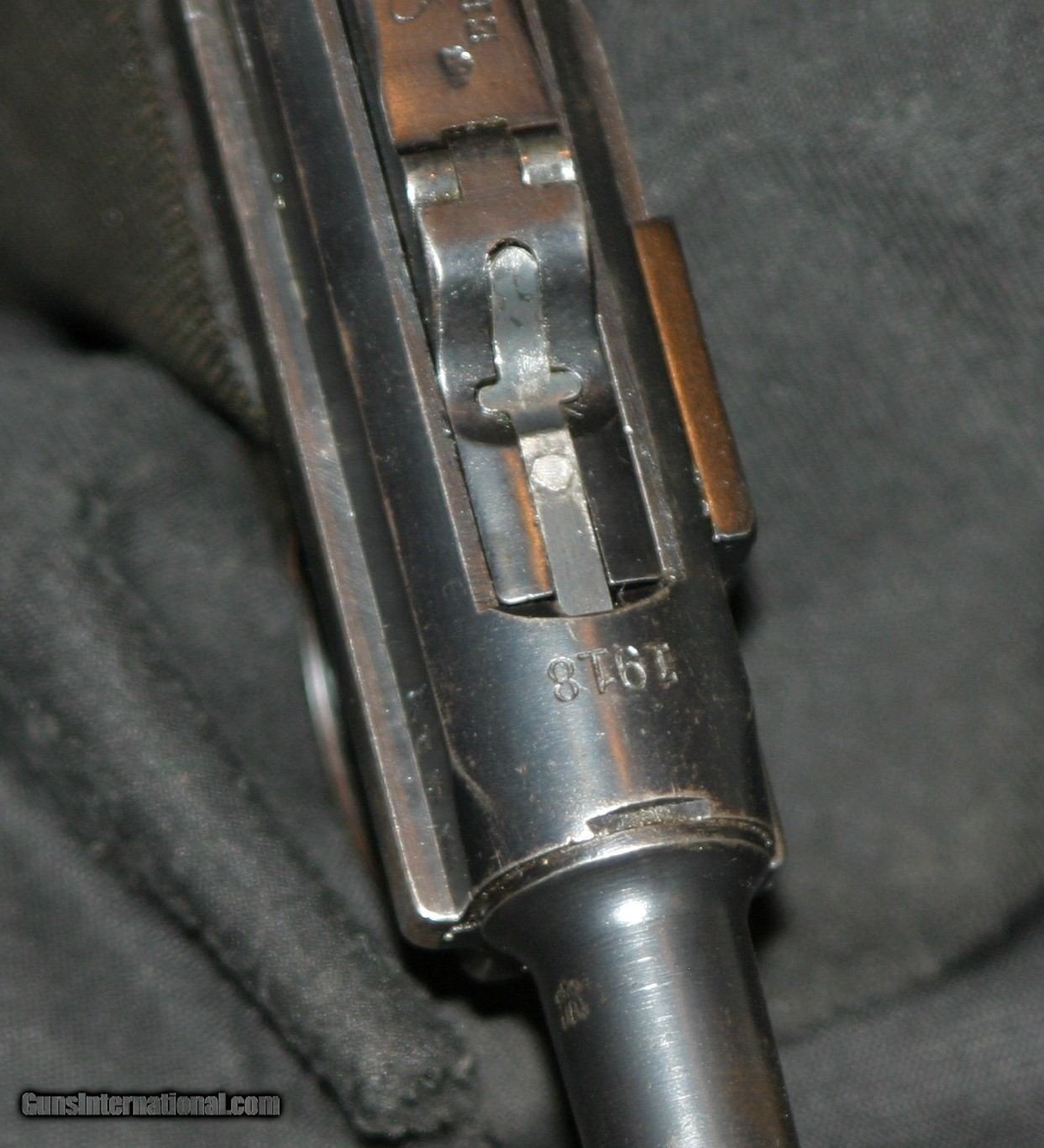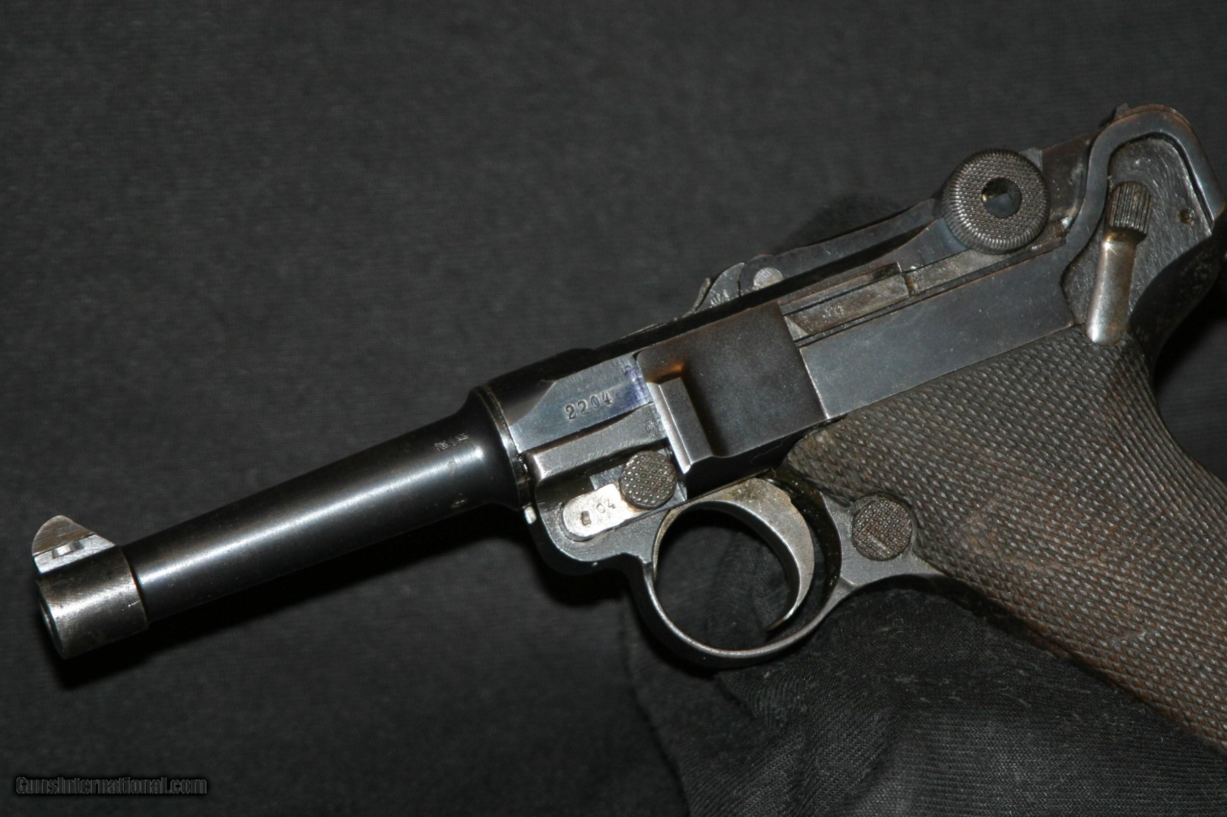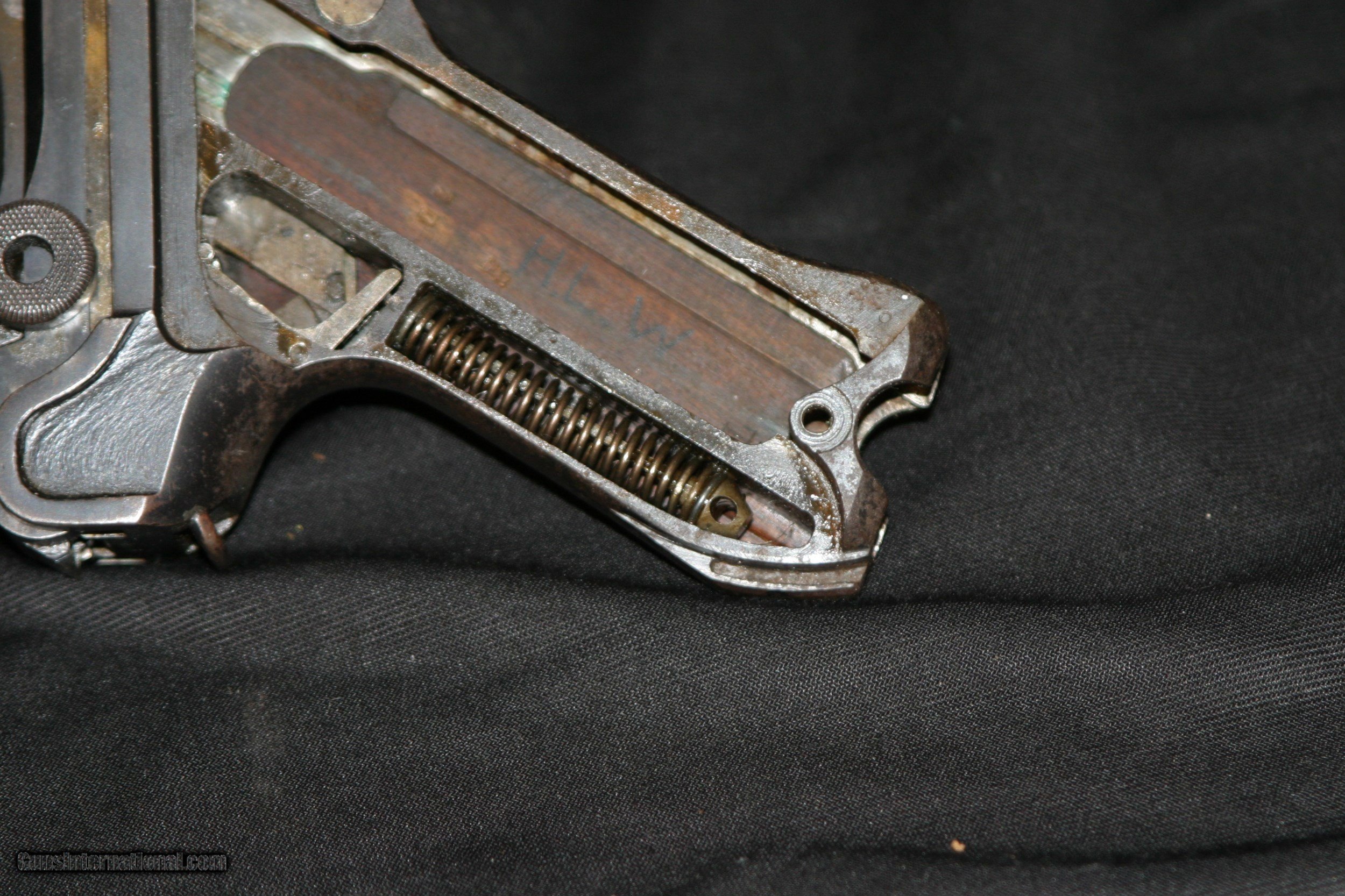 Description: MILITARY ERFURT LUGER,1918 CHAMBER DATE,WITH TWO MAGS,NOT MATCHING,BORE IS VERY GOOD AND PISTOL FUNCTIONS FLAWLESS. SHOOT THIS,LEAVE THE SAFE QUEENS ALONE! NUMBERS ON THE MAGS ARE 7597e AND 7215n, this gun is 2204. THERE IS A NAME "H.L.WARDNER", OCT 15,1919 WRITTEN IN PENCIL UNDER THE GRIPS? I'M SURE THERE'S A STORY THERE! SOLD Curio/Relic: Yes |