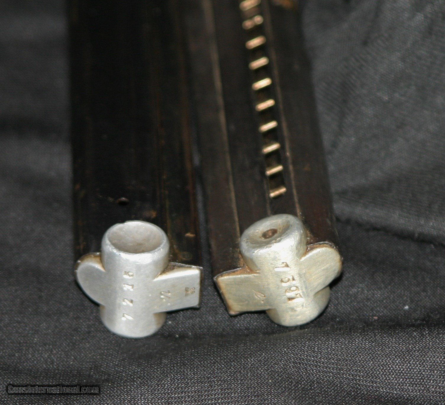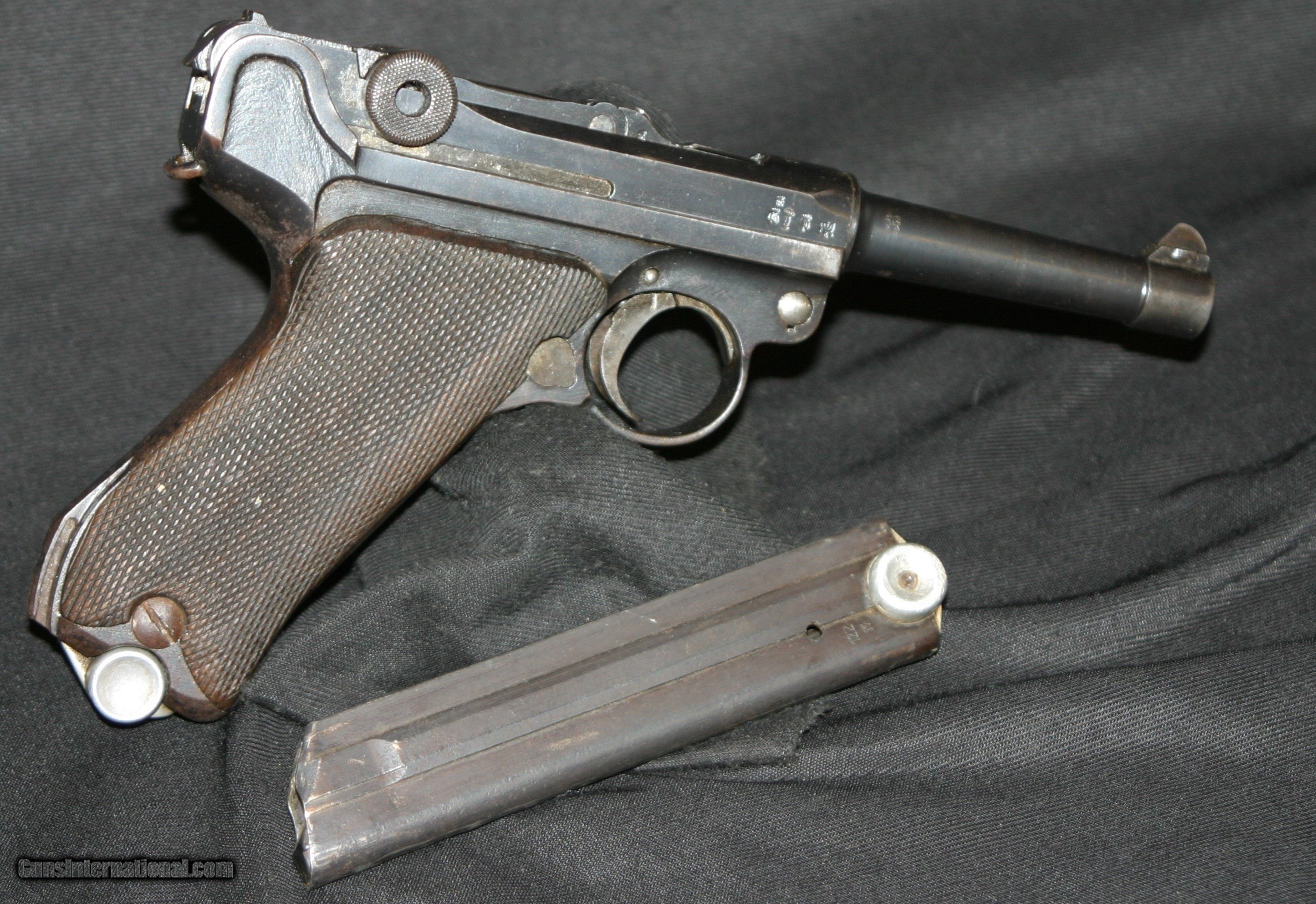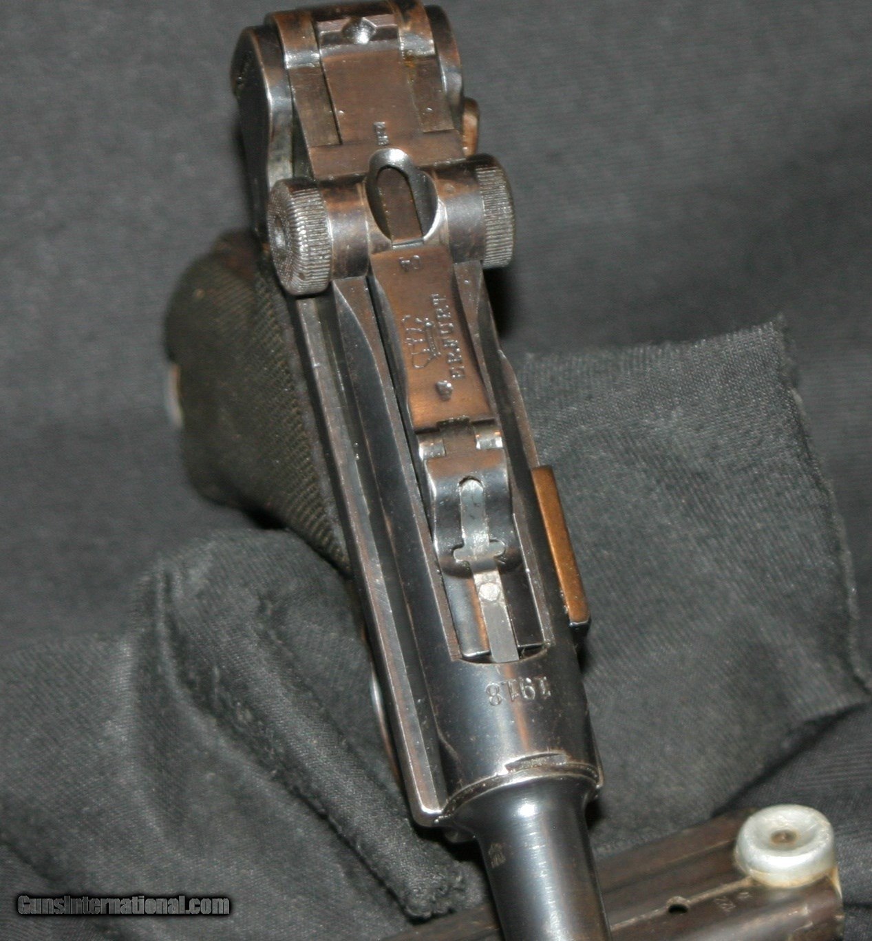 Description: MILITARY ERFURT LUGER,1918 CHAMBER DATE,WITH TWO MAGS,NOT MATCHING,BORE IS VERY GOOD AND PISTOL FUNCTIONS FLAWLESS. SHOOT THIS,LEAVE THE SAFE QUEENS ALONE! NUMBERS ON THE MAGS ARE 7597e AND 7215n, this gun is 2204. THERE IS A NAME "H.L.WARDNER", OCT 15,1919 WRITTEN IN PENCIL UNDER THE GRIPS? I'M SURE THERE'S A STORY THERE! SOLD Curio/Relic: Yes |