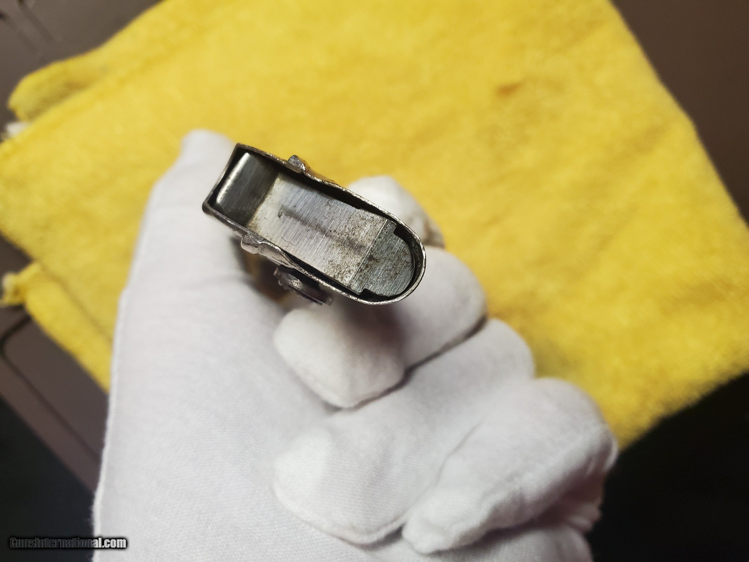 Description: PRICE REDUCED FROM $275 TO $175. This a good condition Luger magazine. The nickel tube is in good condition with minimal light scratchy wear from use. The magazine's bottom is marked with serial number and military proof. The spring and follower are strong and functional. SOLD Manufacturer: Luger Condition: good Metal Condition: good |