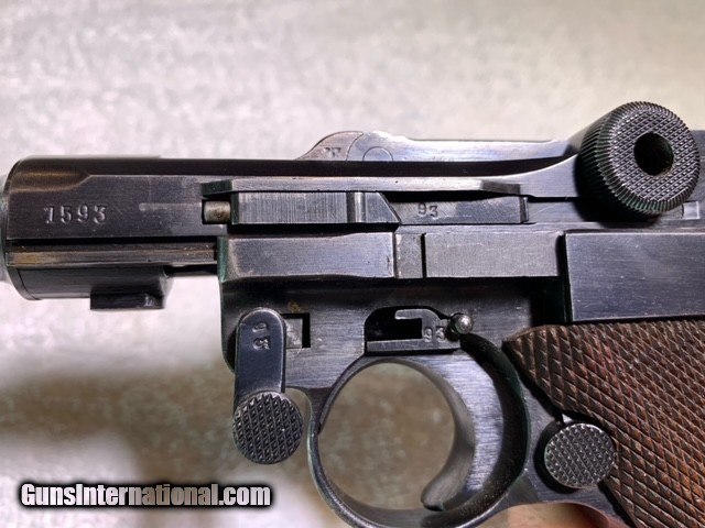 Description: *****PRICE REDUCED**** LUGER MAUSER 9MM ,NAZI MILITARY CODE 1940-42 ,MADE IN 1940 , THE 42 IS ONE OF THE CODES FOR MAUSER , THIS RATHER RARE MODEL IS IN OUTSTANDING CONDITION , ALL NUMBERS ARE MATCHING INSIDE AND OUT , THE BORE IS SPOTLESS AND BRIGHT ONE REALY WONDERS ABOUT THE EXCELLENT WORKMANSHIP AT THAT TIME , THE WOODEN GRIPS ARE CRISP AND CLEAN WITHOUT CHIPS OR CRACKS , THE MAG IS PERIOD CORRECT AND NOT NUMBERED TO THE GUN, MY GRANDFATHER WAS IN THE WAR AND BOUGHT THIS GUN BACK, SO NO IMPORT MARKS ,THE PROOF MARKS ARE EAGLE / 655 , THE GRIP STRAPS ARE OUTSTANDING INDEED , A VERY NICE ADDITION TO ANY GUN COLLECTION AND ALSO A GOOD INVESTMENT PROPERTY, MORE PICS AVAILABLE ON REQUEST PLEASE ADD $70. FOR S/H/INS TO YOUR FFL OR C&R DEALER SOLD Curio/Relic: Yes Handgun Caliber: 9mm Mauser Export (Export caliber for C96 ) Manufacturer: LUGER Model: MAUSER Serial Number: 1593 |