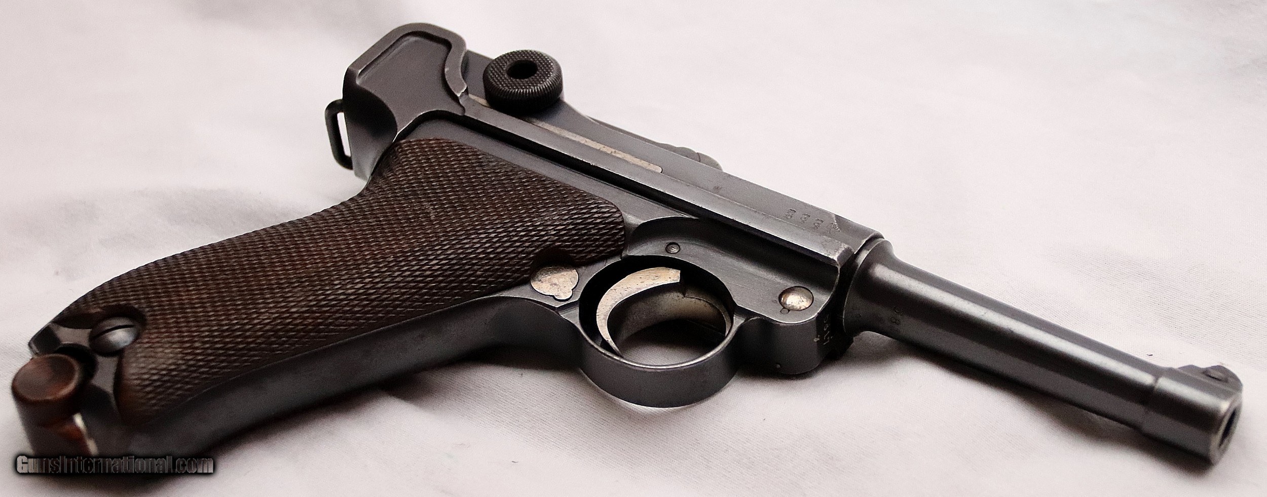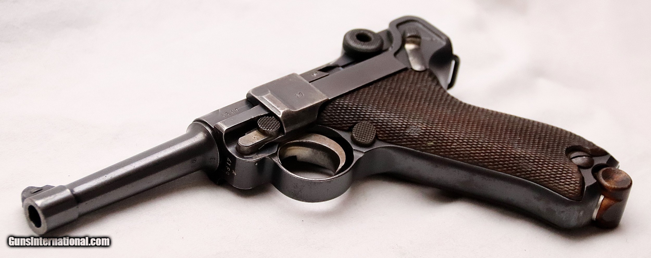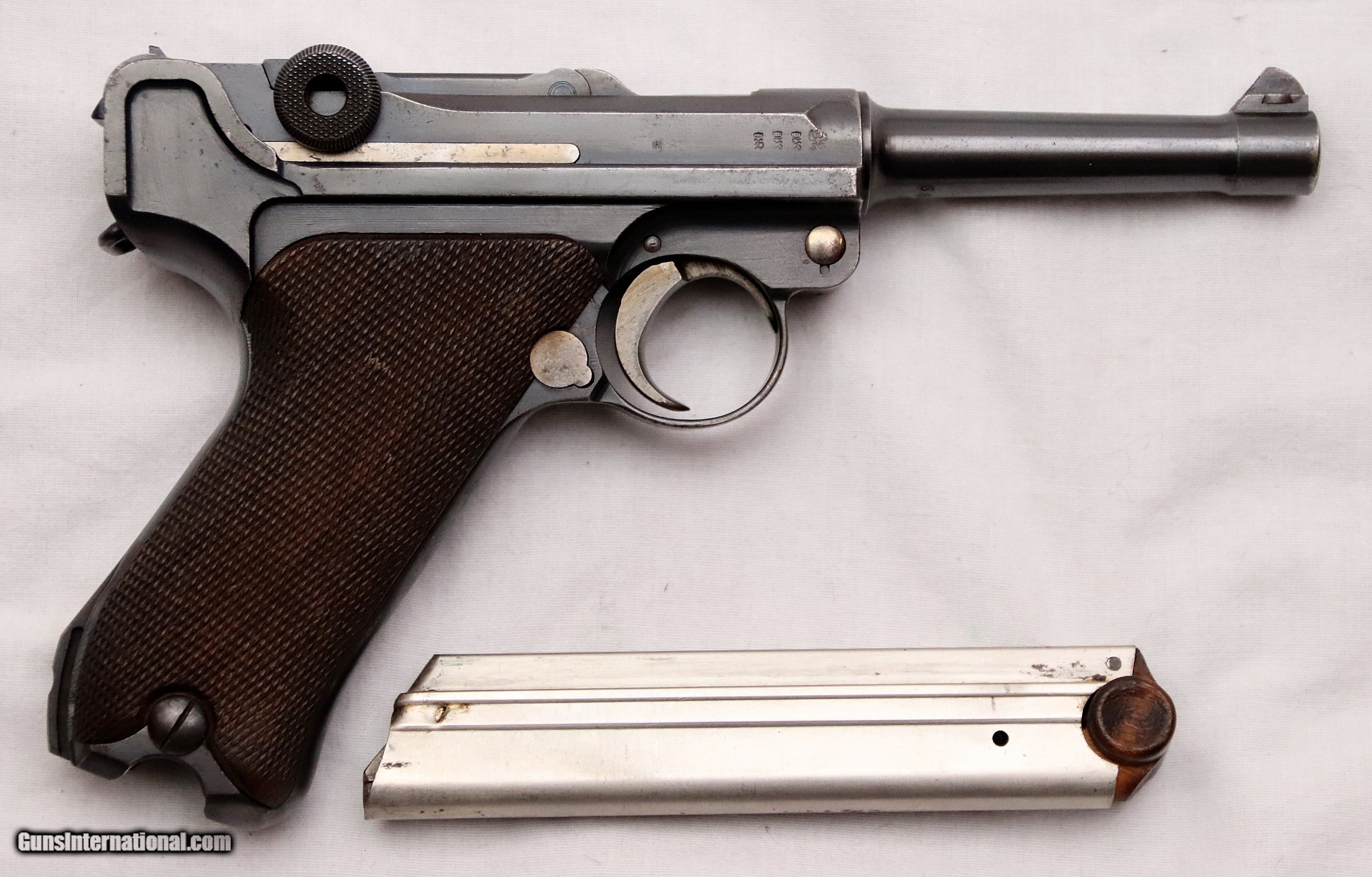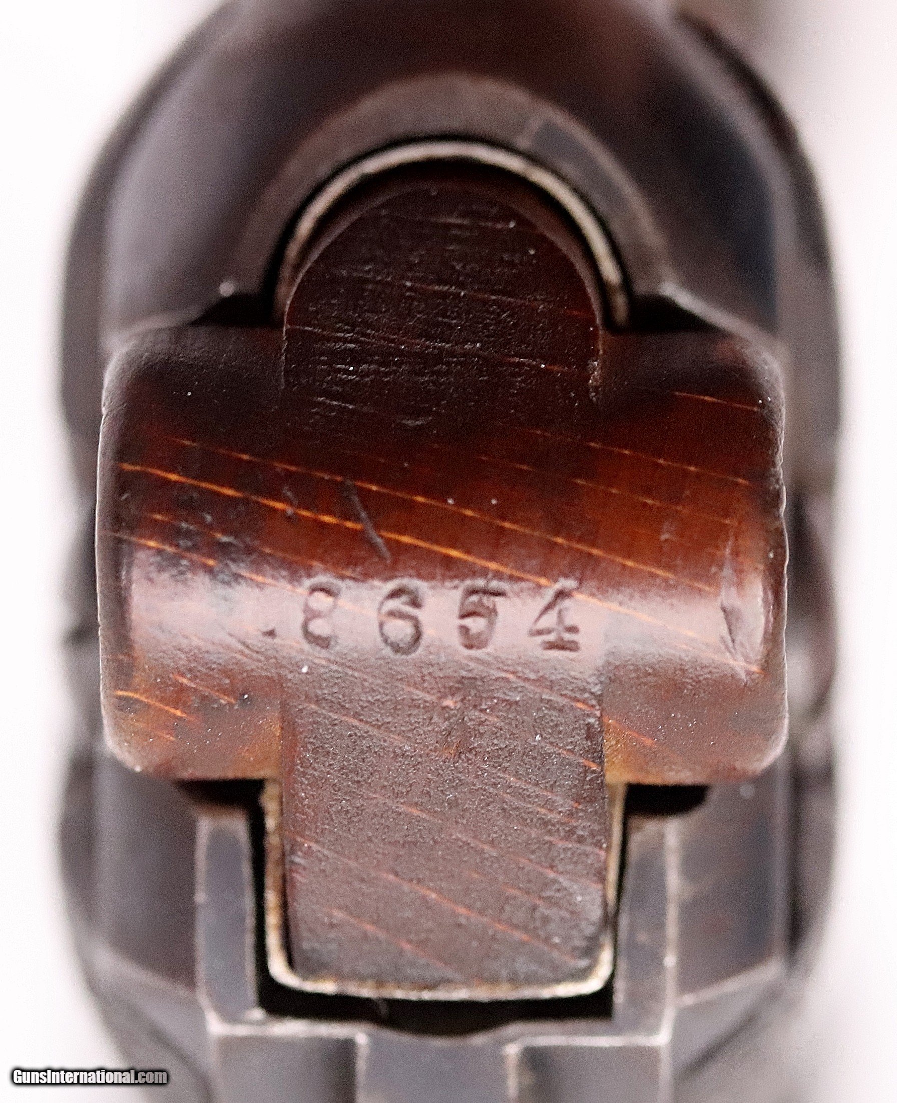 Description: This 1915 dated Luger (Pistole Model 08) survives in remarkable original condition. The original rust blue finish remains largely intact with minor holster wear showing on the high edges. The straw colored small parts retain excellent color with some discoloration on the safety lever. The original matching numbered grips remain mostly sharp, free of chips, and cracks. There are no pits or rust marks. This is NOT an imported Russian capture gun. Its excellent condition suggests it saw limited service in WWI and perhaps in WWII as well. Most likely a G.I. bring back. All serial numbered parts, excluding the Mag, have matching numbers, including the firing pin. The magazine is marked 8654 g. The bore is excellent and the function is flawless. This is an exceptional example of an early WW1 Luger and a great addition to the finest collection. 9mm with a 4” barrel. Serial Number 6817y FFL or C&R Required. Beaver Creek Arms TERMS & CONDITIONS Objective: As a collector of 35 years and Licensed Firearms Dealer since 1989 I have a clear definition of a satisfactory transaction. I will be paid as we agreed to, and you will be satisfied with your purchase. My goal is to establish a client list of satisfied repeat customers who will recommend me to other collectors. It’s just that simple. Exiled Saudi princes with secret funds needing change from an over paid purchase need not apply. Notice: ALL Federal, State, & Local firearms laws will be followed. I will take NO shortcuts in the process of a legal sale or transfer, so please don’t ask. SHIPPING: Normally shipments are made via U.S.P.S. Priority Mail, Insured, with a return receipt. Packing, Shipping and Insurance cost for this handgun is $40.00, Checks are to be made out to : STEVE CLARK Address: 380 Beaver Creek Rd. Dillsburg PA 17019 Availability: All items are in stock and available for immediate shipment. Please call or email and an Item will be held up to a week with your Name, Address, & Phone Number. Items marked Reserved are being held for awaiting payment or on layaway. If you are interested in a reserved item, please call or E-Mail to be placed on a backup list. FIREARMS: Modern firearms, post 1898, can only be shipped to a Type 01 Federal Firearms License address. Curio-Relic firearms, as defined by the BATF list, can usually be shipped to a Type 03 Collectors License address. Some states have additional restrictions such as CA, CT, DC, IL, MD, NJ and NY. A signed valid FFL license copy either mailed or emailed will be required for shipment to only the license address. Antique firearms, pre 1898 do not require a Federal License. For purchase, a copy of a Government Issued Identification (Driver’s License, Etc.), showing date of birth and current address will be required. GUARANTEE: Your complete satisfaction is assured, see objective above. If you are not satisfied, please contact me within 3 days of receipt. Please don’t fire the weapon, safety, function and accuracy are NOT Guaranteed. Any weapon offered by Beaver Creek Arms is never test fired nor is there any representation the gun is functional and safe to fire. These guns are sold for collectors and only represented as used firearms that must be checked by a competent person, observe all the necessary safety precautions prior to attempting to load and fire one of these weapons RETURNS: Returns must be made within 3 days of receipt. They must be received in exactly the same condition with no parts exchanged. If it has been altered, damaged, or fired, a refund will not be made. Packing, shipping and insurance cost will not be refunded. All layaway purchases are returnable for merchandise credit only. PAYMENT: Bank check, Personal check, and Money Orders are preferred. Visa and MasterCard are accepted with a 3% processing fee. For Visa and MasterCard orders please provide the account number, code number, expiration date, name on card, phone number and card billing address. This information can be phoned in, or E-Mailed. All orders must be paid in advance, C.O.D. orders are not accepted. Checks, both Bank and Personal must clear before the order will be shipped, usually a 2 week delay. LAYAWAYS: A 20% deposit is required. Balance is due in 60 days. Deposits are non-refundable and are forfeited after 60 days. Layaway sales are returnable for merchandise credit only. SALES TAX: Pennsylvania state sales tax is 6% for in state purchases. The payment of other states sales tax, if applicable, for shipped items is the buyer’s responsibility. DISCREET: Client information will remain Confidential. Your privacy is protected. SOLD Curio/Relic: Yes |