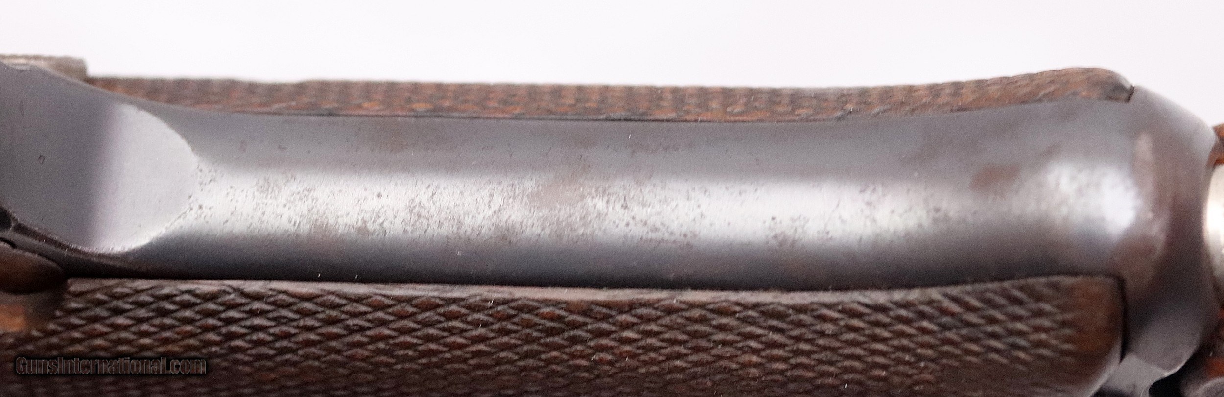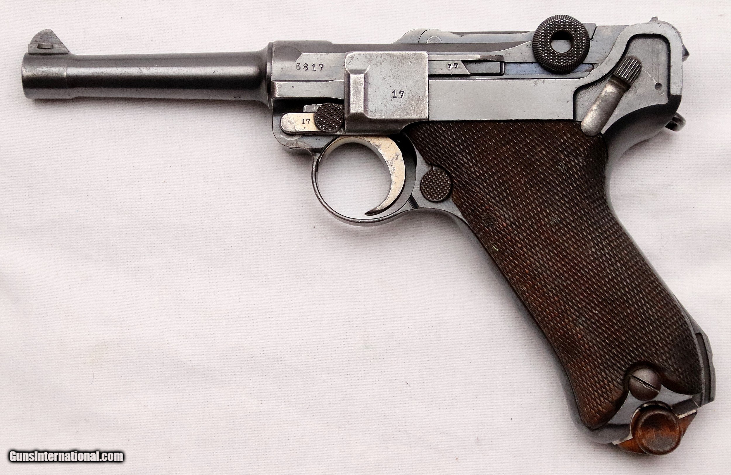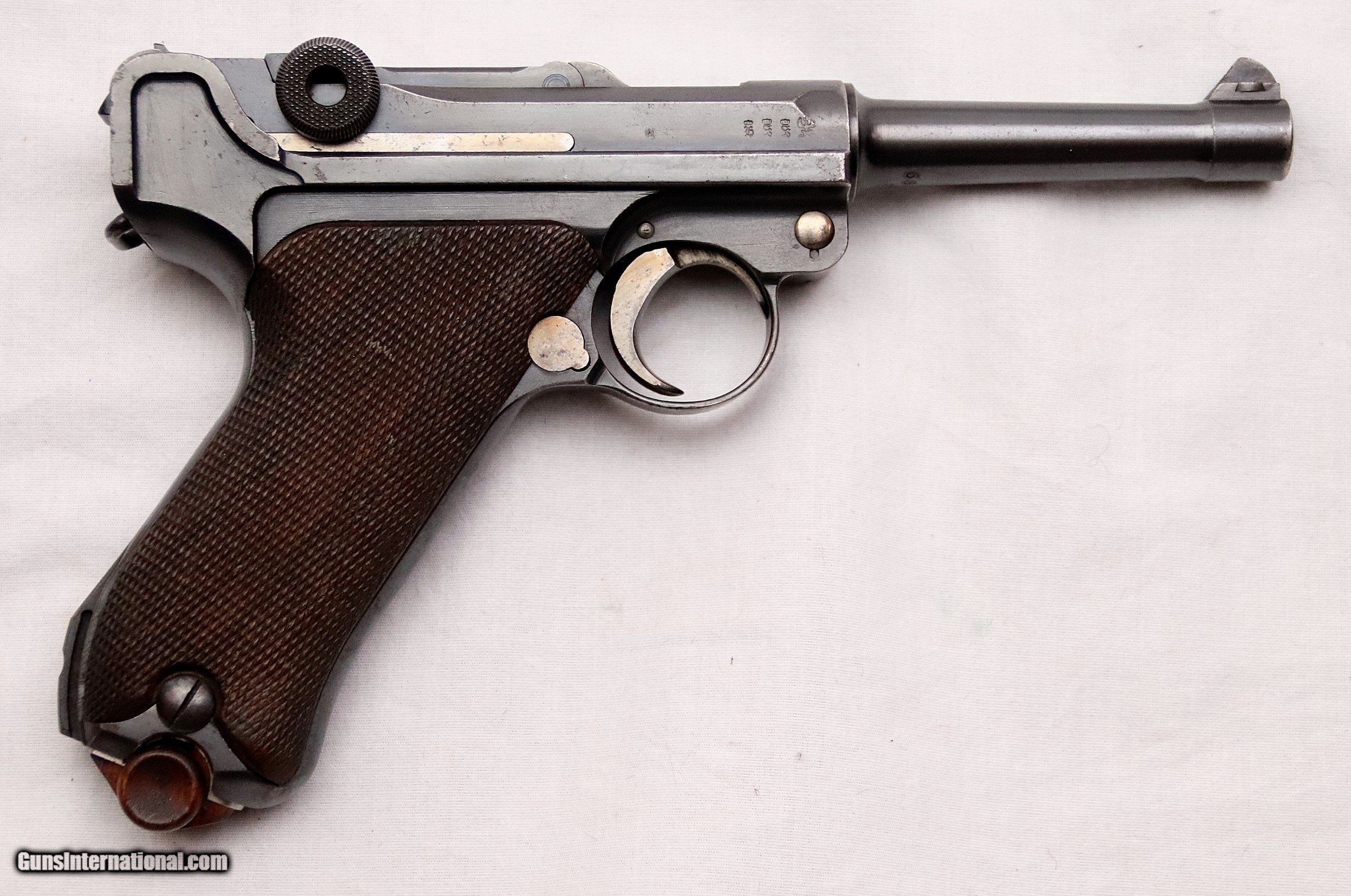 Description: This 1915 dated Luger (Pistole Model 08) survives in remarkable original condition. The original rust blue finish remains largely intact with minor holster wear showing on the high edges. The straw colored small parts retain excellent color with some discoloration on the safety lever. The original matching numbered grips remain mostly sharp, free of chips, and cracks. There are no pits or rust marks. This is NOT an imported Russian capture gun. Its excellent condition suggests it saw limited service in WWI and perhaps in WWII as well. Most likely a G.I. bring back. All serial numbered parts, excluding the Mag, have matching numbers, including the firing pin. The magazine is marked 8654 g. The bore is excellent and the function is flawless. This is an exceptional example of an early WW1 Luger and a great addition to the finest collection. 9mm with a 4” barrel. Serial Number 6817y FFL or C&R Required. Beaver Creek Arms TERMS & CONDITIONS Objective: As a collector of 35 years and Licensed Firearms Dealer since 1989 I have a clear definition of a satisfactory transaction. I will be paid as we agreed to, and you will be satisfied with your purchase. My goal is to establish a client list of satisfied repeat customers who will recommend me to other collectors. It’s just that simple. Exiled Saudi princes with secret funds needing change from an over paid purchase need not apply. Notice: ALL Federal, State, & Local firearms laws will be followed. I will take NO shortcuts in the process of a legal sale or transfer, so please don’t ask. SHIPPING: Normally shipments are made via U.S.P.S. Priority Mail, Insured, with a return receipt. Packing, Shipping and Insurance cost for this handgun is $40.00, Checks are to be made out to : STEVE CLARK Address: 380 Beaver Creek Rd. Dillsburg PA 17019 Availability: All items are in stock and available for immediate shipment. Please call or email and an Item will be held up to a week with your Name, Address, & Phone Number. Items marked Reserved are being held for awaiting payment or on layaway. If you are interested in a reserved item, please call or E-Mail to be placed on a backup list. FIREARMS: Modern firearms, post 1898, can only be shipped to a Type 01 Federal Firearms License address. Curio-Relic firearms, as defined by the BATF list, can usually be shipped to a Type 03 Collectors License address. Some states have additional restrictions such as CA, CT, DC, IL, MD, NJ and NY. A signed valid FFL license copy either mailed or emailed will be required for shipment to only the license address. Antique firearms, pre 1898 do not require a Federal License. For purchase, a copy of a Government Issued Identification (Driver’s License, Etc.), showing date of birth and current address will be required. GUARANTEE: Your complete satisfaction is assured, see objective above. If you are not satisfied, please contact me within 3 days of receipt. Please don’t fire the weapon, safety, function and accuracy are NOT Guaranteed. Any weapon offered by Beaver Creek Arms is never test fired nor is there any representation the gun is functional and safe to fire. These guns are sold for collectors and only represented as used firearms that must be checked by a competent person, observe all the necessary safety precautions prior to attempting to load and fire one of these weapons RETURNS: Returns must be made within 3 days of receipt. They must be received in exactly the same condition with no parts exchanged. If it has been altered, damaged, or fired, a refund will not be made. Packing, shipping and insurance cost will not be refunded. All layaway purchases are returnable for merchandise credit only. PAYMENT: Bank check, Personal check, and Money Orders are preferred. Visa and MasterCard are accepted with a 3% processing fee. For Visa and MasterCard orders please provide the account number, code number, expiration date, name on card, phone number and card billing address. This information can be phoned in, or E-Mailed. All orders must be paid in advance, C.O.D. orders are not accepted. Checks, both Bank and Personal must clear before the order will be shipped, usually a 2 week delay. LAYAWAYS: A 20% deposit is required. Balance is due in 60 days. Deposits are non-refundable and are forfeited after 60 days. Layaway sales are returnable for merchandise credit only. SALES TAX: Pennsylvania state sales tax is 6% for in state purchases. The payment of other states sales tax, if applicable, for shipped items is the buyer’s responsibility. DISCREET: Client information will remain Confidential. Your privacy is protected. SOLD Curio/Relic: Yes |