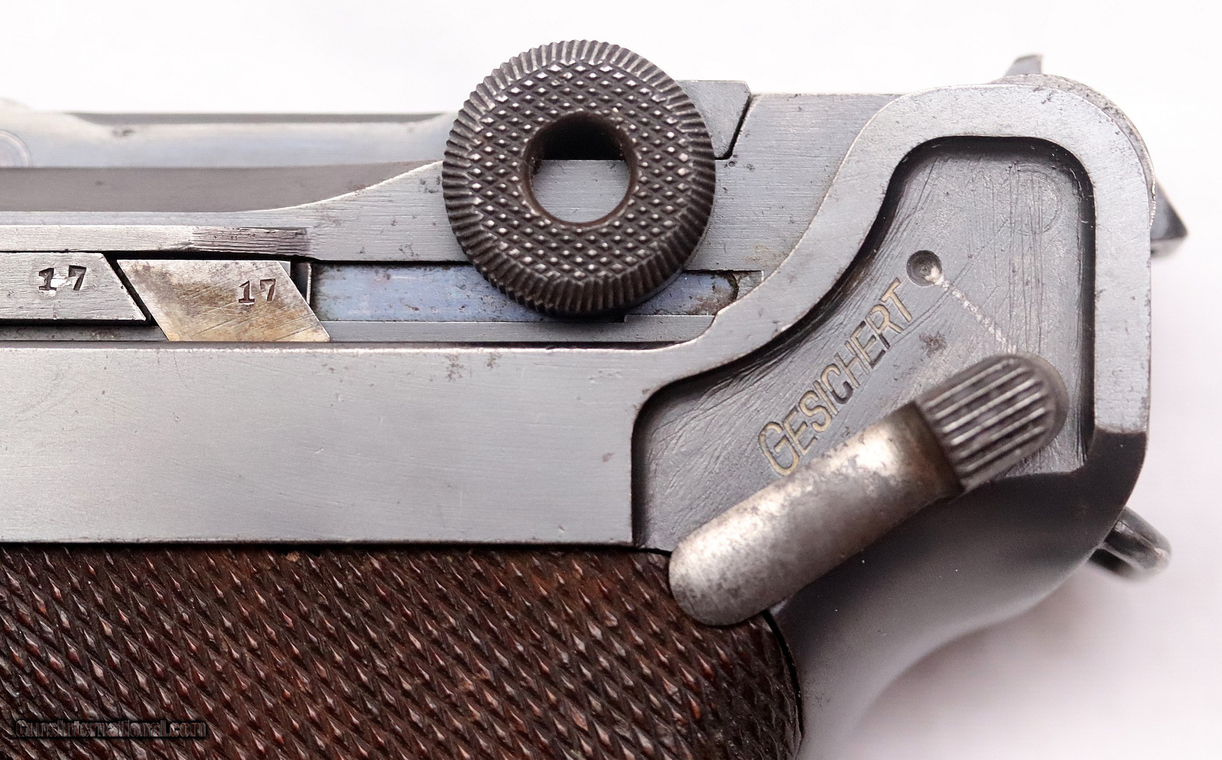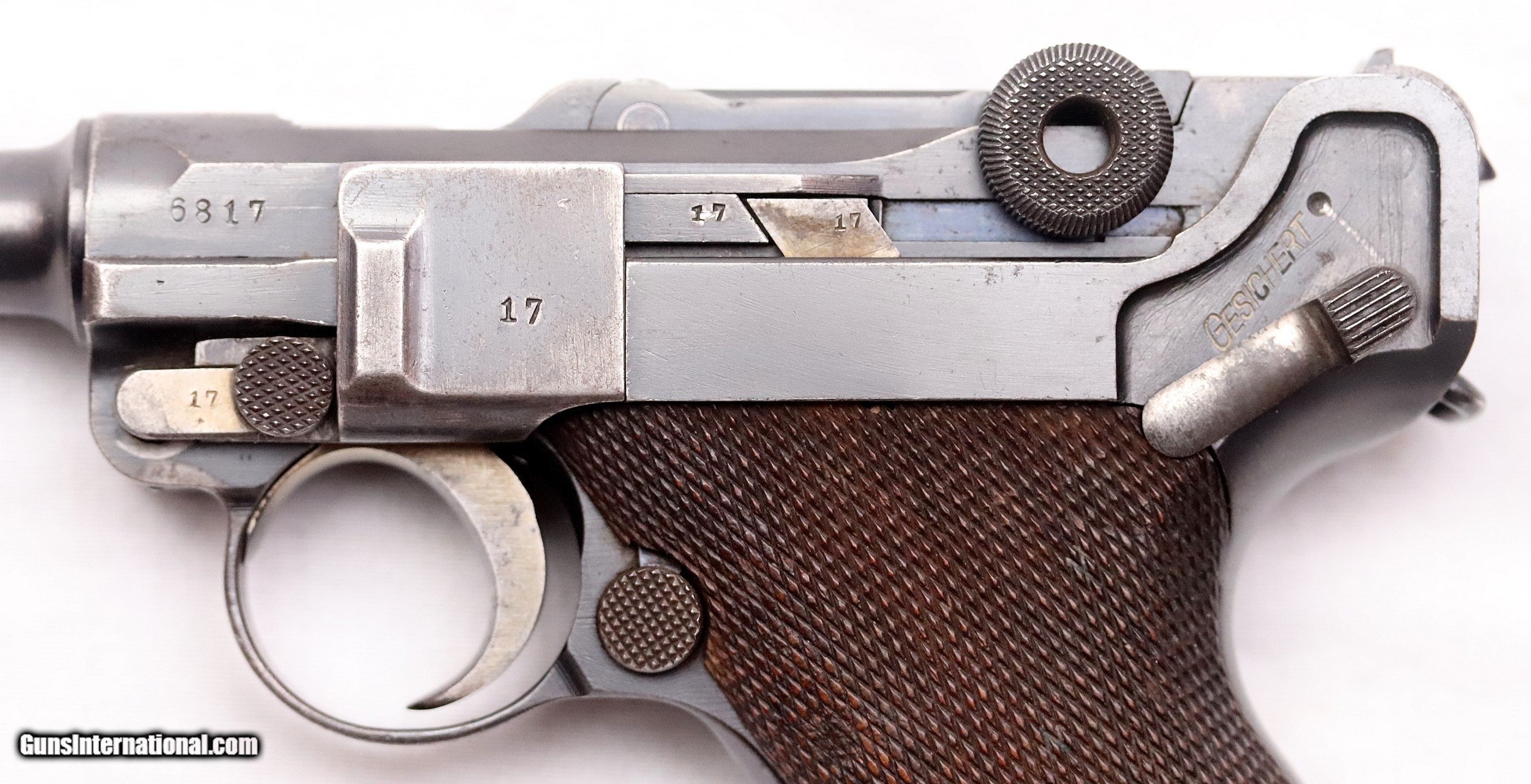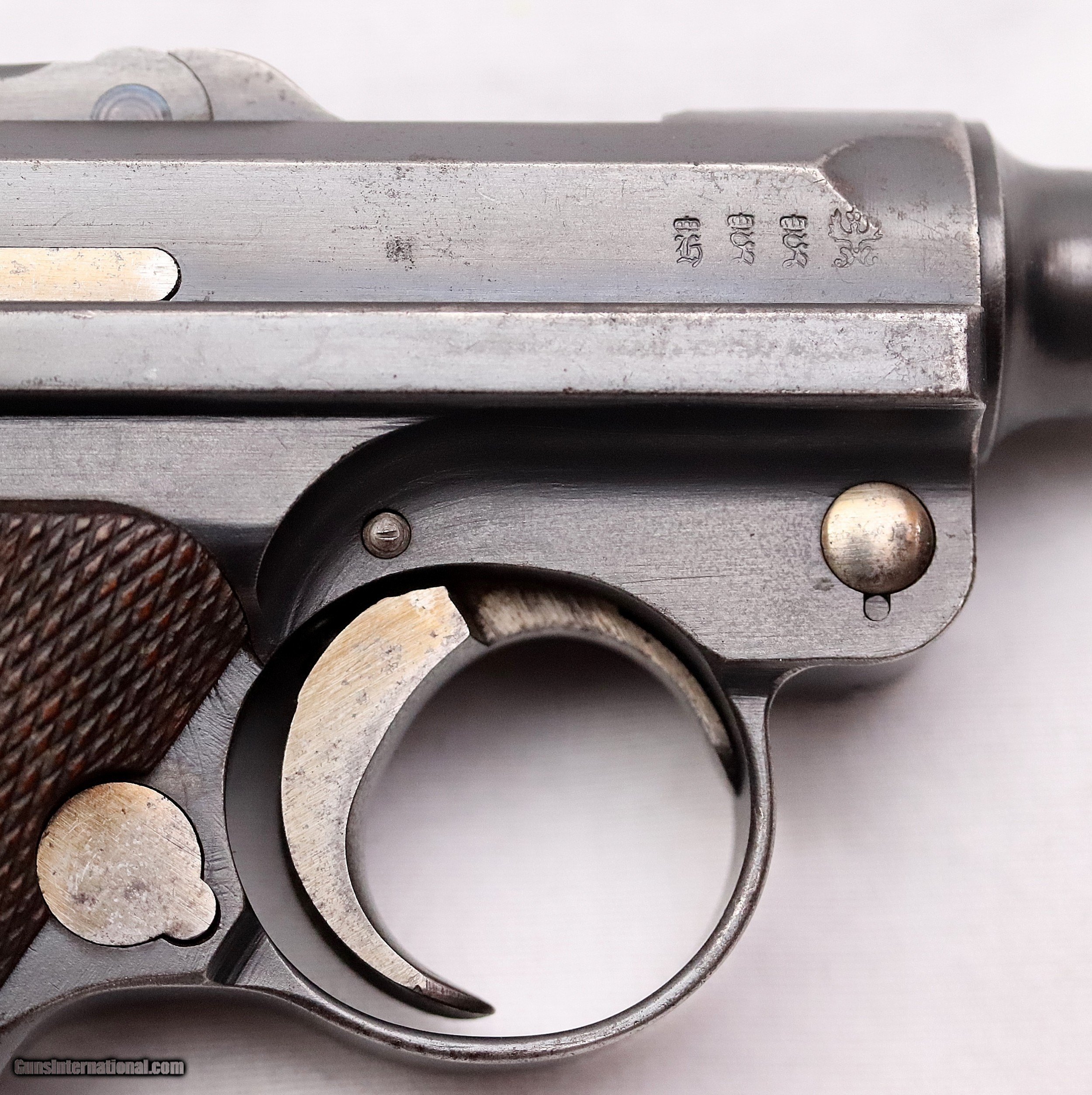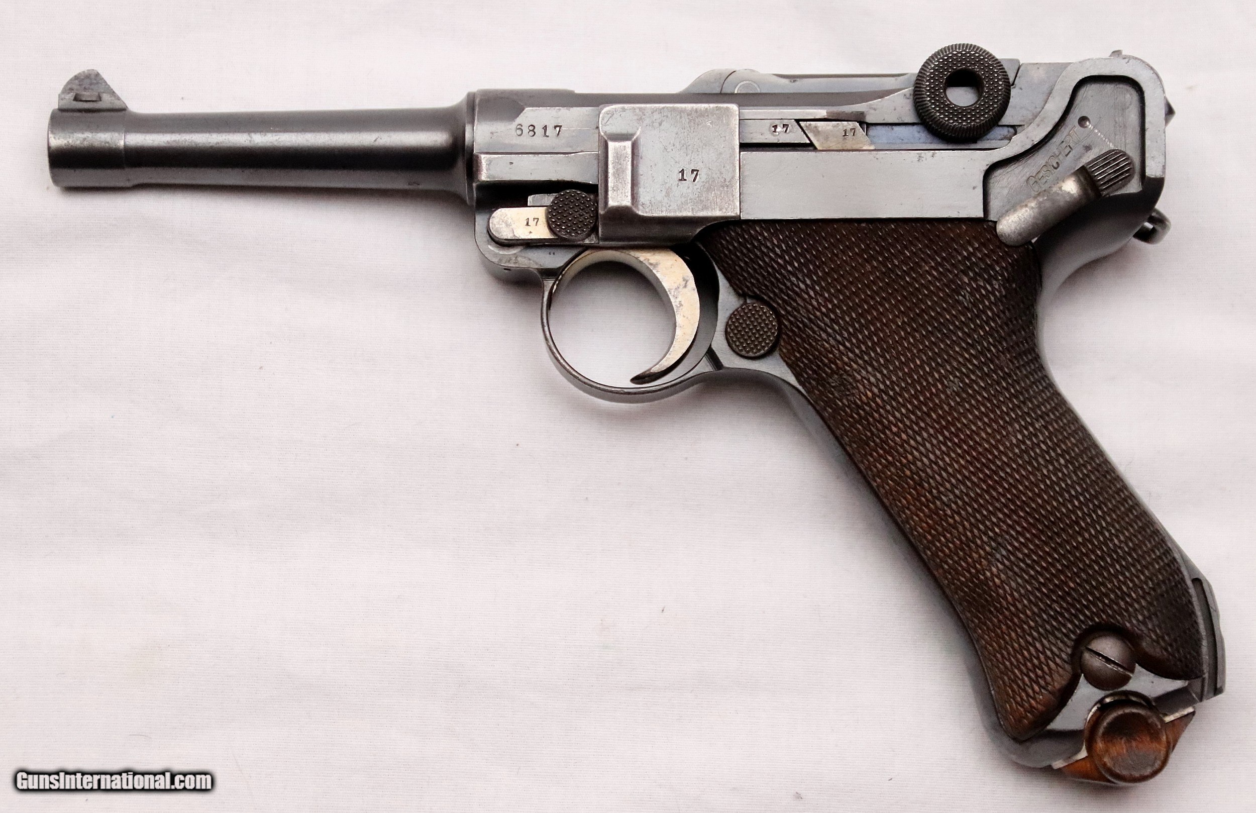 Description: This 1915 dated Luger (Pistole Model 08) survives in remarkable original condition. The original rust blue finish remains largely intact with minor holster wear showing on the high edges. The straw colored small parts retain excellent color with some discoloration on the safety lever. The original matching numbered grips remain mostly sharp, free of chips, and cracks. There are no pits or rust marks. This is NOT an imported Russian capture gun. Its excellent condition suggests it saw limited service in WWI and perhaps in WWII as well. Most likely a G.I. bring back. All serial numbered parts, excluding the Mag, have matching numbers, including the firing pin. The magazine is marked 8654 g. The bore is excellent and the function is flawless. This is an exceptional example of an early WW1 Luger and a great addition to the finest collection. 9mm with a 4” barrel. Serial Number 6817y FFL or C&R Required. Beaver Creek Arms TERMS & CONDITIONS Objective: As a collector of 35 years and Licensed Firearms Dealer since 1989 I have a clear definition of a satisfactory transaction. I will be paid as we agreed to, and you will be satisfied with your purchase. My goal is to establish a client list of satisfied repeat customers who will recommend me to other collectors. It’s just that simple. Exiled Saudi princes with secret funds needing change from an over paid purchase need not apply. Notice: ALL Federal, State, & Local firearms laws will be followed. I will take NO shortcuts in the process of a legal sale or transfer, so please don’t ask. SHIPPING: Normally shipments are made via U.S.P.S. Priority Mail, Insured, with a return receipt. Packing, Shipping and Insurance cost for this handgun is $40.00, Checks are to be made out to : STEVE CLARK Address: 380 Beaver Creek Rd. Dillsburg PA 17019 Availability: All items are in stock and available for immediate shipment. Please call or email and an Item will be held up to a week with your Name, Address, & Phone Number. Items marked Reserved are being held for awaiting payment or on layaway. If you are interested in a reserved item, please call or E-Mail to be placed on a backup list. FIREARMS: Modern firearms, post 1898, can only be shipped to a Type 01 Federal Firearms License address. Curio-Relic firearms, as defined by the BATF list, can usually be shipped to a Type 03 Collectors License address. Some states have additional restrictions such as CA, CT, DC, IL, MD, NJ and NY. A signed valid FFL license copy either mailed or emailed will be required for shipment to only the license address. Antique firearms, pre 1898 do not require a Federal License. For purchase, a copy of a Government Issued Identification (Driver’s License, Etc.), showing date of birth and current address will be required. GUARANTEE: Your complete satisfaction is assured, see objective above. If you are not satisfied, please contact me within 3 days of receipt. Please don’t fire the weapon, safety, function and accuracy are NOT Guaranteed. Any weapon offered by Beaver Creek Arms is never test fired nor is there any representation the gun is functional and safe to fire. These guns are sold for collectors and only represented as used firearms that must be checked by a competent person, observe all the necessary safety precautions prior to attempting to load and fire one of these weapons RETURNS: Returns must be made within 3 days of receipt. They must be received in exactly the same condition with no parts exchanged. If it has been altered, damaged, or fired, a refund will not be made. Packing, shipping and insurance cost will not be refunded. All layaway purchases are returnable for merchandise credit only. PAYMENT: Bank check, Personal check, and Money Orders are preferred. Visa and MasterCard are accepted with a 3% processing fee. For Visa and MasterCard orders please provide the account number, code number, expiration date, name on card, phone number and card billing address. This information can be phoned in, or E-Mailed. All orders must be paid in advance, C.O.D. orders are not accepted. Checks, both Bank and Personal must clear before the order will be shipped, usually a 2 week delay. LAYAWAYS: A 20% deposit is required. Balance is due in 60 days. Deposits are non-refundable and are forfeited after 60 days. Layaway sales are returnable for merchandise credit only. SALES TAX: Pennsylvania state sales tax is 6% for in state purchases. The payment of other states sales tax, if applicable, for shipped items is the buyer’s responsibility. DISCREET: Client information will remain Confidential. Your privacy is protected. SOLD Curio/Relic: Yes |
