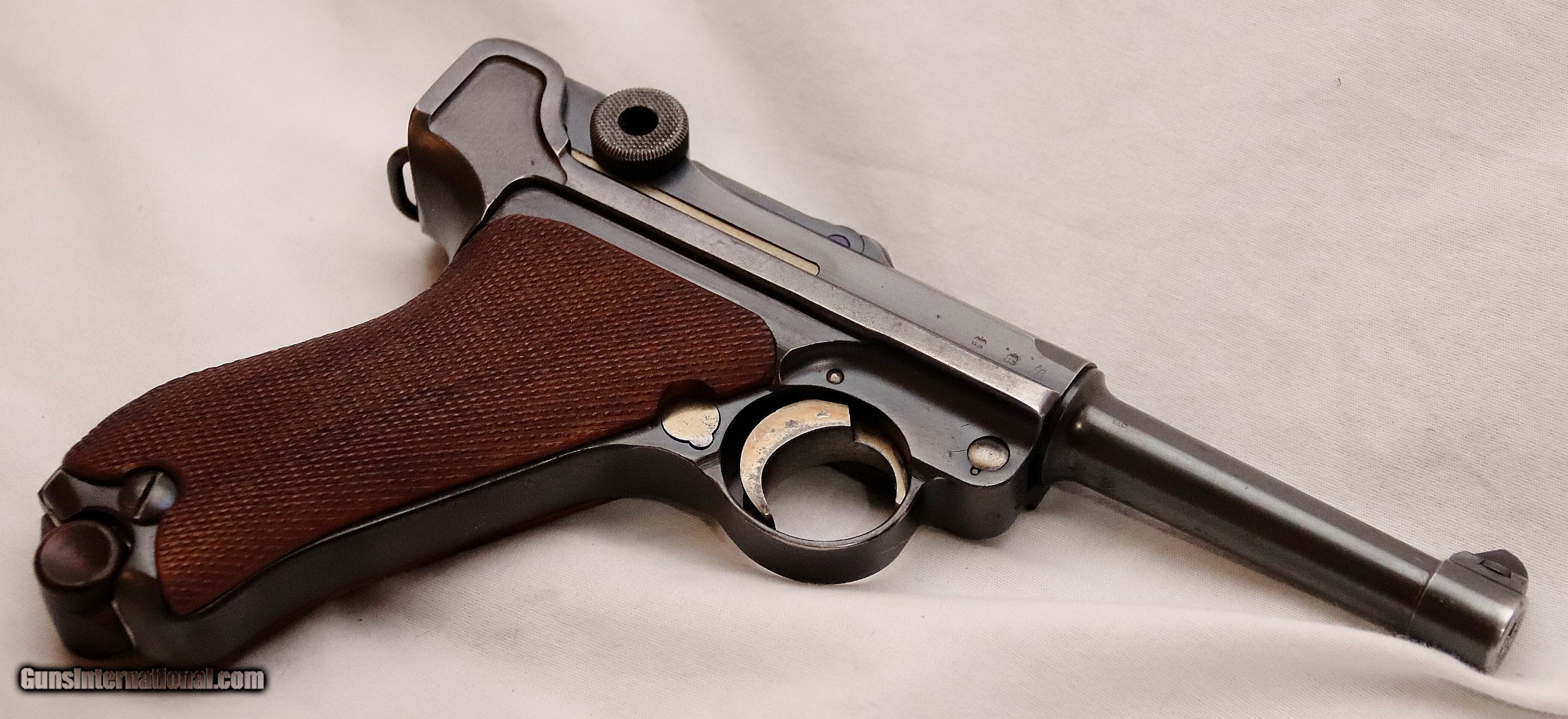 Description: In defiance of the treaty of Versailles Germany soon started re-arming. The first Nazi era Lugers were produced by the Mauser firm (Code S/42) and date marked “K” for 1934 production. In 1935 the date code was changed to “G” signifying that years production. In 1936 conventional date marking began with the date “1936” marked on top of the receiver. This particular “G” Date Luger (Pistole Model 08) survives in remarkable original condition. The original rust blue finish remains largely intact with minor holster wear showing on the high edges. There are a few very minor corrosion marks on the bottom rear of the barrel, as shown in the photos. The straw colored small parts retain excellent color. The original un-numbered grips remain sharp, free of chips, and Cracks. There are no pits or rust marks other that mentioned. This is NOT an imported Russian capture gun. Most likely a G.I. bring back. All serial numbered parts, excluding the Mag, have matching numbers, including the firing pin. The magazine is marked 4478 h. The bore is excellent and the function is flawless. This is an exceptional example of an early WW2 Luger and a great addition to the finest collection. 9mm with a 4” barrel. Serial Number 9990d FFL or C&R Required. Beaver Creek Arms TERMS & CONDITIONS Objective: As a collector of 35 years and Licensed Firearms Dealer since 1989 I have a clear definition of a satisfactory transaction. I will be paid as we agreed to, and you will be satisfied with your purchase. My goal is to establish a client list of satisfied repeat customers who will recommend me to other collectors. It’s just that simple. Exiled Saudi princes with secret funds needing change from an over paid purchase need not apply. Notice: ALL Federal, State, & Local firearms laws will be followed. I will take NO shortcuts in the process of a legal sale or transfer, so please don’t ask. SHIPPING: Normally shipments are made via U.S.P.S. Priority Mail, Insured, with a return receipt. Packing, Shipping and Insurance cost for this handgun is $40.00, Checks are to be made out to : STEVE CLARK Address: 380 Beaver Creek Rd. Dillsburg PA 17019 Availability: All items are in stock and available for immediate shipment. Please call or email and an Item will be held up to a week with your Name, Address, & Phone Number. Items marked Reserved are being held for awaiting payment or on layaway. If you are interested in a reserved item, please call or E-Mail to be placed on a backup list. FIREARMS: Modern firearms, post 1898, can only be shipped to a Type 01 Federal Firearms License address. Curio-Relic firearms, as defined by the BATF list, can usually be shipped to a Type 03 Collectors License address. Some states have additional restrictions such as CA, CT, DC, IL, MD, NJ and NY. A signed valid FFL license copy either mailed or emailed will be required for shipment to only the license address. Antique firearms, pre 1898 do not require a Federal License. For purchase, a copy of a Government Issued Identification (Driver’s License, Etc.), showing date of birth and current address will be required. GUARANTEE: Your complete satisfaction is assured, see objective above. If you are not satisfied, please contact me within 3 days of receipt. Please don’t fire the weapon, safety, function and accuracy are NOT Guaranteed. Any weapon offered by Beaver Creek Arms is never test fired nor is there any representation the gun is functional and safe to fire. These guns are sold for collectors and only represented as used firearms that must be checked by a competent person, observe all the necessary safety precautions prior to attempting to load and fire one of these weapons RETURNS: Returns must be made within 3 days of receipt. They must be received in exactly the same condition with no parts exchanged. If it has been altered, damaged, or fired, a refund will not be made. Packing, shipping and insurance cost will not be refunded. All layaway purchases are returnable for merchandise credit only. PAYMENT: Bank check, Personal check, and Money Orders are preferred. Visa and MasterCard are accepted with a 4% processing fee. For Visa and MasterCard orders please provide the account number, code number, expiration date, name on card, phone number and card billing address. This information can be phoned in, or E-Mailed. All orders must be paid in advance, C.O.D. orders are not accepted. Checks, both Bank and Personal must clear before the order will be shipped, usually a 2 week delay. LAYAWAYS: A 20% deposit is required. Balance is due in 30 days. Deposits are non-refundable and are forfeited after 30 days. Layaway sales are returnable for merchandise credit only. SALES TAX: Pennsylvania state sales tax is 6% for in state purchases. The payment of other states sales tax, if applicable, for shipped items is the buyer’s responsibility. DISCREET: Client information will remain Confidential. Your privacy is protected. SOLD Curio/Relic: Yes |
