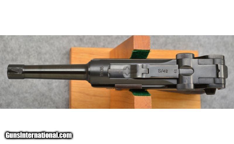 Description: Good condition overall, appears to have been refinished. Numbers match on metal, replacement 8 round capacity magazine. 1936 chamber date. SOLD Manufacturer: Circa: 1936 Caliber Info: 9mm Parabellum ( 9x19mm ) Metal Condition: Good Bore Condition: Good Barrels: 4 Triggers: Single Action Stock: Checkered Synthetic Grips Weight: 2 lbs. Sights: Fixed Open Sights Item Location: Hamburg, PA |