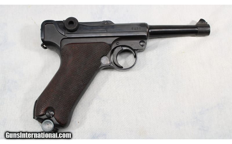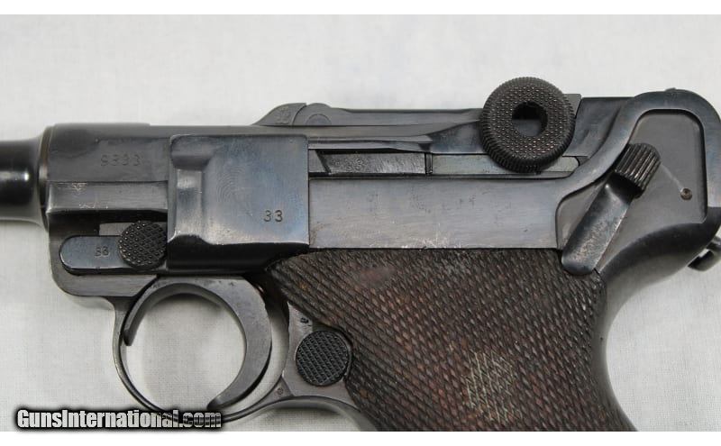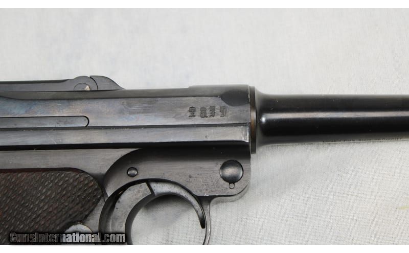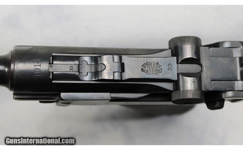 Description: 1914 DWM Luger Model P-08 pistol chambered in 9 mm Luger, The bluing is excellent with only minor marks. The wood grips have a couple small dents, but are free of cracks or chips. NO SALES TAX ON FIREARMS SOLD IN WEST VIRGINIA. 9mm Luger SOLD Chambers: 9MM LUGER Metal Condition: EXCELLENT Wood Condition: EXCELLENT Bore Condition: EXCELLENT Barrels: 4 Item Location: Morgantown, WV |