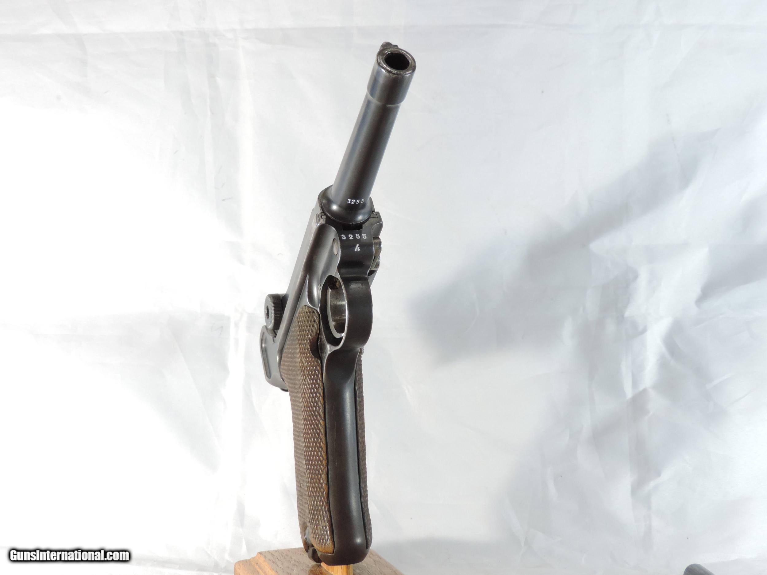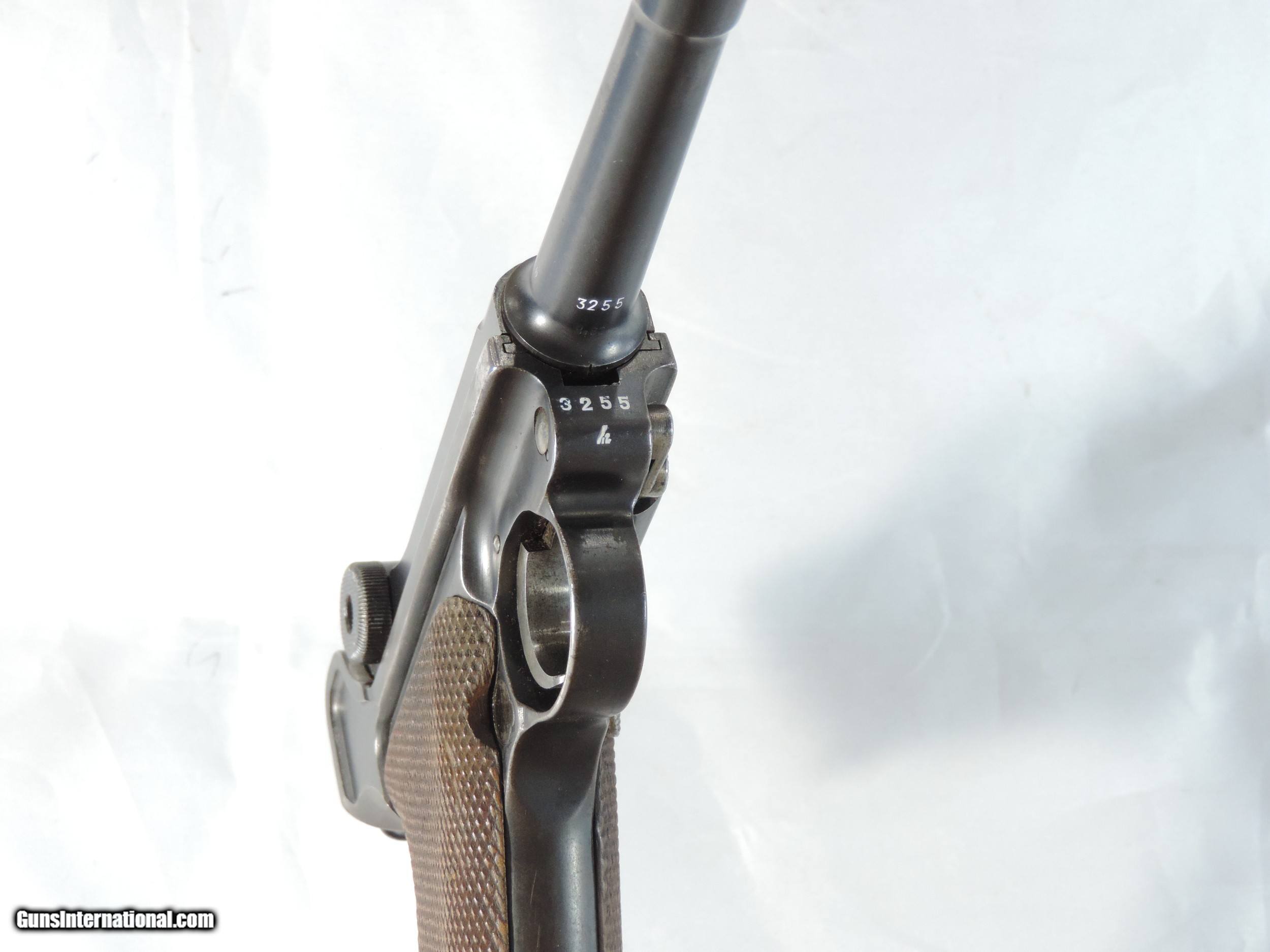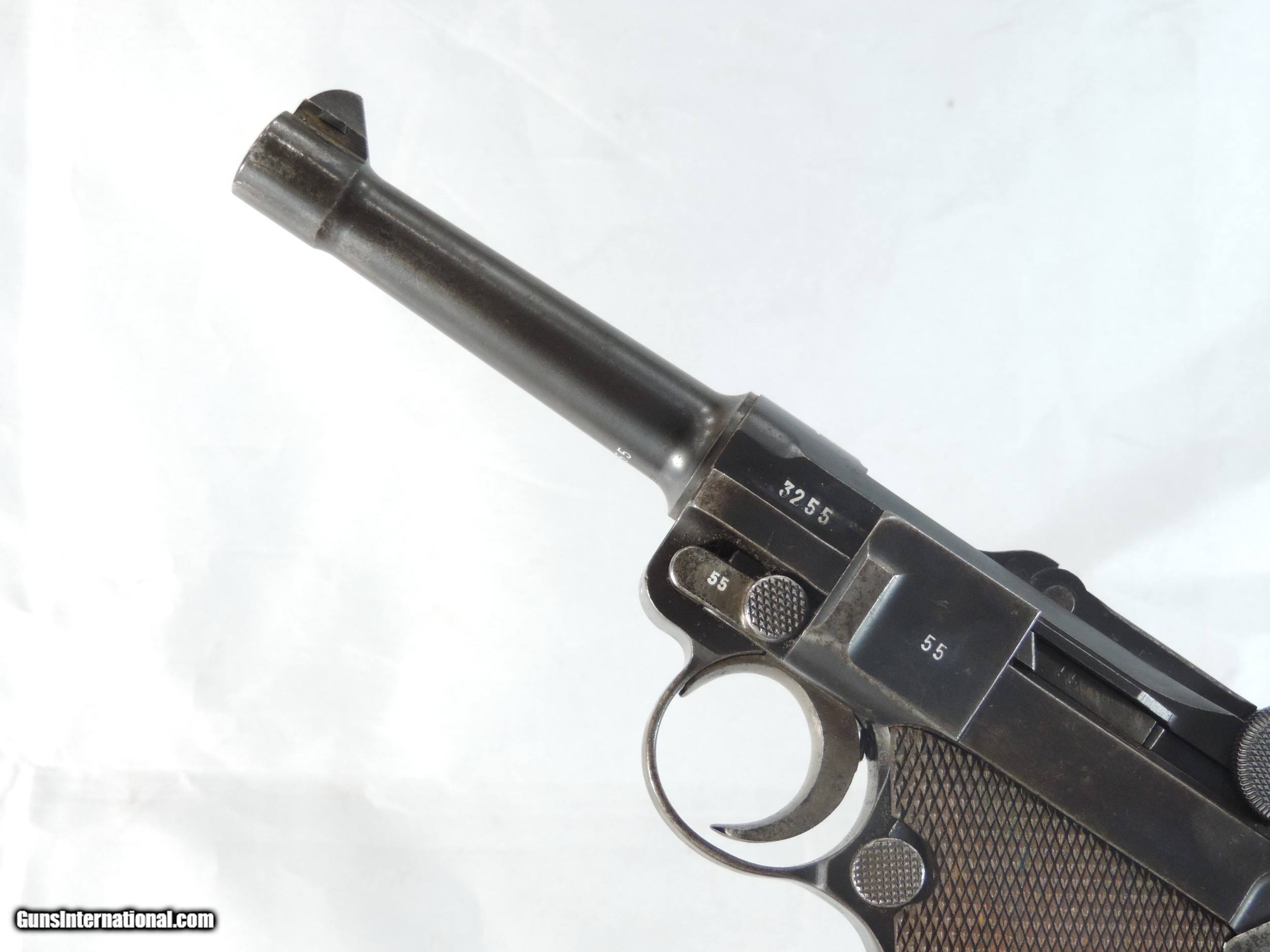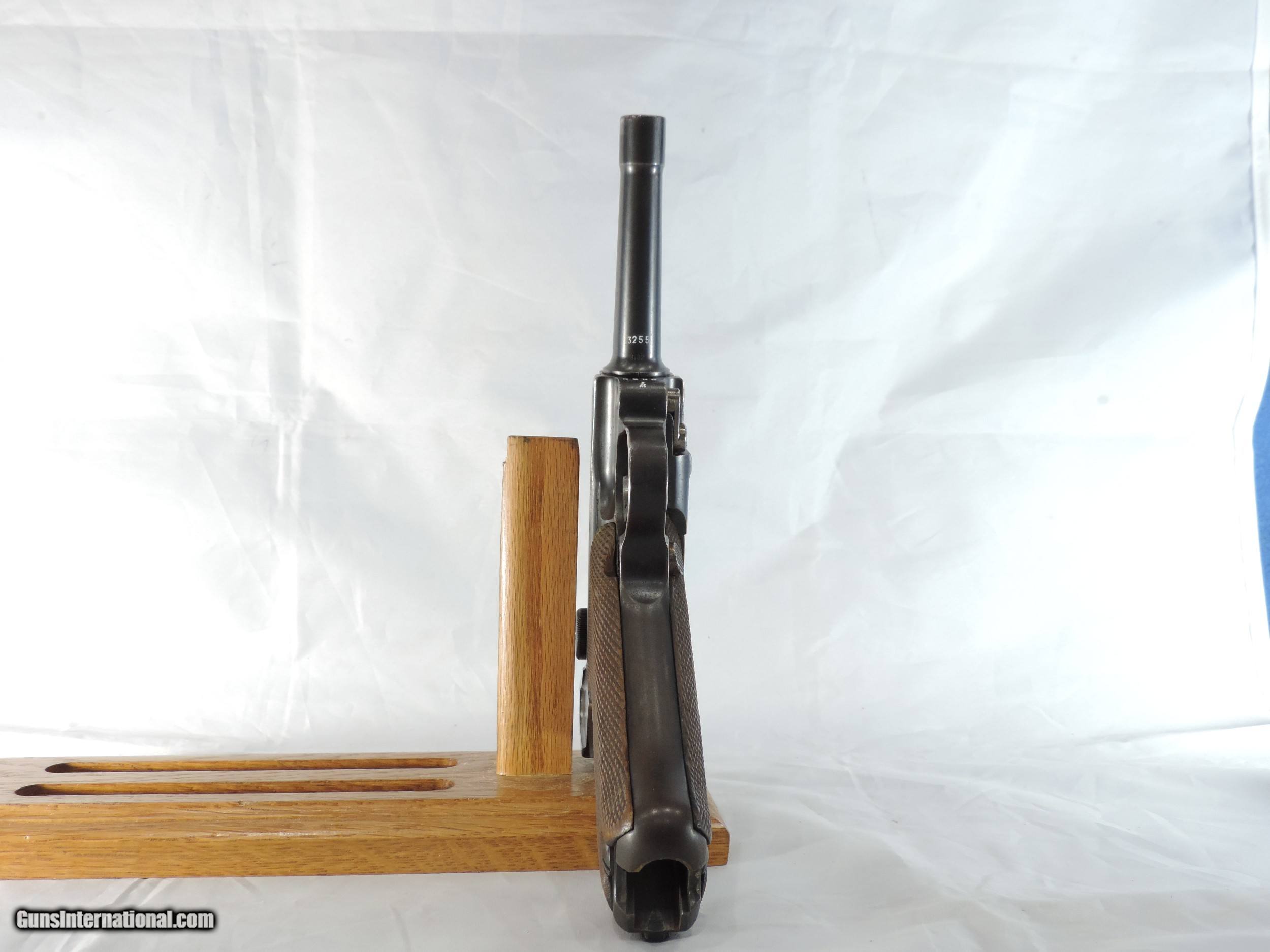 Description: INV. 7900 MAUSER (NAZI LUGER) P-08, S/42 1936, CAL. 9 MM, SER. 3255 h. THE BLUED AND THE STRAWED PARTS FINISH WOULD RATE ABOUT 90-95%. THERE IS THE USUAL SHARP EDGE SILVERING, SIDE PLATE WEAR AND SCATTERED LIGHT PIN PRICKS FROM HOLSTER STORAGE. THE GRIP STRAPS SHOW VERY LITTLE TONING. ALL PARTS HAVE THE PROPER NAZI WAFFENAMTS. THE CHECKERED GRIPS ARE PERFECT, NO SPLITS, DINGS OR FLATTENED POINTS. THE SLIDE RAILS, BOLT FACE, AND FEED RAMP SHOW LITTLE USE. THE BORE IS MIRROR BRIGHT WITH RAZOR SHARP REFILING AND A TOUCH OF LIGHT SCATTERED FROST. IT COMES WITH ONE NON MATCHING MAGAZINE. FOR THE COLLECTOR/SHOOTER THAT DOESN'T NEED A MINTY GUN HERE'S A CHANCE TO GET A REALLY FINE EXAMPLE AT A VERY MODEST PRICE. ONLY.....SHIPPED ... $2095.*** ***PURCHASE SATISFACTION GUARANTEED. To purchase this firearm or if you want to request more information contact us at: Email ckguns[at]ymail[dot]com Phone 201-512-0002 Cell 201-575-6838 FAX 201-215-4759 We accept most major credit cards. Prices shown are Discounted 3% for Cash or Check. The buyer must be familiar with all the laws governing the purchase and the ownership of firearms in their own city and state. The Yankee Armorer, Inc is not responsible for any failure to comply with or observe these laws. The Yankee Armorer, Inc will only ship after full payment and receipt of all required documents. Shipping: Add $35.00 for handguns, $45.00 for long guns. New Jersey buyers are subject to a 7% sales tax. The Yankee Armorer, Inc offers a 3 day inspection period with full refund upon return of intact firearm and in the original condition. The Yankee Armorer, Inc offers a no interest lay away program - 25% down; 25% in 30 days; 25% in 60 days; and full payment in 90 days. Any violation of this policy is subject to restocking and forfeiture of all payments. Any variation from this policy must be agreed to in advance. Unshipped Cancelled sales are subject to a 20% restocking fee. Be advised that all firearms sold by The Yankee Armorer, Inc. or the Gun Exchange, LLC (SELLER) are sold as collector’s items. They have not been fired or tested for safety and must be examined by a license gunsmith prior to use. By purchasing any item from the (SELLER), you are agreeing to hold the (SELLER) free from any damages or lawsuits of any nature. Any item left for transfer or storage will be charged to $25.00 per month, per item from the day of its receipt. Any variation from this policy must be agreed to in advance. Store hours 10:00 am to 5:00 pm Tuesday -Saturday. It's always best to call for appointment. Store 201-512-0002, cell 201-575-6838. SOLD Handgun Caliber: 9x19mm Parabellum (9mm Luger, 9x19mm NATO) |