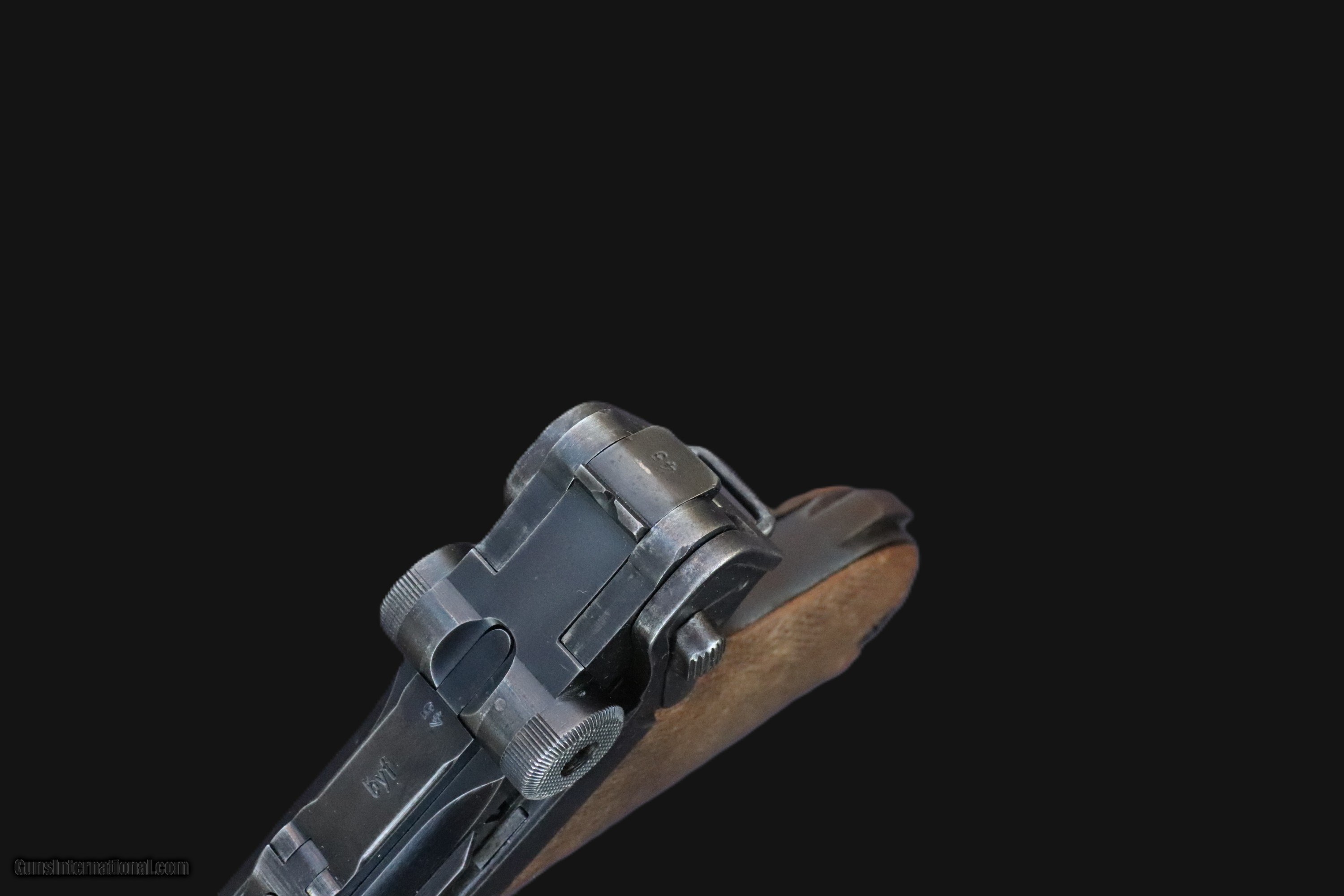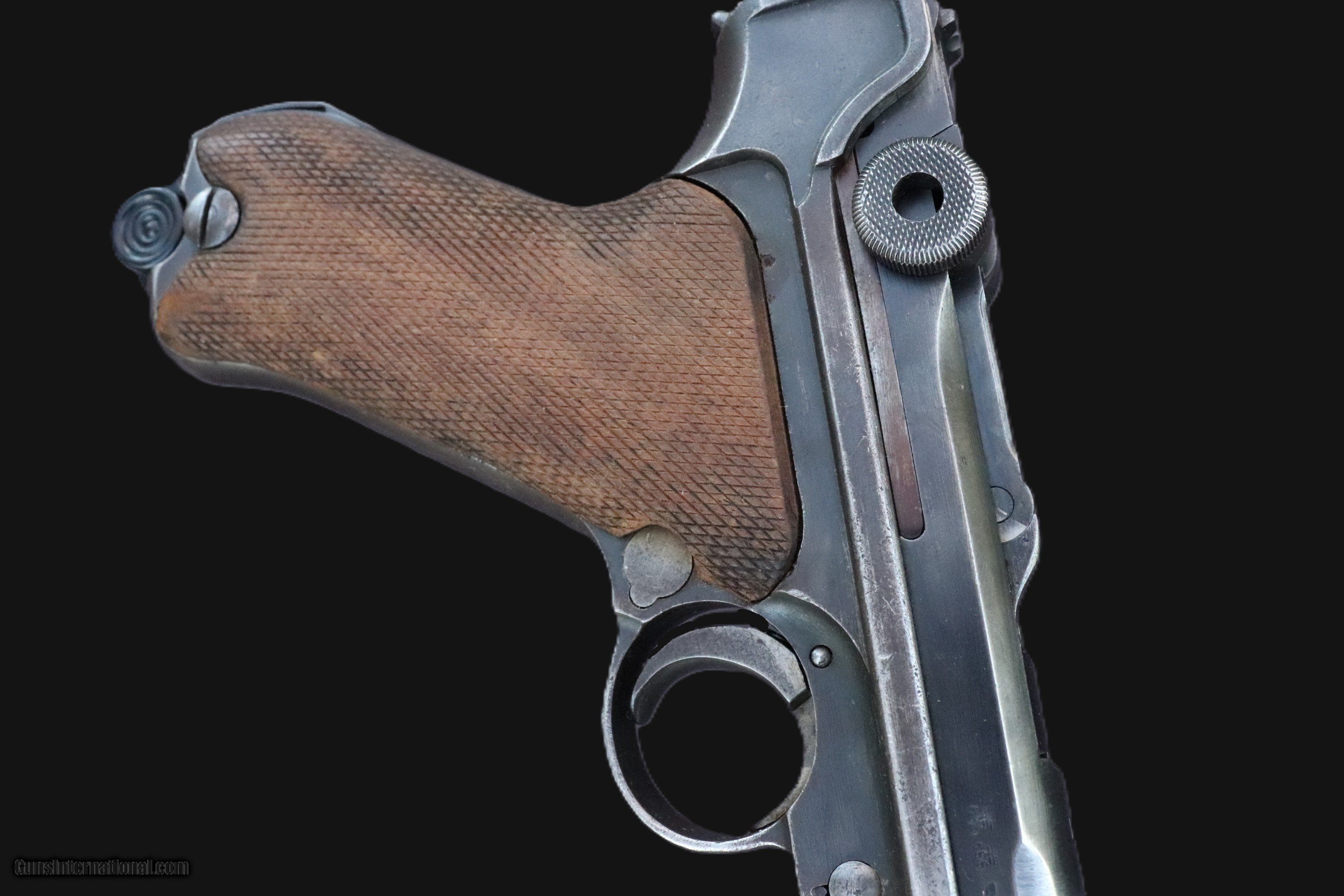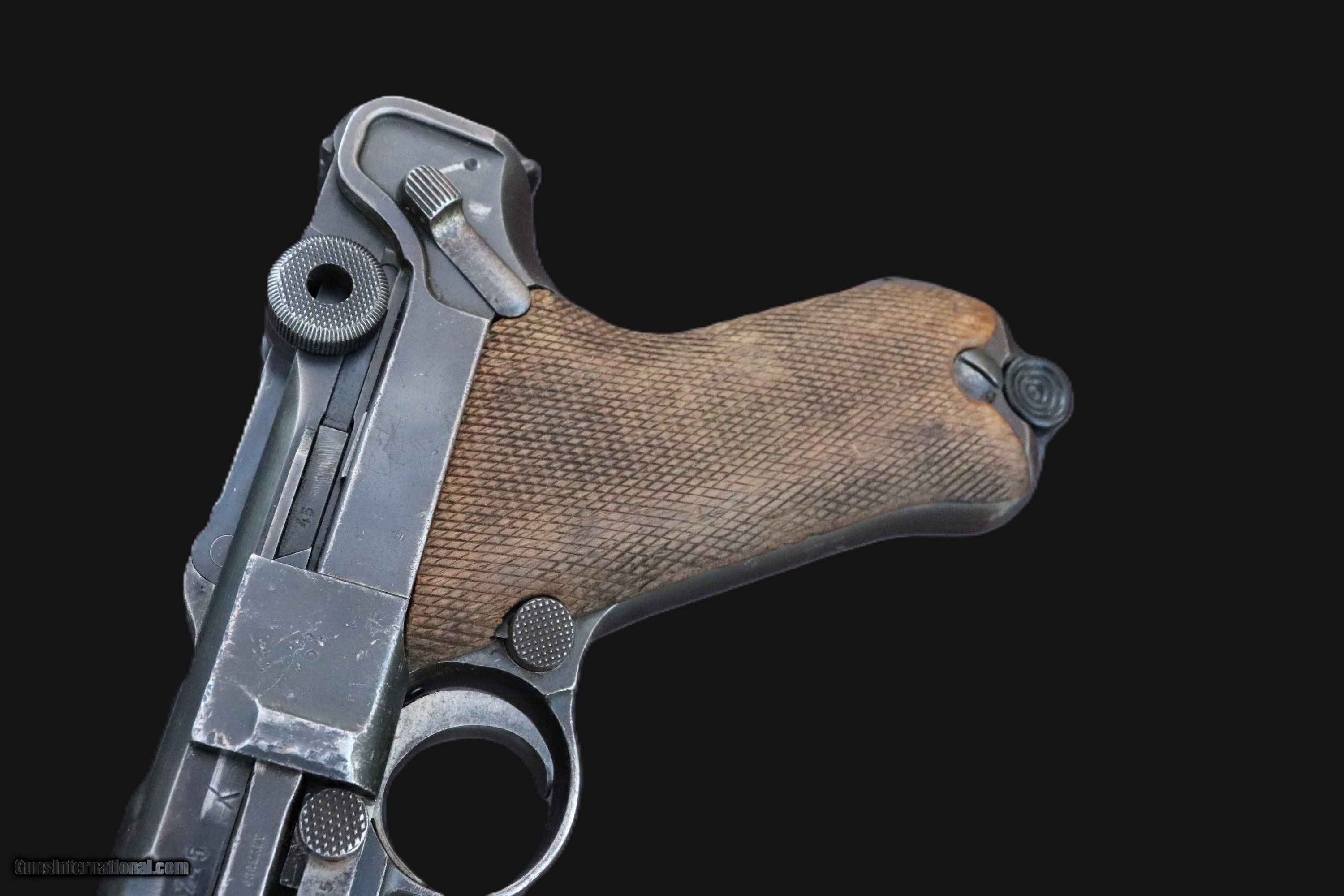 Description: On consignment we have a Mauser BYF P08 Luger in 9mm. This gun shows mismatched serial numbers although most of the upper slide/barrel assembly is matching with 1941 chamber date. Grips are checkered wood with aftermarket magazine. Gun is mechanically excellent with a clean bore and sharp rifling. Yes, we will accept firearms on trade. Email us for details. Please contact us with any questions, or for purchase options. We accept AmEx, VISA, MC, and Discover. All items ship fully insured. The gun in the photos is the gun you will receive. Ask us about expedited shipping. Price reflects 3% Cash Discount. Check us out online at lanefirearms Have firearms to sell? Ask us about our consignment program. We also purchase firearms and firearm collections. RETURN POLICY: Lane Firearms will accept returns on firearms that arrive at the transferring dealer in a condition other than advertised in the listing. Returns MUST be left with the transferring dealer. If a customer completes a 4473 and/or takes possession of the firearm, Lane Firearms considers this acceptance of condition, and no refund will be offered. We do not refund shipping costs, and will not pay for return shipping. Curio/Relic: Yes Handgun Caliber: 9x19mm Parabellum (9mm Luger, 9x19mm NATO) Manufacturer: Mauser Model: Luger Serial Number: 2755d Barrel Length: 4 Price: $1,299.99 Shipping: $35.00 Contact Seller |