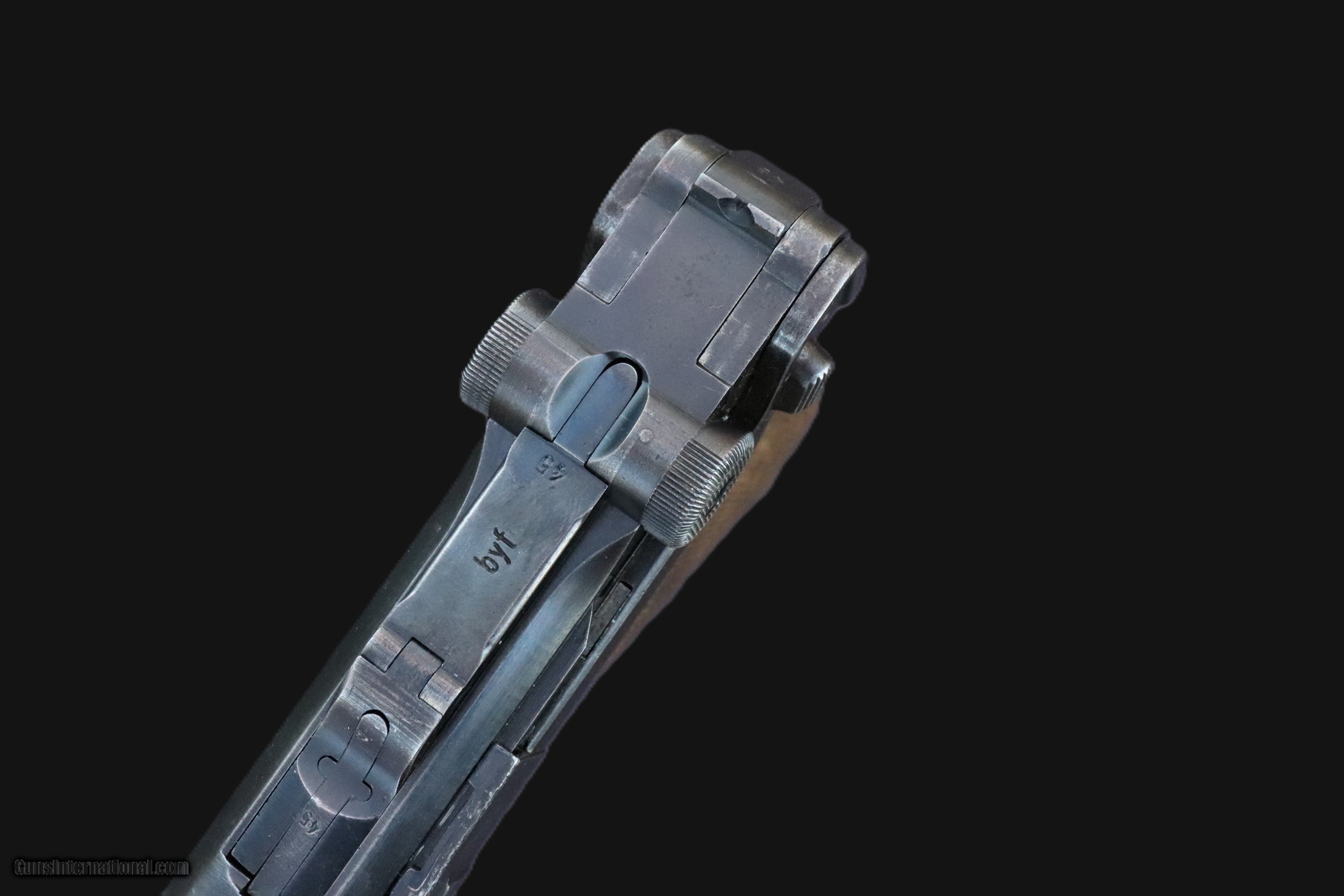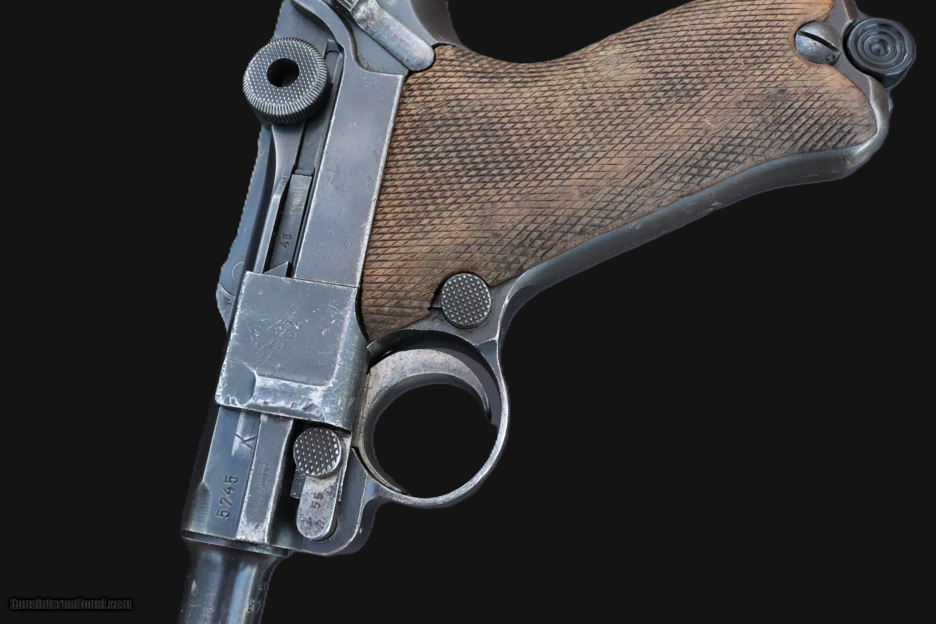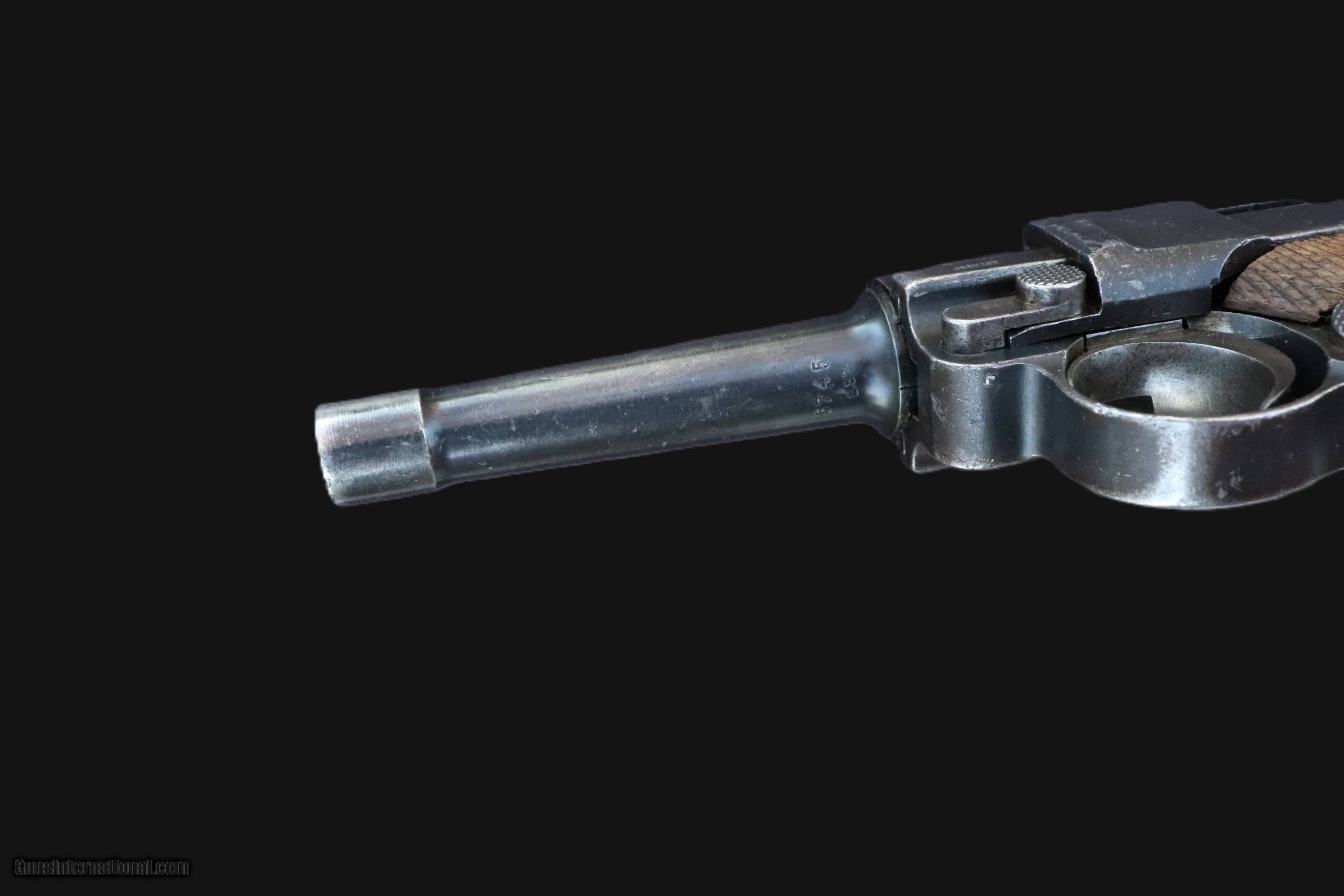 Description: On consignment we have a Mauser BYF P08 Luger in 9mm. This gun shows mismatched serial numbers although most of the upper slide/barrel assembly is matching with 1941 chamber date. Grips are checkered wood with aftermarket magazine. Gun is mechanically excellent with a clean bore and sharp rifling. Yes, we will accept firearms on trade. Email us for details. Please contact us with any questions, or for purchase options. We accept AmEx, VISA, MC, and Discover. All items ship fully insured. The gun in the photos is the gun you will receive. Ask us about expedited shipping. Price reflects 3% Cash Discount. Check us out online at lanefirearms Have firearms to sell? Ask us about our consignment program. We also purchase firearms and firearm collections. RETURN POLICY: Lane Firearms will accept returns on firearms that arrive at the transferring dealer in a condition other than advertised in the listing. Returns MUST be left with the transferring dealer. If a customer completes a 4473 and/or takes possession of the firearm, Lane Firearms considers this acceptance of condition, and no refund will be offered. We do not refund shipping costs, and will not pay for return shipping. Curio/Relic: Yes Handgun Caliber: 9x19mm Parabellum (9mm Luger, 9x19mm NATO) Manufacturer: Mauser Model: Luger Serial Number: 2755d Barrel Length: 4 Price: $1,299.99 Shipping: $35.00 Contact Seller |