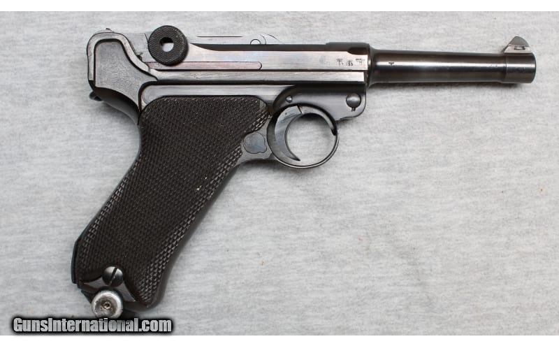 Description: Mauser "BYF" p.08 Luger in 9MM Luger. This is a World War II Mauser 1941 Production, "byf" Code P.08 Luger Semi-Automatic Pistol. This is a blued pistol with checkered grips and 4-inch barrel. It has fixed sights, with "41" on the chamber and "byf" on the toggle. The numbers match overall with "eagle/655" and "eagle/swastika" proofs on the appropriate parts. Includes 1 blued magazine with an aluminum base with matching number. 9mm Luger SOLD Curio/Relic: Yes Metal Condition: Excellent Wood Condition: Excellent Bore Condition: Bright Barrels: 4 Inches Triggers: Factory Sights: Fixed sights Item Location: La Vista, NE |