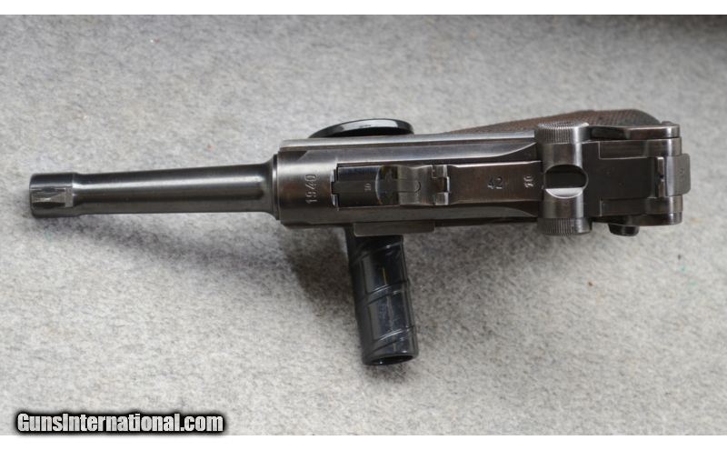 Description: SOLD Curio/Relic: Yes Manufacturer: 1940 Caliber Info: 9MM Luger Metal Condition: Very good to excellent. Bluing a little bit faded and worn from the high points. Wood Condition: Very good to excellent with minimal wear. Bore Condition: Bright and shiny. Barrels: 4 Inch Stock: Checkered walnut Weight: 2 lbs Sights: Post and notch Extras: One blued magazine with aluminum knob. Not serialized. Item Location: Rogers,, MN |