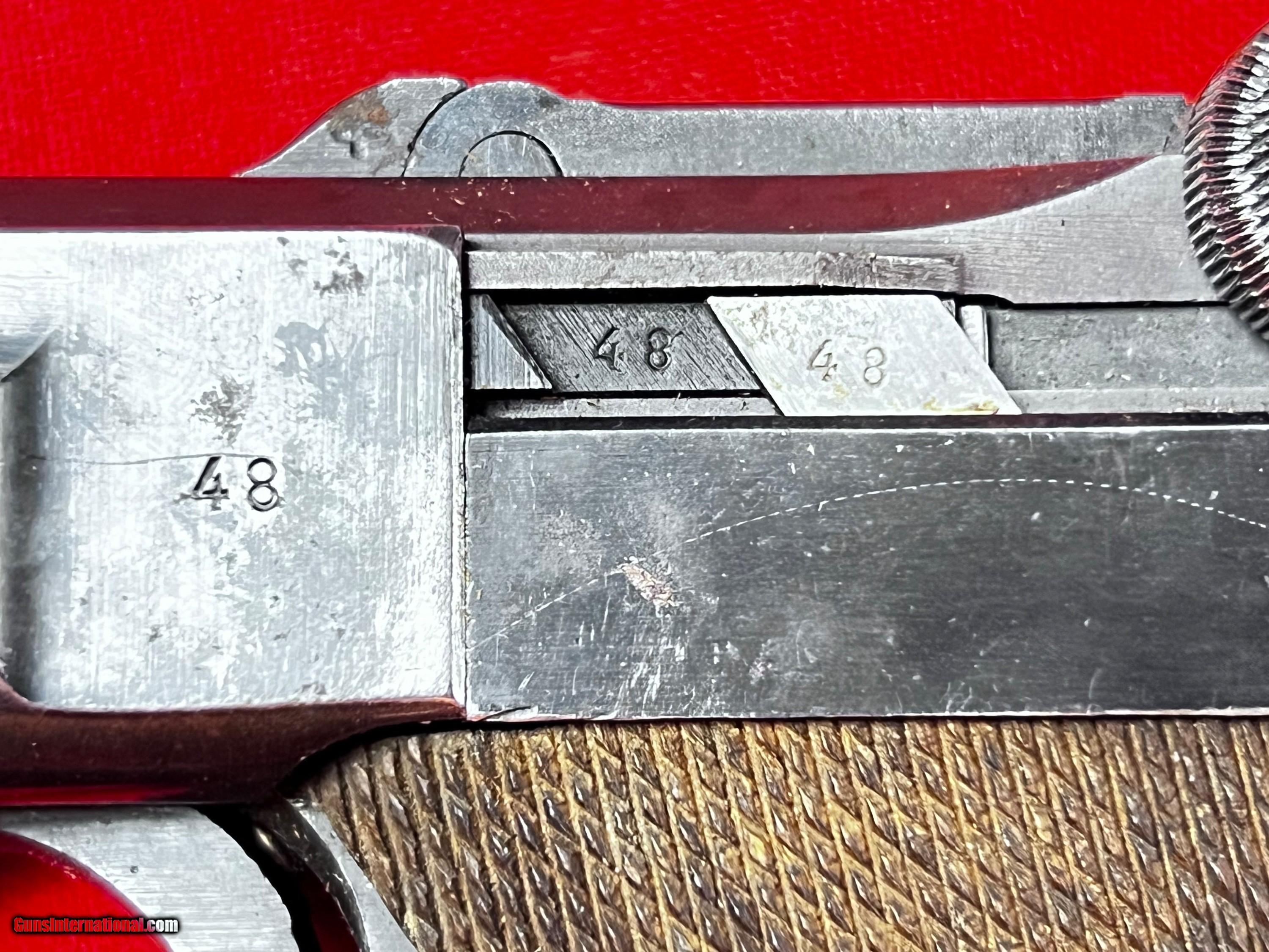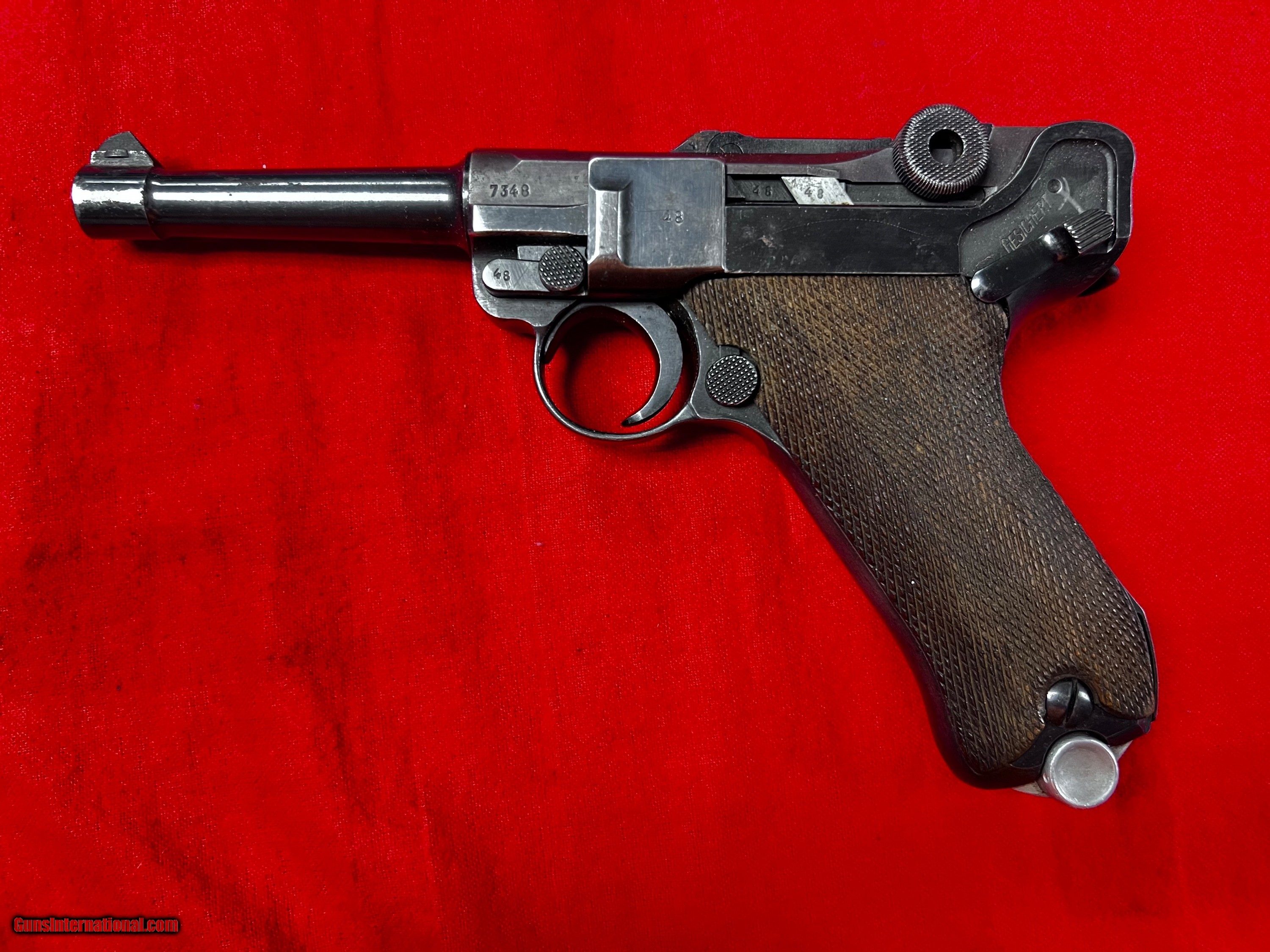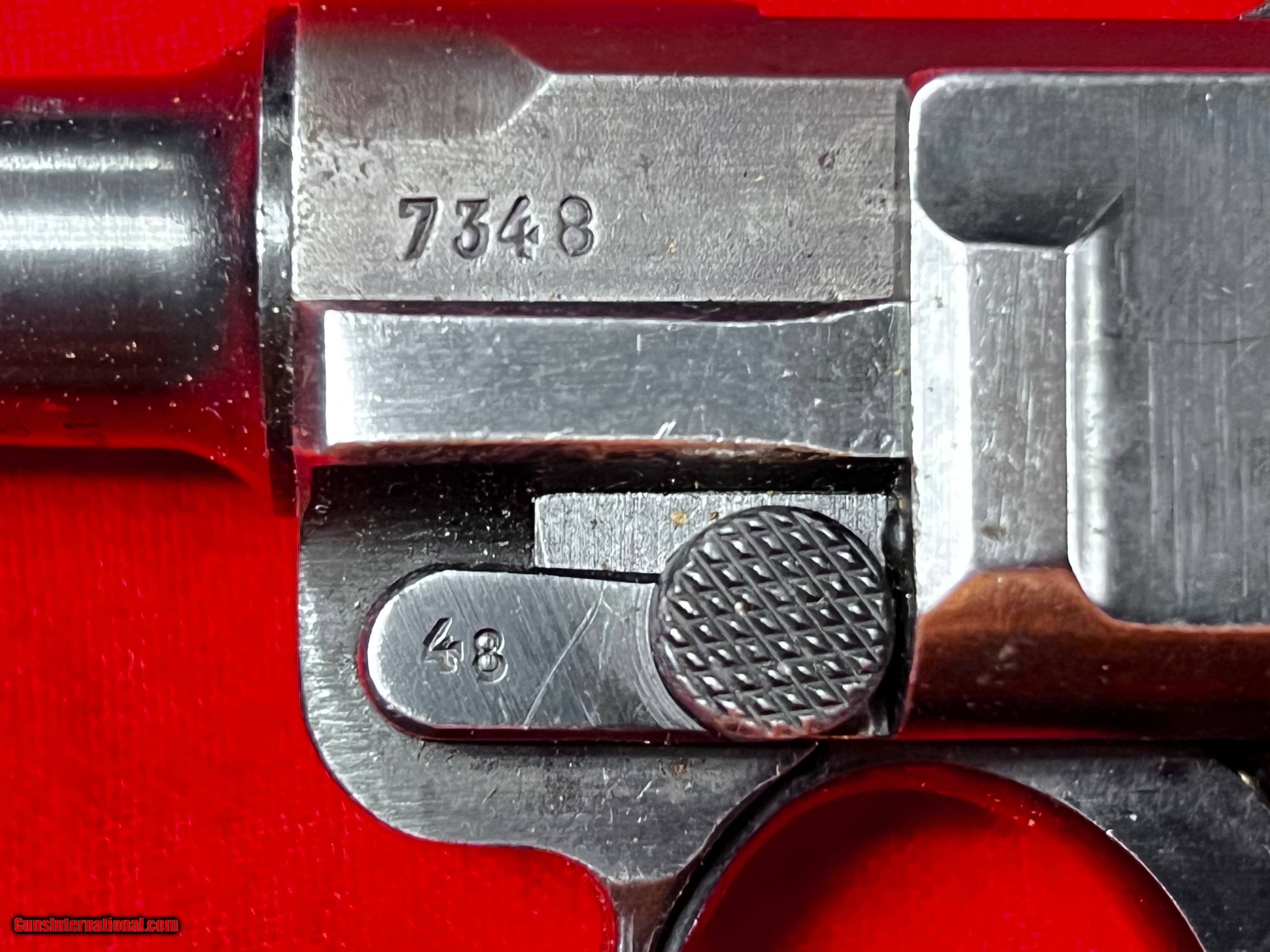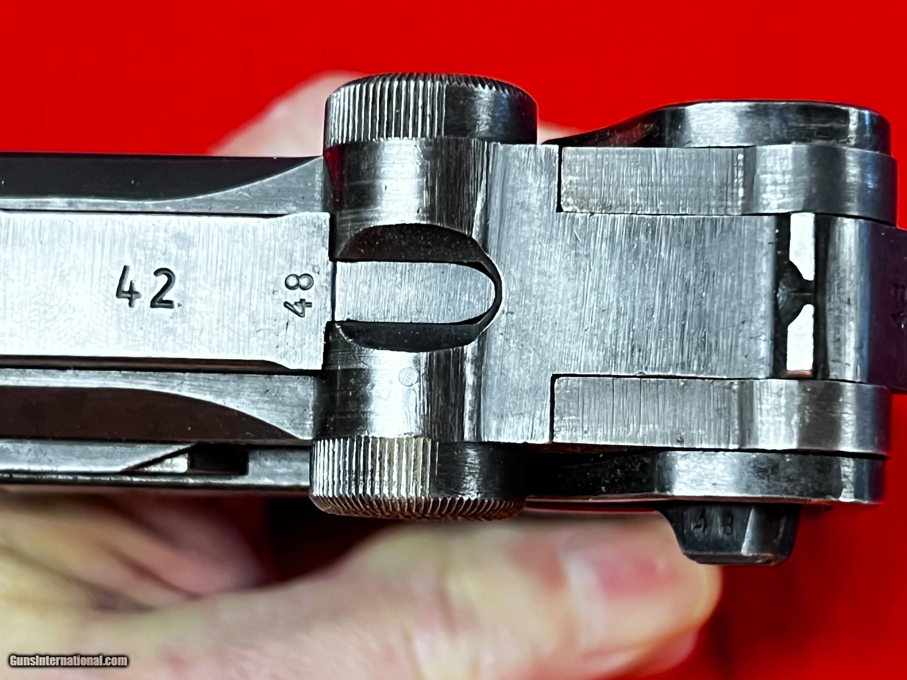 Description: All matching including the magazine and firing pin Mauser 1939 42 marked P08 military Luger with holster and two magazines bright shiny bore Curio/Relic: Yes Price: $2,975.00 Contact Seller |
