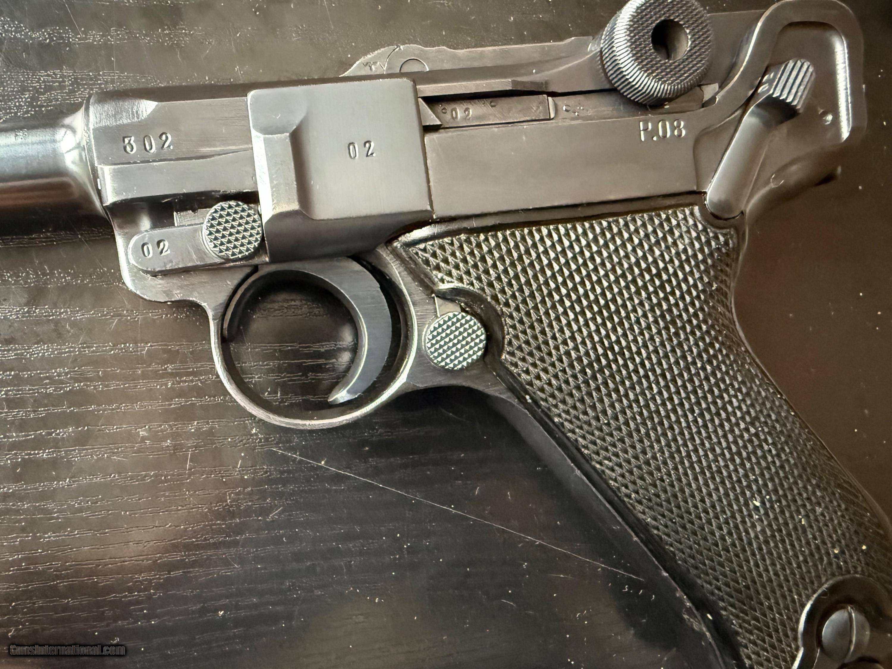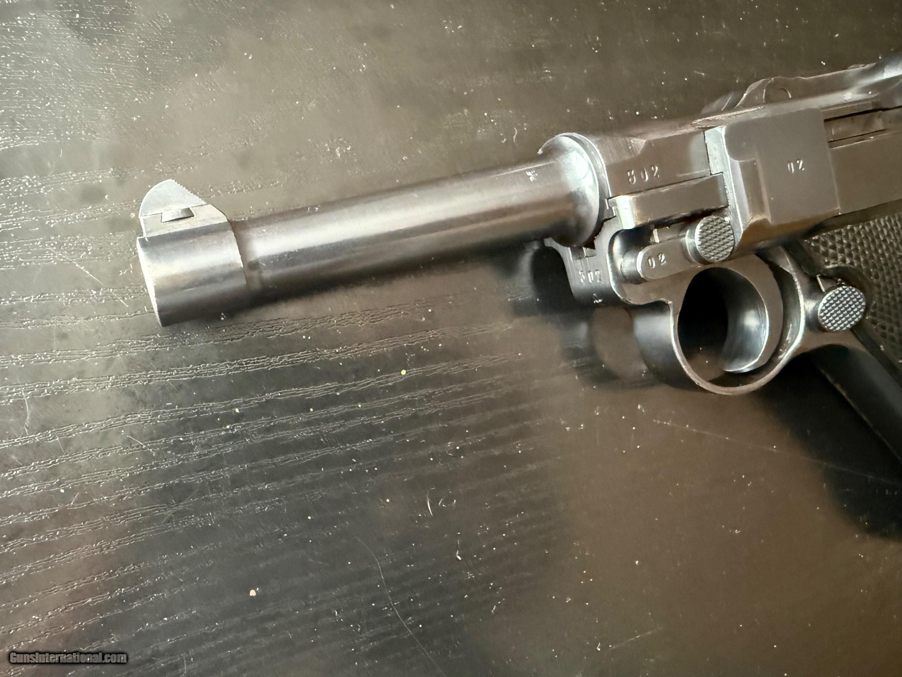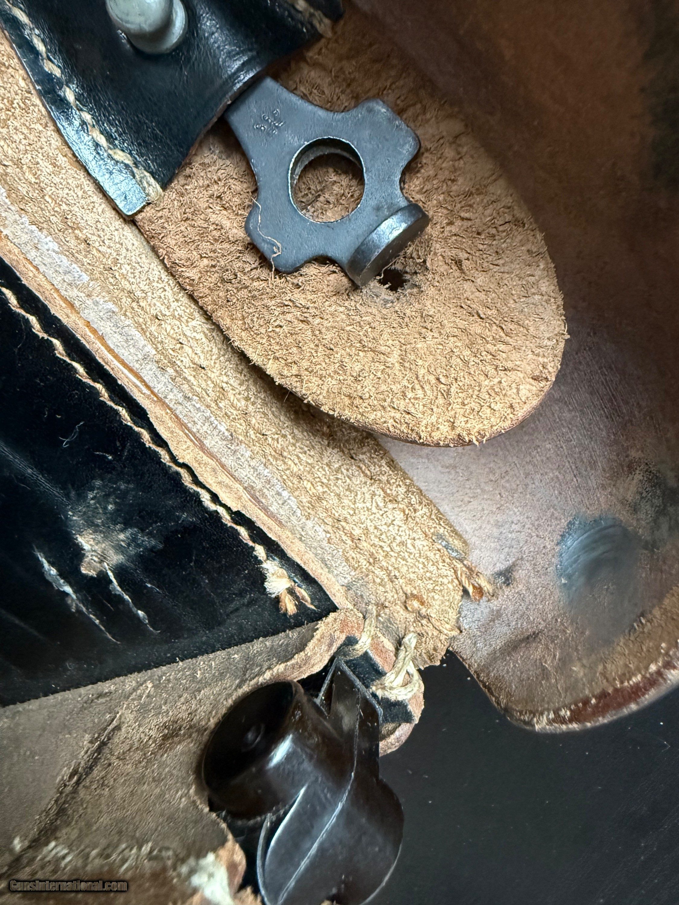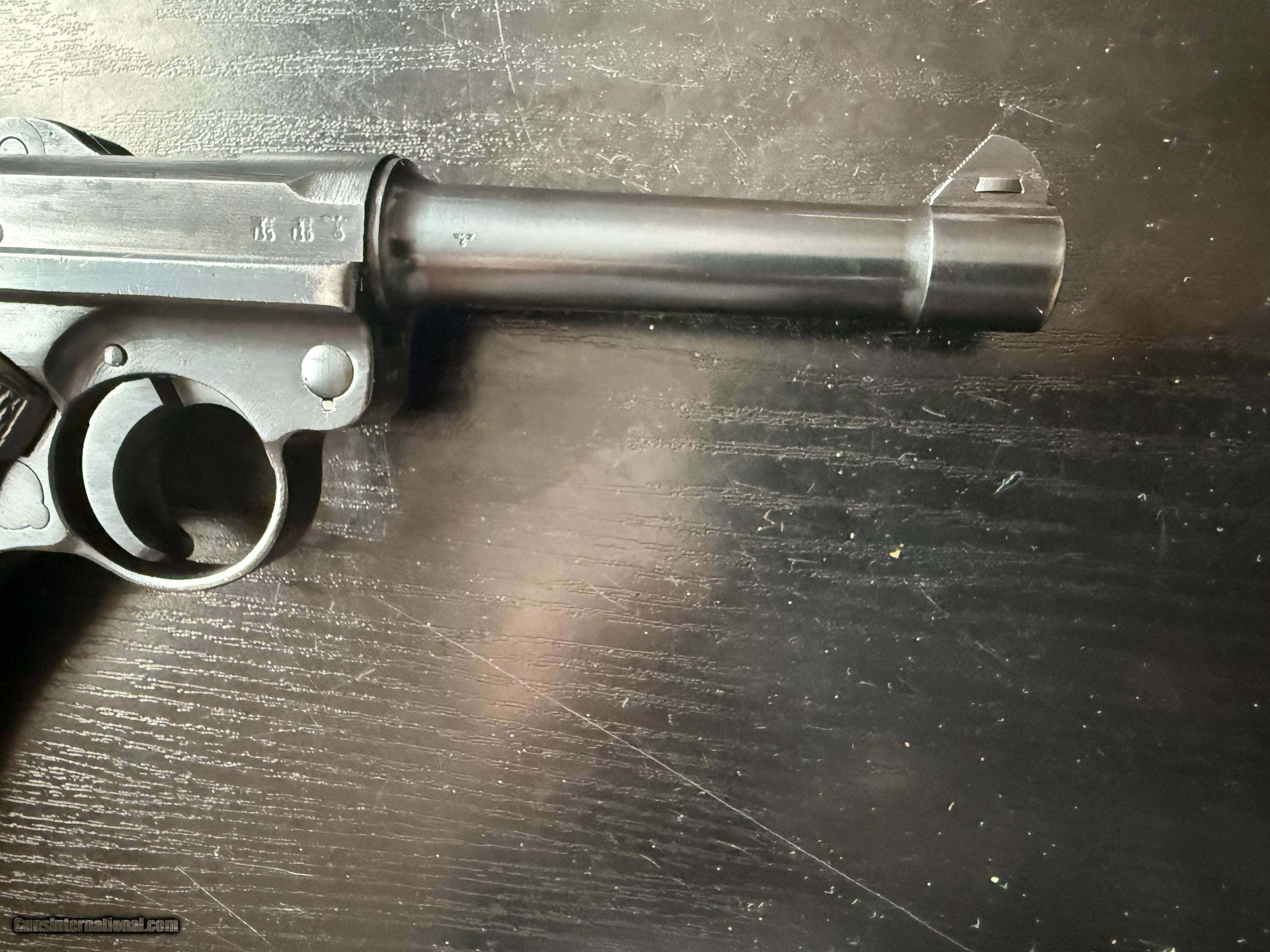 Description: This is perhaps the best condition Luger "Black Widow" pistol that had been in my collection for over 20 years - a BYF41, chambered in 9 mm Para, with 3-digit serial number. The gun is in immaculate 99%+ condition with just a touch of wear on the tip of the right frame rail and on the lower edge of the side plate hump. The finish is all original. Minty bore and minty original grips. All matching, including the firing pin and a rear toggle axle pin. The holster is near mint, 1941 coded and maker marked. The gun comes with 2 original Bakelite bottom magazines in excellent condition and an Eagle/655 coded digital sassembly tool. This is an incredible all original rig that cannot be upgraded. 3-day inspection. FFL or C&R(where legal) $75 shipping in CONUS. Curio/Relic: Yes Price: $6,950.00 Contact Seller |