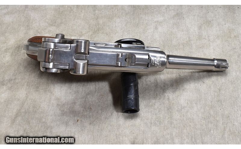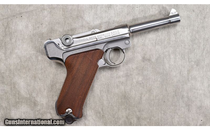 Description: Mitchell Arms reproduction of the P-08 Luger in stainless steel is one of the best reproductions there is. It is good enough that the magazines are interoperable with originals. It features slightly brushed stainless steel construction as well as sharply checkered walnut grips. 9mm Luger SOLD Chambers: 8 Metal Condition: Excellent. Wood Condition: Excellent. Bore Condition: Shiny and bright with sharp rifling. Barrels: 4-inch Triggers: Factory single action trigger. Butt Pad: Checkered walnut grips. Weight: 29 oz. Sights: Post and notch Item Location: Rogers |