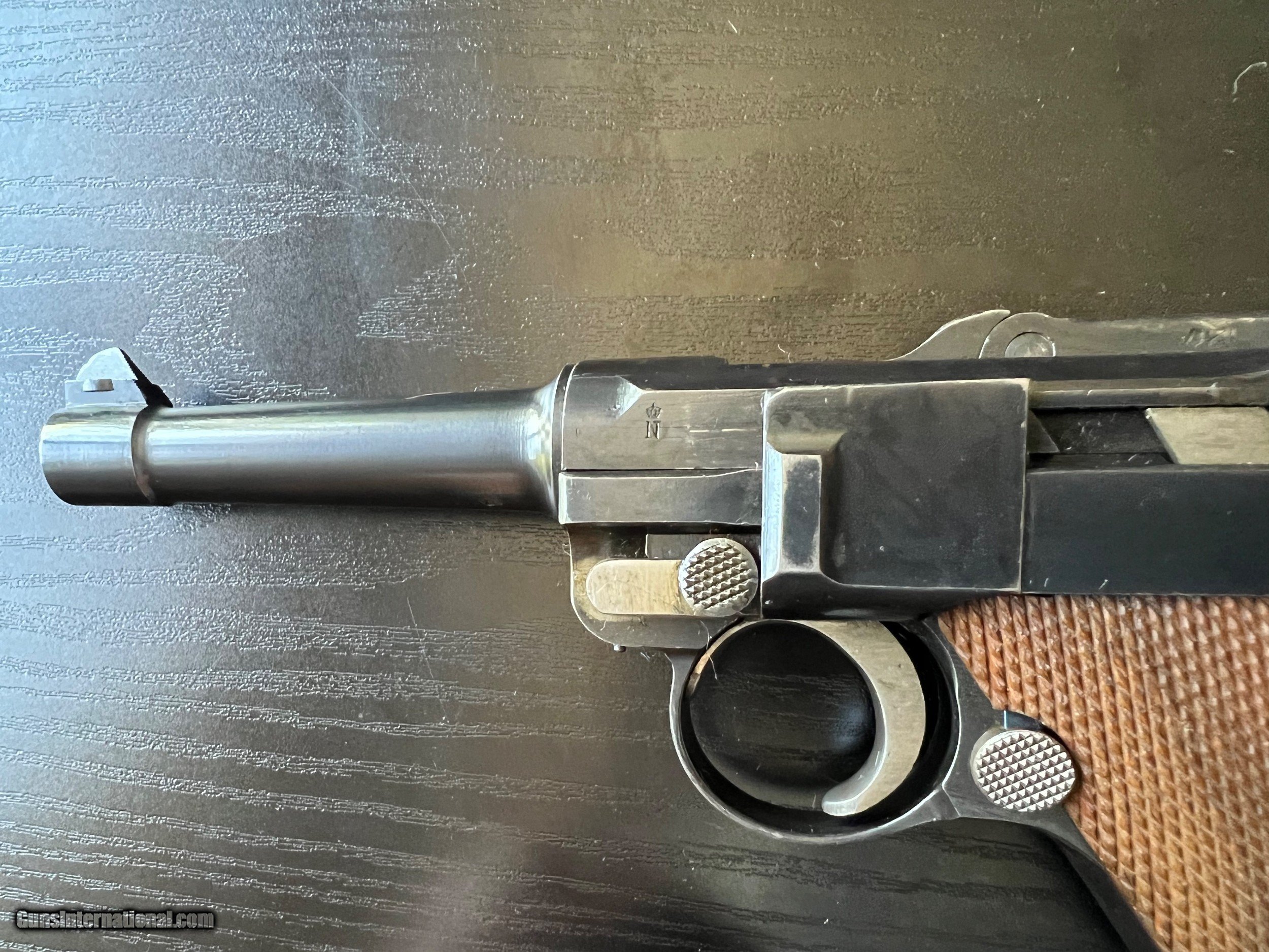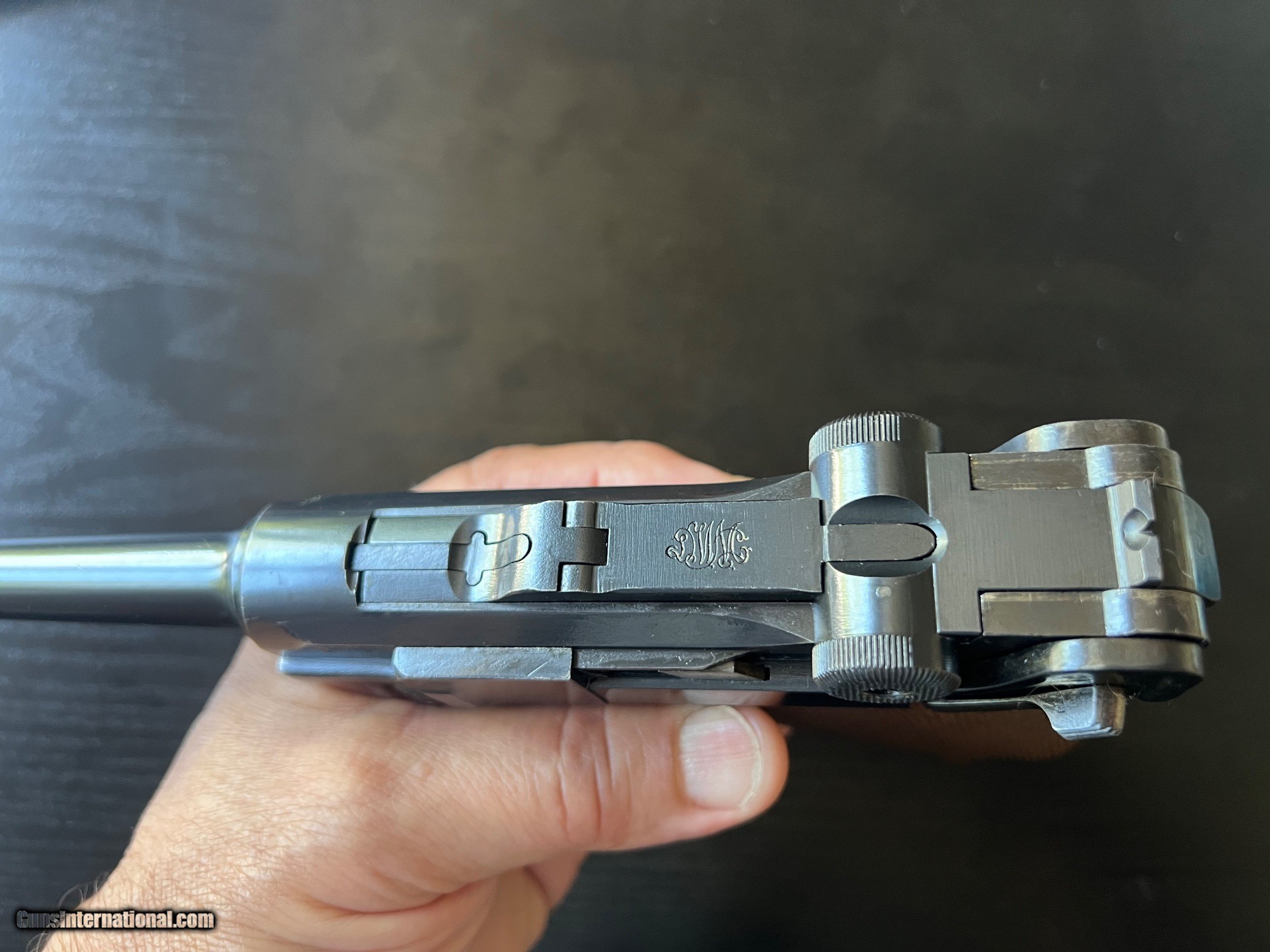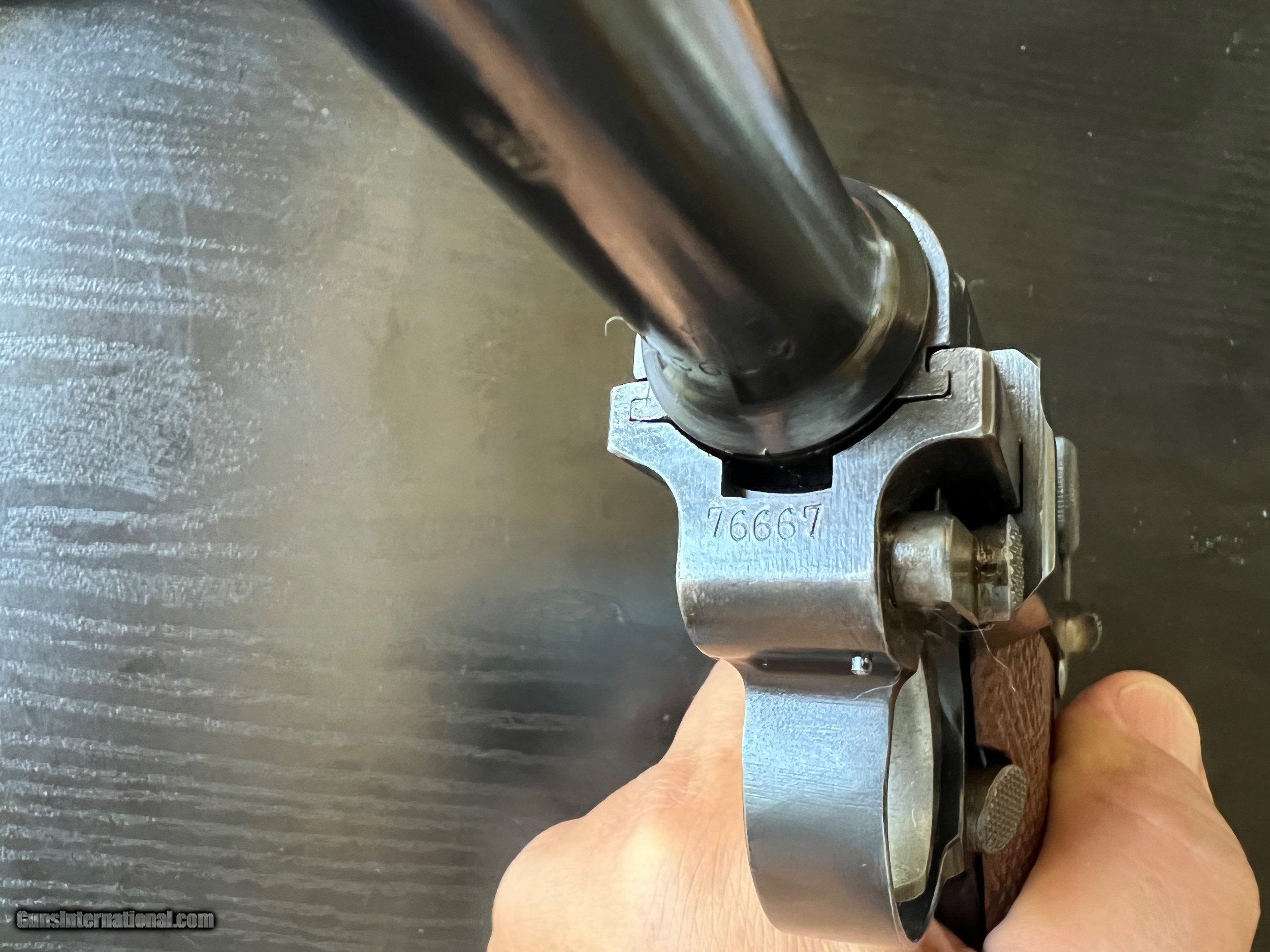 Description: SOLD: This is an incredible near mint example of a German Luger pistol made in the last years of WWI and chambered in .30 Luger. The gun appears near new with just a hint of wear on the side plate and a couple of minute handling marks hear and there and retains around 99% of its original blueing. Nearly all of "straw" color is present on the small parts. All matching with a beautiful bore and grips. Has a matching numbered magazine which points to a private officer purchase in the closing months of WWI. Sharp markings throughout. A great collector grade pistol that is over 100 years old! 3-day inspection. FFL or C&R (where allowed). $30 shipping in CONUS. SOLD Curio/Relic: Yes |