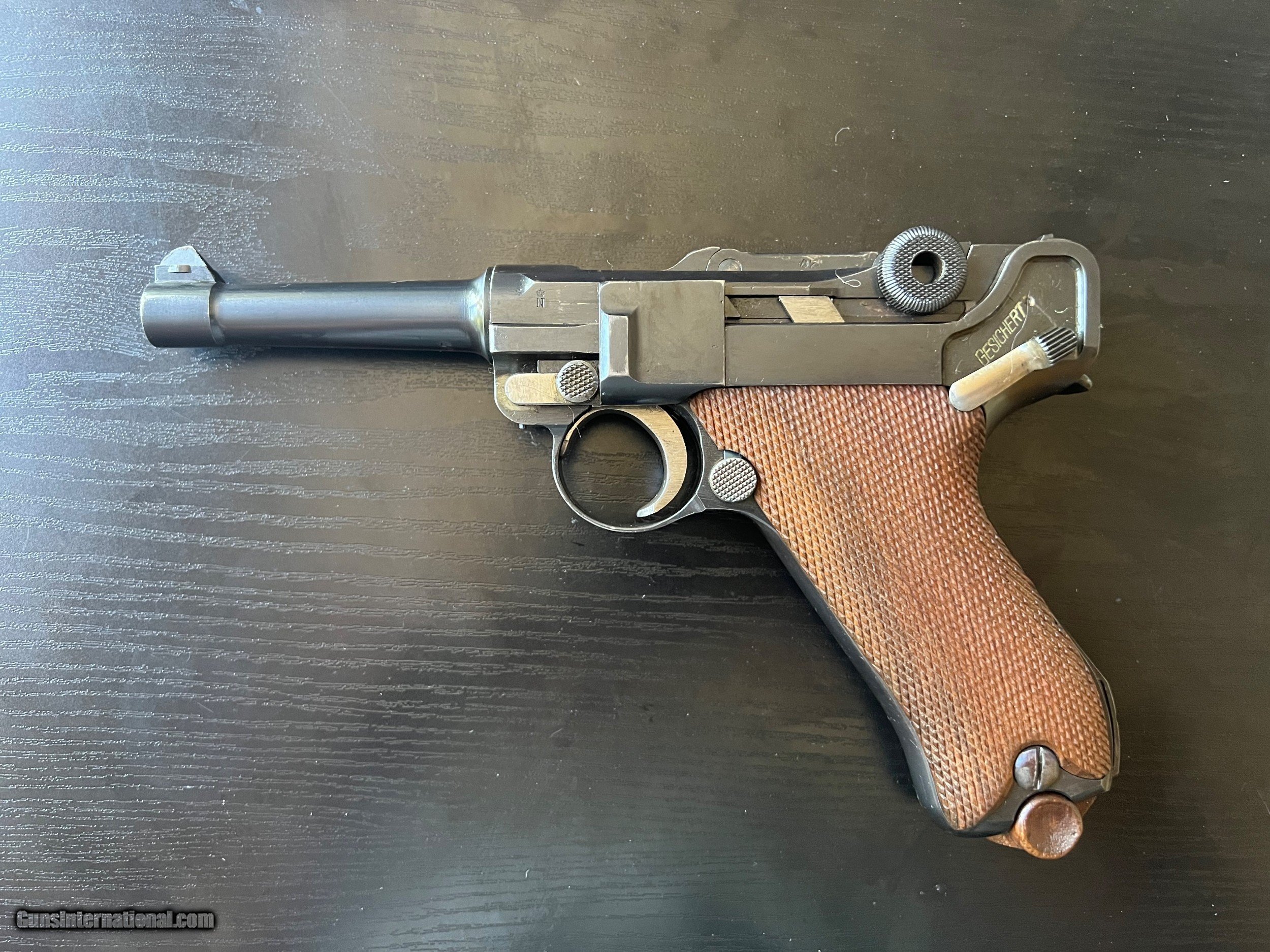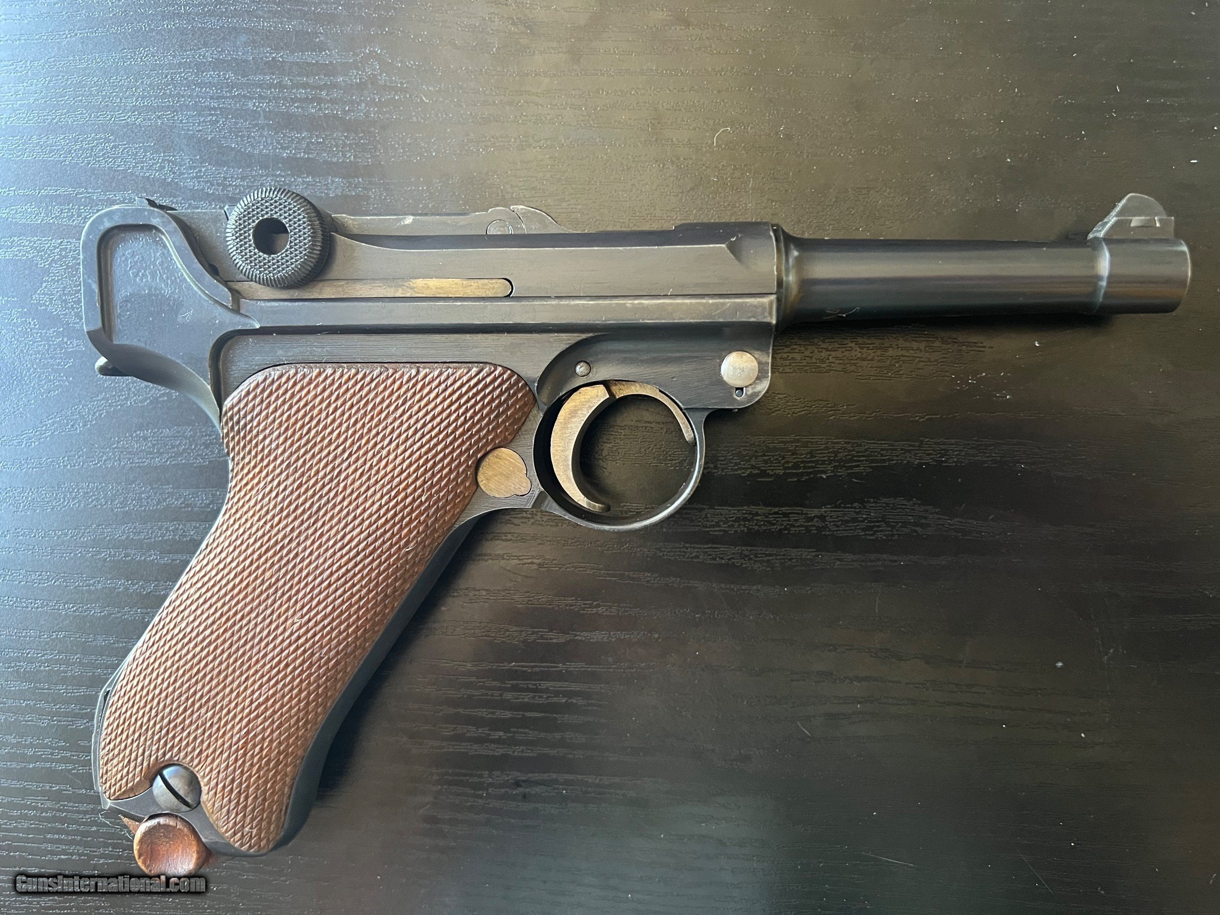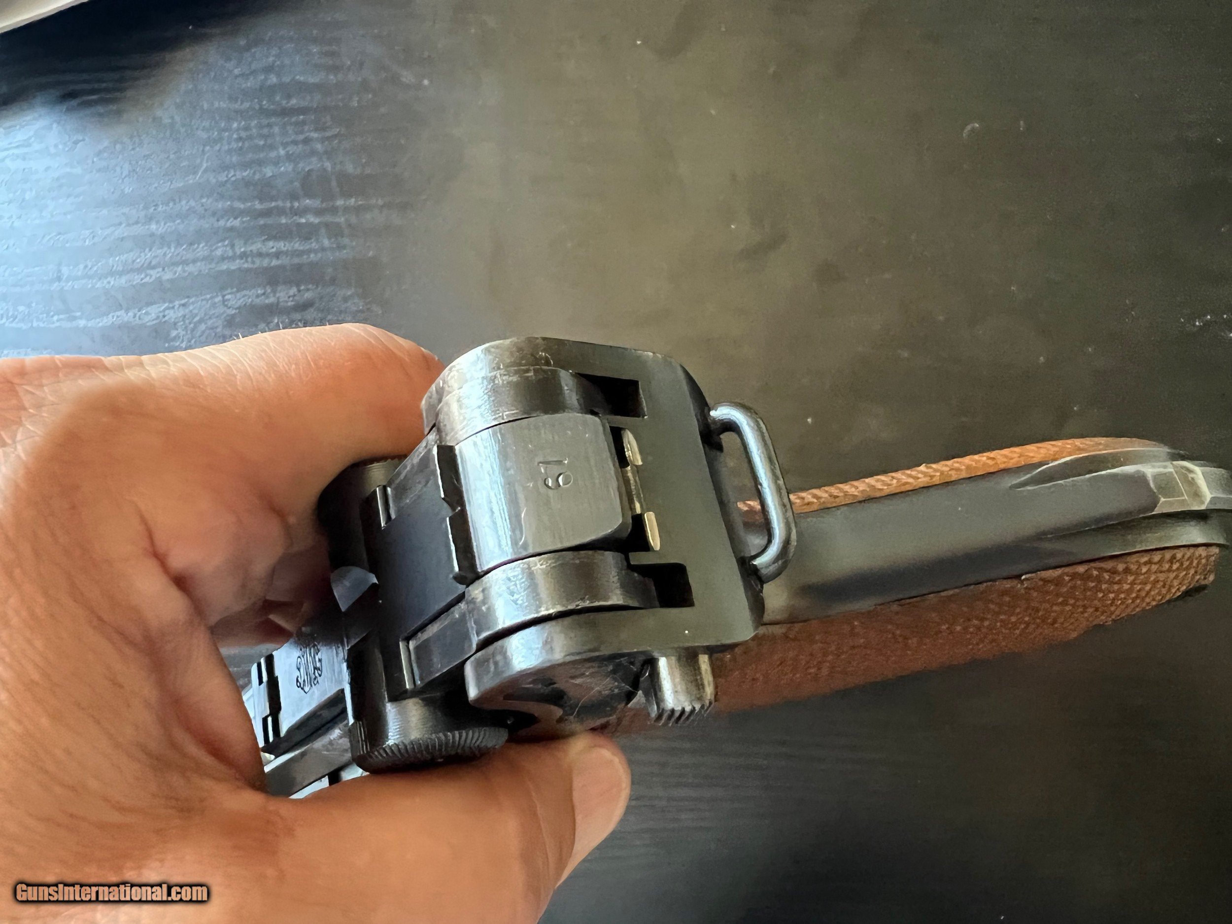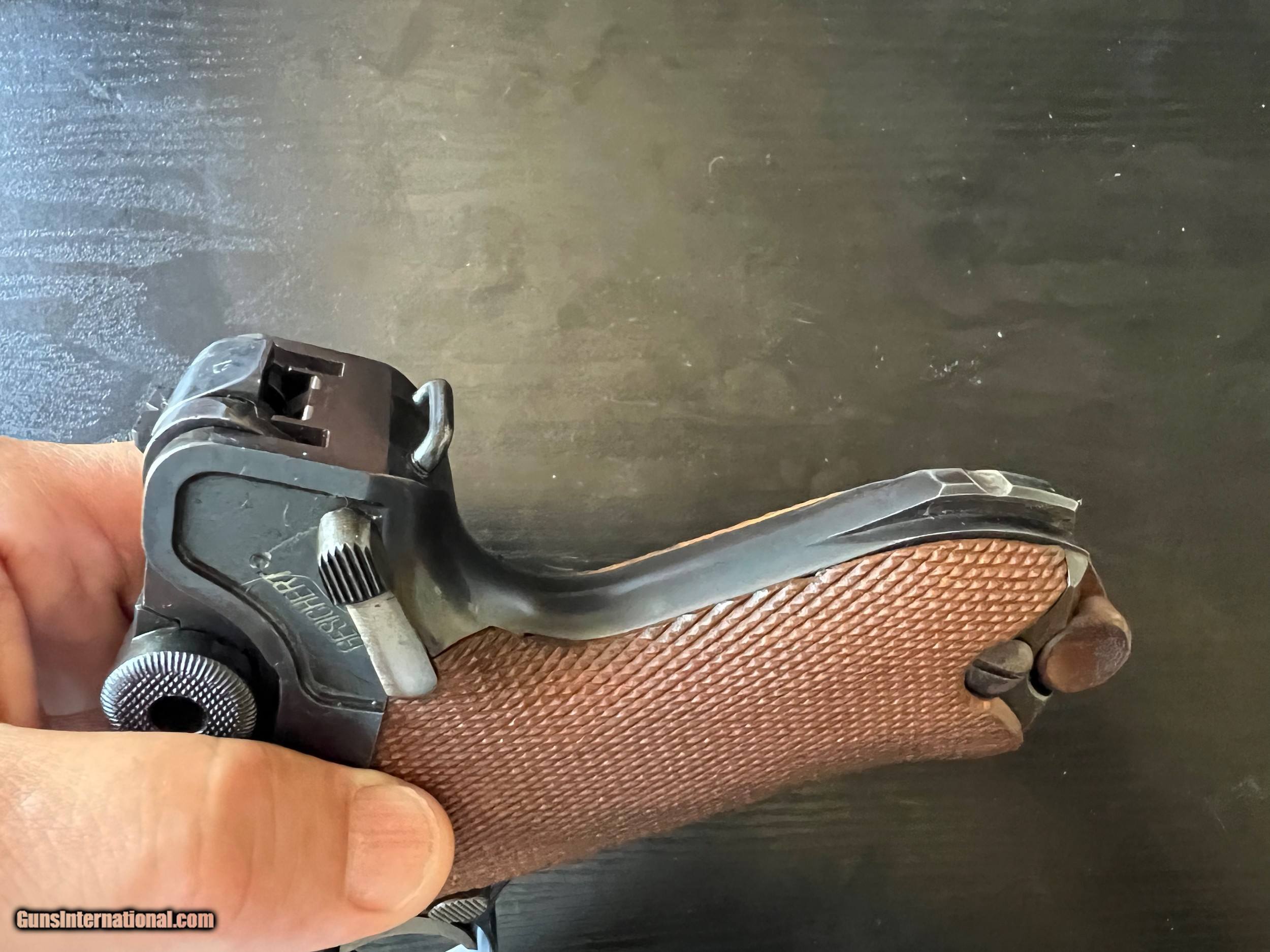 Description: SOLD: This is an incredible near mint example of a German Luger pistol made in the last years of WWI and chambered in .30 Luger. The gun appears near new with just a hint of wear on the side plate and a couple of minute handling marks hear and there and retains around 99% of its original blueing. Nearly all of "straw" color is present on the small parts. All matching with a beautiful bore and grips. Has a matching numbered magazine which points to a private officer purchase in the closing months of WWI. Sharp markings throughout. A great collector grade pistol that is over 100 years old! 3-day inspection. FFL or C&R (where allowed). $30 shipping in CONUS. SOLD Curio/Relic: Yes |
