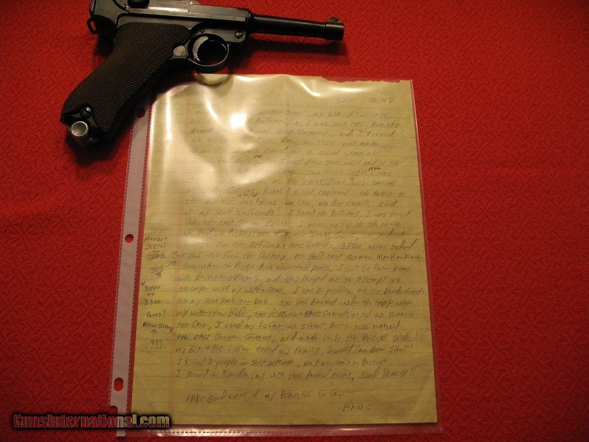 Description: (Sold) Offered for sale this cold war east german police bring back! Comes with hand written discription from original owners son deplicting his family escape from East Germany to the British sector in Berlin! No sales to California, New York or out side the USA! Shipped FedEx ground insured ( $35.00 ) to the original 46 States, Alaska and Hawaii actual costs! Shipped to your FFL dealer! Lay a Ways Considered! All Lay a Way sales considered final! SOLD |