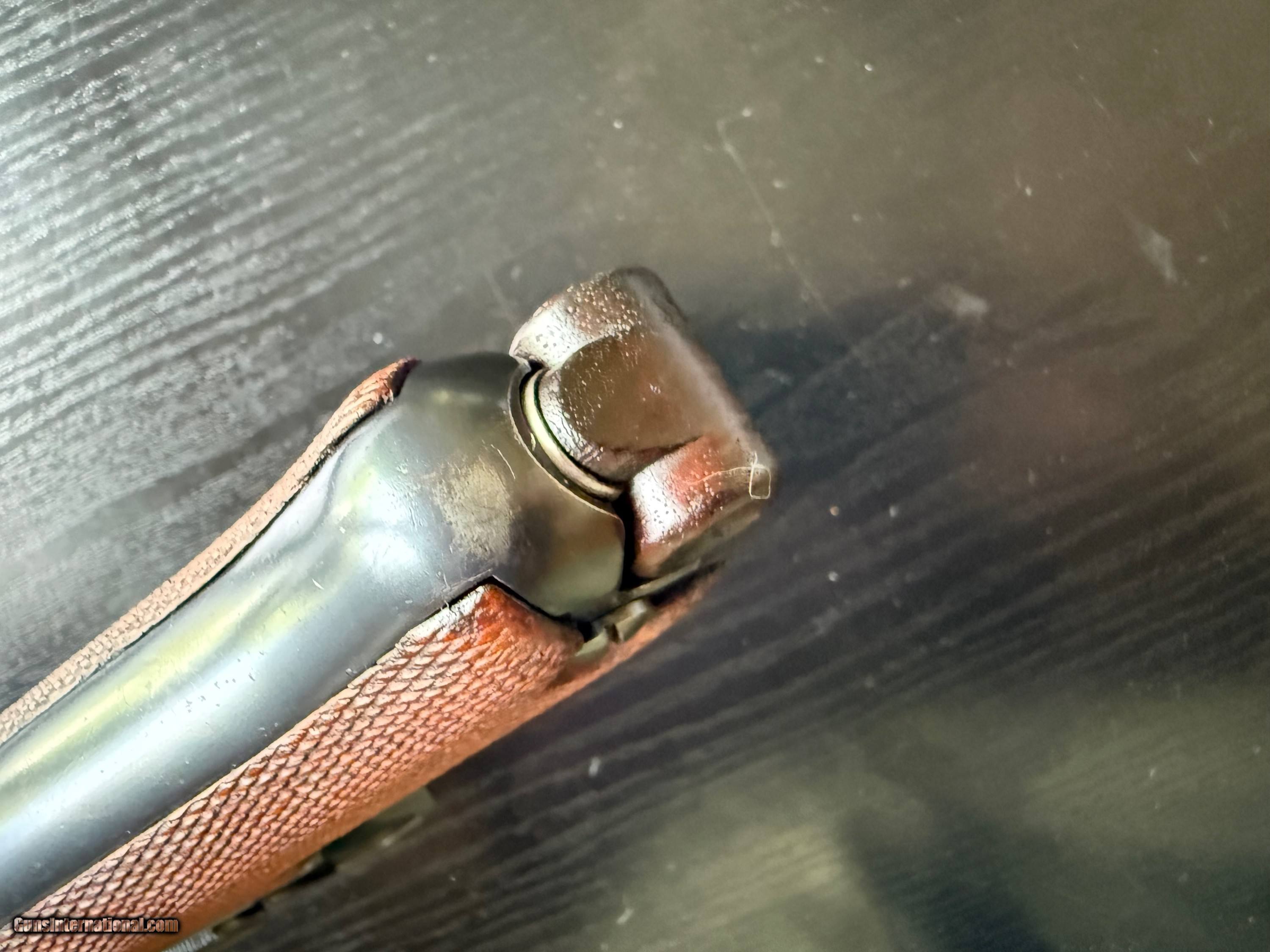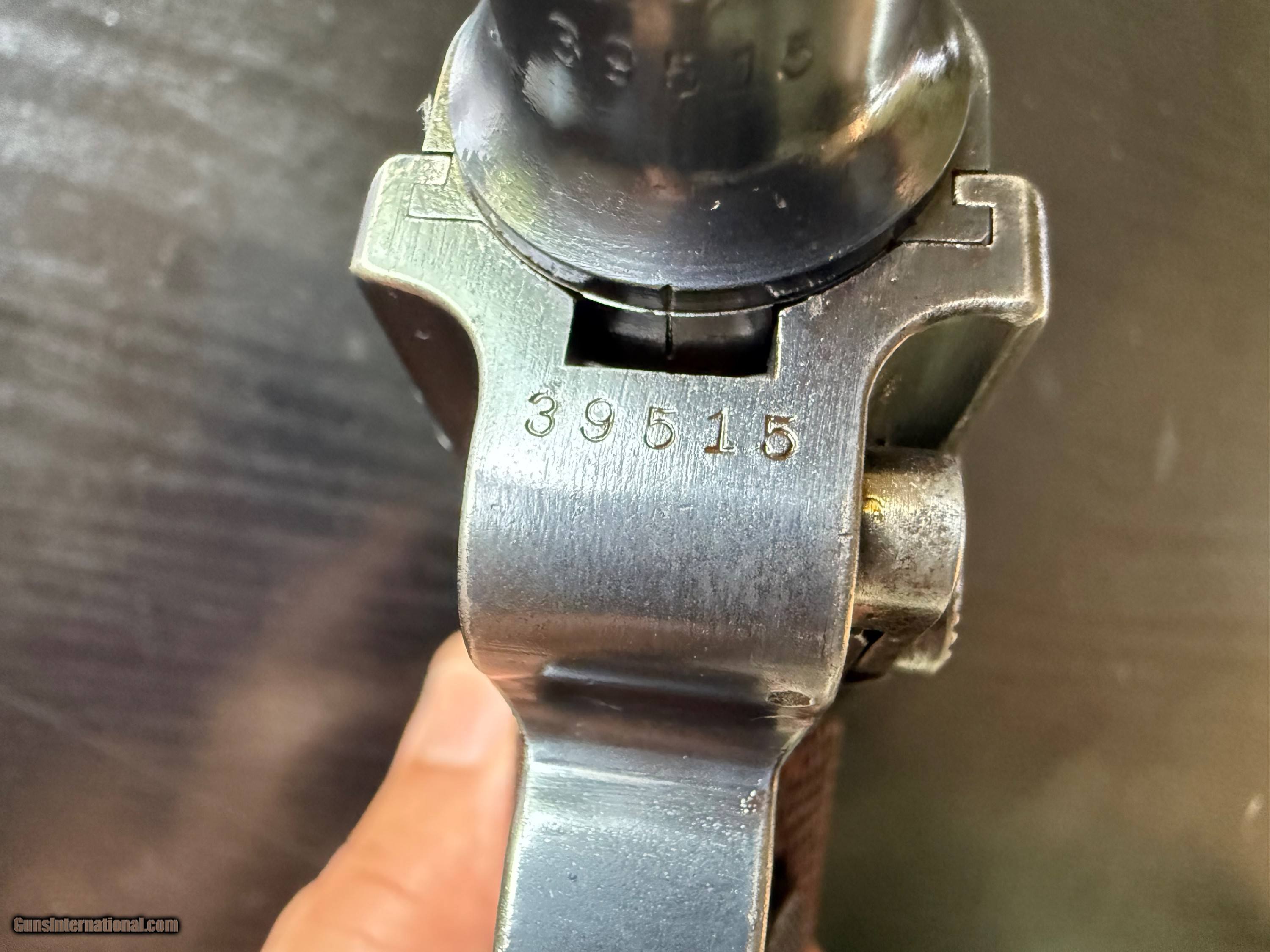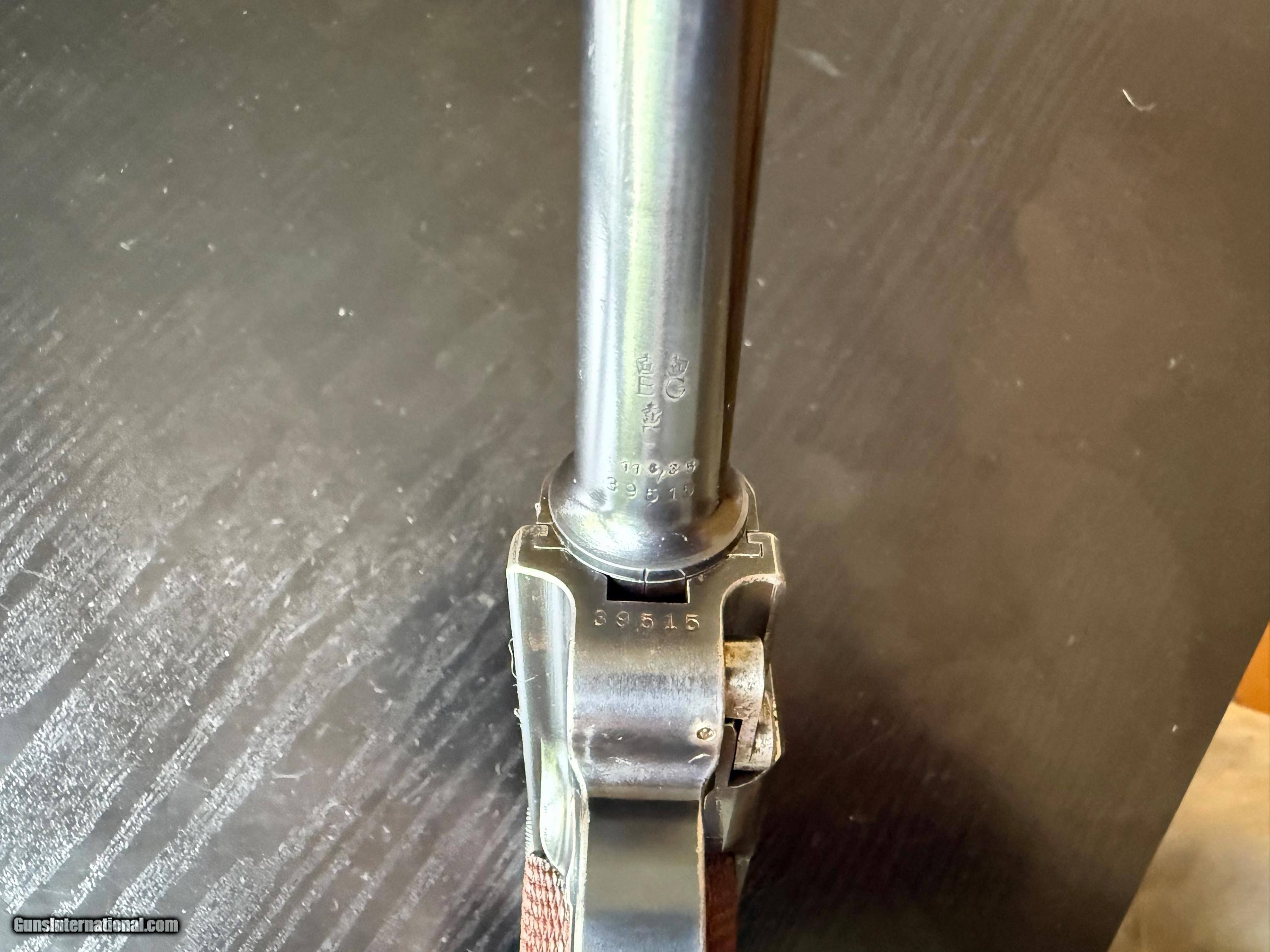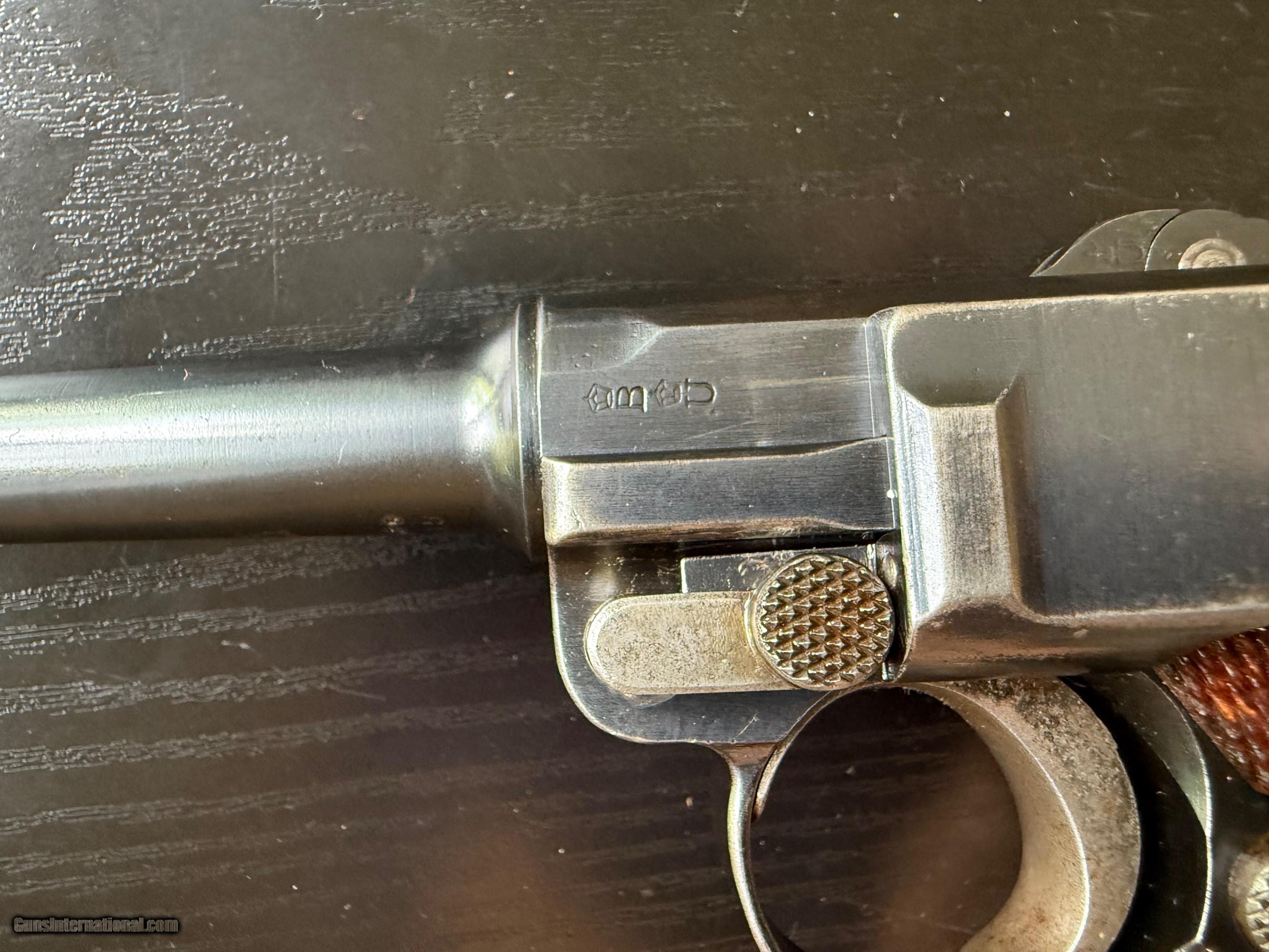 Description: ON HOLD. This is a very scarce beautiful example of an officer's private purchase Luger Model 1908, chambered in 9mm Para. These were made at DWM factory in paralel with the military contract Lugers as the German Imperial Army commissioned officers had to procure their own sidearms. Very few were made starting with serial number 39000. These guns have very specific identifying features such as: no stock lug, no hold open installed, BUG proofing and a letter P (Privat) stamped inside the magazine well on the rear wall. Otherwise the gun is identical to the first issue military P08. This particular gun has all of the above features and retains over 98% of its original blueing with just a hint of holster wear on the high points. It is all matching with a correctly unnumbered magazine. The bore is very good. The grips are excellent. The rig is complete with a 1915 dated holster that is maker marked and unit marked to a 92nd Infantry regiment. Fewer than 2000 were made as Officer private purchase guns, compared to hundreds of thousands of its military proofed counterparts. A superb example of an "as issued " private purchase sidearm from 1910-1911. 3-day inspection. layaway available. FFL or C&R(where legal) required. $50 shipping in CONUS. SOLD Curio/Relic: Yes |