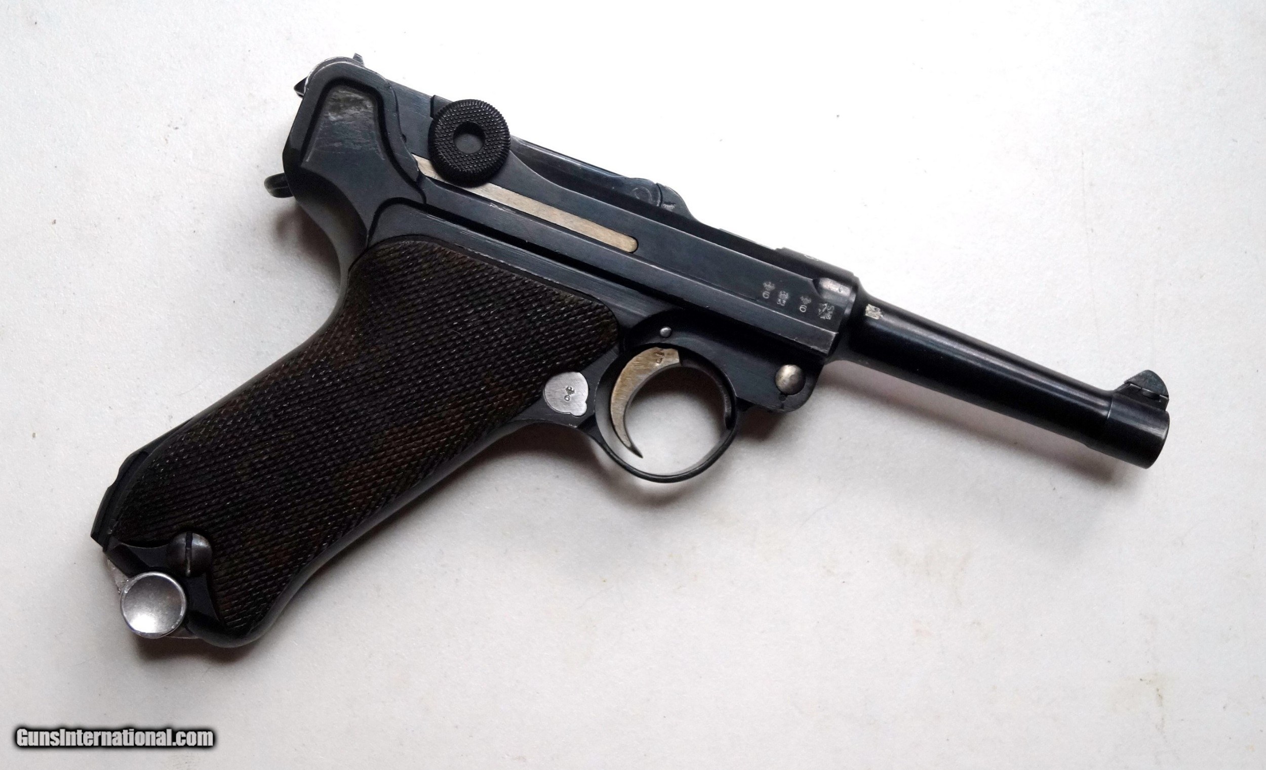 Description: THIS IS A SIMSON / SUHL 1926 DATED MILITARY GERMAN LUGER, 9MM. THE LUGER IS IN VERY GOOD CONDTION. ALL ORIGINAL, NUMBER MATCHING (THIS INCLUDES BOTH GRIPS AND MAGAZINE), VERY GOOD BORE AND GRIPS, MECHANICALLY CORRECT AND TIGHT. A VERY RARE AND HARD TO FIND SIMSON GERMAN LUGER. NOTE: THE DATED 1926 SIMSON WAS LIMITED TO ONLY A ONE MONTH PRODUCTION OF JUST 100 GUNS. SOLD Curio/Relic: Yes |
