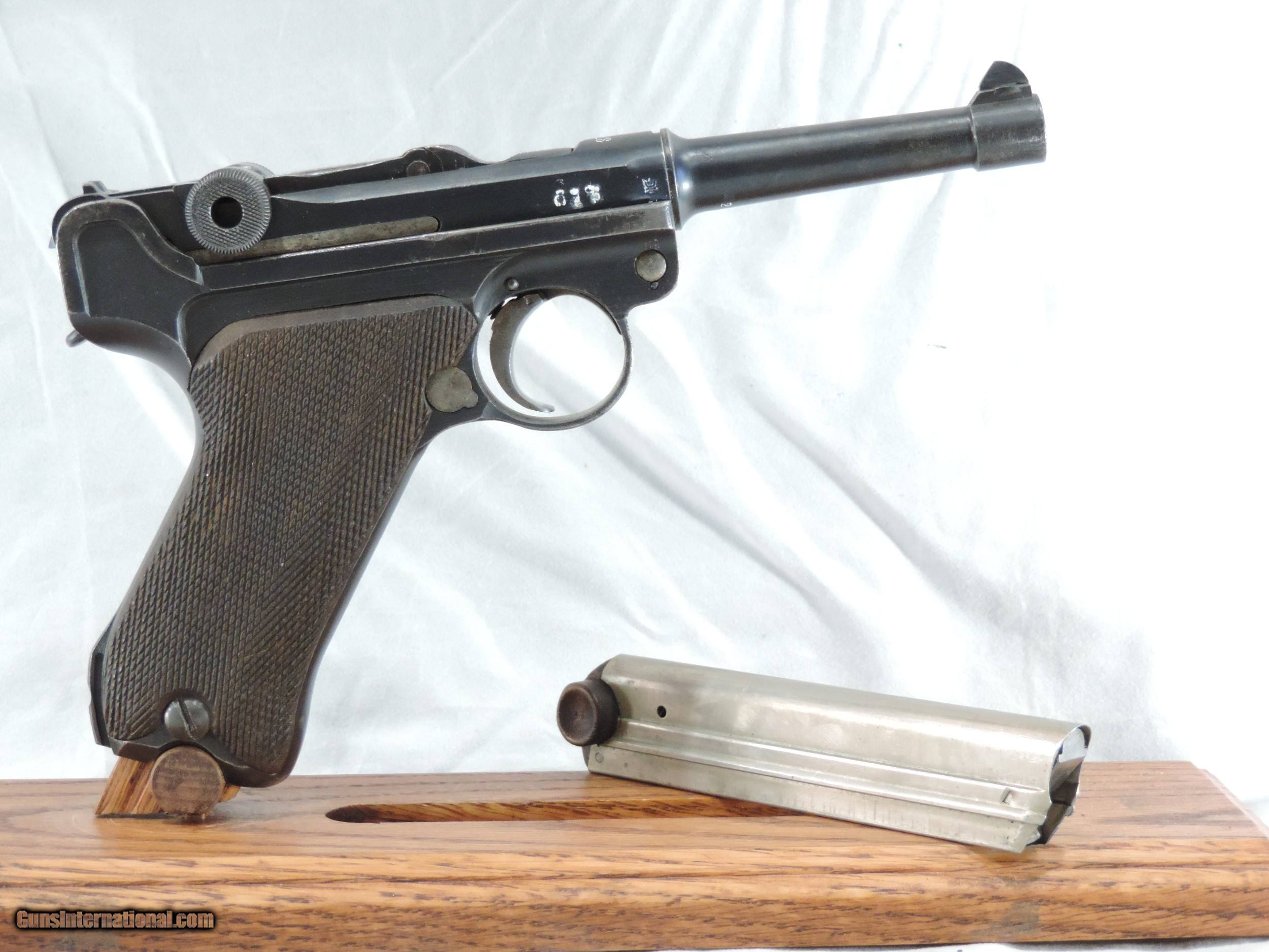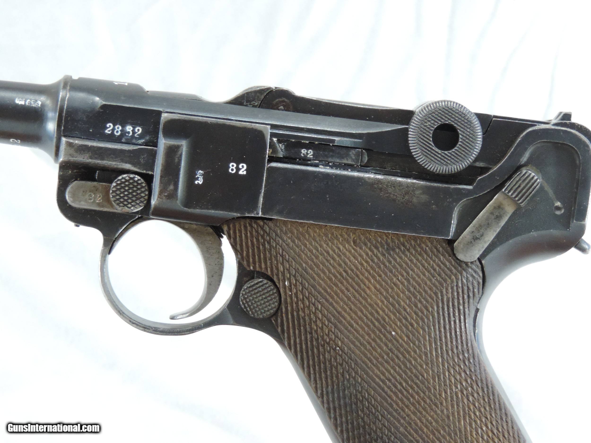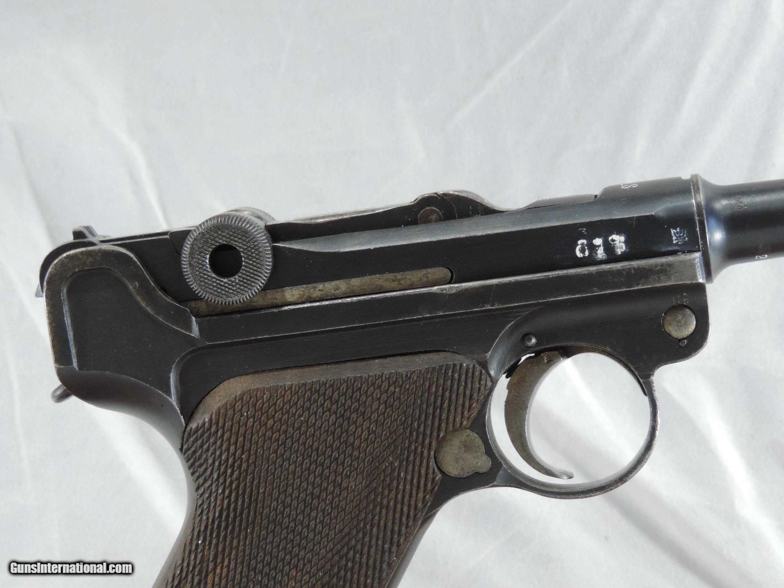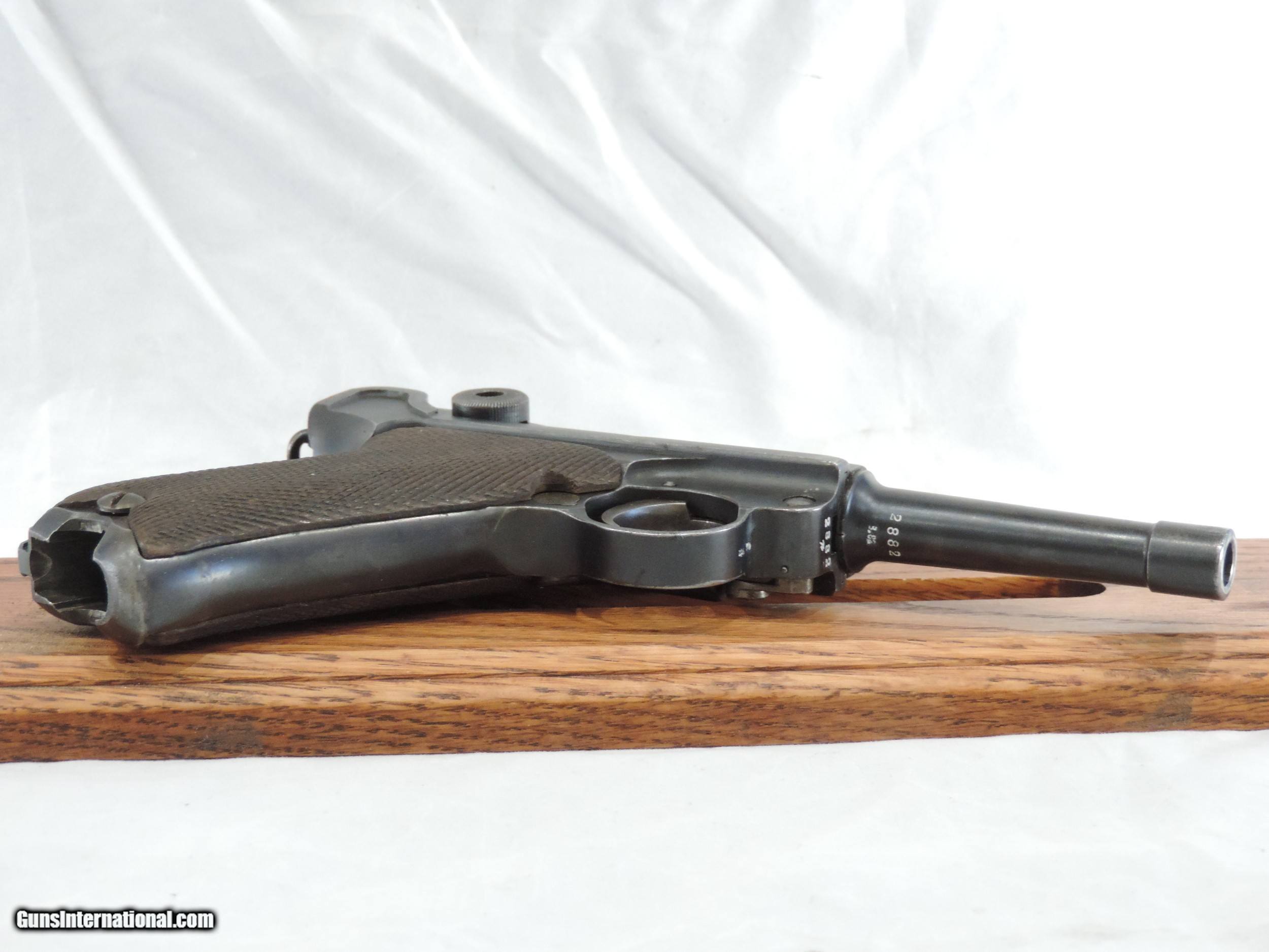 Description: INV. 10310 SUPER, ERFURT LUGER P-08, CAL. 9MM, SER. 2882n. MFG. 1918. THIS 104 YEAR "ATTIC QUEEN" HAS RETAINED ABOUT 97-98% OF THE ORIGINAL BLUED FINISH. THE ONLY LOSS THERE IS, IS FROM SOME SLIGHT SHARP EDGE SILVERING AND A SMALL PATCH OF PINPRICKS ON THE LEFT SIDE PLATE. THERE ARE NO SCRATCHES OR RUB MARKS..THE GRIPS STRAPS HAVE NO SIGN OF GRAYING. ALL PARTS MATCH INCLUDING, THE MAGAZINE AND GRIPS, AND HAVE THE PROPER EAGLE AND CROWN GERMAN EMPIRE PROOF MARKS.** THE GRIP PANELS ARE FINE, THEY HAVE NO SPLITS OR MISSING CHIPS. NOT EVEN ANY FLATTENED POINTS. THE SLIDE RAILS, BOLT FACE AND AND FEED RAMP SHOW VERY SLIGHT WEAR. THE BORE IS FANTASTIC, MIRROR BRIGHT WITH RAZOR SHARP RIFLING. NOT A WHISP OF FROST ANYWHERE. IT COMES WITH A MATCHING WOODEN BASED MAGAZINE. THIS "ATTIC QUEEN" IS A REALLY GREAT EXAMPLE OF THE SCARCE ERFURT ARSENAL P-08. BESIDES BEING A FAMOUS MILITARY ICON IT IS A GREAT INVESTMENT AND WILL BE GREAT FUN AT THE RANGE. MODESTLY PRICED AT . ....$1995.*** To purchase this firearm or if you want to request more information contact us at: Email ckguns[at]ymail[dot]com Phone 201-512-0002 Cell 201-575-6838 FAX 201-215-4759 We accept most major credit cards. Prices shown are Discounted 3% for Cash or Check. The buyer must be familiar with all the laws governing the purchase and the ownership of firearms in their own city and state. The Yankee Armorer, Inc is not responsible for any failure to comply with or observe these laws. The Yankee Armorer, Inc will only ship after full payment and receipt of all required documents. Shipping: Add $35.00 for handguns, $45.00 for long guns. New Jersey buyers are subject to a 7% sales tax. The Yankee Armorer, Inc offers a 3 day inspection period with full refund upon return of intact firearm and in the original condition. The Yankee Armorer, Inc offers a no interest lay away program - 25% down; 25% in 30 days; 25% in 60 days; and full payment in 90 days. Any violation of this policy is subject to restocking and forfeiture of all payments. Any variation from this policy must be agreed to in advance. Unshipped Cancelled sales are subject to a 20% restocking fee. Be advised that all firearms sold by The Yankee Armorer, Inc. or the Gun Exchange, LLC (SELLER) are sold as collector’s items. They have not been fired or tested for safety and must be examined by a license gunsmith prior to use. By purchasing any item from the (SELLER), you are agreeing to hold the (SELLER) free from any damages or lawsuits of any nature. Any item left for transfer or storage will be charged to $25.00 per month, per item from the day of its receipt. Any variation from this policy must be agreed to in advance. Store hours 10:00 am to 5:00 pm Tuesday -Saturday. It's always best to call for appointment. Store 201-512-0002, cell 201-575-6838. SOLD |