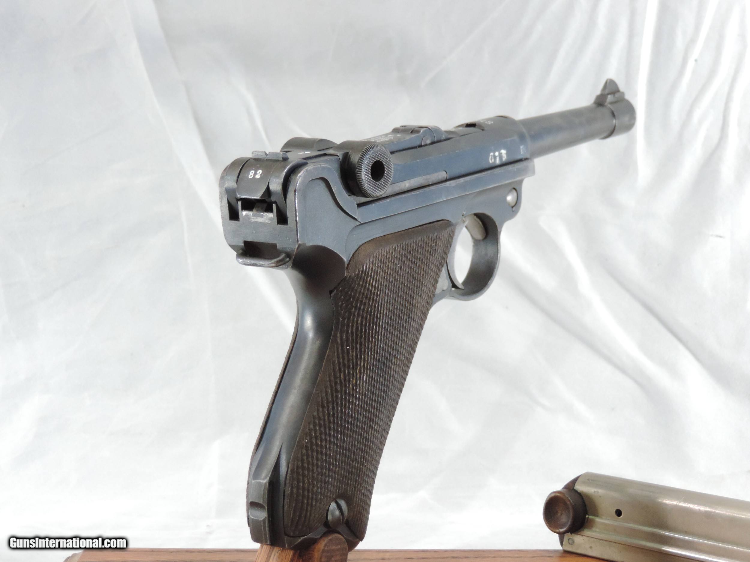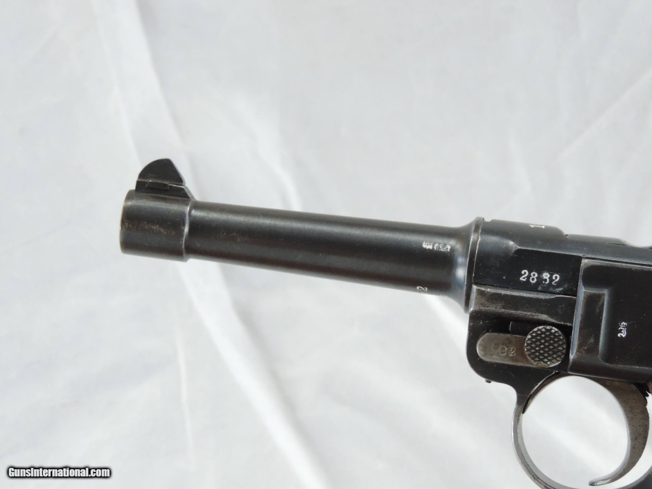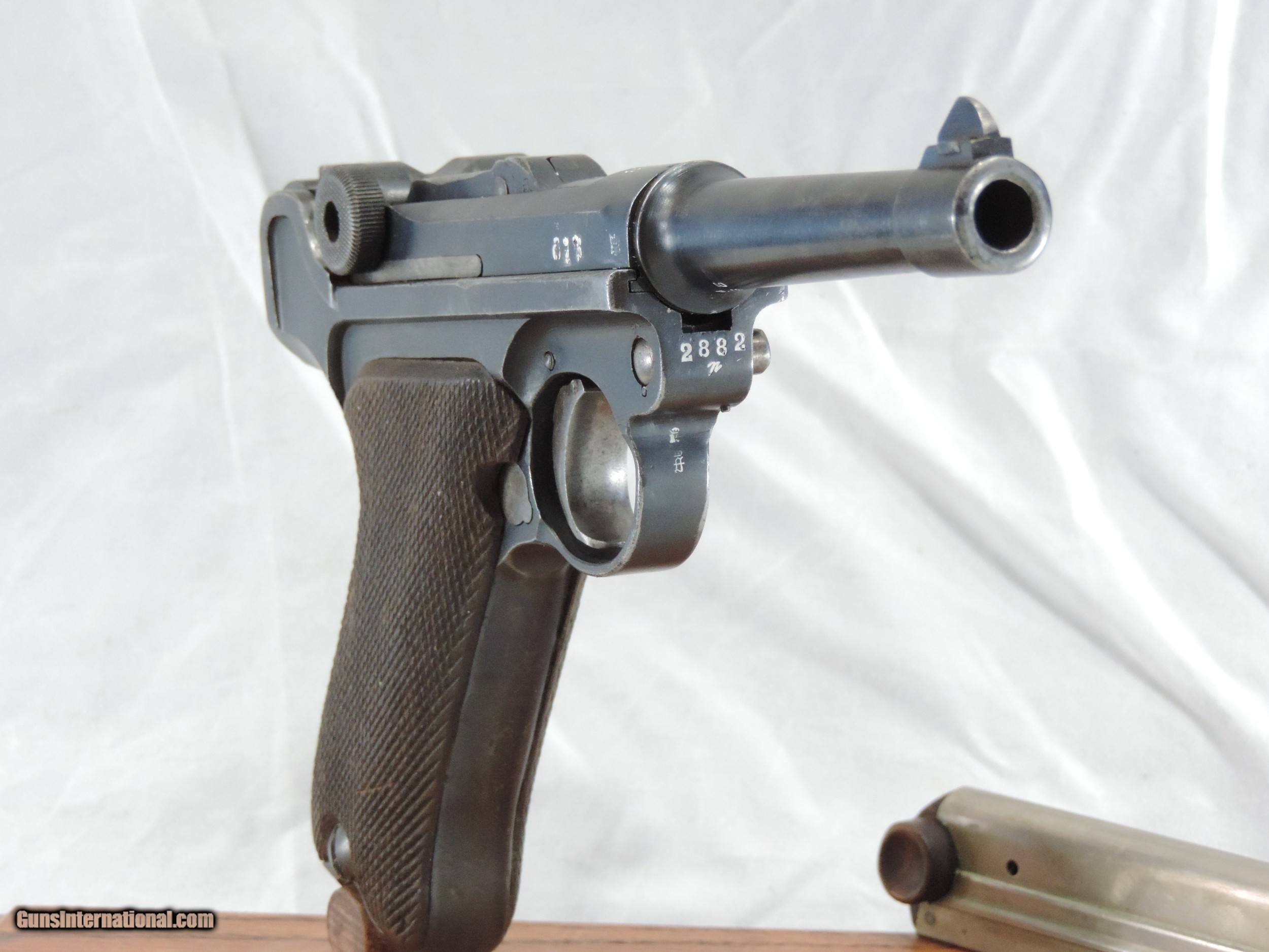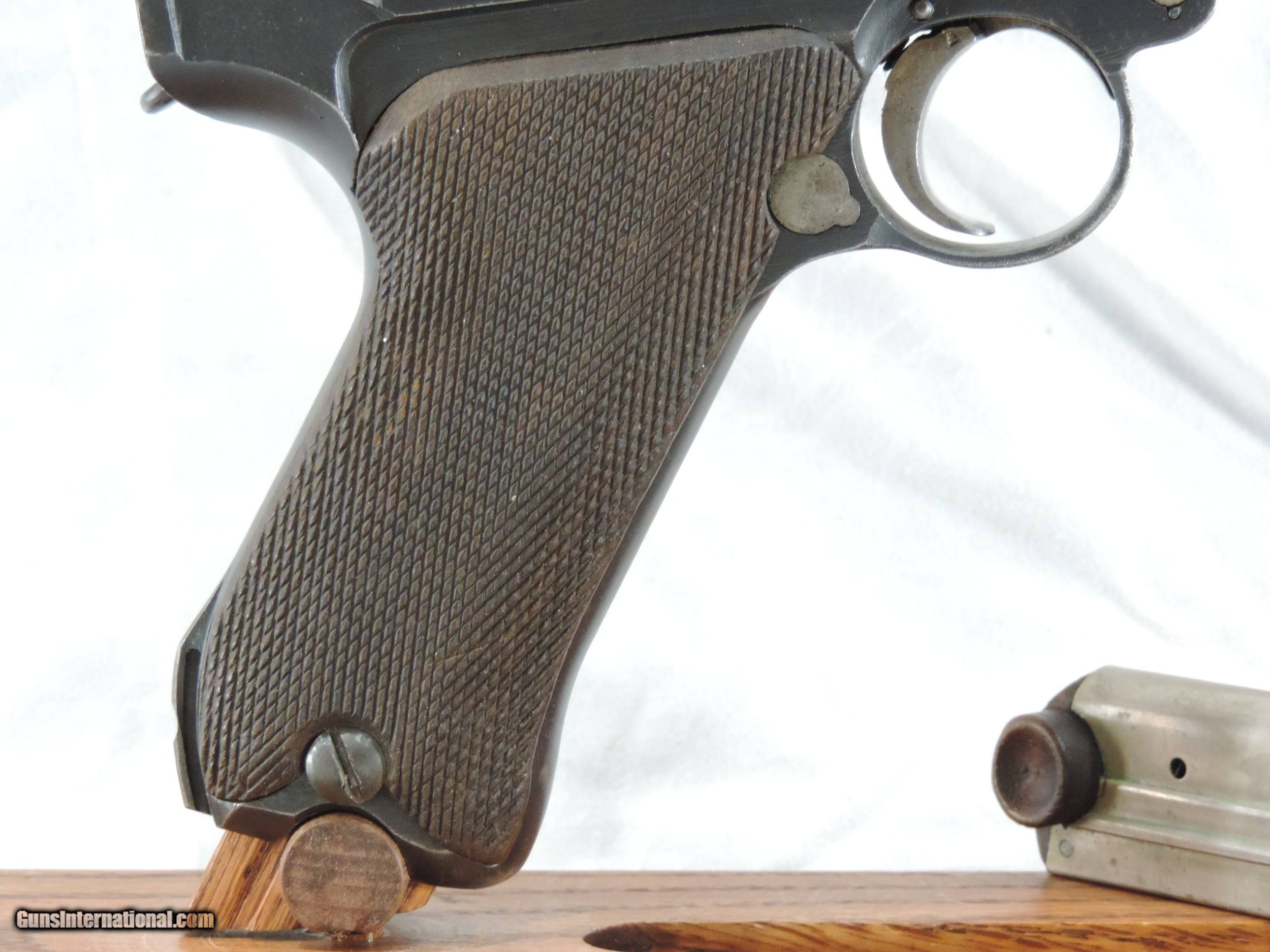 Description: INV. 10310 SUPER, ERFURT LUGER P-08, CAL. 9MM, SER. 2882n. MFG. 1918. THIS 104 YEAR "ATTIC QUEEN" HAS RETAINED ABOUT 97-98% OF THE ORIGINAL BLUED FINISH. THE ONLY LOSS THERE IS, IS FROM SOME SLIGHT SHARP EDGE SILVERING AND A SMALL PATCH OF PINPRICKS ON THE LEFT SIDE PLATE. THERE ARE NO SCRATCHES OR RUB MARKS..THE GRIPS STRAPS HAVE NO SIGN OF GRAYING. ALL PARTS MATCH INCLUDING, THE MAGAZINE AND GRIPS, AND HAVE THE PROPER EAGLE AND CROWN GERMAN EMPIRE PROOF MARKS.** THE GRIP PANELS ARE FINE, THEY HAVE NO SPLITS OR MISSING CHIPS. NOT EVEN ANY FLATTENED POINTS. THE SLIDE RAILS, BOLT FACE AND AND FEED RAMP SHOW VERY SLIGHT WEAR. THE BORE IS FANTASTIC, MIRROR BRIGHT WITH RAZOR SHARP RIFLING. NOT A WHISP OF FROST ANYWHERE. IT COMES WITH A MATCHING WOODEN BASED MAGAZINE. THIS "ATTIC QUEEN" IS A REALLY GREAT EXAMPLE OF THE SCARCE ERFURT ARSENAL P-08. BESIDES BEING A FAMOUS MILITARY ICON IT IS A GREAT INVESTMENT AND WILL BE GREAT FUN AT THE RANGE. MODESTLY PRICED AT . ....$1995.*** To purchase this firearm or if you want to request more information contact us at: Email ckguns[at]ymail[dot]com Phone 201-512-0002 Cell 201-575-6838 FAX 201-215-4759 We accept most major credit cards. Prices shown are Discounted 3% for Cash or Check. The buyer must be familiar with all the laws governing the purchase and the ownership of firearms in their own city and state. The Yankee Armorer, Inc is not responsible for any failure to comply with or observe these laws. The Yankee Armorer, Inc will only ship after full payment and receipt of all required documents. Shipping: Add $35.00 for handguns, $45.00 for long guns. New Jersey buyers are subject to a 7% sales tax. The Yankee Armorer, Inc offers a 3 day inspection period with full refund upon return of intact firearm and in the original condition. The Yankee Armorer, Inc offers a no interest lay away program - 25% down; 25% in 30 days; 25% in 60 days; and full payment in 90 days. Any violation of this policy is subject to restocking and forfeiture of all payments. Any variation from this policy must be agreed to in advance. Unshipped Cancelled sales are subject to a 20% restocking fee. Be advised that all firearms sold by The Yankee Armorer, Inc. or the Gun Exchange, LLC (SELLER) are sold as collector’s items. They have not been fired or tested for safety and must be examined by a license gunsmith prior to use. By purchasing any item from the (SELLER), you are agreeing to hold the (SELLER) free from any damages or lawsuits of any nature. Any item left for transfer or storage will be charged to $25.00 per month, per item from the day of its receipt. Any variation from this policy must be agreed to in advance. Store hours 10:00 am to 5:00 pm Tuesday -Saturday. It's always best to call for appointment. Store 201-512-0002, cell 201-575-6838. SOLD |
