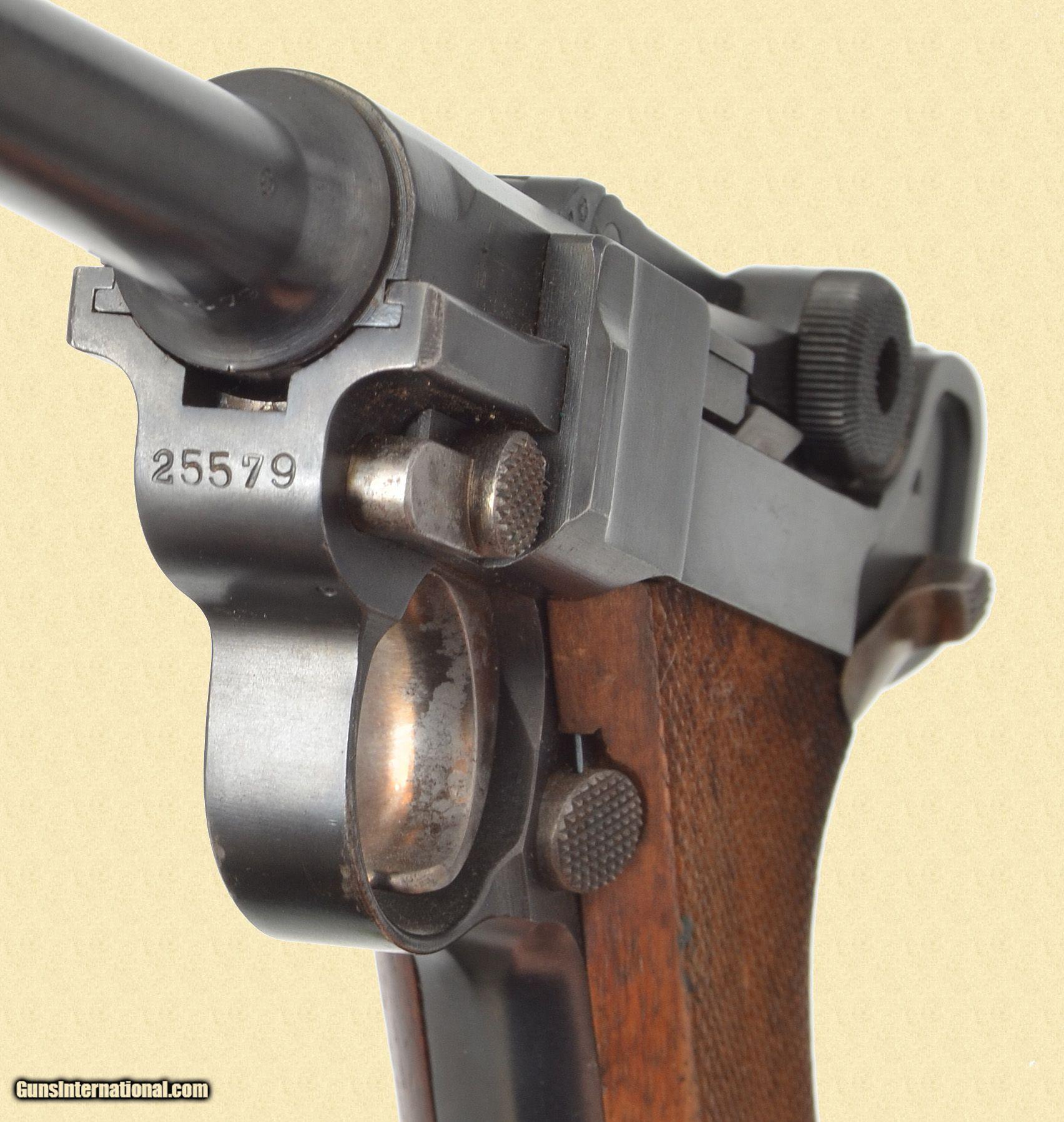 Description: 30 LUGER; 97% blue, 84% straw, excellent bore, good grips, 4.75'' barrel, Matching. Proper magazine. Please call (309)342-5800 Tues-Fri, 10 am -6pm (CST), or Sat 1pm-6pm (CST), to speak with our sales team for further information, or to purchase firearms. FEDERAL FIREARMS LICENSE (FFL): is required on all shipments of modern guns. We must wait for a copy from your dealer before we can ship to them. We will also ship C&R eligible firearms to Curio and Relic (C&R) license holders. We accept your signed, legible FFL and C&R licenses via fax at 309/ 342-5730 (always on), email at FFLsimpsonltd or through the mail at Simpson Ltd; 140 S Seminary St; Galesburg, IL 61401. Pre-1898 firearms and non-firearms items are exempt from licensing requirements. All items shipped to an Illinois address will be charged 8.75% sales tax. NOTE: Because of recent shipping restrictions and charges placed on us by UPS and FedEx (handguns must ship via next day or 2nd day air and they have added a $10 surcharge for parcels over 48”. Our return policy lasts a maximum of 3 days from the time you receive your item. If 3 days have passed since you received your purchase, and we have not been contacted by you, unfortunately, we can’t offer you a refund or exchange. If you are not happy with your purchase, please contact us by phone and/or email to arrange for a return. Items must be shipped back to us to arrive with 7 days of notification of return. SOLD Curio/Relic: Yes Serial Number: 25579 |
