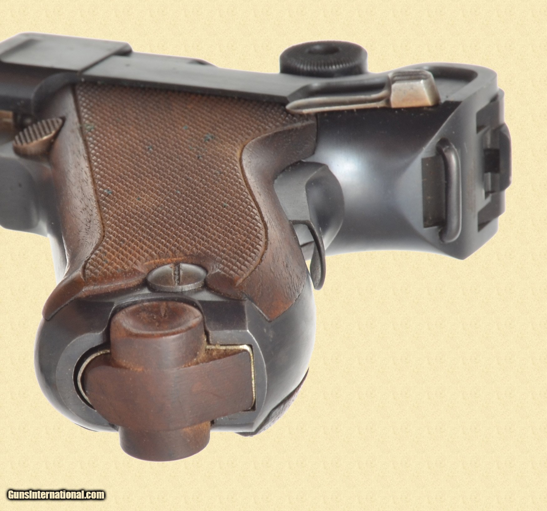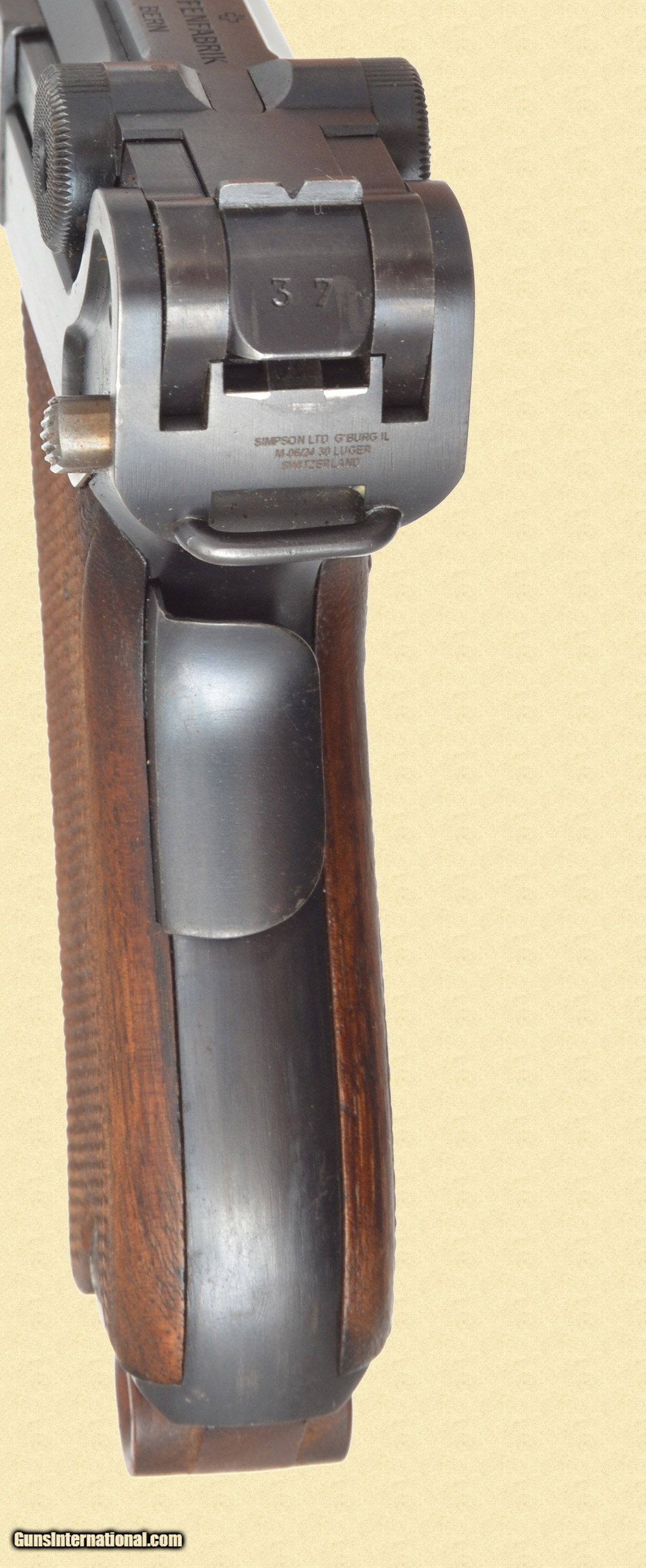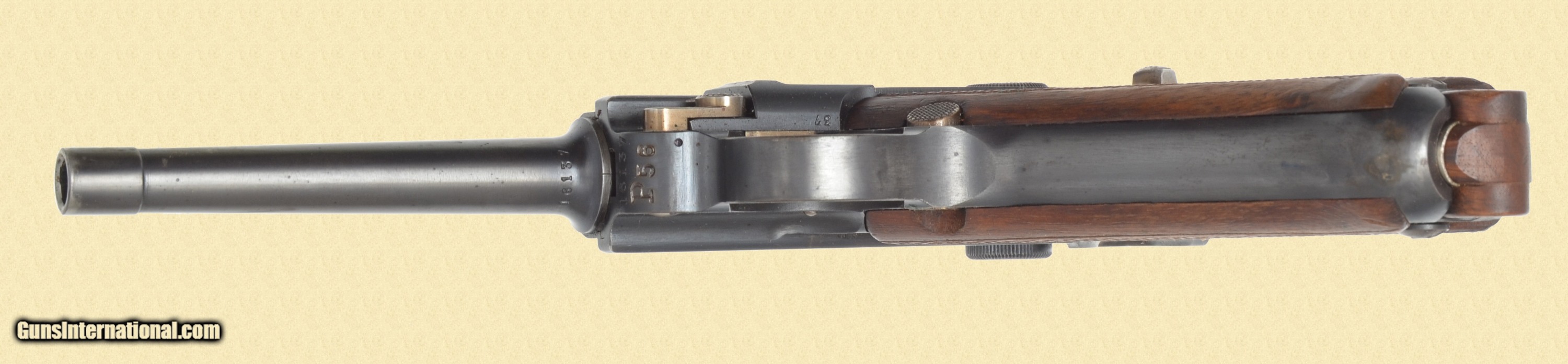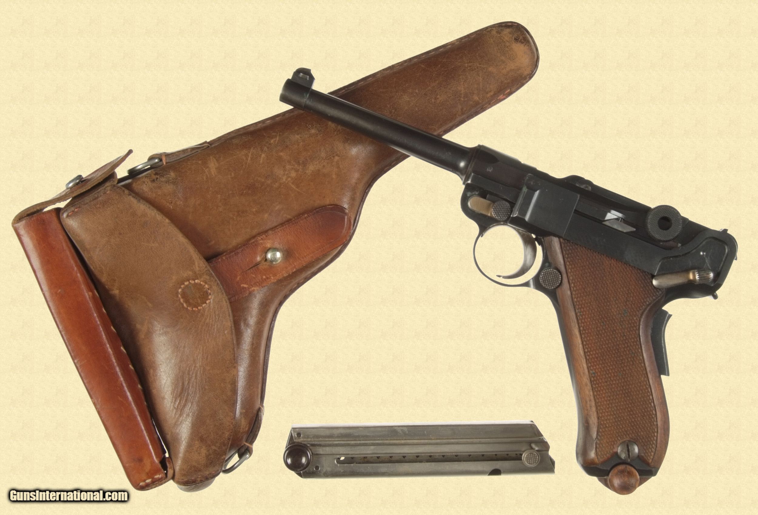 Description: 30 LUGER; 97% blue, 90% straw, excellent bore, very good grips, 4.75'' barrel, Matching numbers. Proper unmarked wood bottom magazine. Private purchase marked on front of frame. Rig, includes 1909 dated holster is Good condition and a Swiss plastic bottom magazine for an extra. Please call (309)342-5800 Tues-Fri, 10 am -6pm (CST), or Sat 1pm-6pm (CST), to speak with our sales team for further information, or to purchase firearms. FEDERAL FIREARMS LICENSE (FFL): is required on all shipments of modern guns. We must wait for a copy from your dealer before we can ship to them. We will also ship C&R eligible firearms to Curio and Relic (C&R) license holders. We accept your signed, legible FFL and C&R licenses via fax at 309/ 342-5730 (always on), email at FFLsimpsonltd or through the mail at Simpson Ltd; 140 S Seminary St; Galesburg, IL 61401. Pre-1898 firearms and non-firearms items are exempt from licensing requirements. All items shipped to an Illinois address will be charged 8.75% sales tax. NOTE: Because of recent shipping restrictions and charges placed on us by UPS and FedEx (handguns must ship via next day or 2nd day air and they have added a $10 surcharge for parcels over 48”. Our return policy lasts a maximum of 3 days from the time you receive your item. If 3 days have passed since you received your purchase, and we have not been contacted by you, unfortunately, we can’t offer you a refund or exchange. If you are not happy with your purchase, please contact us by phone and/or email to arrange for a return. Items must be shipped back to us to arrive with 7 days of notification of return. SOLD Curio/Relic: Yes Serial Number: 16137 |