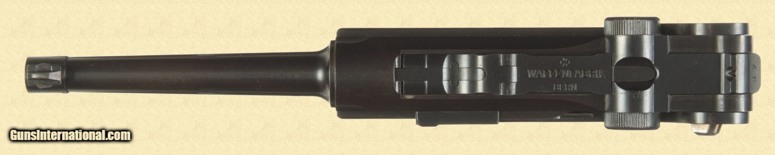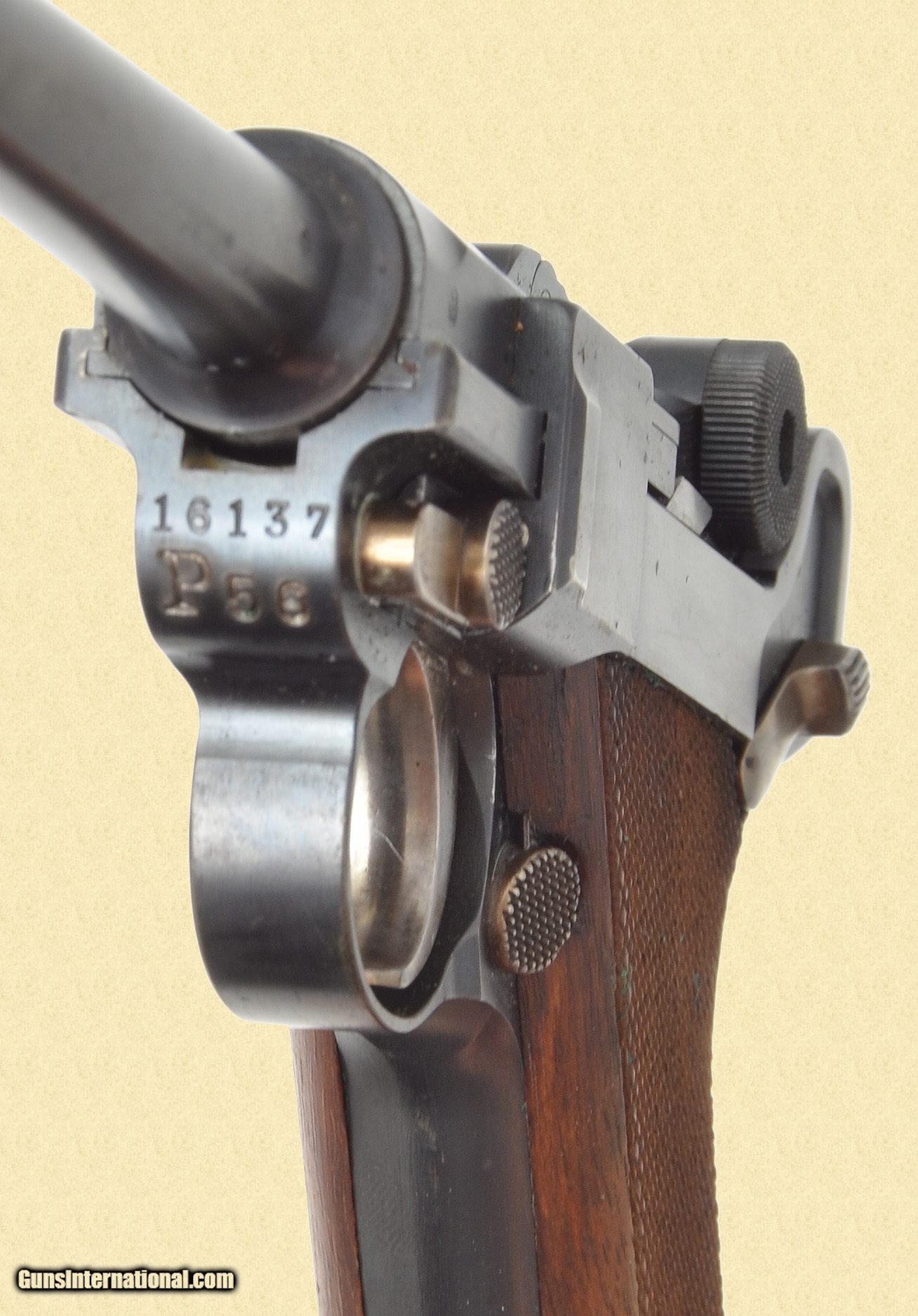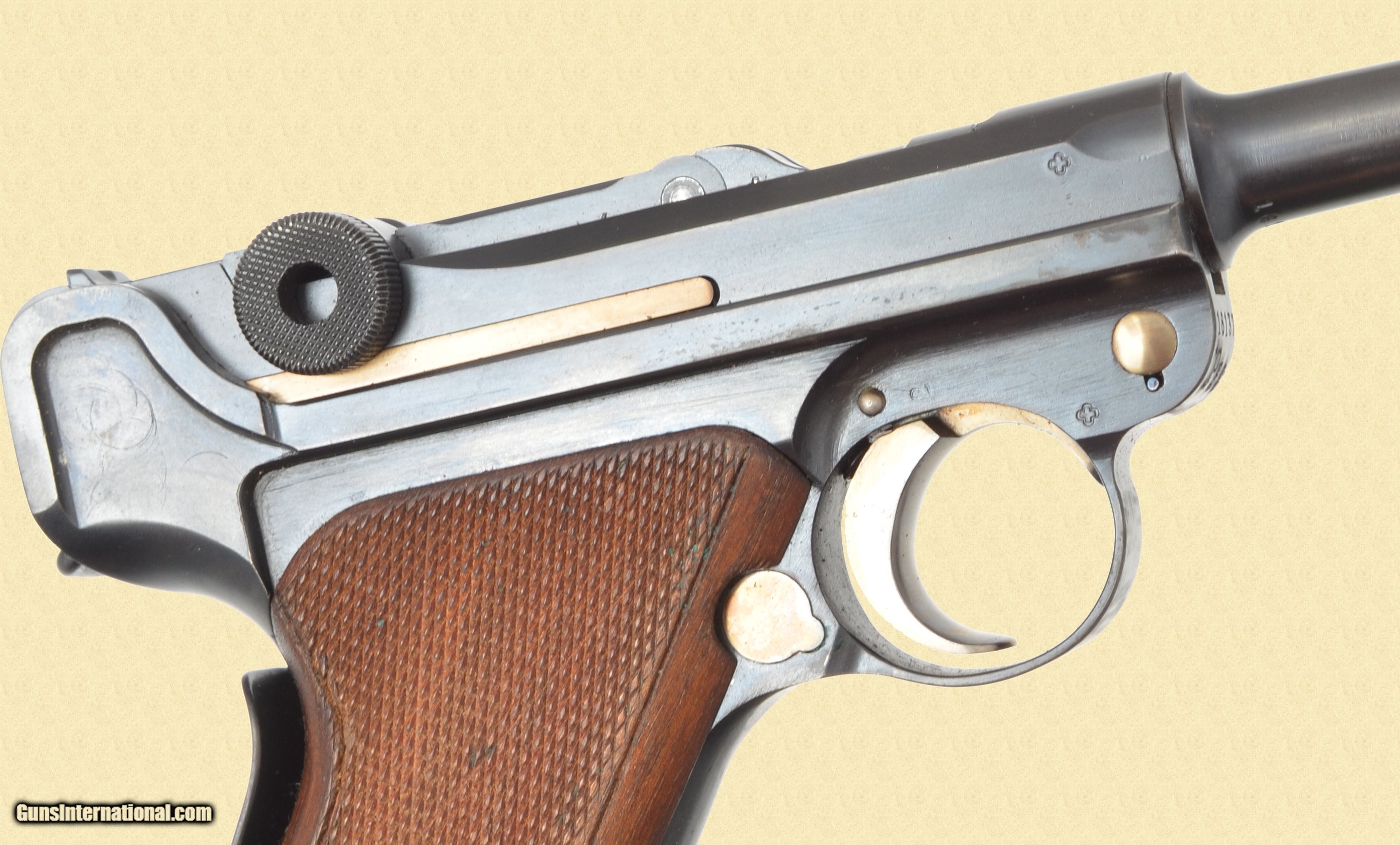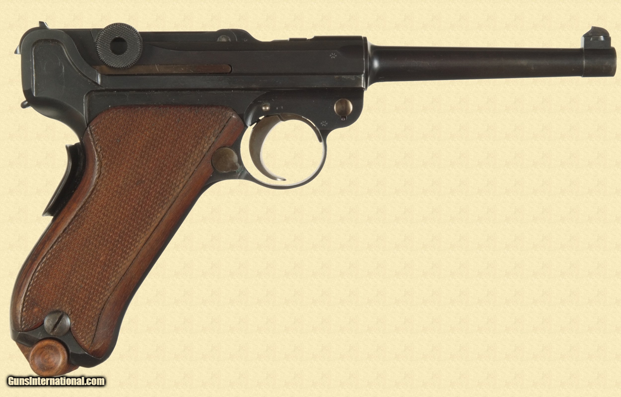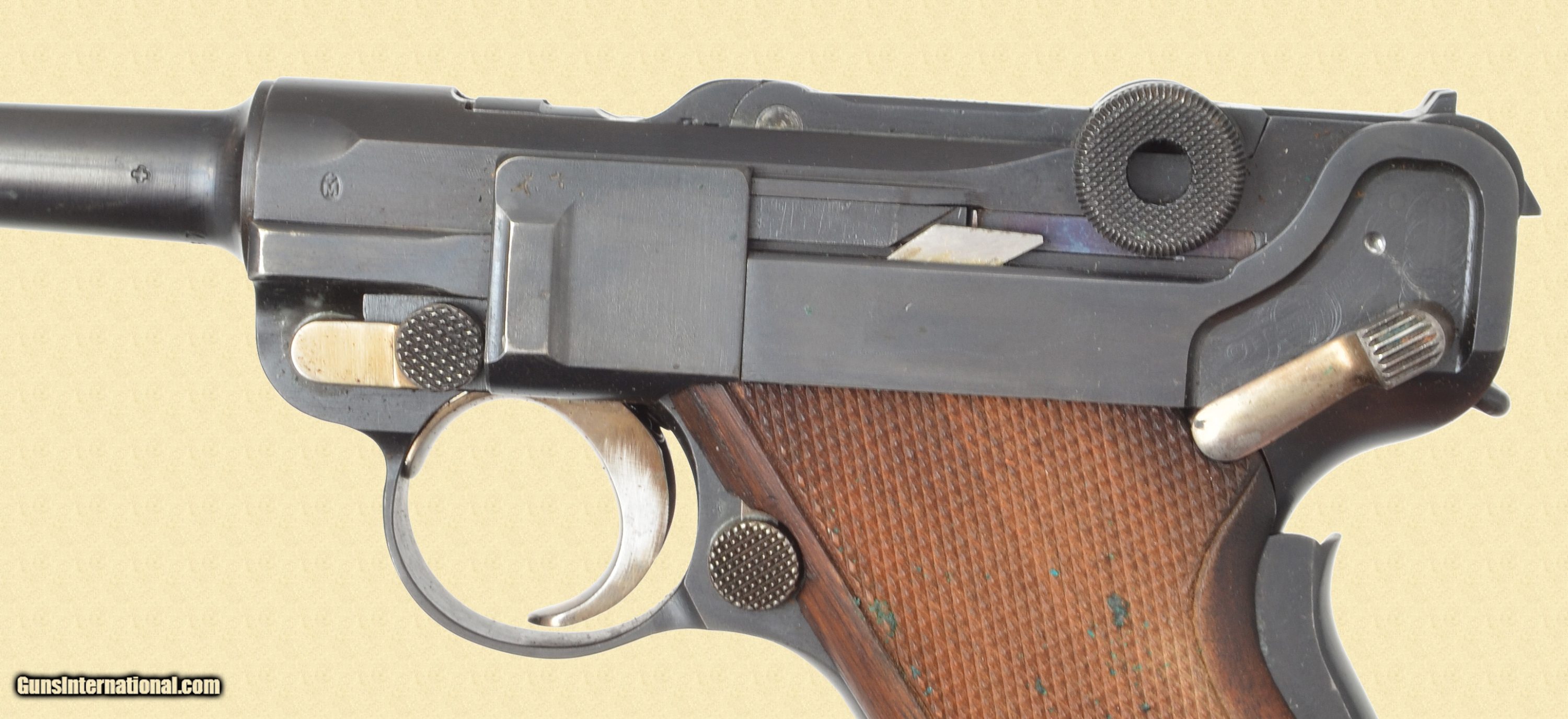 Description: 30 LUGER; 97% blue, 90% straw, excellent bore, very good grips, 4.75'' barrel, Matching numbers. Proper unmarked wood bottom magazine. Private purchase marked on front of frame. Rig, includes 1909 dated holster is Good condition and a Swiss plastic bottom magazine for an extra. Please call (309)342-5800 Tues-Fri, 10 am -6pm (CST), or Sat 1pm-6pm (CST), to speak with our sales team for further information, or to purchase firearms. FEDERAL FIREARMS LICENSE (FFL): is required on all shipments of modern guns. We must wait for a copy from your dealer before we can ship to them. We will also ship C&R eligible firearms to Curio and Relic (C&R) license holders. We accept your signed, legible FFL and C&R licenses via fax at 309/ 342-5730 (always on), email at FFLsimpsonltd or through the mail at Simpson Ltd; 140 S Seminary St; Galesburg, IL 61401. Pre-1898 firearms and non-firearms items are exempt from licensing requirements. All items shipped to an Illinois address will be charged 8.75% sales tax. NOTE: Because of recent shipping restrictions and charges placed on us by UPS and FedEx (handguns must ship via next day or 2nd day air and they have added a $10 surcharge for parcels over 48”. Our return policy lasts a maximum of 3 days from the time you receive your item. If 3 days have passed since you received your purchase, and we have not been contacted by you, unfortunately, we can’t offer you a refund or exchange. If you are not happy with your purchase, please contact us by phone and/or email to arrange for a return. Items must be shipped back to us to arrive with 7 days of notification of return. SOLD Curio/Relic: Yes Serial Number: 16137 |