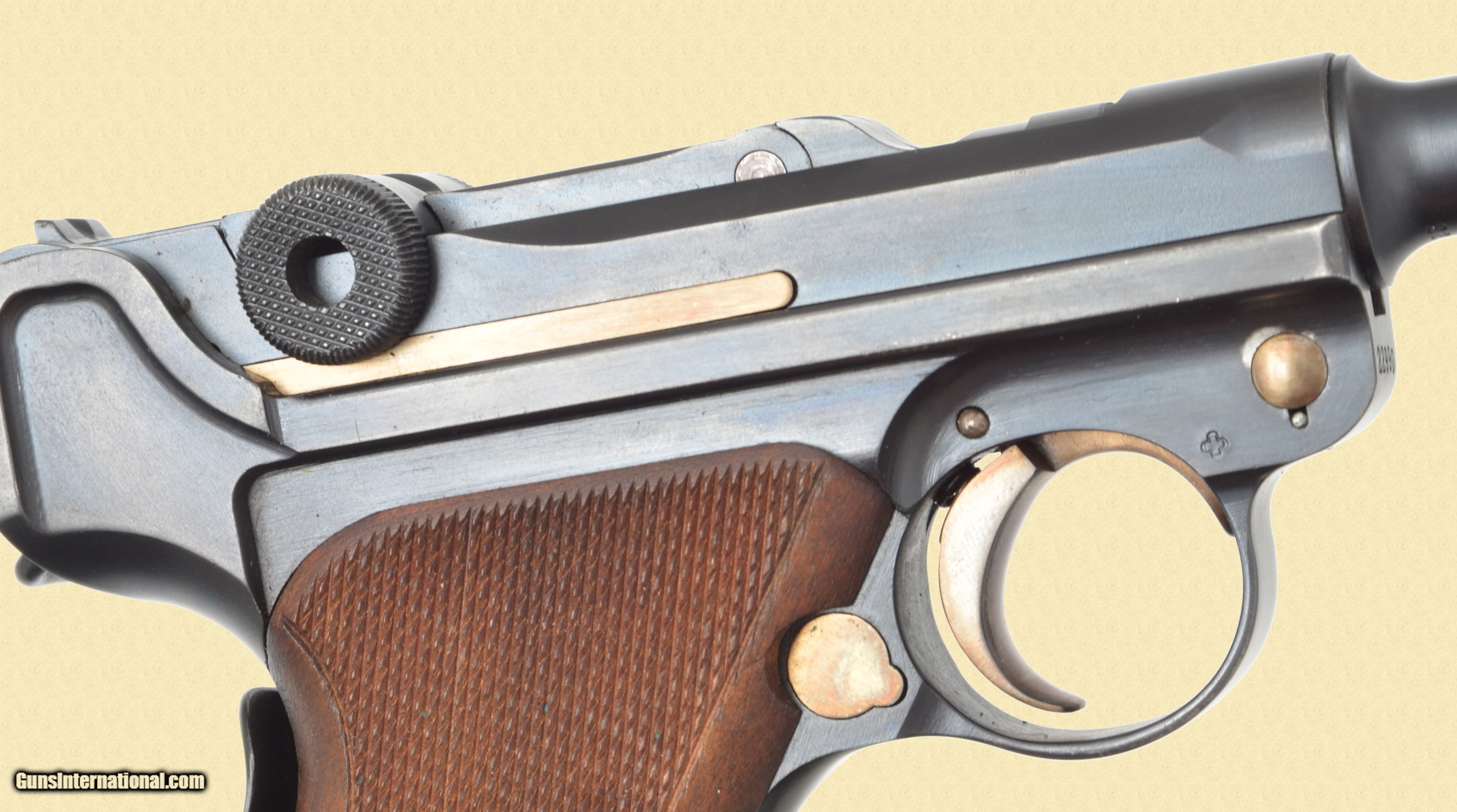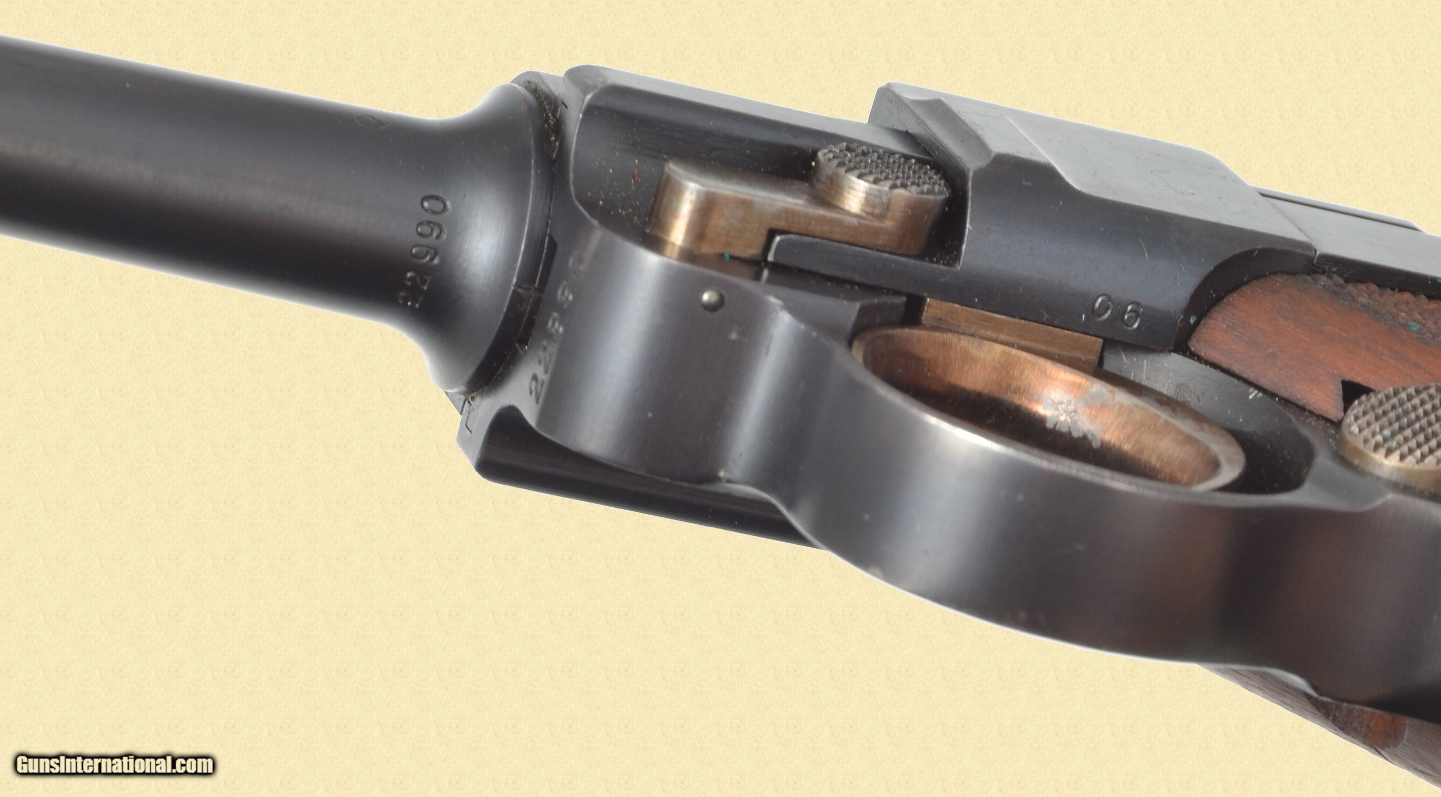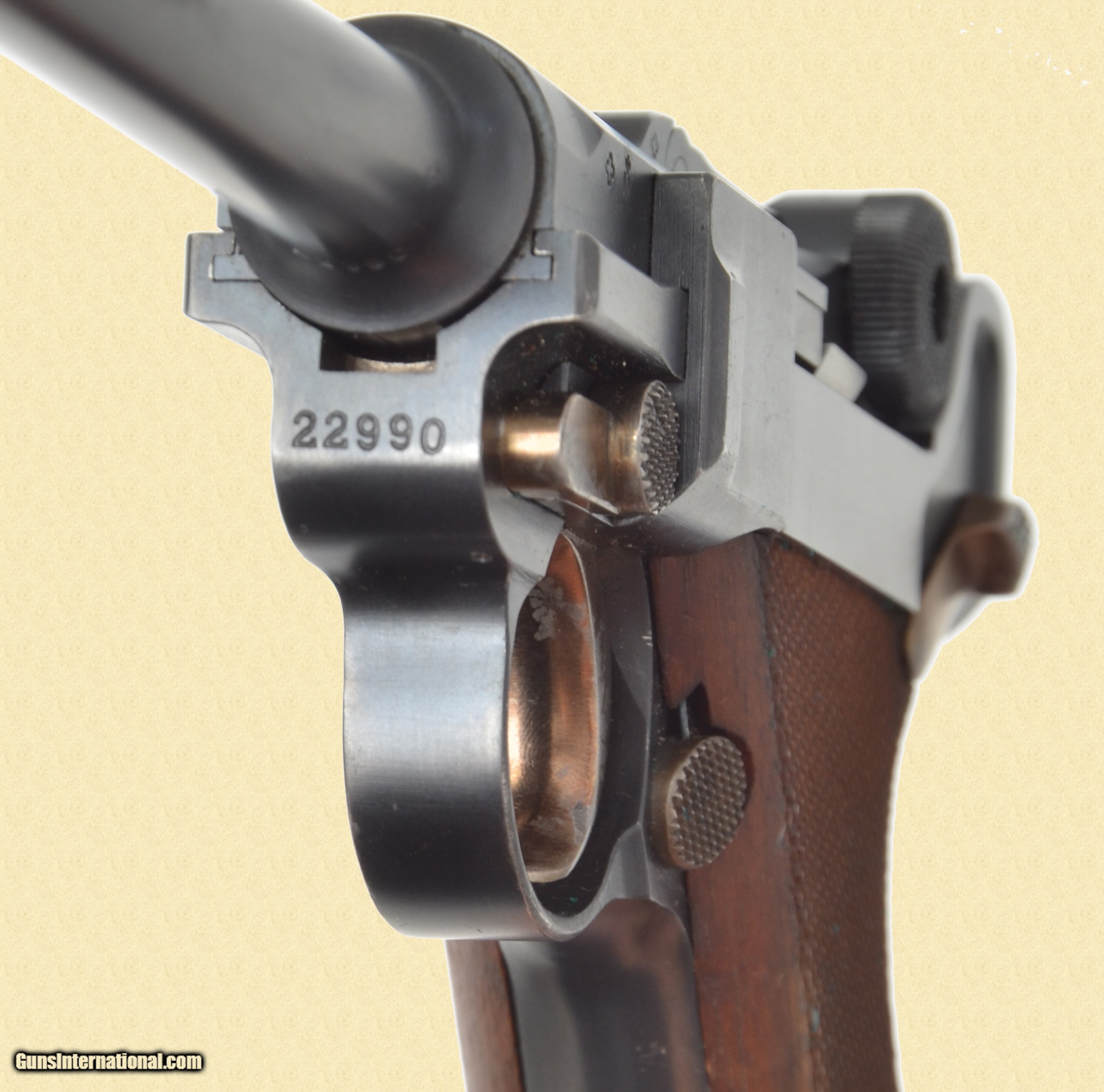 Description: 30 LUGER; 98% blue, 94% straw, excellent bore, excellent grips, 4.75'' barrel, Numbered parts are matching. Rig, includes a 1916 dated military holster with shoulder strap in Very Good condition. Please call (309)342-5800 Tues-Fri, 10 am -6pm (CST), or Sat 1pm-6pm (CST), to speak with our sales team for further information, or to purchase firearms. FEDERAL FIREARMS LICENSE (FFL): is required on all shipments of modern guns. We must wait for a copy from your dealer before we can ship to them. We will also ship C&R eligible firearms to Curio and Relic (C&R) license holders. We accept your signed, legible FFL and C&R licenses via fax at 309/ 342-5730 (always on), email at FFLsimpsonltd or through the mail at Simpson Ltd; 140 S Seminary St; Galesburg, IL 61401. Pre-1898 firearms and non-firearms items are exempt from licensing requirements. All items shipped to an Illinois address will be charged 8.75% sales tax. NOTE: Because of recent shipping restrictions and charges placed on us by UPS and FedEx (handguns must ship via next day or 2nd day air and they have added a $10 surcharge for parcels over 48”. Our return policy lasts a maximum of 3 days from the time you receive your item. If 3 days have passed since you received your purchase, and we have not been contacted by you, unfortunately, we can’t offer you a refund or exchange. If you are not happy with your purchase, please contact us by phone and/or email to arrange for a return. Items must be shipped back to us to arrive with 7 days of notification of return. SOLD Curio/Relic: Yes Serial Number: 22990 |