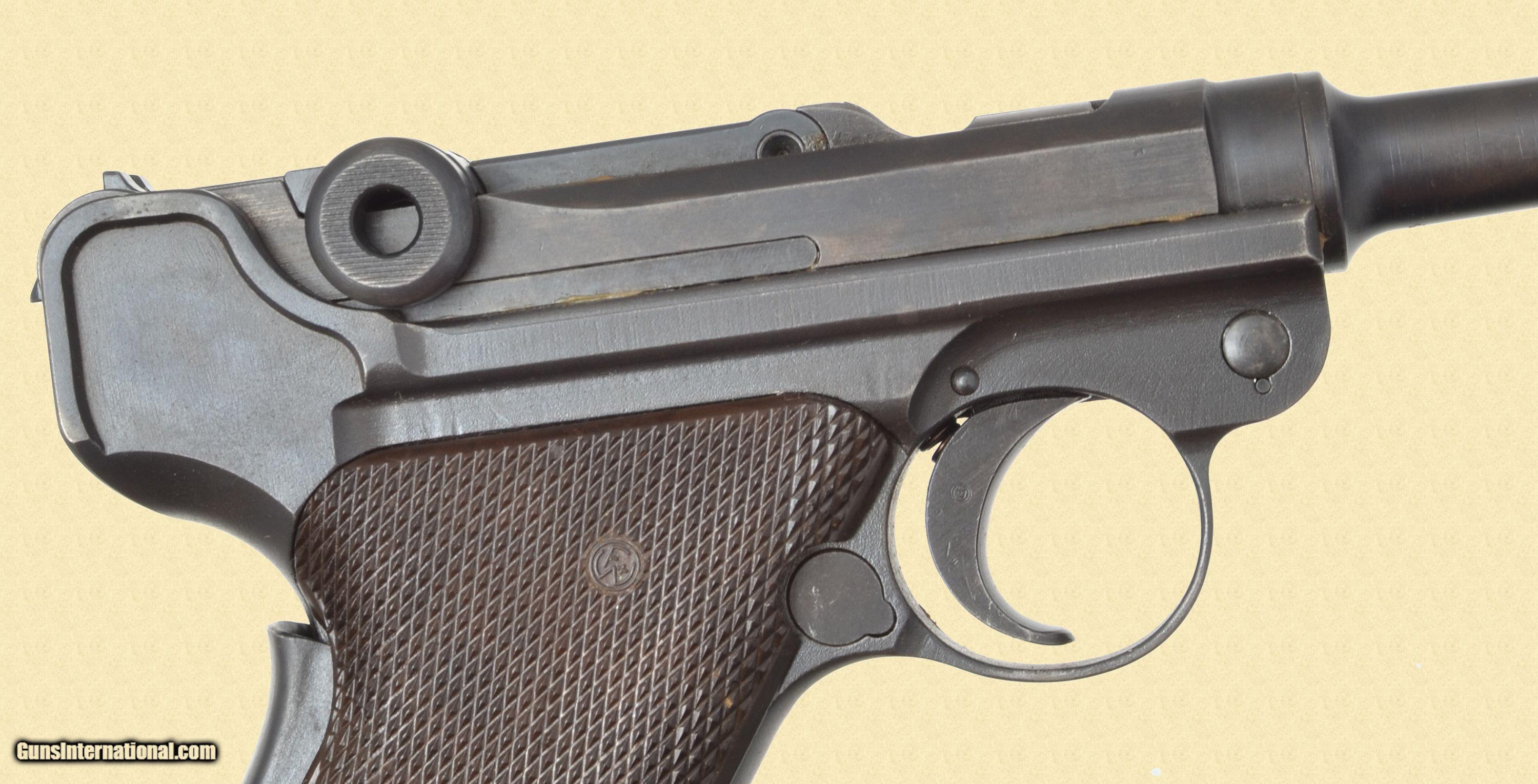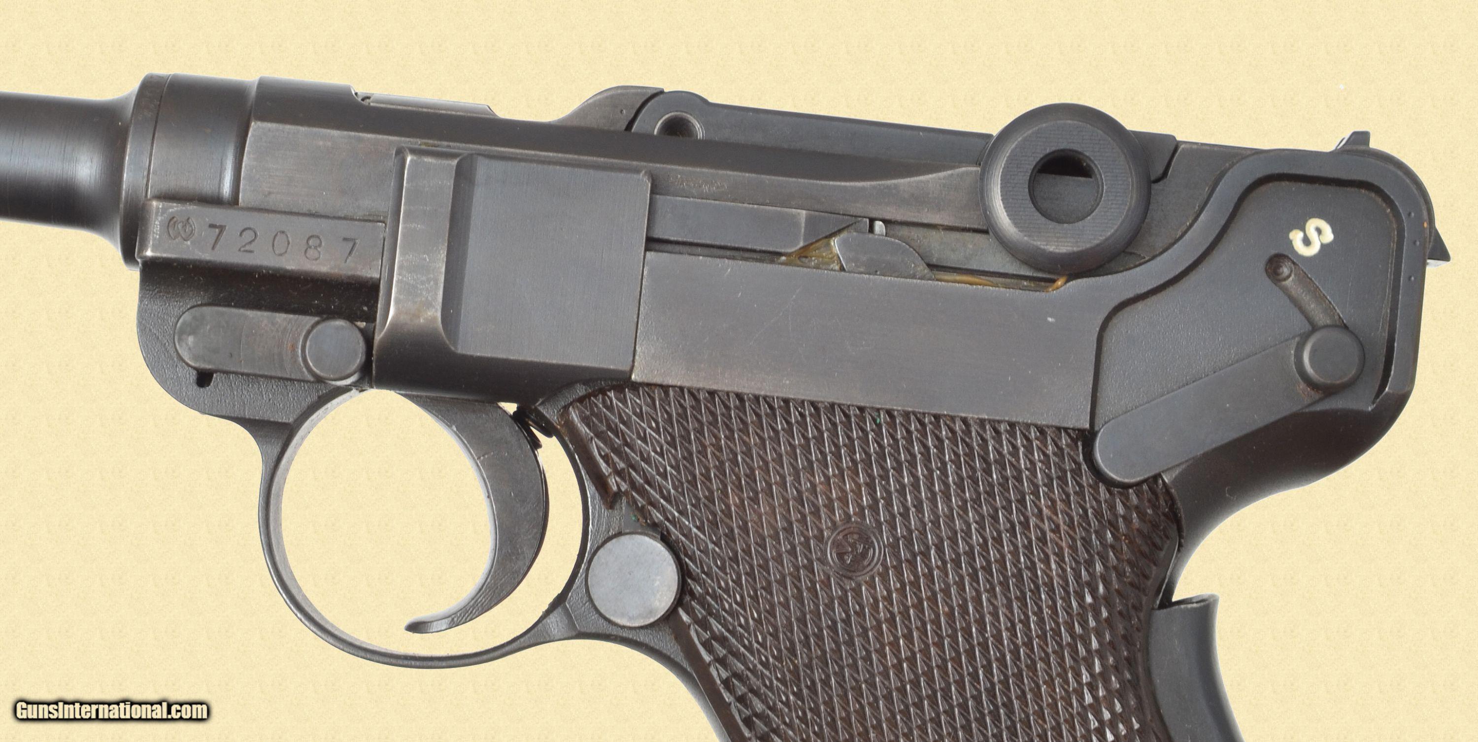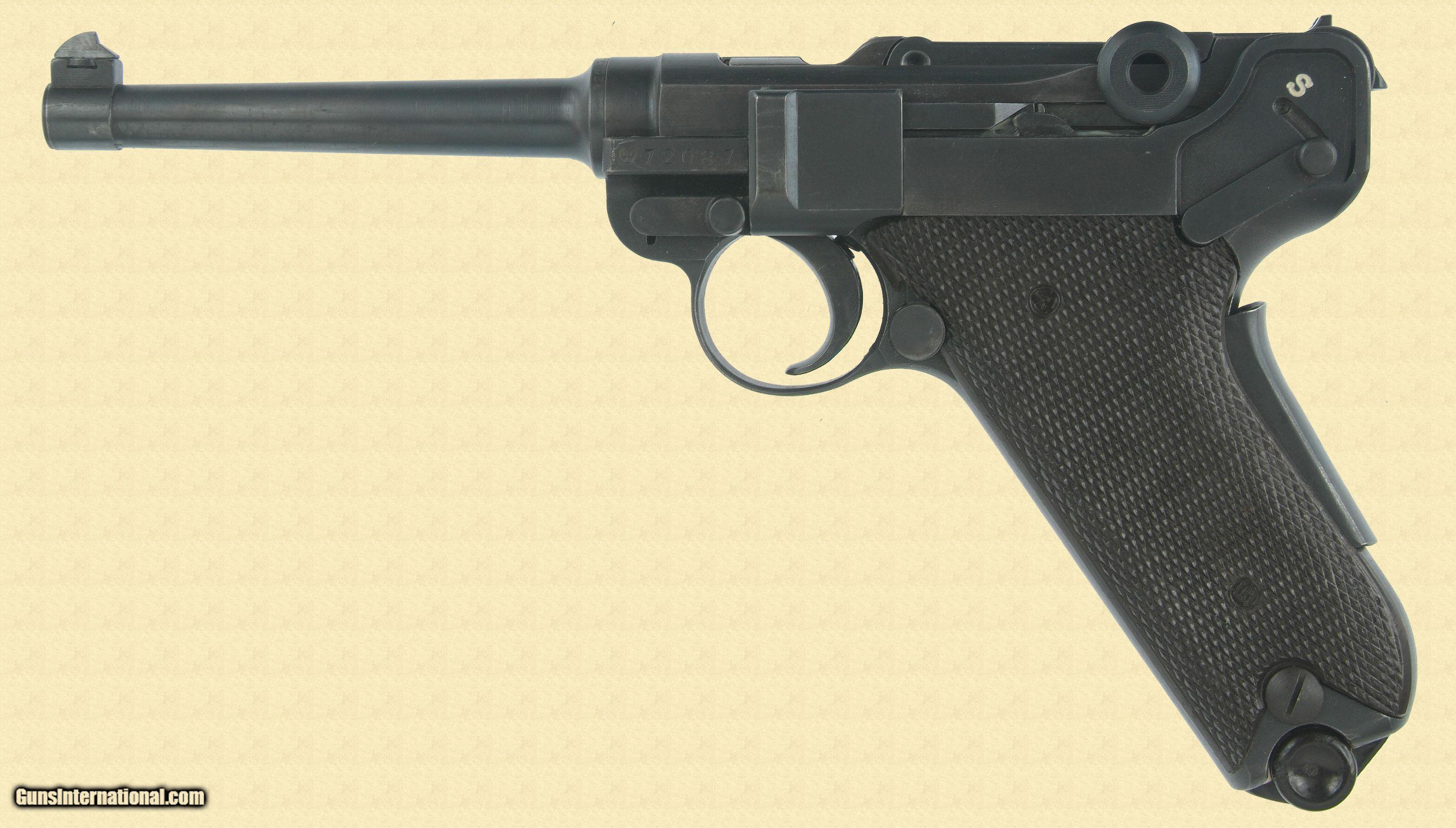 Description: 30 LUGER; 98% blue, excellent bore, very good grips, 4.75'' barrel, Matching. Rig, includes 1944 dated holster with strap and extra magazine. Please call (309)342-5800 Tues-Fri, 10 am -6pm (CST), or Sat 1pm-6pm (CST), to speak with our sales team for further information, or to purchase firearms. FEDERAL FIREARMS LICENSE (FFL): is required on all shipments of modern guns. We must wait for a copy from your dealer before we can ship to them. We will also ship C&R eligible firearms to Curio and Relic (C&R) license holders. We accept your signed, legible FFL and C&R licenses via fax at 309/ 342-5730 (always on), email at FFLsimpsonltd or through the mail at Simpson Ltd; 140 S Seminary St; Galesburg, IL 61401. Pre-1898 firearms and non-firearms items are exempt from licensing requirements. All items shipped to an Illinois address will be charged 8.75% sales tax. NOTE: Because of recent shipping restrictions and charges placed on us by UPS and FedEx (handguns must ship via next day or 2nd day air and they have added a $10 surcharge for parcels over 48”. Our return policy lasts a maximum of 3 days from the time you receive your item. If 3 days have passed since you received your purchase, and we have not been contacted by you, unfortunately, we can’t offer you a refund or exchange. If you are not happy with your purchase, please contact us by phone and/or email to arrange for a return. Items must be shipped back to us to arrive with 7 days of notification of return. SOLD Curio/Relic: Yes Serial Number: 72087 |