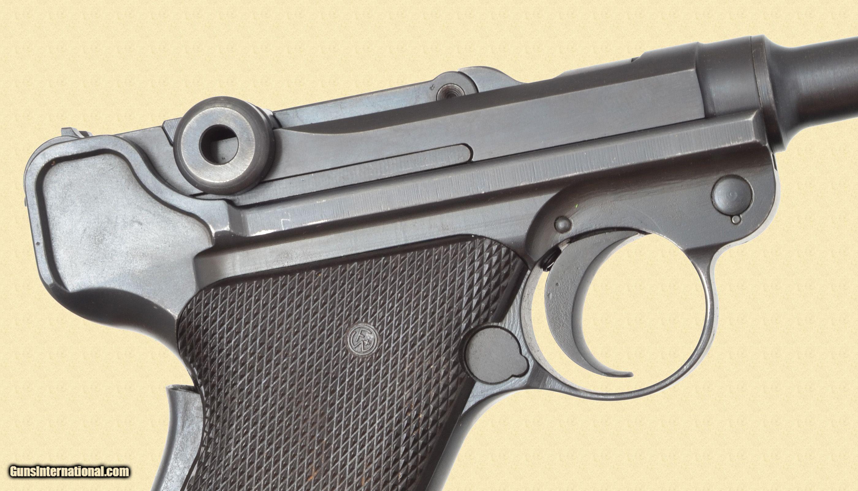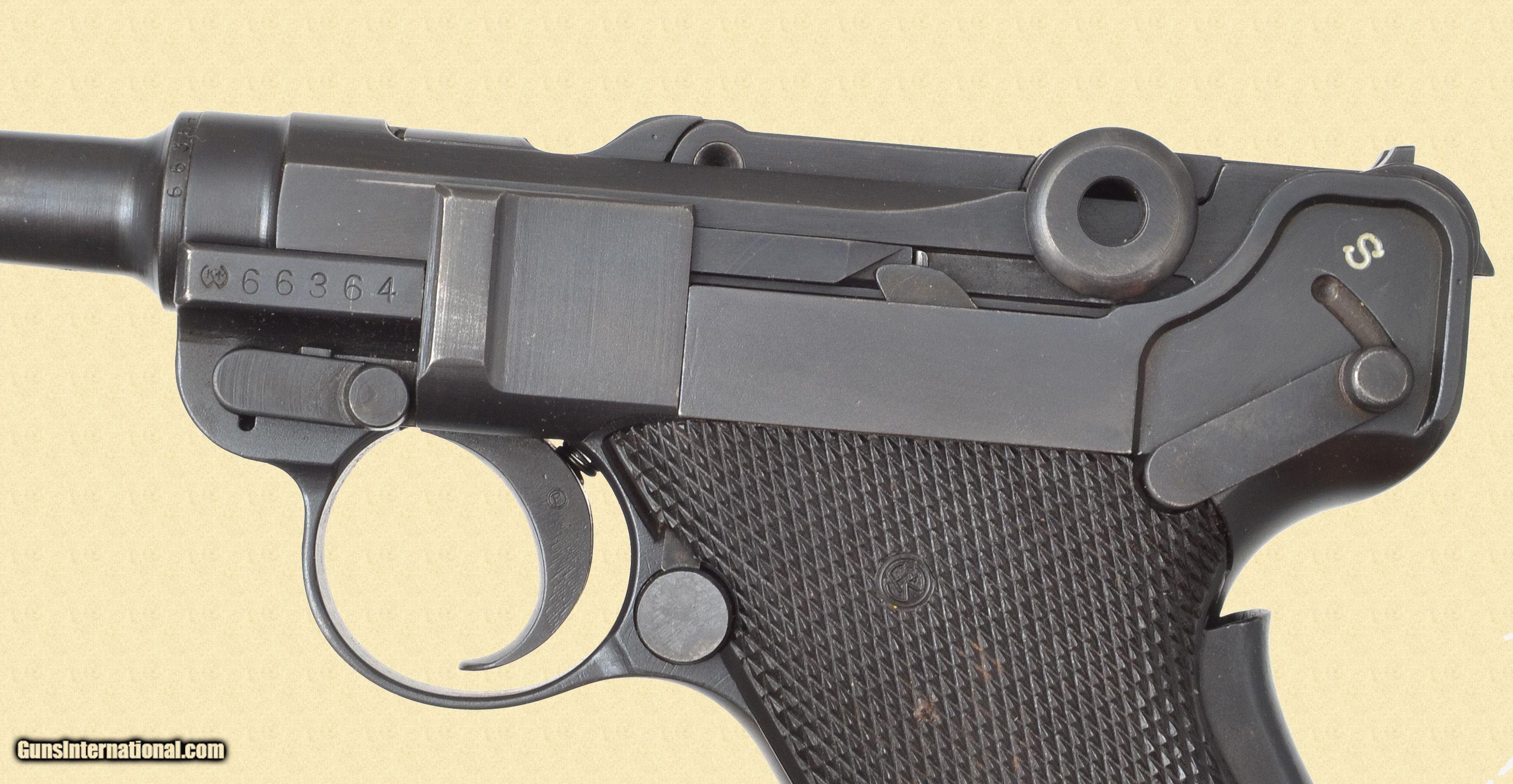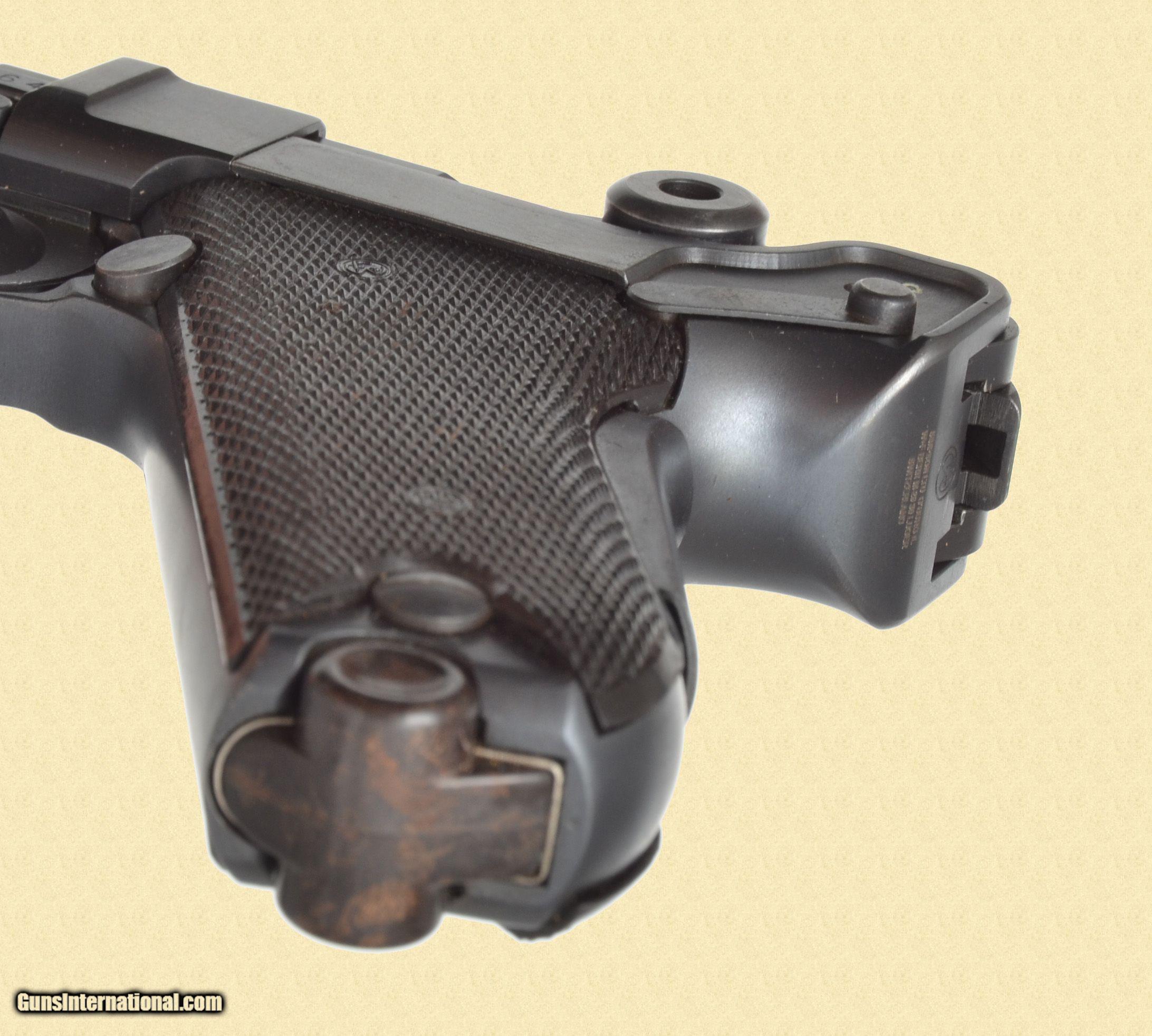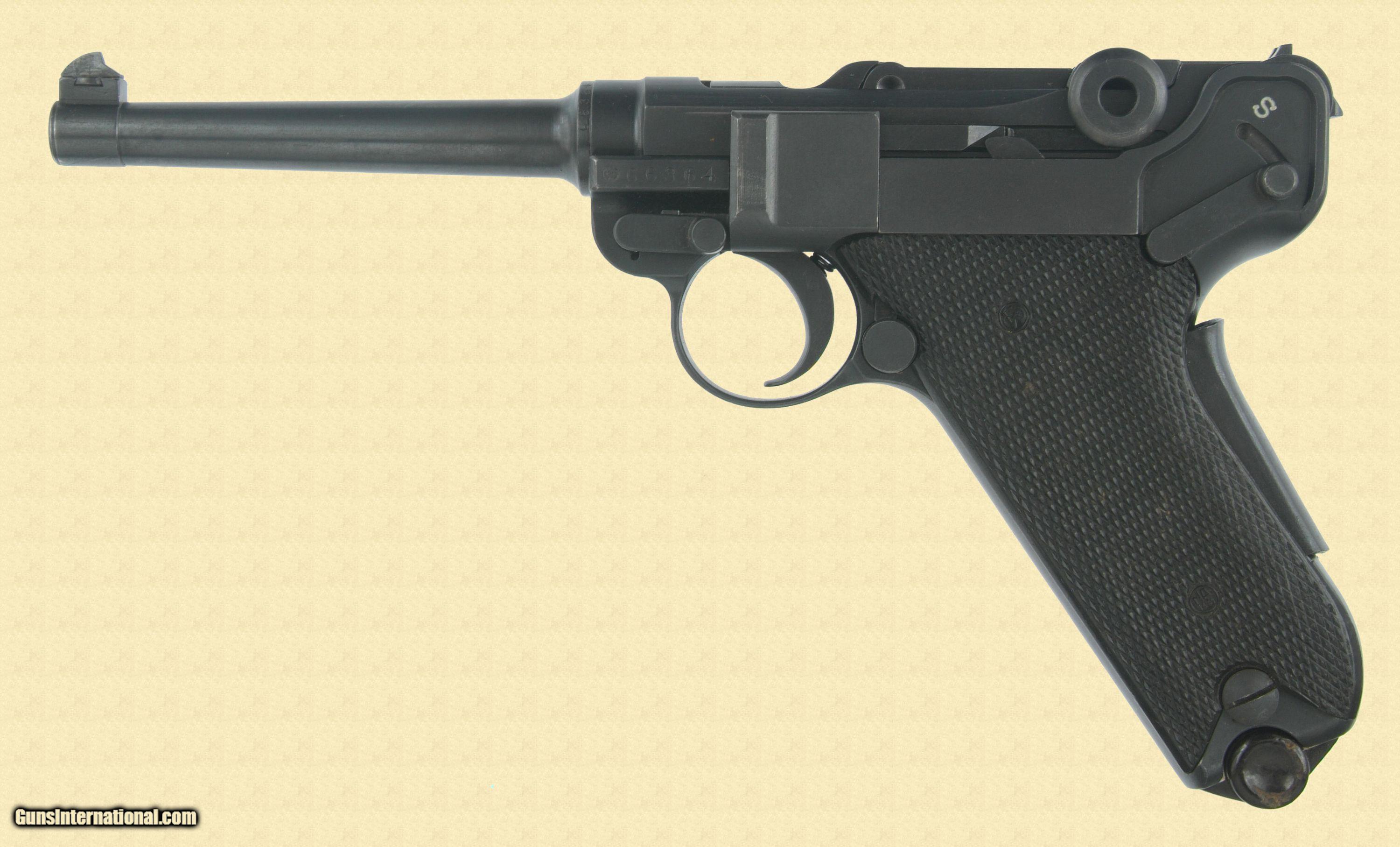 Description: 30 LUGER; 98% blue, excellent bore, excellent grips, 4.75'' barrel, Matching. Rig, includes 1944 dated holster in VG+ condition with shoulder strap and extra magazine. Please call (309)342-5800 Tues-Fri, 10 am -6pm (CST), or Sat 1pm-6pm (CST), to speak with our sales team for further information, or to purchase firearms. FEDERAL FIREARMS LICENSE (FFL): is required on all shipments of modern guns. We must wait for a copy from your dealer before we can ship to them. We will also ship C&R eligible firearms to Curio and Relic (C&R) license holders. We accept your signed, legible FFL and C&R licenses via fax at 309/ 342-5730 (always on), email at FFLsimpsonltd or through the mail at Simpson Ltd; 140 S Seminary St; Galesburg, IL 61401. Pre-1898 firearms and non-firearms items are exempt from licensing requirements. All items shipped to an Illinois address will be charged 8.75% sales tax. NOTE: Because of recent shipping restrictions and charges placed on us by UPS and FedEx (handguns must ship via next day or 2nd day air and they have added a $10 surcharge for parcels over 48”. Our return policy lasts a maximum of 3 days from the time you receive your item. If 3 days have passed since you received your purchase, and we have not been contacted by you, unfortunately, we can’t offer you a refund or exchange. If you are not happy with your purchase, please contact us by phone and/or email to arrange for a return. Items must be shipped back to us to arrive with 7 days of notification of return. SOLD Curio/Relic: Yes Serial Number: 66364 |