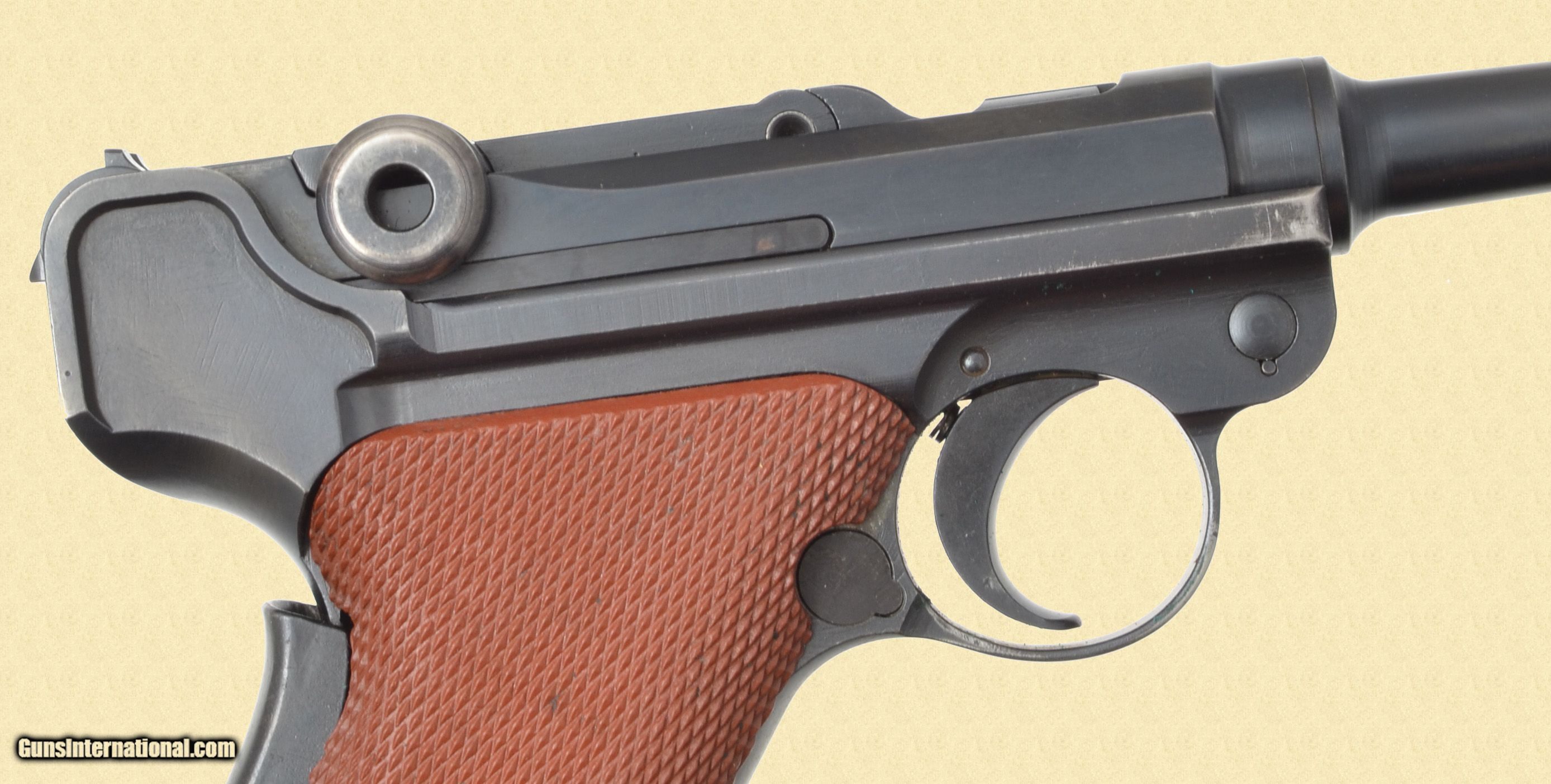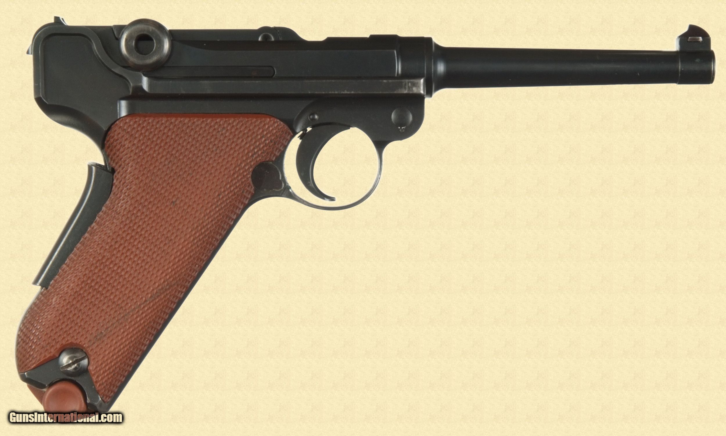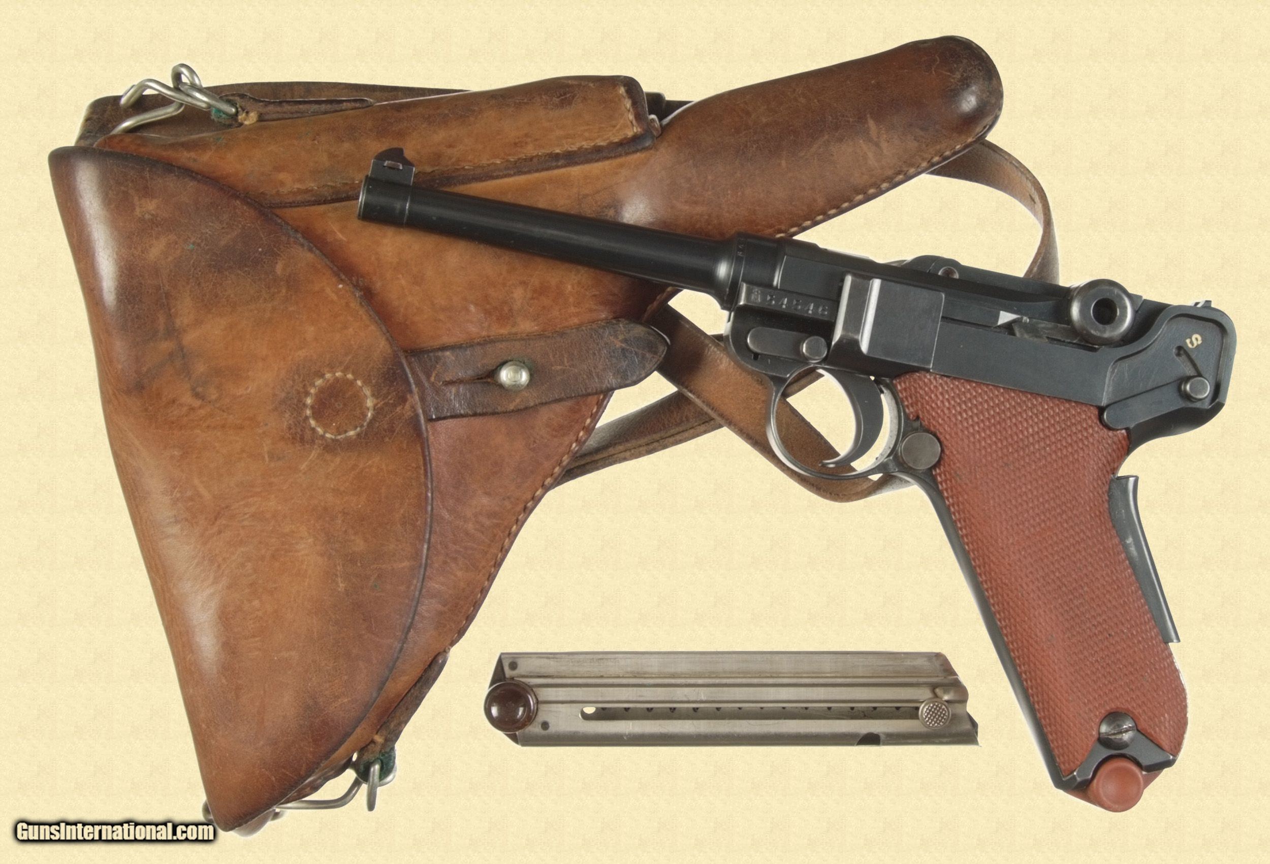 Description: 30 LUGER; 97% blue, excellent bore, excellent grips, 4.75'' barrel, Red grip. Matching with proper magazine. Shows minor wear. Rig includes a 1936 dated holster with shoulder strap in Good condition and extra brown bottom magazine., Please call (309)342-5800 Tues-Fri, 10 am -6pm (CST), or Sat 1pm-6pm (CST), to speak with our sales team for further information, or to purchase firearms. FEDERAL FIREARMS LICENSE (FFL): is required on all shipments of modern guns. We must wait for a copy from your dealer before we can ship to them. We will also ship C&R eligible firearms to Curio and Relic (C&R) license holders. We accept your signed, legible FFL and C&R licenses via fax at 309/ 342-5730 (always on), email at FFLsimpsonltd or through the mail at Simpson Ltd; 140 S Seminary St; Galesburg, IL 61401. Pre-1898 firearms and non-firearms items are exempt from licensing requirements. All items shipped to an Illinois address will be charged 8.75% sales tax. NOTE: Because of recent shipping restrictions and charges placed on us by UPS and FedEx (handguns must ship via next day or 2nd day air and they have added a $10 surcharge for parcels over 48”. Our return policy lasts a maximum of 3 days from the time you receive your item. If 3 days have passed since you received your purchase, and we have not been contacted by you, unfortunately, we can’t offer you a refund or exchange. If you are not happy with your purchase, please contact us by phone and/or email to arrange for a return. Items must be shipped back to us to arrive with 7 days of notification of return. SOLD Curio/Relic: Yes Serial Number: 54546 |