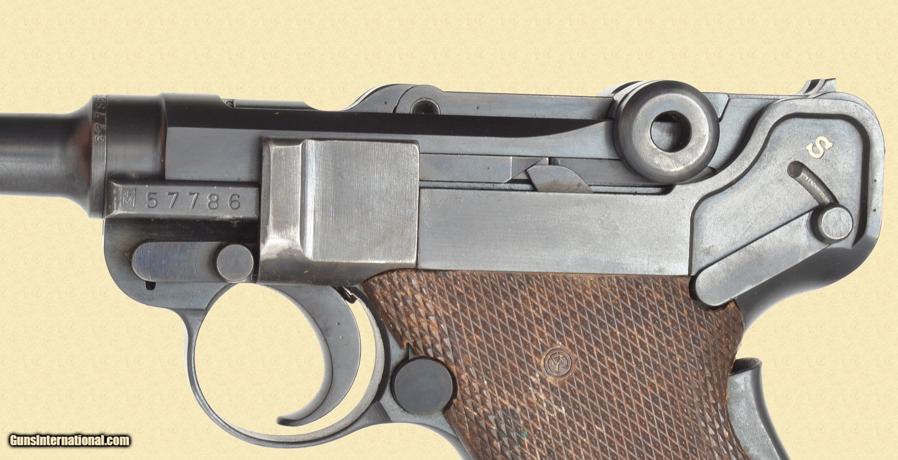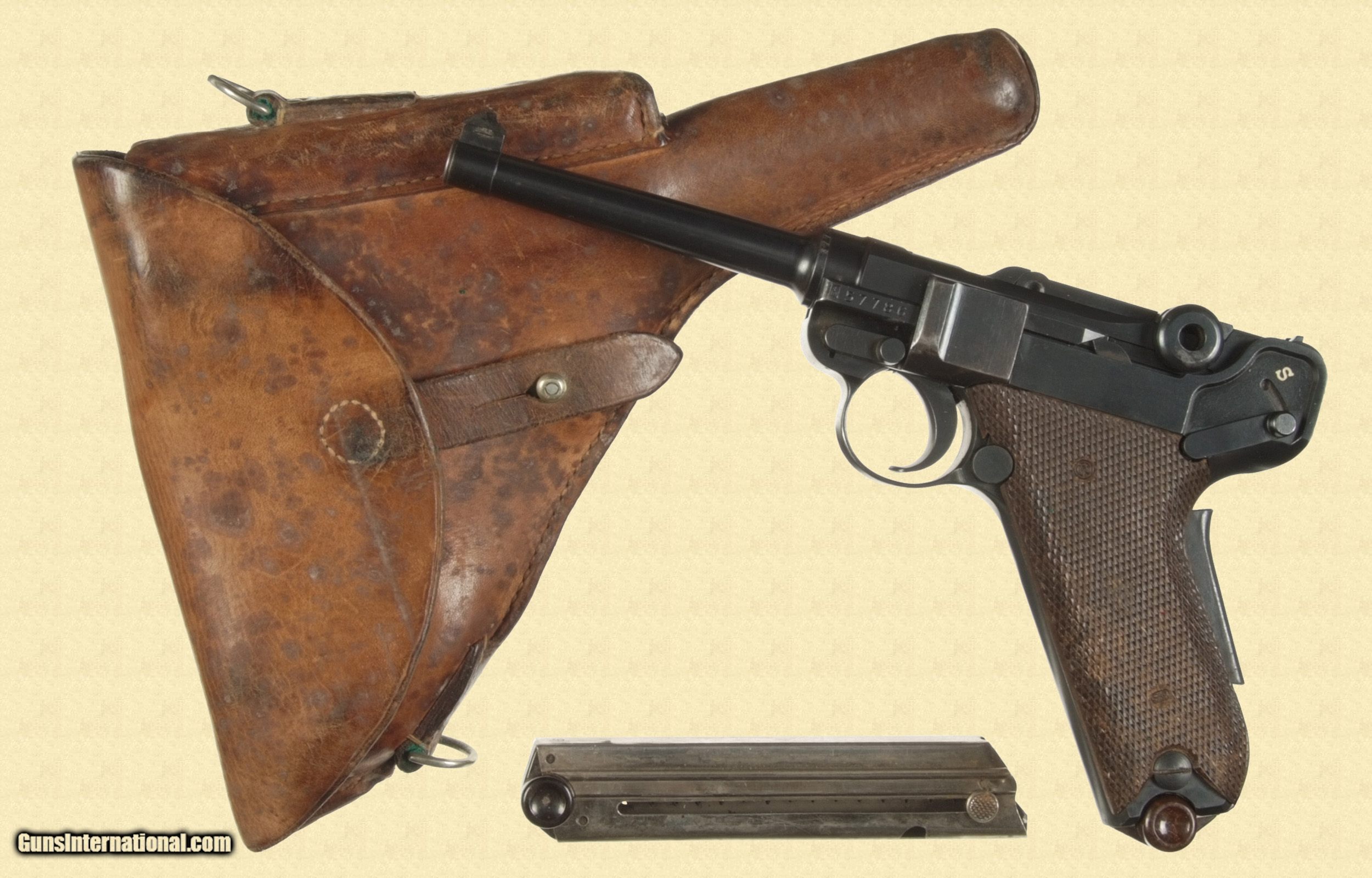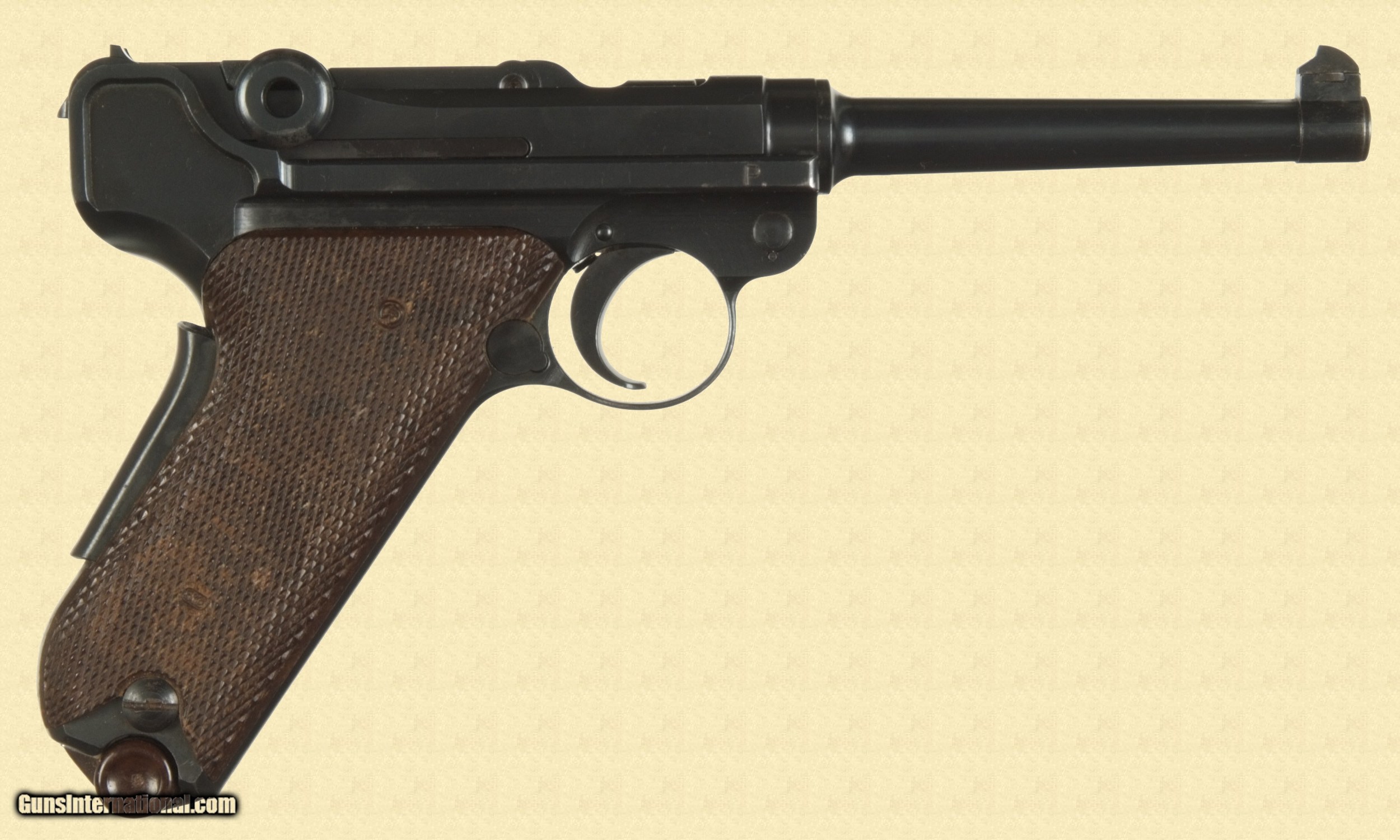 Description: 30 LUGER; 97% blue, excellent bore, very good grips, 4.75'' barrel, Matching. Made in 1940. Rig, includes 1939 dated holster in Good condition with extra magazine. Please call (309)342-5800 Tues-Fri, 10 am -6pm (CST), or Sat 1pm-6pm (CST), to speak with our sales team for further information, or to purchase firearms. FEDERAL FIREARMS LICENSE (FFL): is required on all shipments of modern guns. We must wait for a copy from your dealer before we can ship to them. We will also ship C&R eligible firearms to Curio and Relic (C&R) license holders. We accept your signed, legible FFL and C&R licenses via fax at 309/ 342-5730 (always on), email at FFLsimpsonltd or through the mail at Simpson Ltd; 140 S Seminary St; Galesburg, IL 61401. Pre-1898 firearms and non-firearms items are exempt from licensing requirements. All items shipped to an Illinois address will be charged 8.75% sales tax. NOTE: Because of recent shipping restrictions and charges placed on us by UPS and FedEx (handguns must ship via next day or 2nd day air and they have added a $10 surcharge for parcels over 48”. Our return policy lasts a maximum of 3 days from the time you receive your item. If 3 days have passed since you received your purchase, and we have not been contacted by you, unfortunately, we can’t offer you a refund or exchange. If you are not happy with your purchase, please contact us by phone and/or email to arrange for a return. Items must be shipped back to us to arrive with 7 days of notification of return. SOLD Curio/Relic: Yes Serial Number: 57786 |