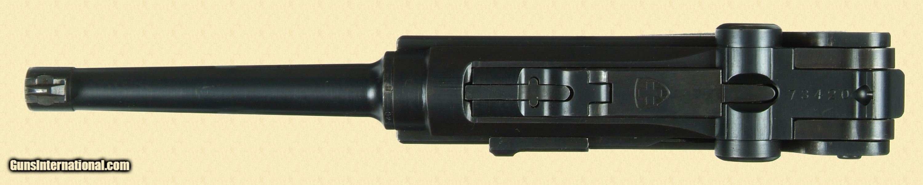 Description: 30 LUGER; 97% blue, excellent bore, excellent grips, 4.75'' barrel, Manufactured in 1944 with original blue finish and checkered black plastic grips. The numbered parts are matching. Stamped on top of the toggle with the Swiss Cross in Shield. The F+W mark appears on the back of the frame and left side rail. Complete with an original Swiss brown plastic bottom magazine. The finish shows light edge wear with some light scratches and rubs in the finish on the barrel. The grips are excellent with sharp checkering. Mechanically excellent with a bright bore. Includes a 1944 dated leather holster with shoulder strap in very good original intact condition and an extra Swiss brown plastic bottom magazine. Please call (309)342-5800 Tues-Fri, 10 am -6pm (CST), or Sat 1pm-6pm (CST), to speak with our sales team for further information, or to purchase firearms. FEDERAL FIREARMS LICENSE (FFL): is required on all shipments of modern guns. We must wait for a copy from your dealer before we can ship to them. We will also ship C&R eligible firearms to Curio and Relic (C&R) license holders. We accept your signed, legible FFL and C&R licenses via fax at 309/ 342-5730 (always on), email at FFLsimpsonltd or through the mail at Simpson Ltd; 140 S Seminary St; Galesburg, IL 61401. Pre-1898 firearms and non-firearms items are exempt from licensing requirements. All items shipped to an Illinois address will be charged 8.75% sales tax. NOTE: Because of recent shipping restrictions and charges placed on us by UPS and FedEx (handguns must ship via next day or 2nd day air and they have added a $10 surcharge for parcels over 48”. Our return policy lasts a maximum of 3 days from the time you receive your item. If 3 days have passed since you received your purchase, and we have not been contacted by you, unfortunately, we can’t offer you a refund or exchange. If you are not happy with your purchase, please contact us by phone and/or email to arrange for a return. Items must be shipped back to us to arrive with 7 days of notification of return. SOLD Curio/Relic: Yes Serial Number: 73420 |