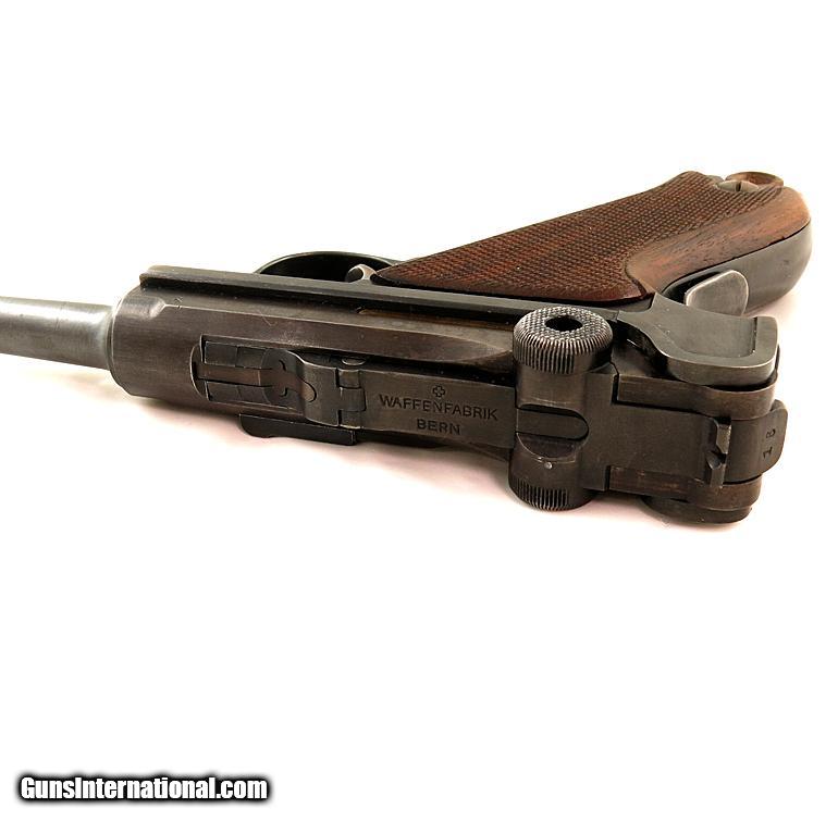 Description: Swiss Bern Model 1906/24 Luger Pistol. Excellent condition, mint bore. Magazine with different number but the rest match. SOLD |