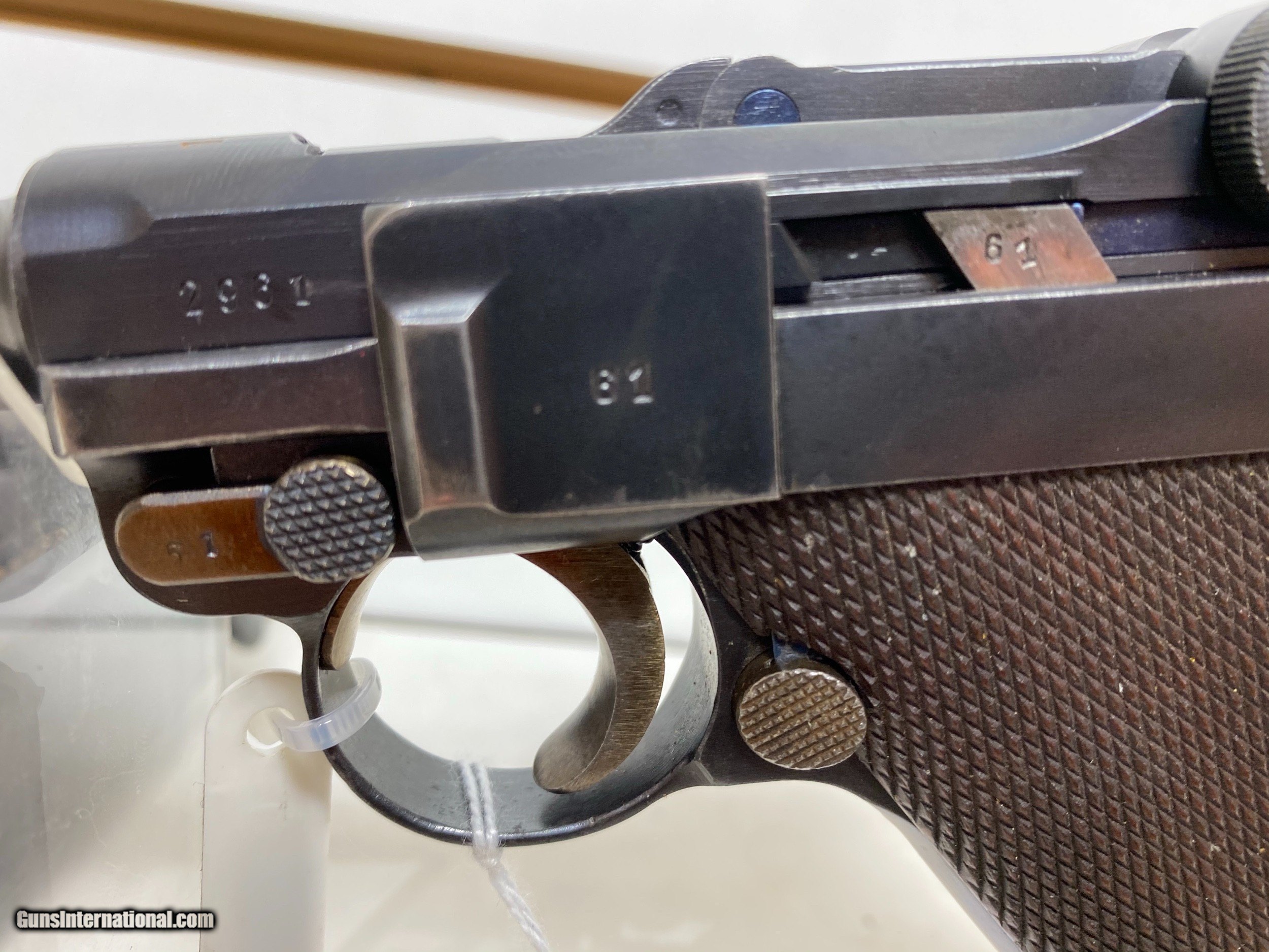 Description: Used Luger BYF 9mm numbers matching (except magazine) leather holster 1 magazine good condition Buyer pays shipping Millers Gun Center Located in New Castle, Delaware "Home of TAX-Free shopping SOLD Serial Number: 2961 |