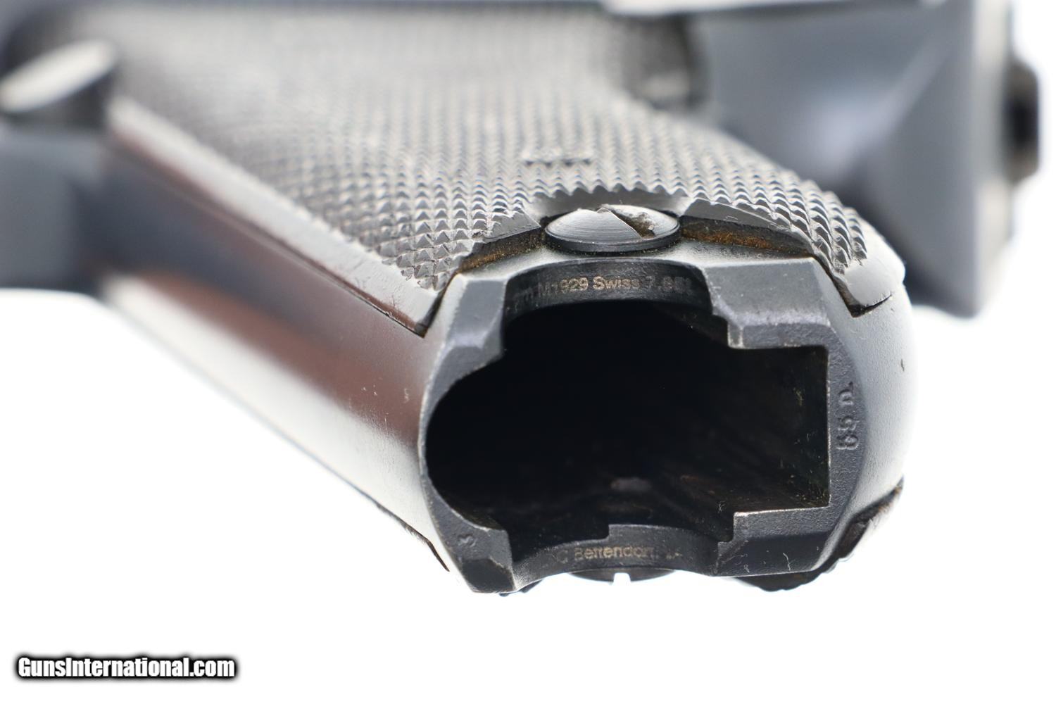 Near EXC factory blue. Mirror Bore with minimal etching. Perfect manual mechanics with both magazines. One of the more desirable of the 1929 Bern pistols, manufactured near the end of production in 1944. Especially nice with the closely dated military holster and spare magazine!