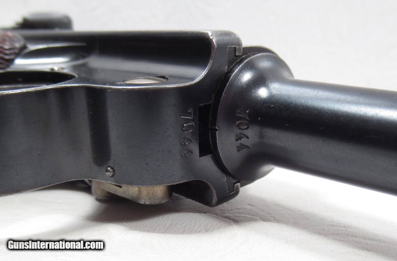 Description: Very Rare 1900 American Eagle Test Luger; Serial No. 7044; 100% Original and Matching; 30 Luger Caliber with 4 ½” Barrel; Nearly All Original Metal Finish Remains; Great Condition Original Grips; Original Magazine; Excellent Bore and Action; Beautiful and Rare 120 Year-Old Luger Pistol; See All Photos for Condition; See All Photos for Condition; No Texts. Call or Email Only; PERSONAL PROPERTY of Harold Wieser; Price: $7,975 + $45 S&H Via FedEx Express; Price includes insured shipping; return policy: three days inspection from the date the item is received; full refund of shipping both ways ONLY IF THE ITEM IS MISREPRESENTED. SOLD Manufacturer: American Eagle Model: Luger Serial Number: 7044 |