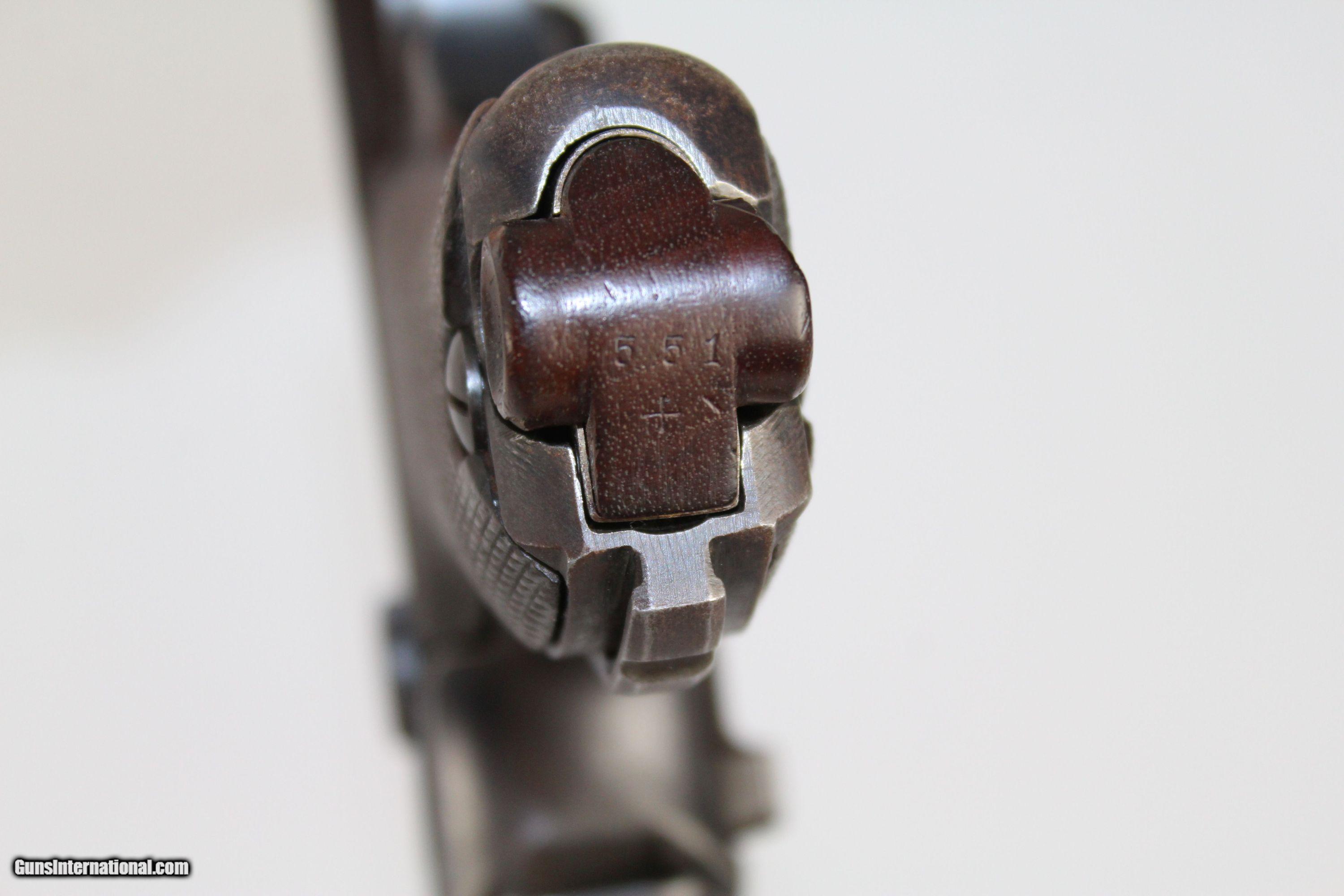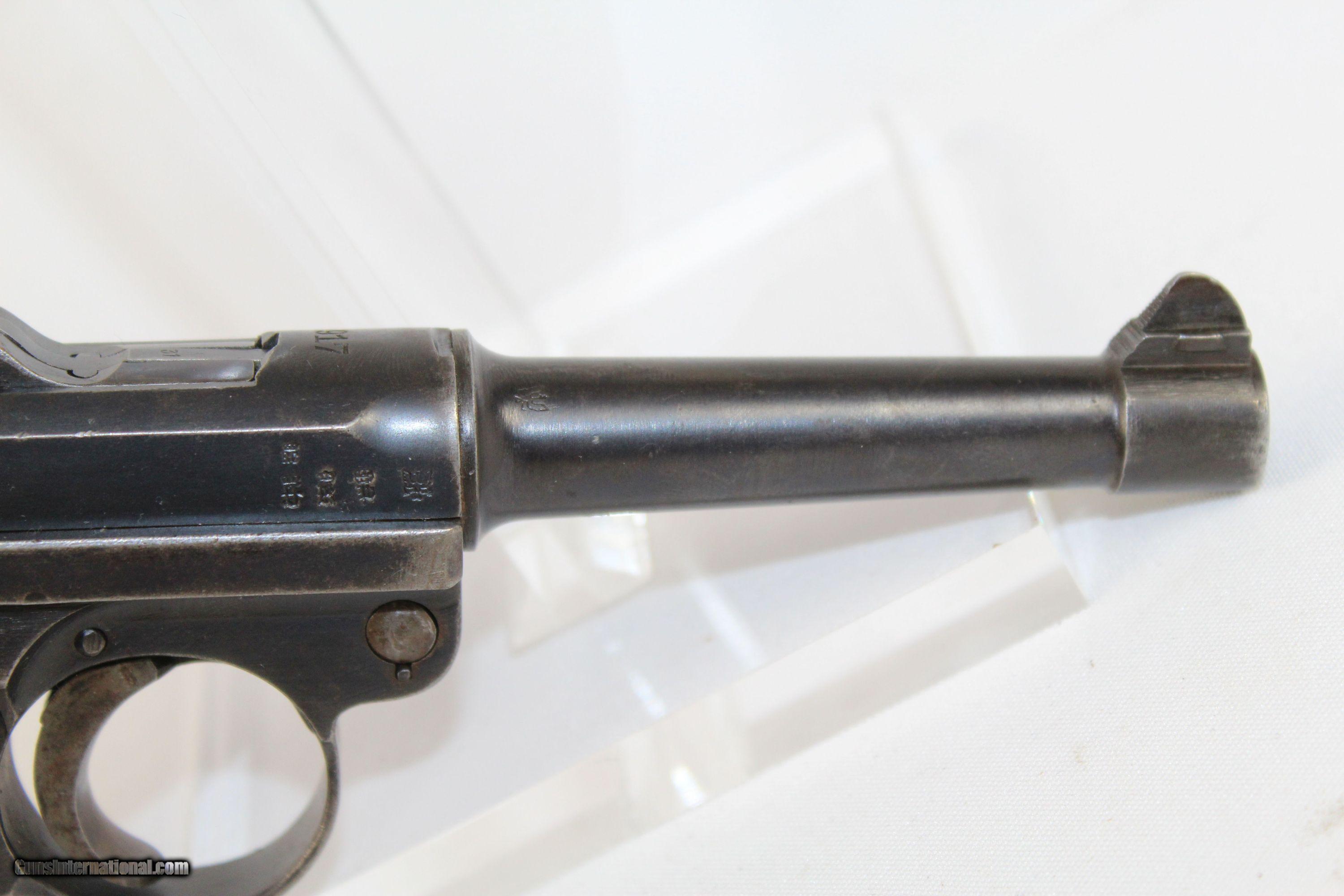 Description: WORLD WAR I Dated German ERFURT 1917 Luger Pistol Imperial German Military Pistol Here we present an Imperial German Military P.08 Luger Pistol, made in 1917 by the Royal Arsenal at Erfurt. These were made for the Imperial German Army and were used in the bitter fighting of trench warfare of the Great War. Georg Luger was the inventor and the namesake of this very successful invention. His design would be especially successful throughout World War I & World War II. These pistols had and still have a reputation of being of utter quality and quite expensive to produce. This specimen is dated “1917” on the chamber and bears the maker’s mark of Erfurt on the toggle. This pistol is serial numbered in the German military style with numbers on nearly every part. Imperial German military proof and acceptance marks are located throughout, but especially on the front right side of the receiver. The overall condition is very good. The original blue finish is about 80%. The straw colors are quite faded. The markings are clear. The numbered parts match, with the exception of the extractor and the magazine. The walnut grips are not numbered and are in very good condition. The bore is clean with sharp rifling. The action is excellent. Here is a wonderful example of a Great War Luger! This firearm is classified as a Curio & Relic. Barrel is 4 inches. Caliber: 9mm Luger Overall condition as seen in photos. Very Fast. Very Safe. FREE SHIPPING. Will need to be sent to your local FFL or C&R licensee. This firearm is classified as a Curio & Relic. Guaranteed AUTHENTIC & Includes CERTIFICATE OF AUTHENTICITY. ancestryguns $2000 #5123 SOLD Curio/Relic: Yes |