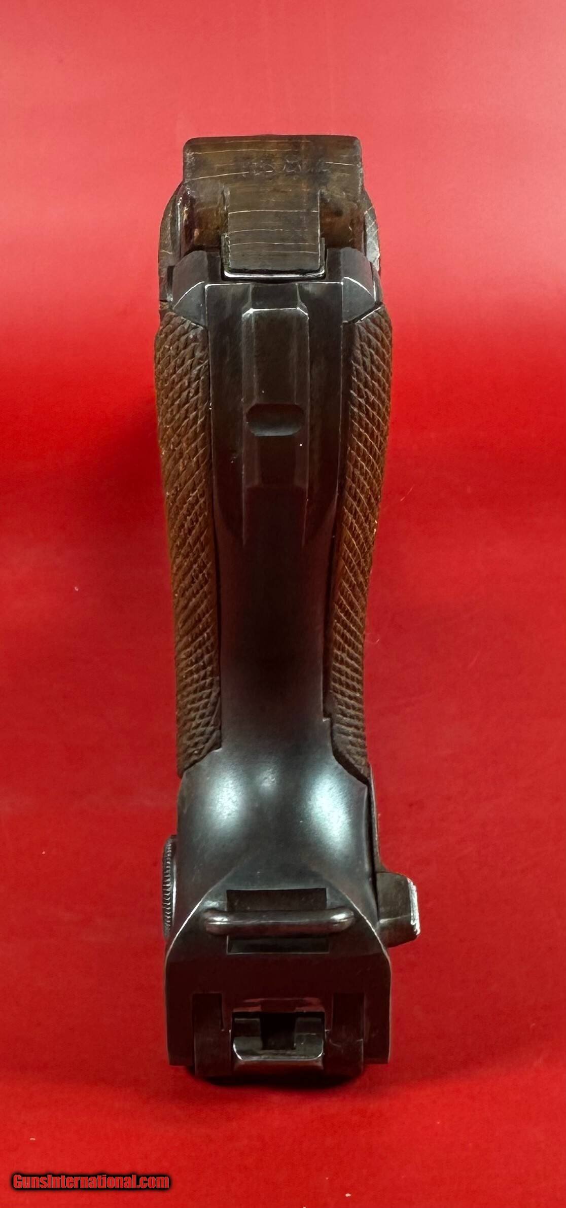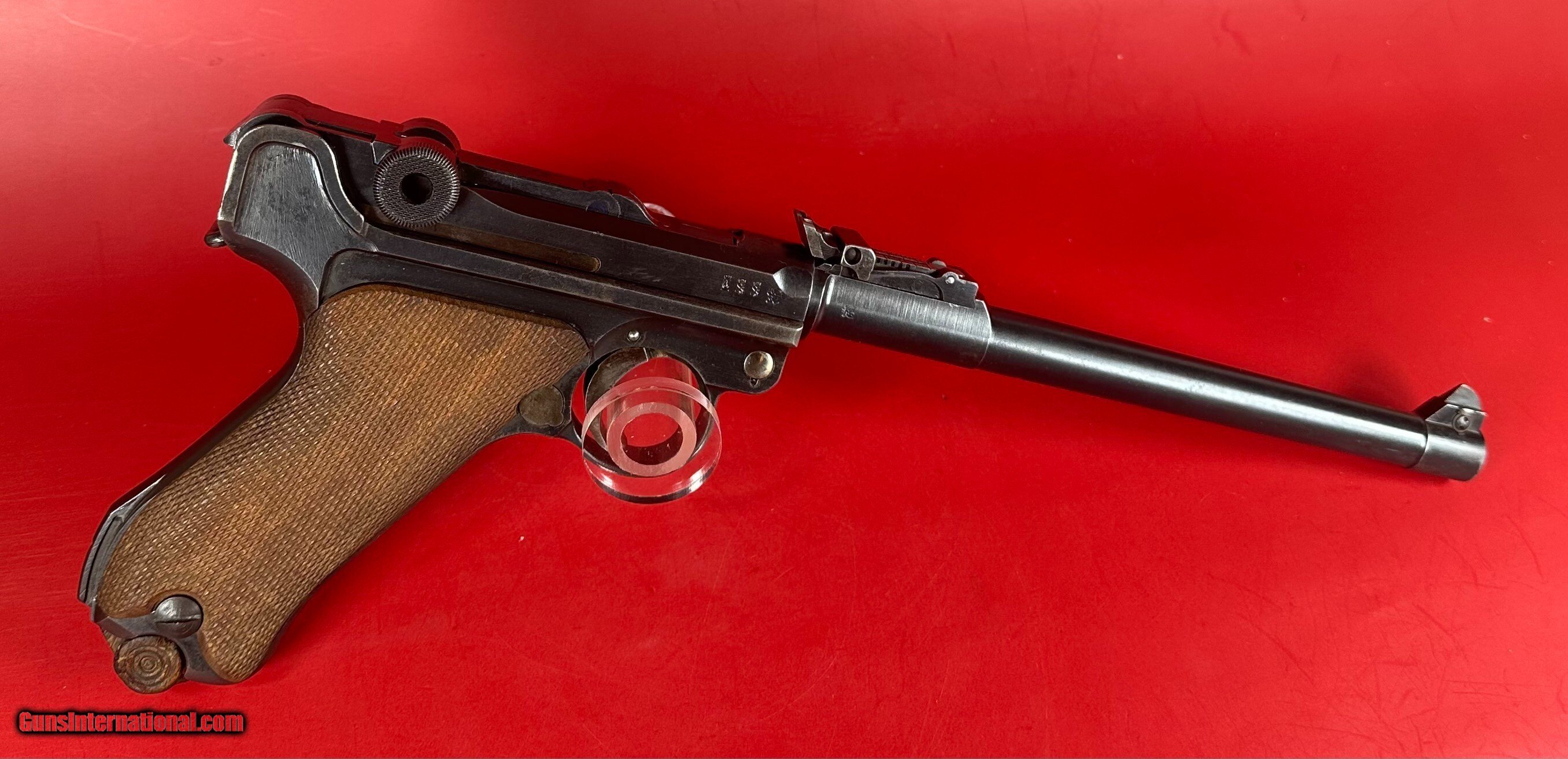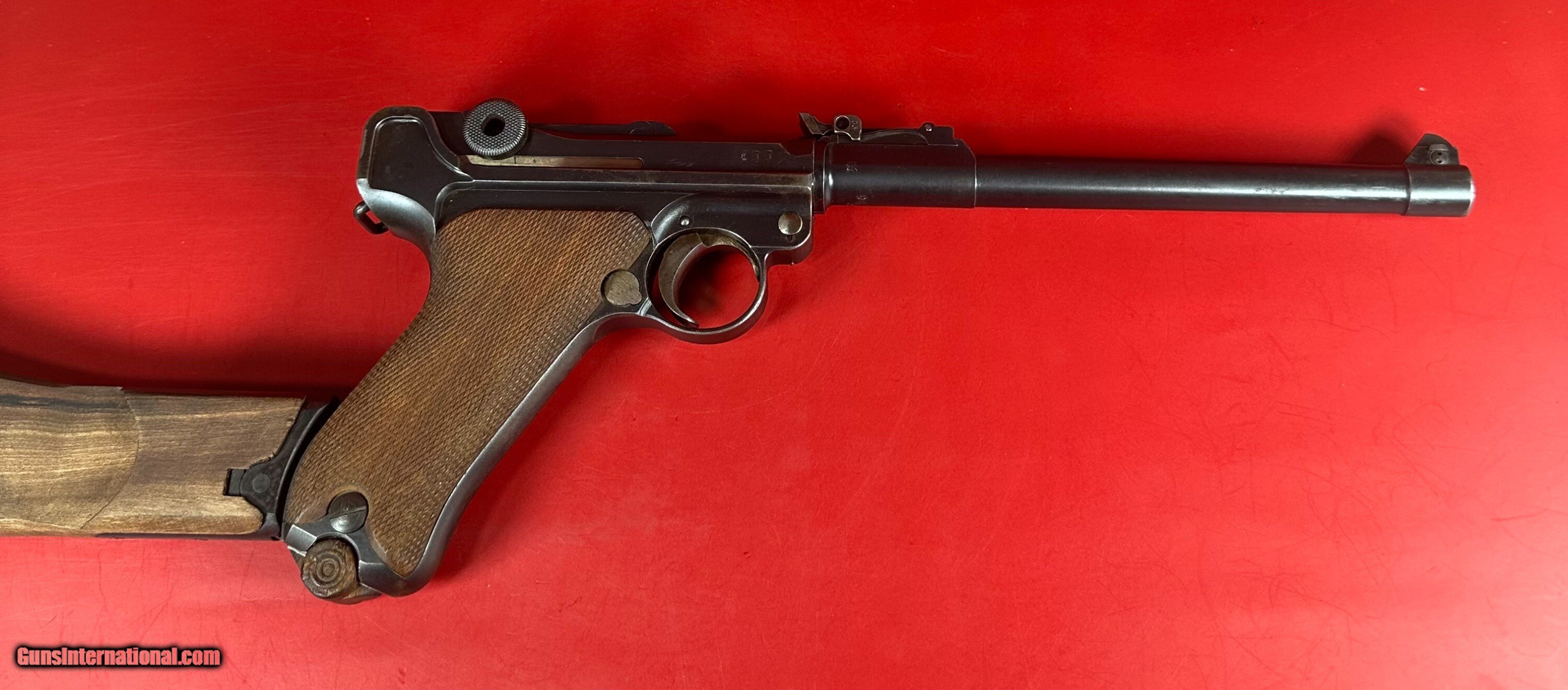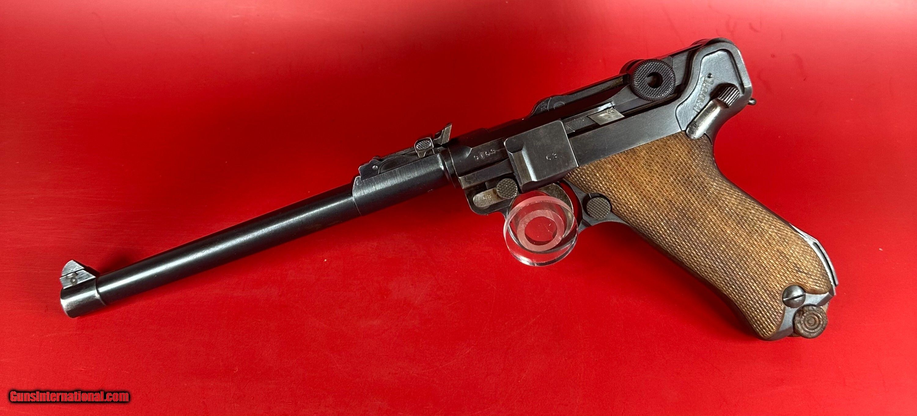 Description: For sale an iconic semi automatic pistol 1917 DWM Artillery (long) P08 Luger. This is WWI production and it's German army proofed. Sale includes wood stock, two magazines, luger tool, rod and soft gun case. The example is in excellent condition. All visible numbers are matching, except magazine. Shiny, bright bore with very strong rifling. Bluing is about 98%, grips are about 97%, without chips or cracks. Action functions the way it should. This gun will make a great addition to any collection. This gun is not NFA and doesn't require Tax stamp. Specifications Manufacturer: DWM Model: P.08 Luger ( P08, P 08, P-08, P.08 ) Caliber: 9mm Luger Capacity: 8+1 Barrel Length: 8" Finish: Blued Stock/Grips: Checkered wood grips Magazines Included: 2 x 8rd mags Layaway and payment plan are available. Handgun Caliber: 9x19mm Parabellum (9mm Luger, 9x19mm NATO) Price: $2,999.00 Shipping: $50.00 Contact Seller |